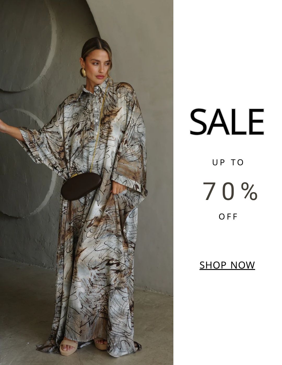 שמלת מקסי אוברסייז כפתורים ניקולה | חום/בז