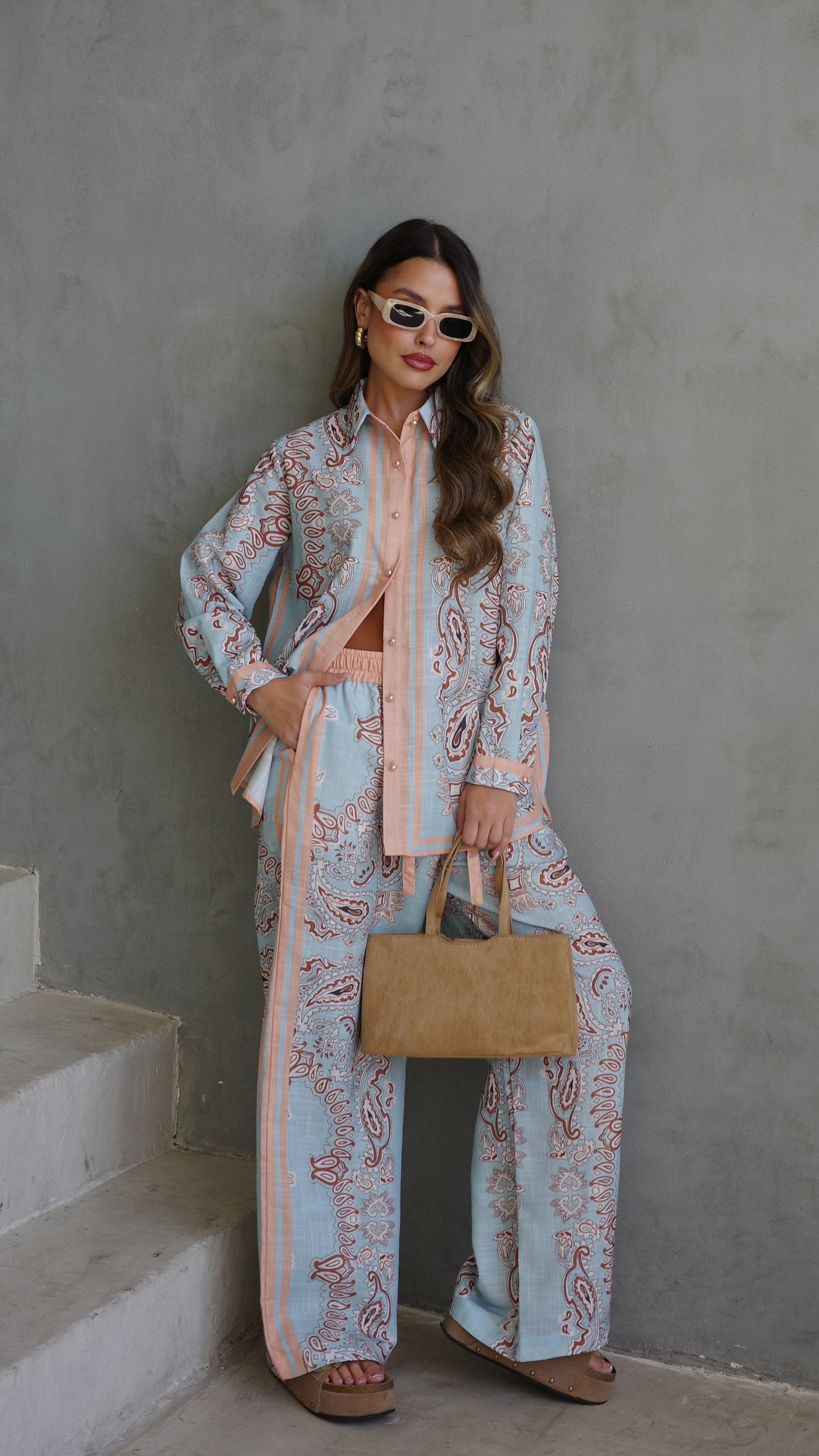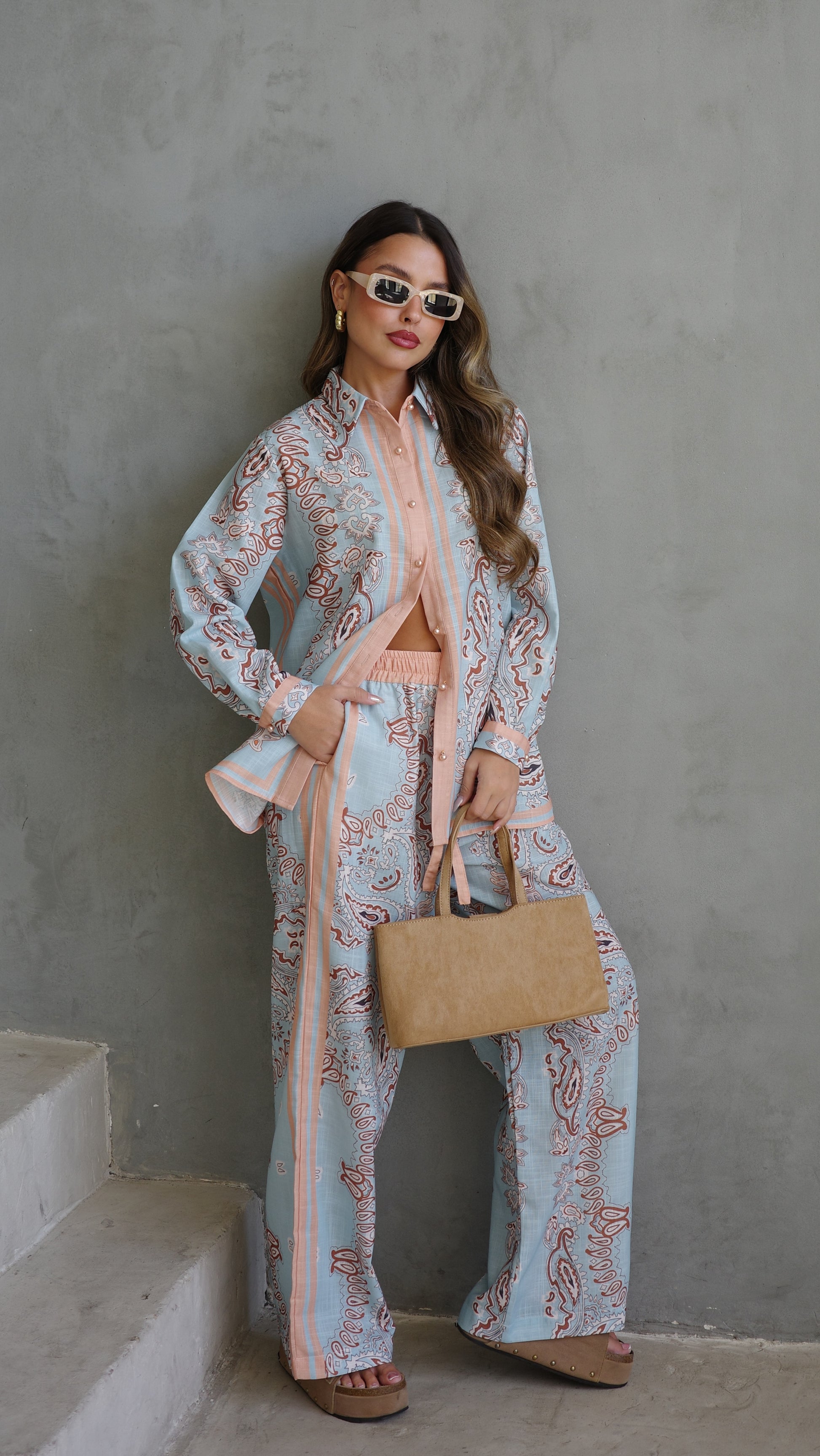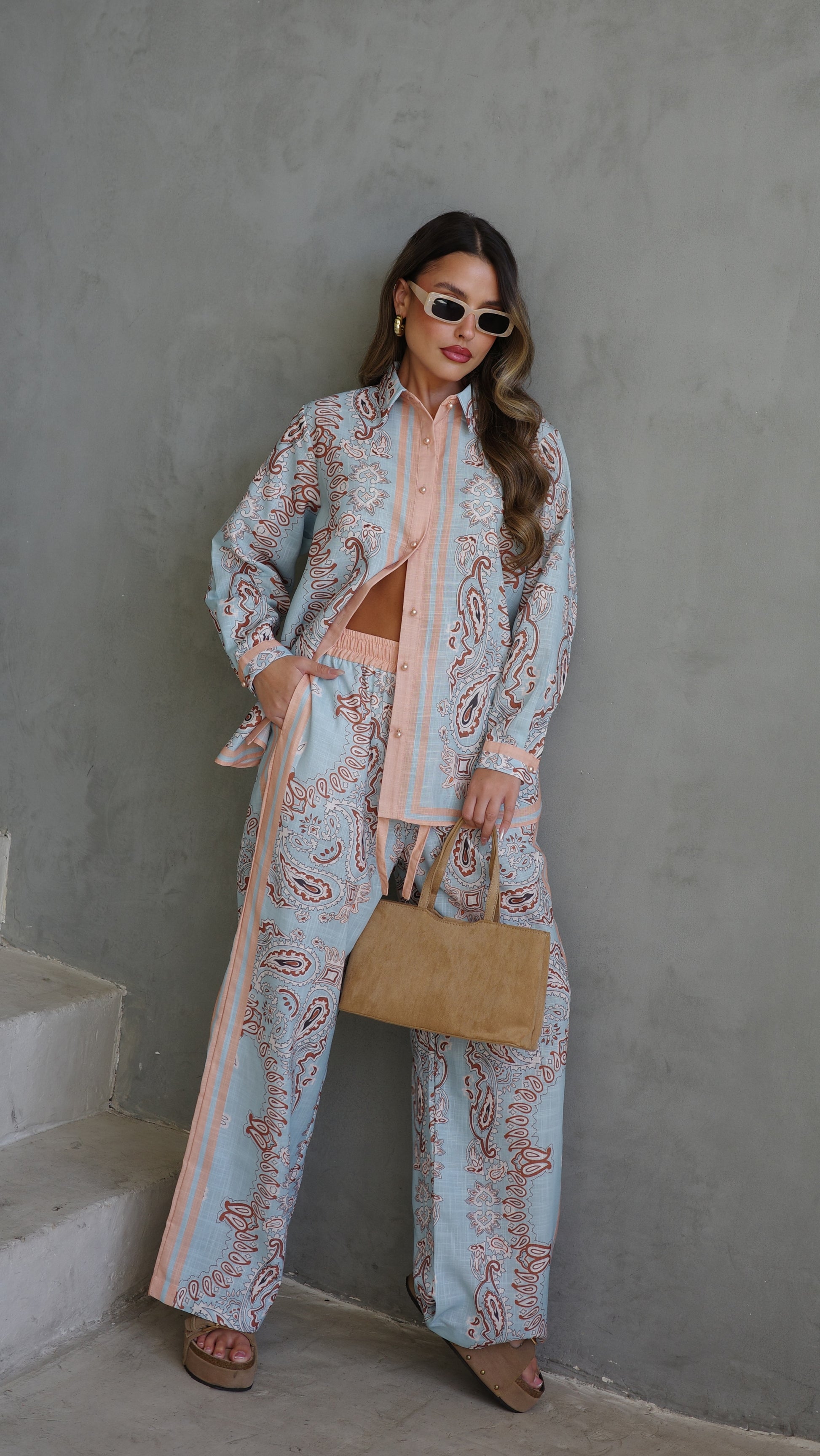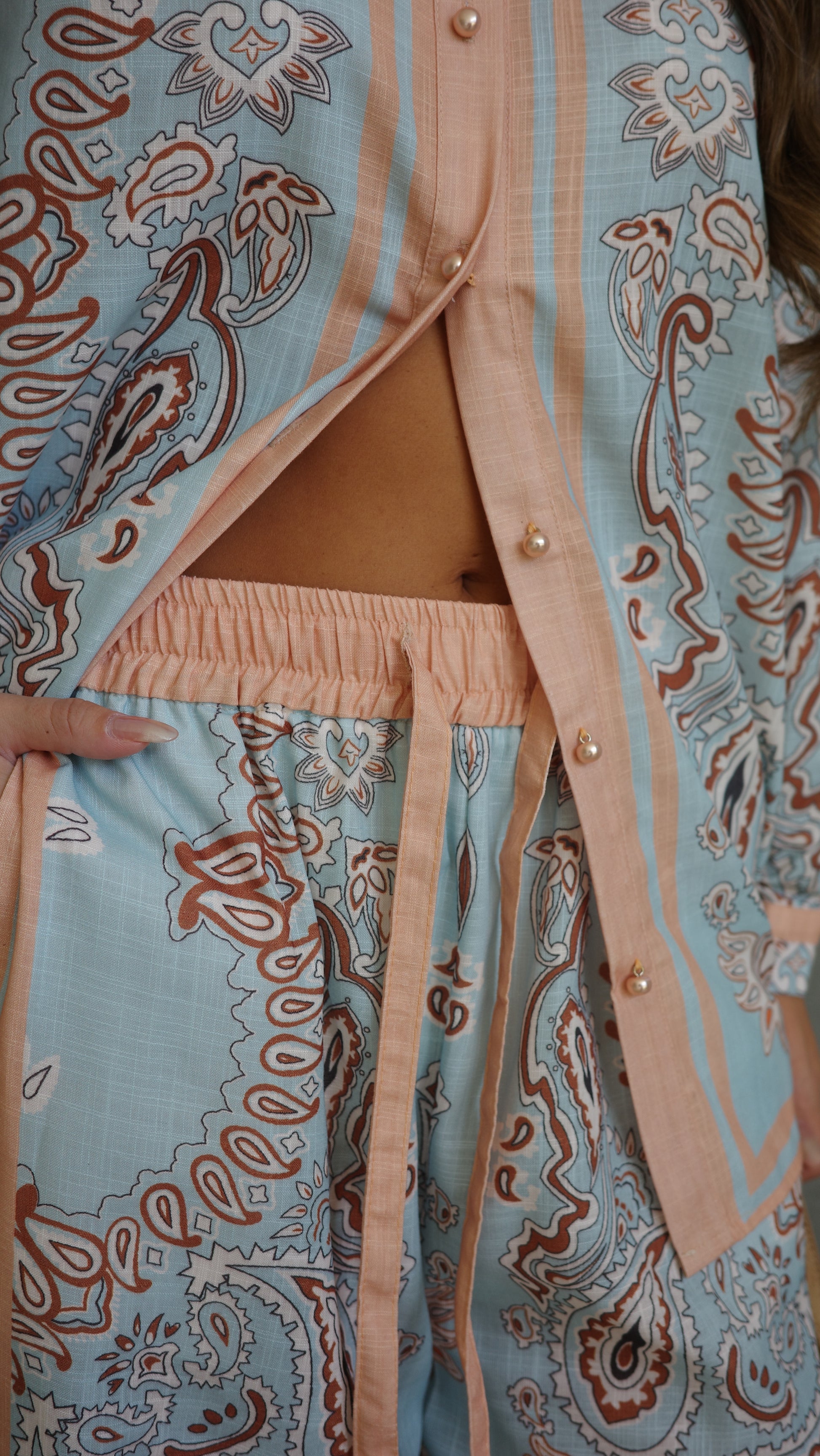 חליפת מכנס לטיסיה | תכלת/אפרסק