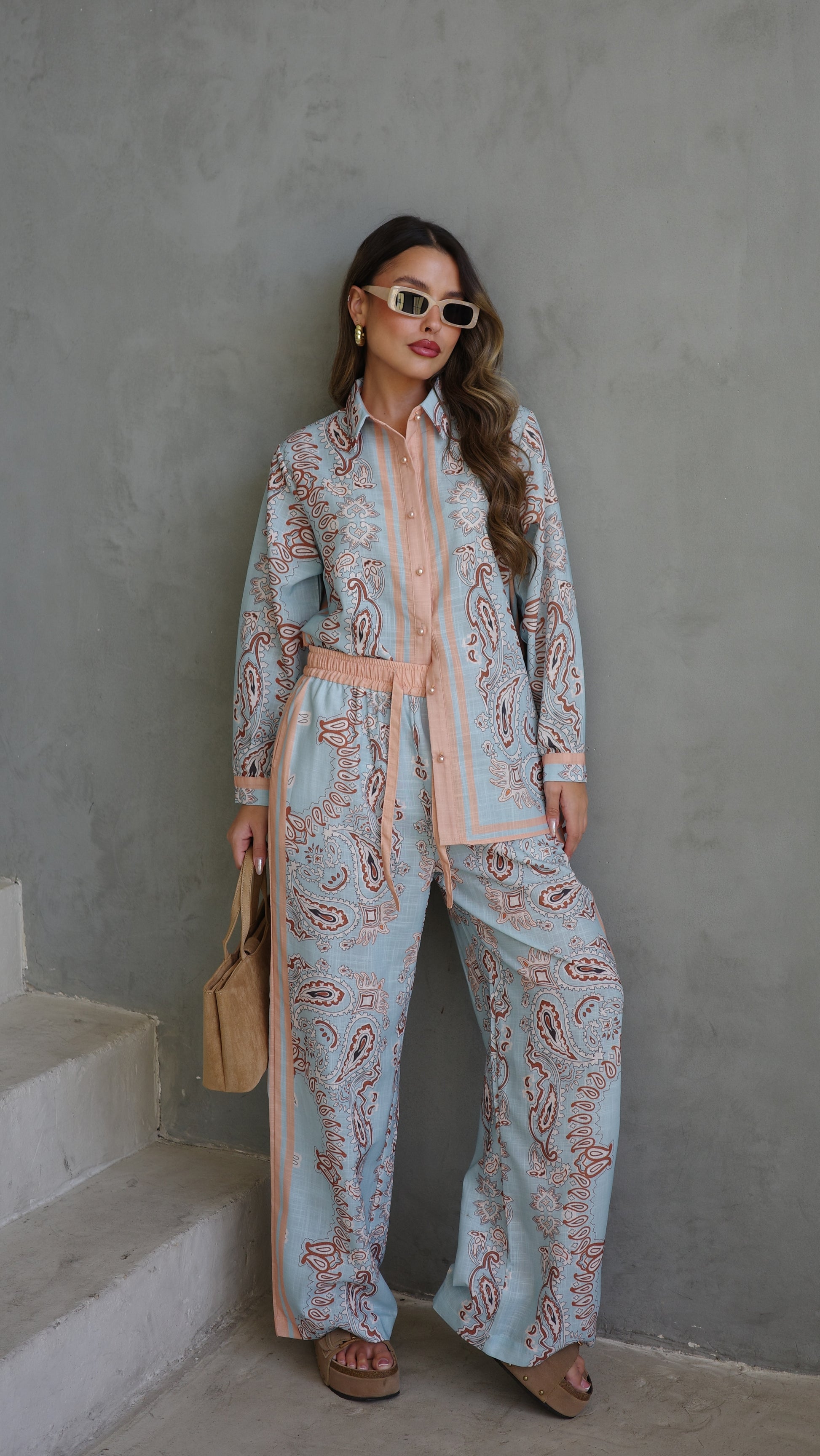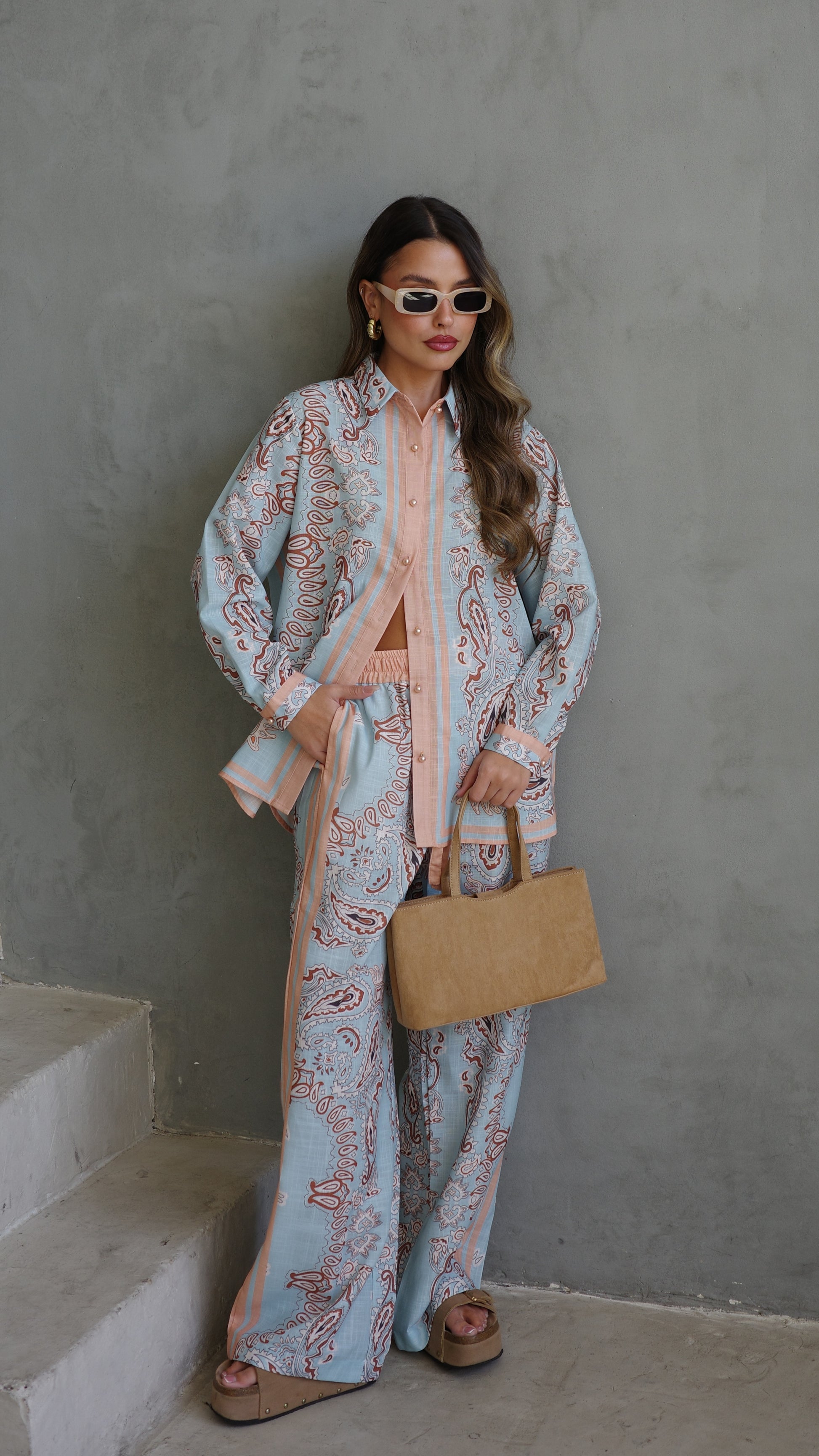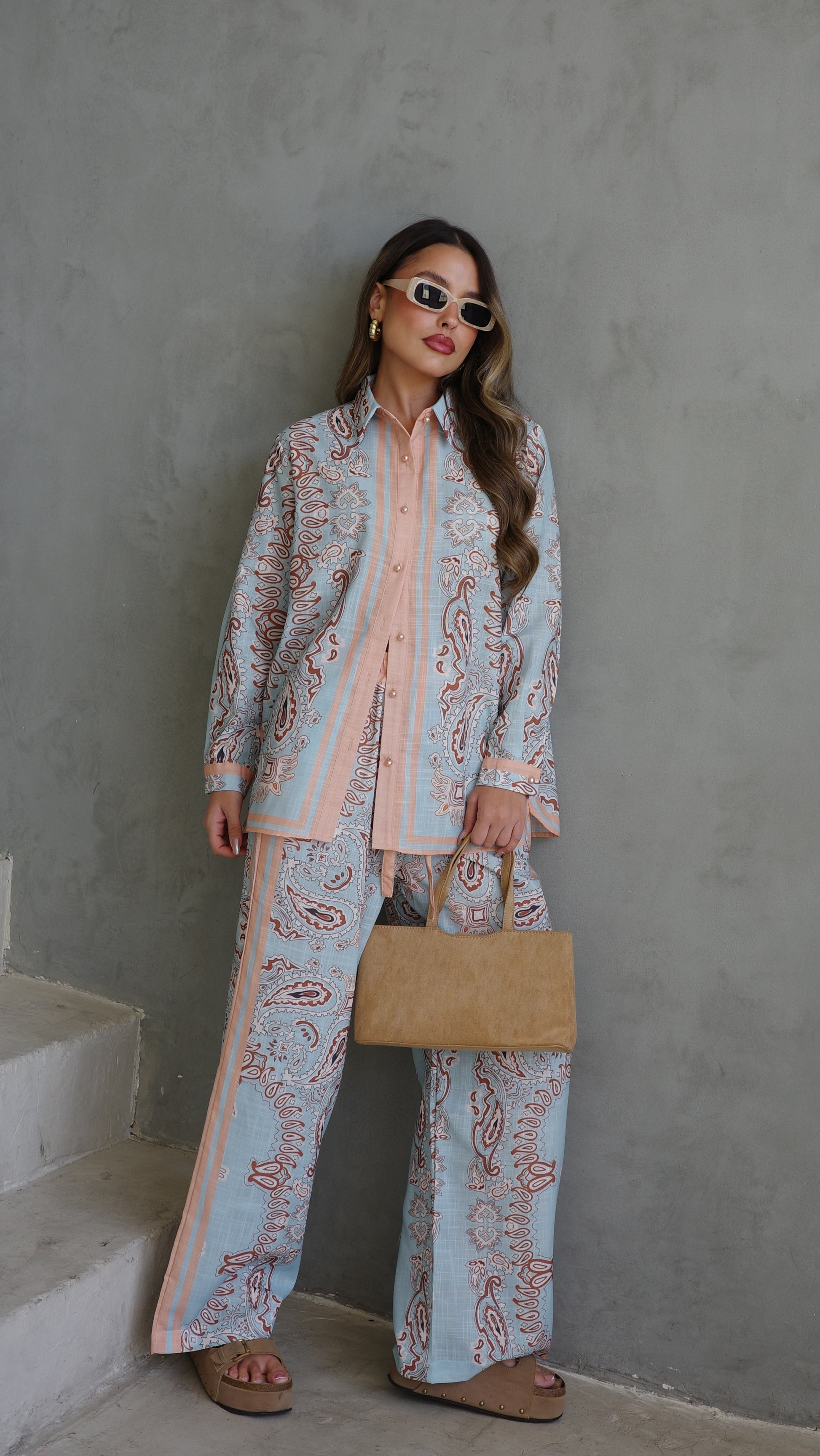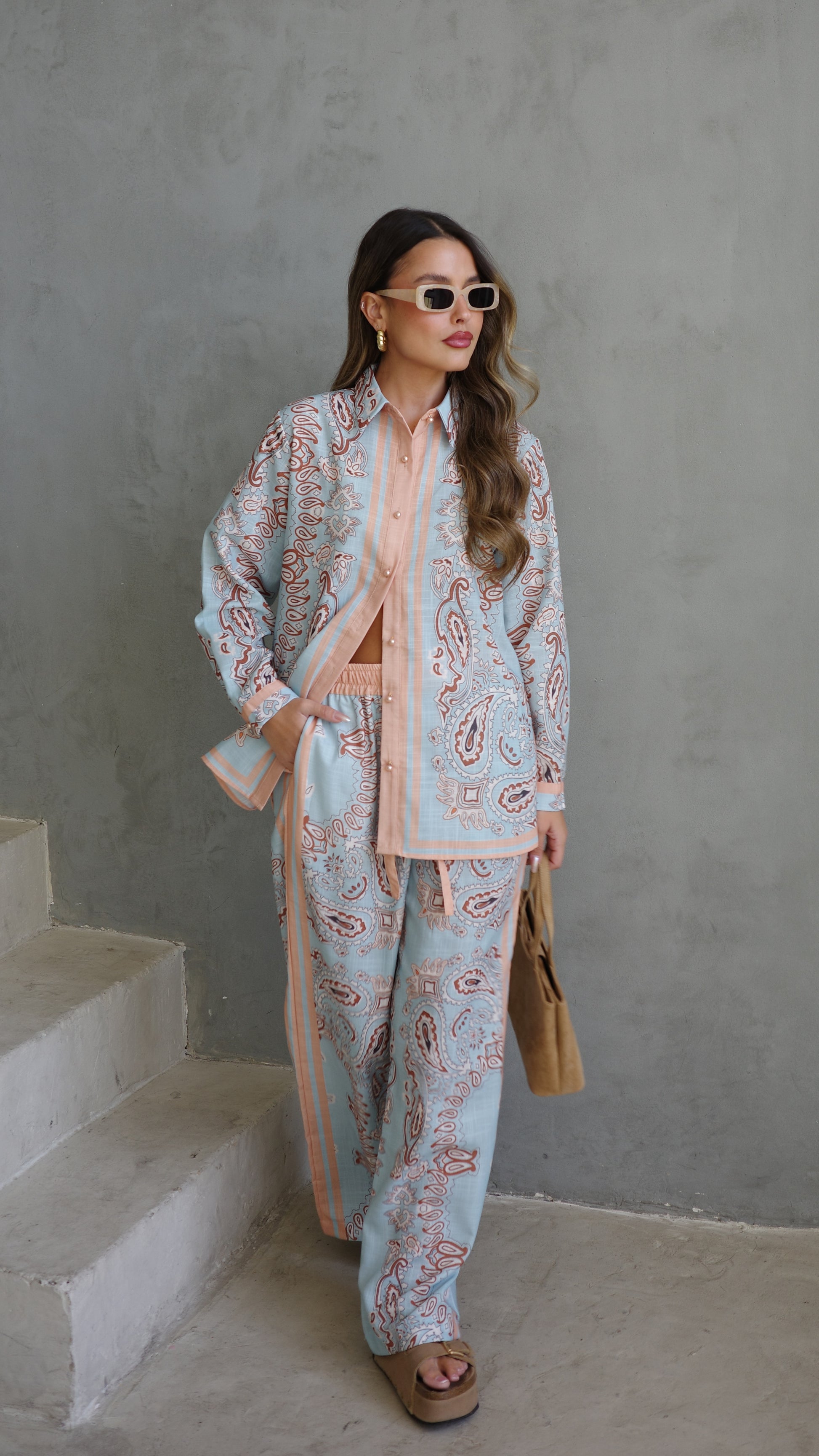 חליפת מכנס לטיסיה | תכלת/אפרסק