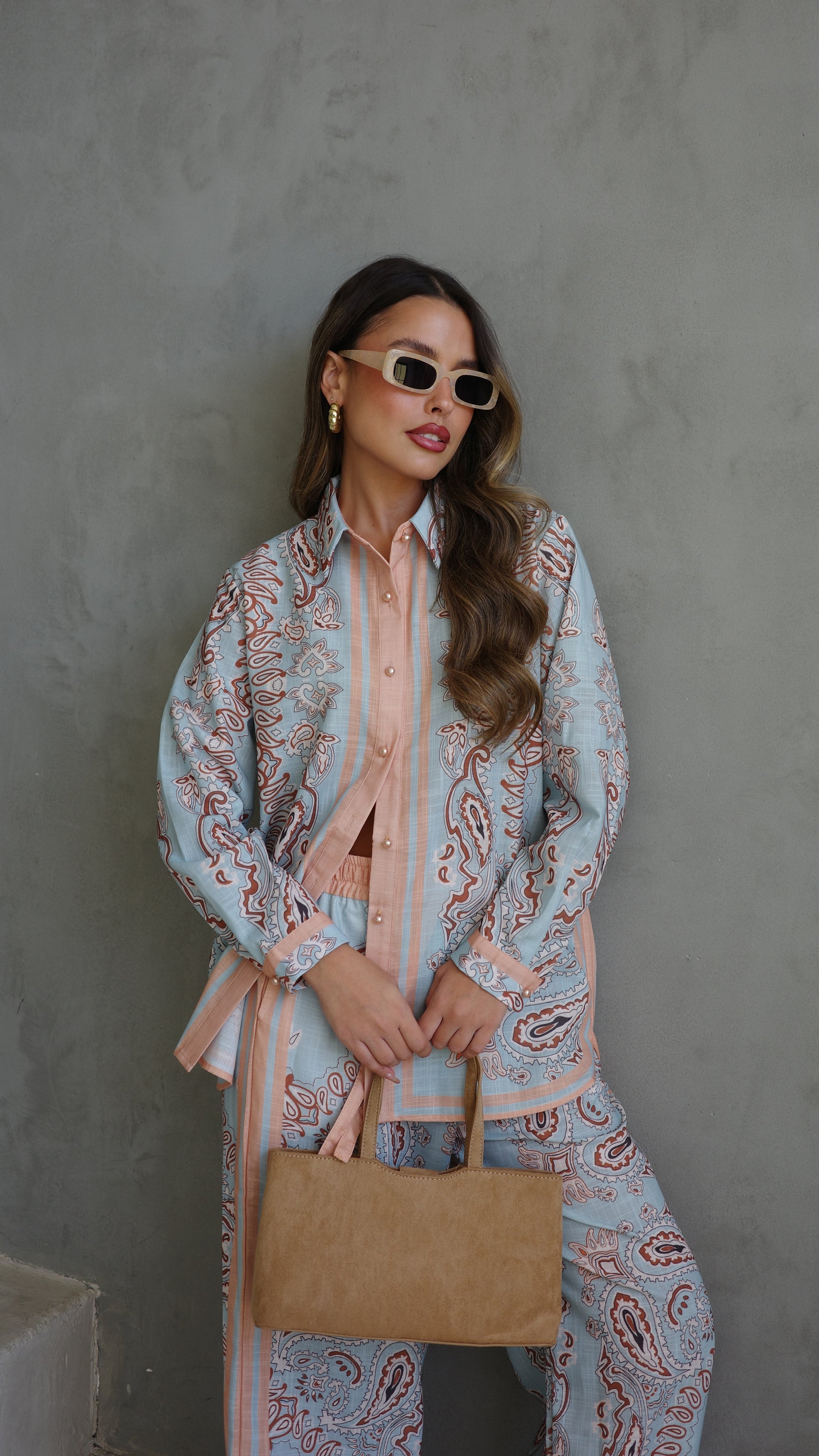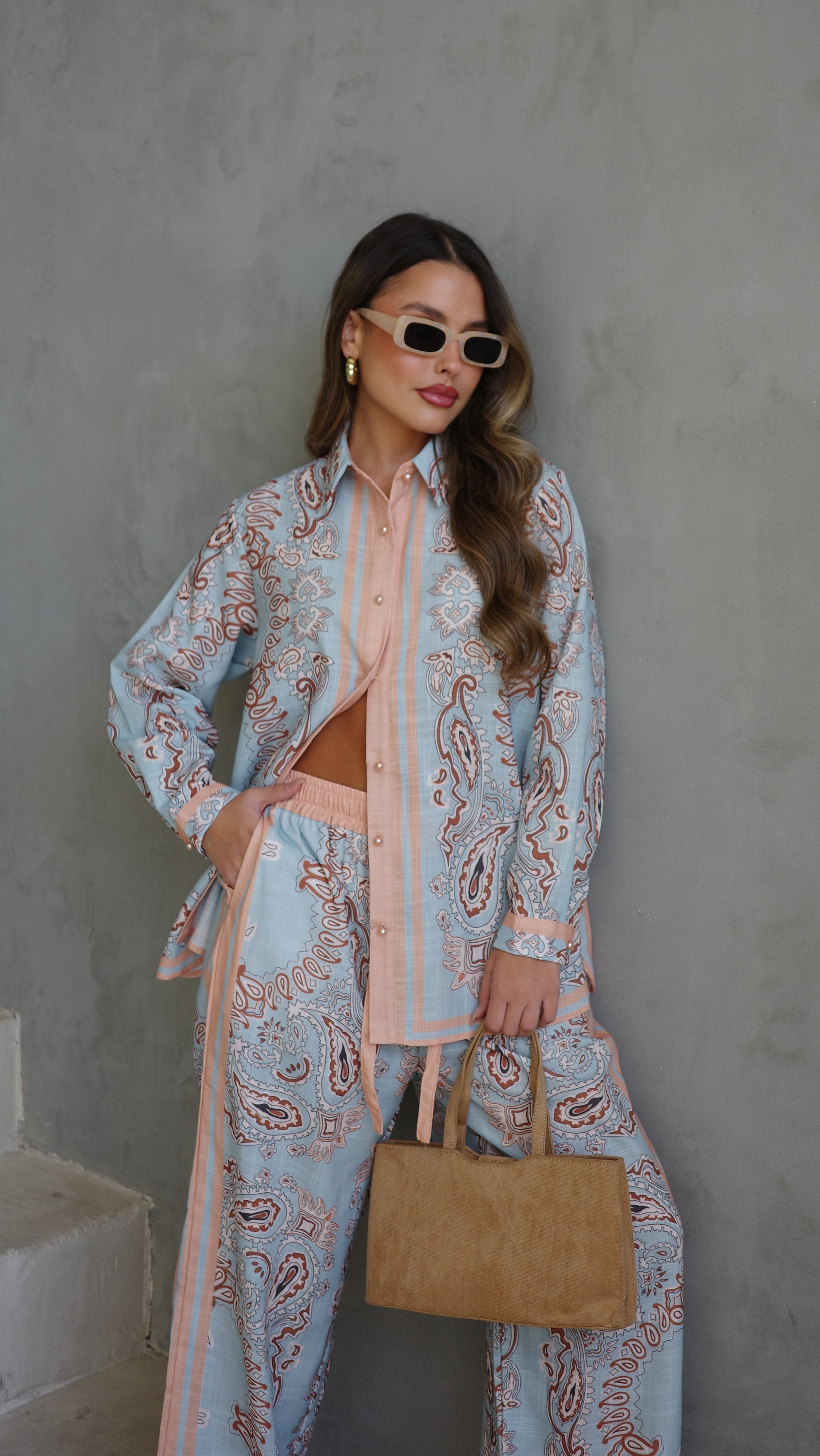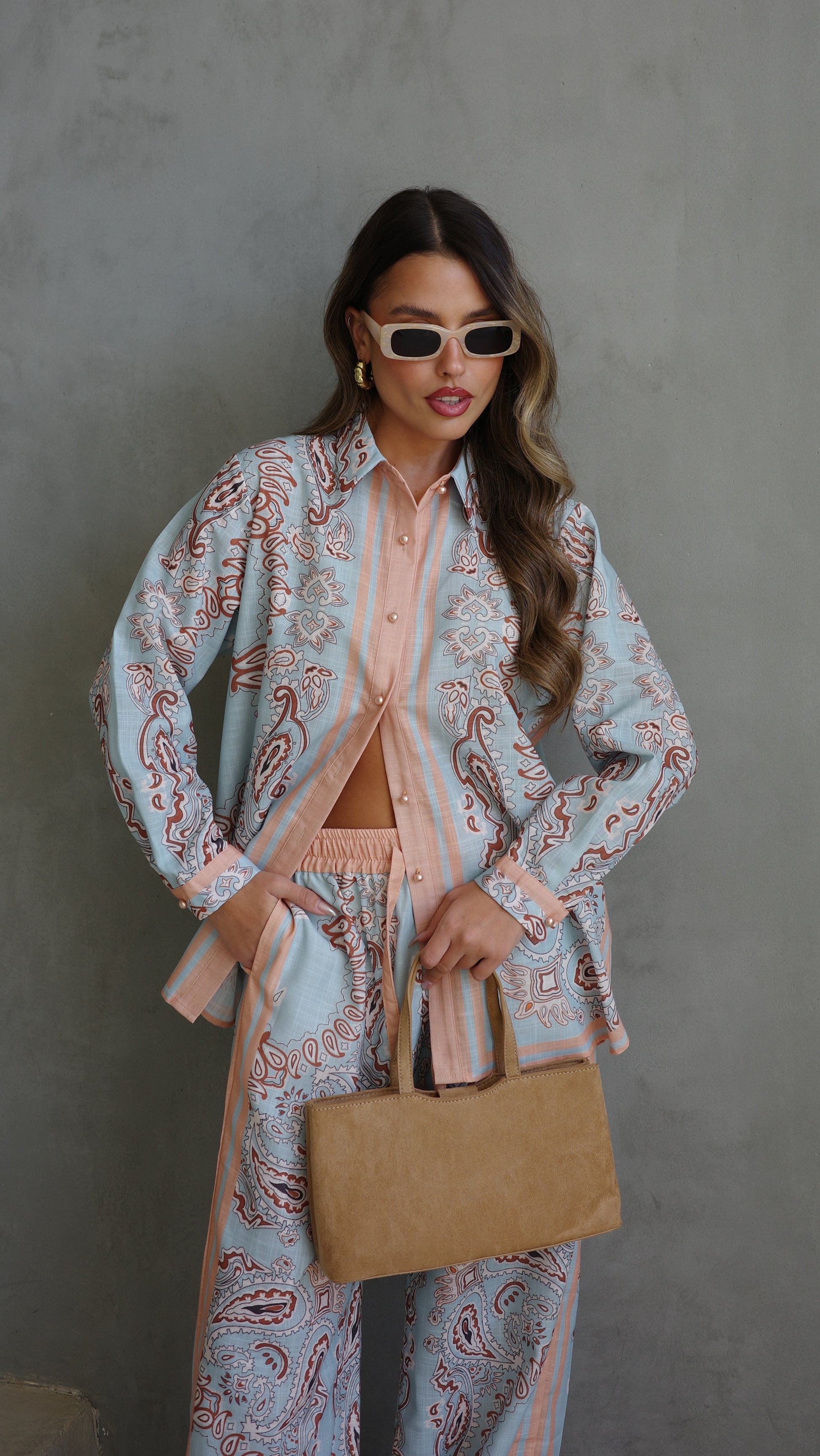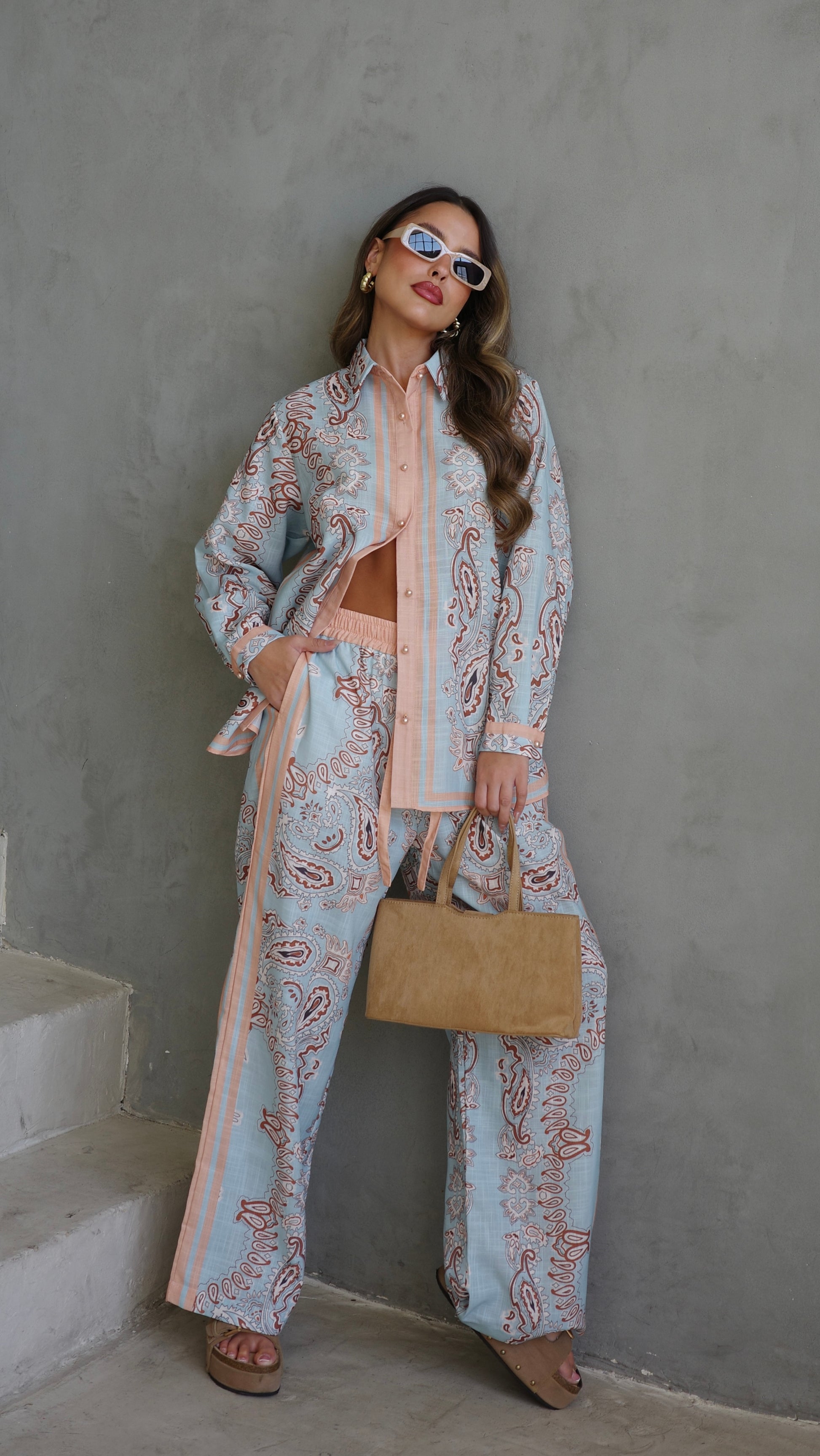 חליפת מכנס לטיסיה | תכלת/אפרסק