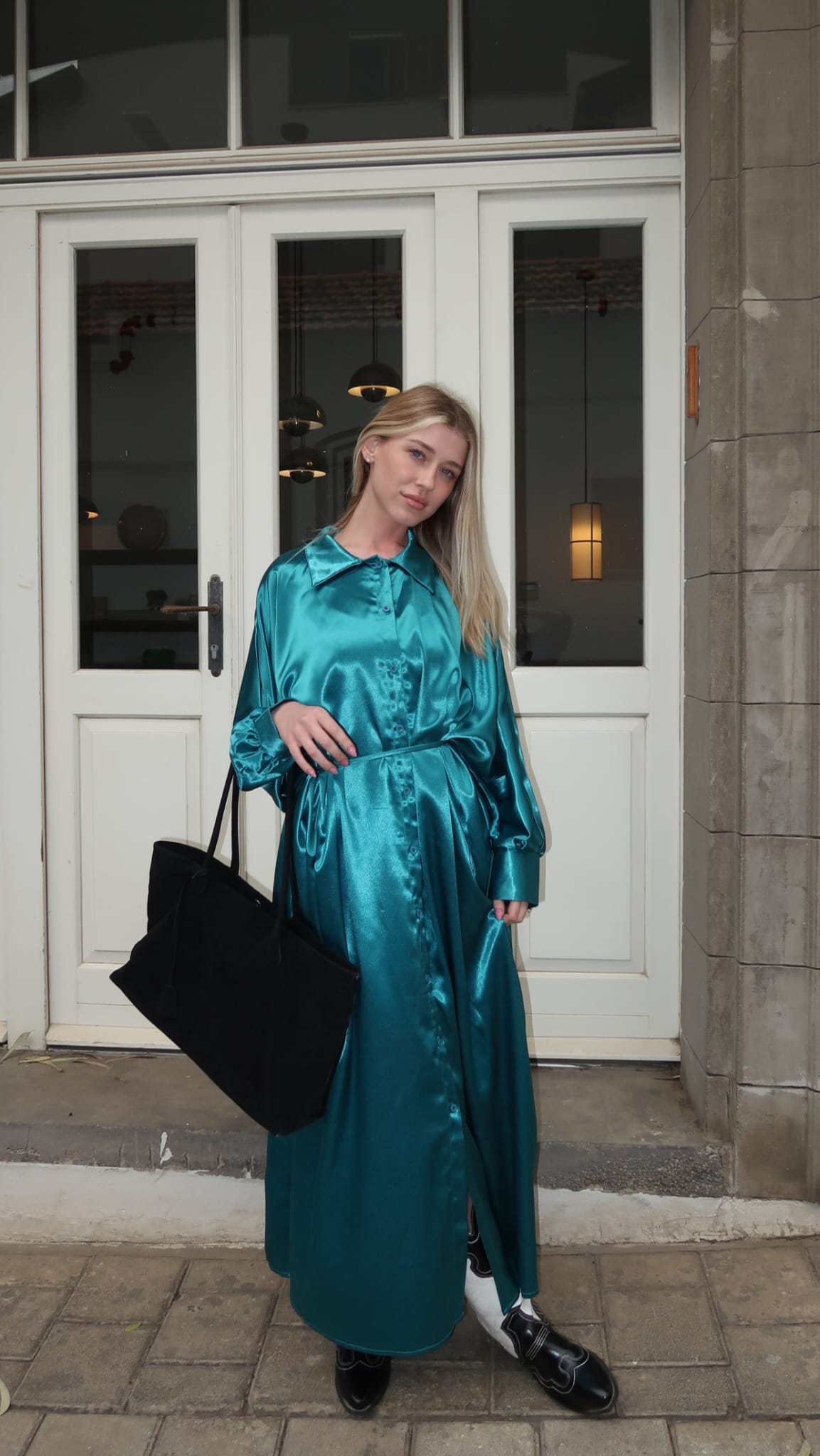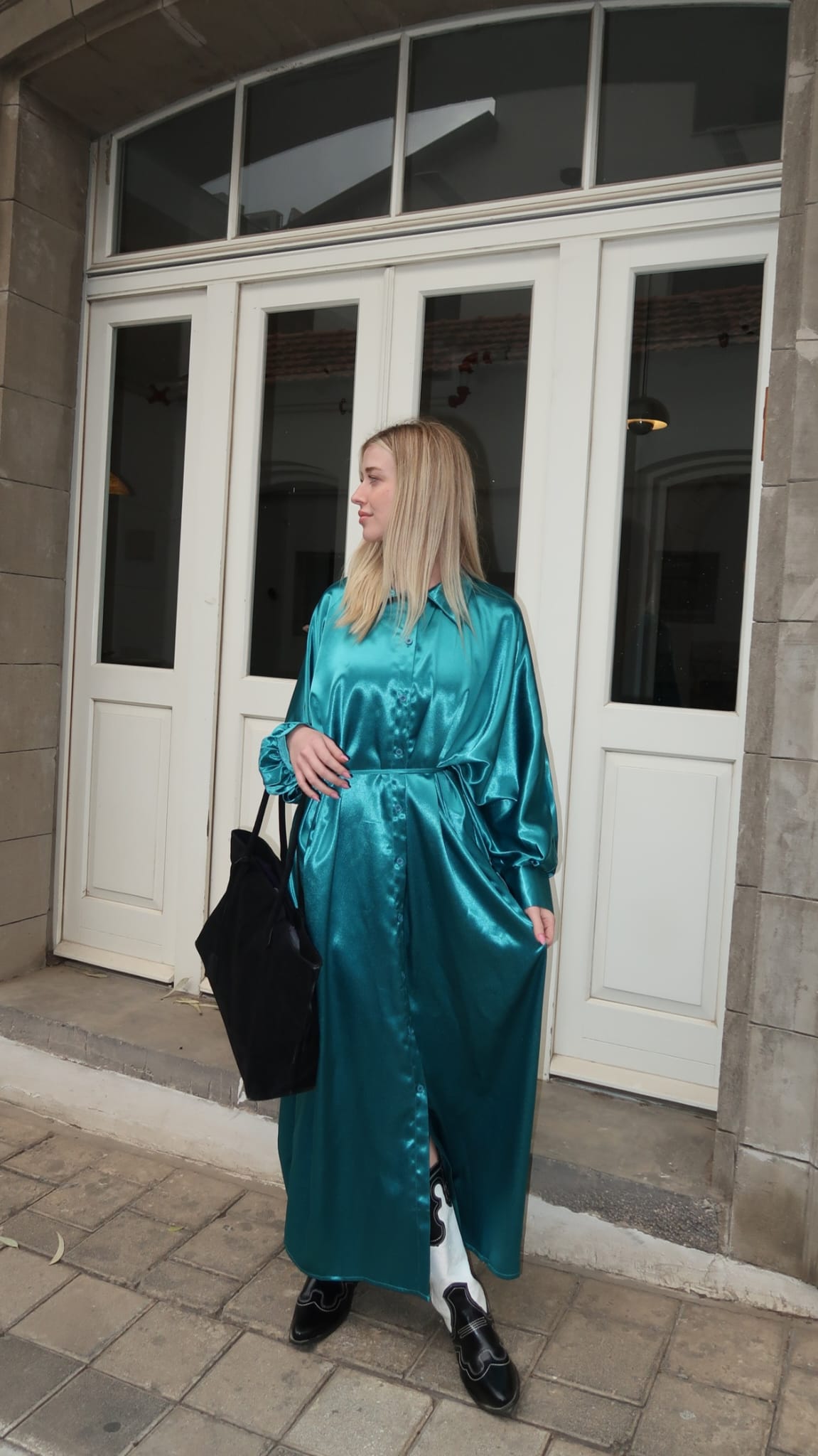 שמלת אוברסייז עטלף קנדל | טורקיז
