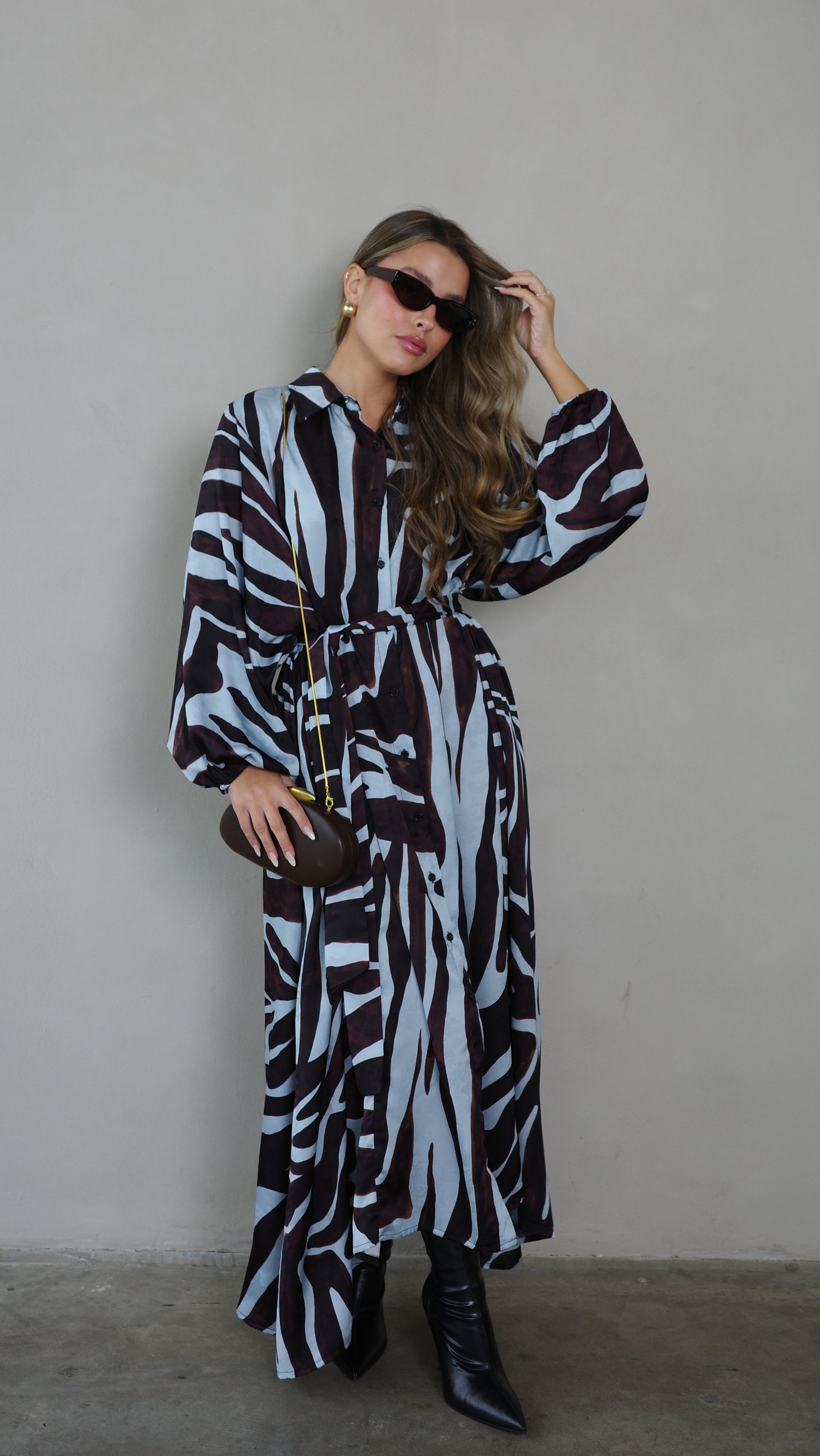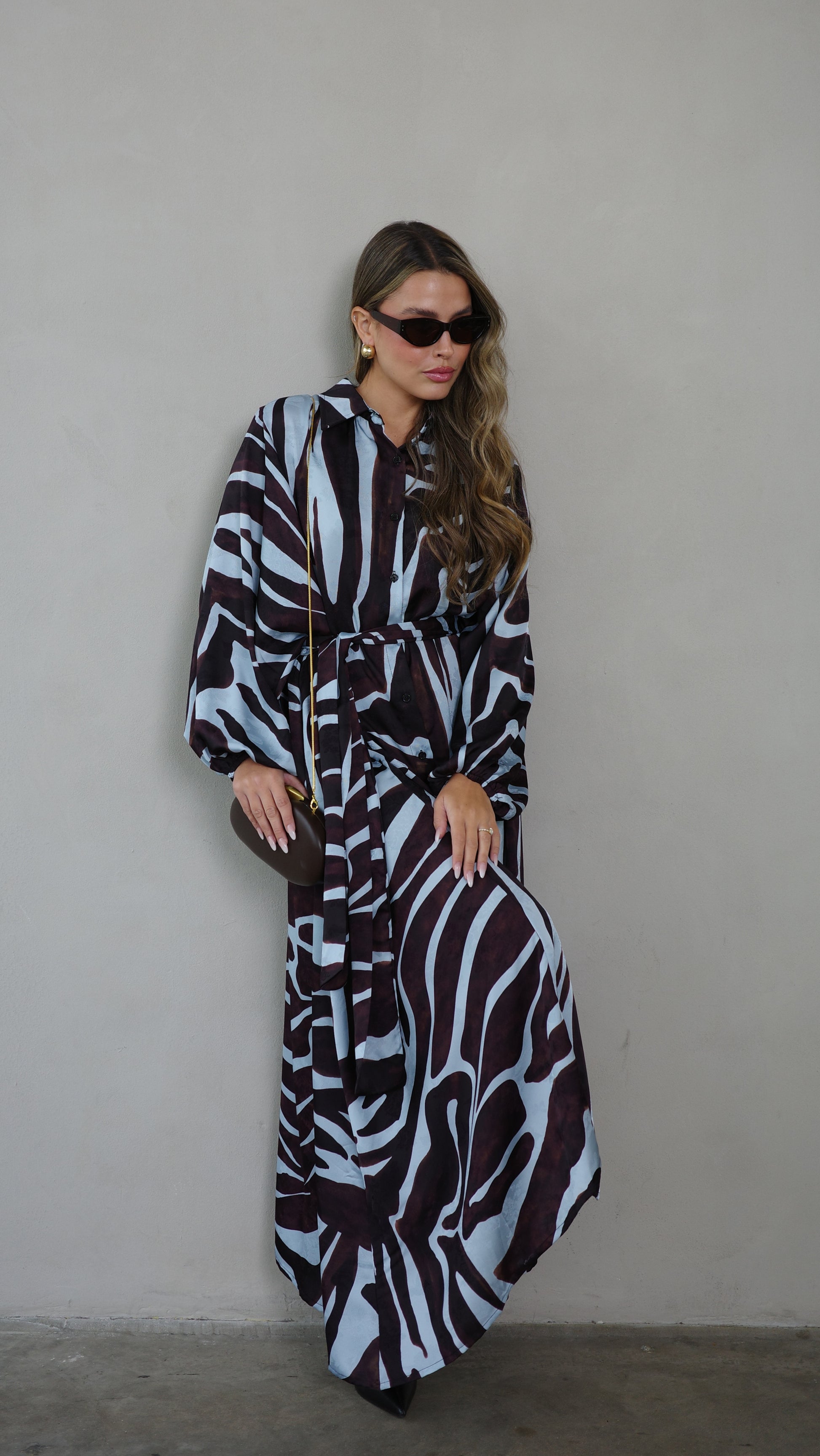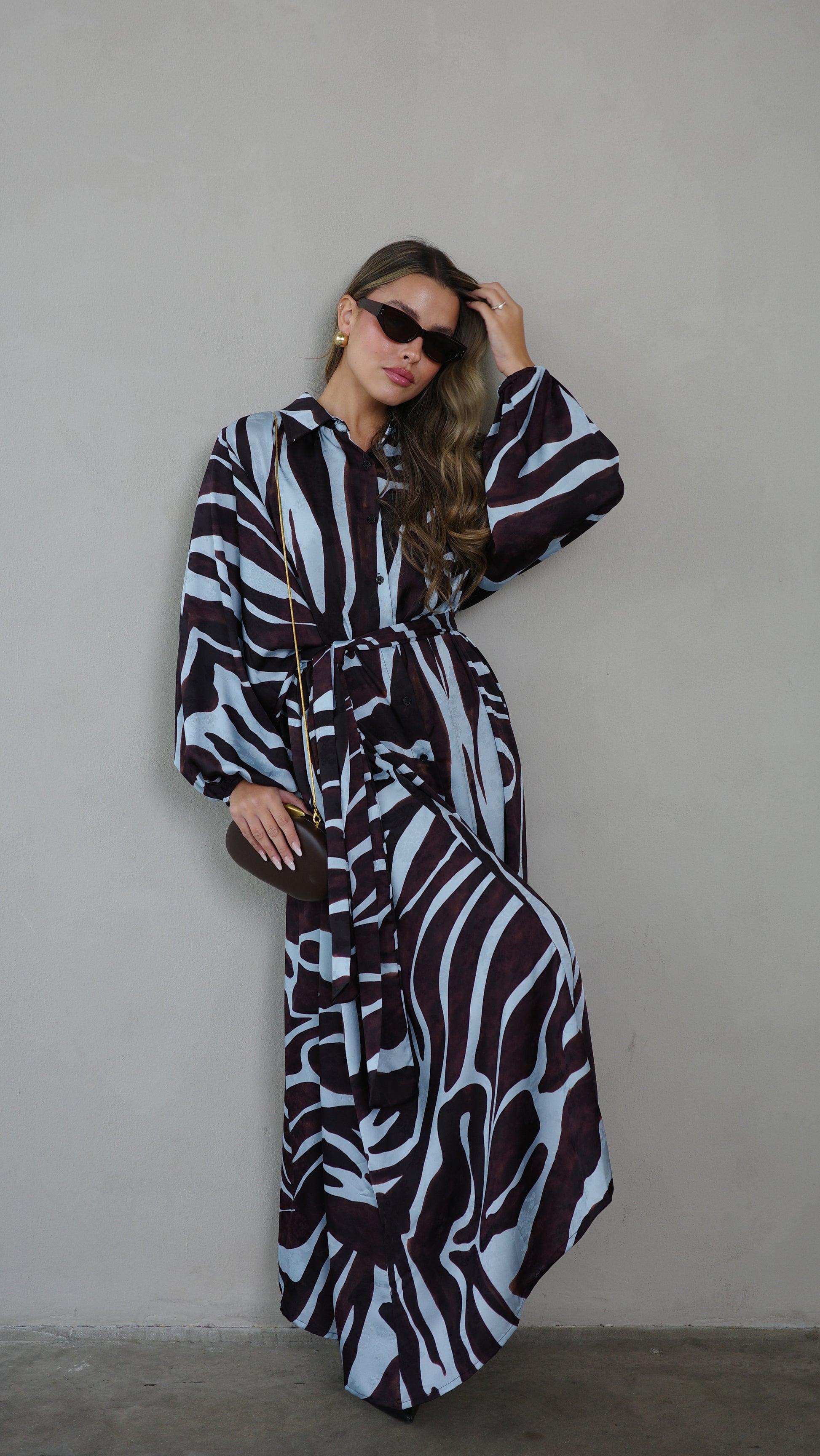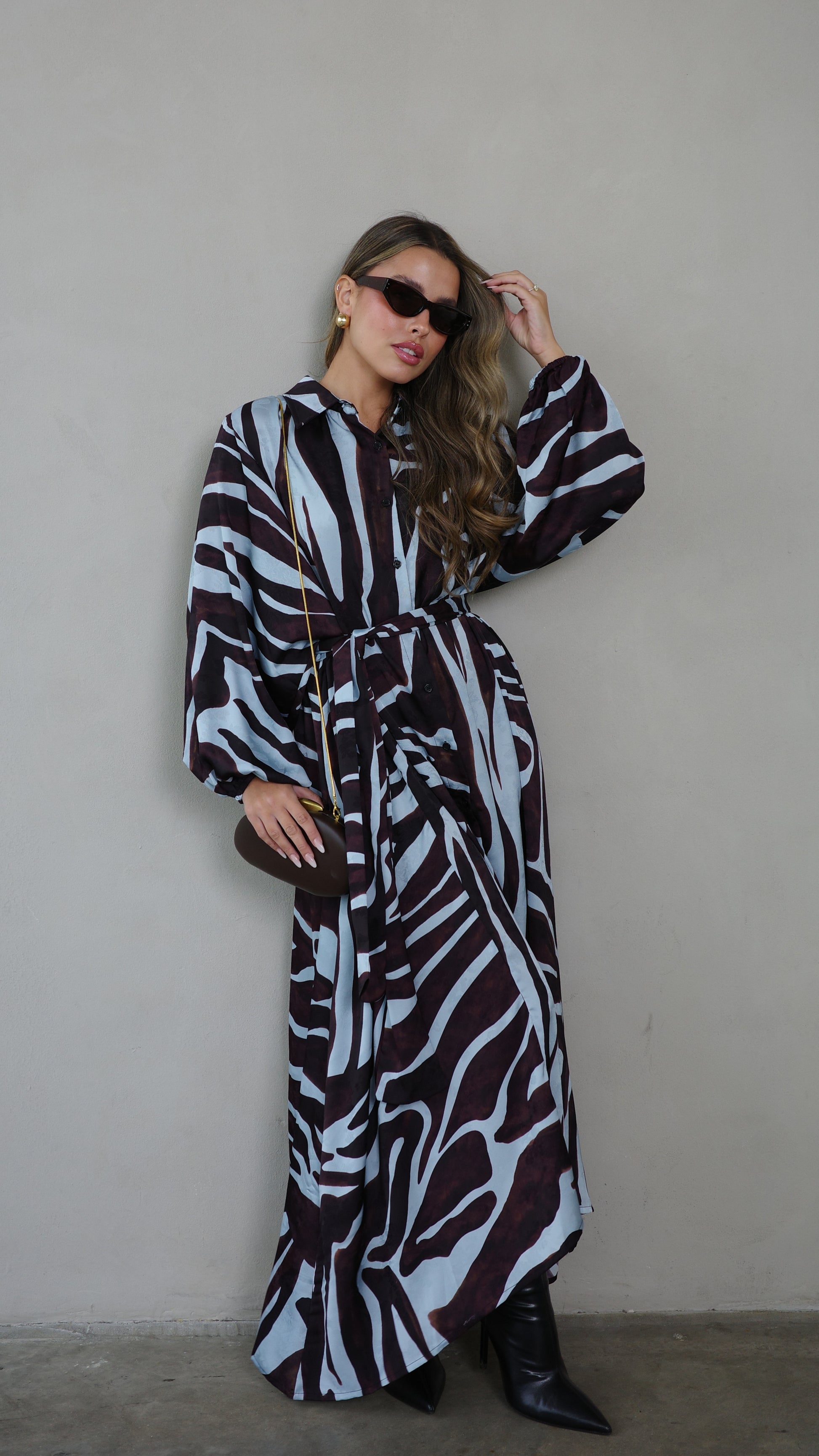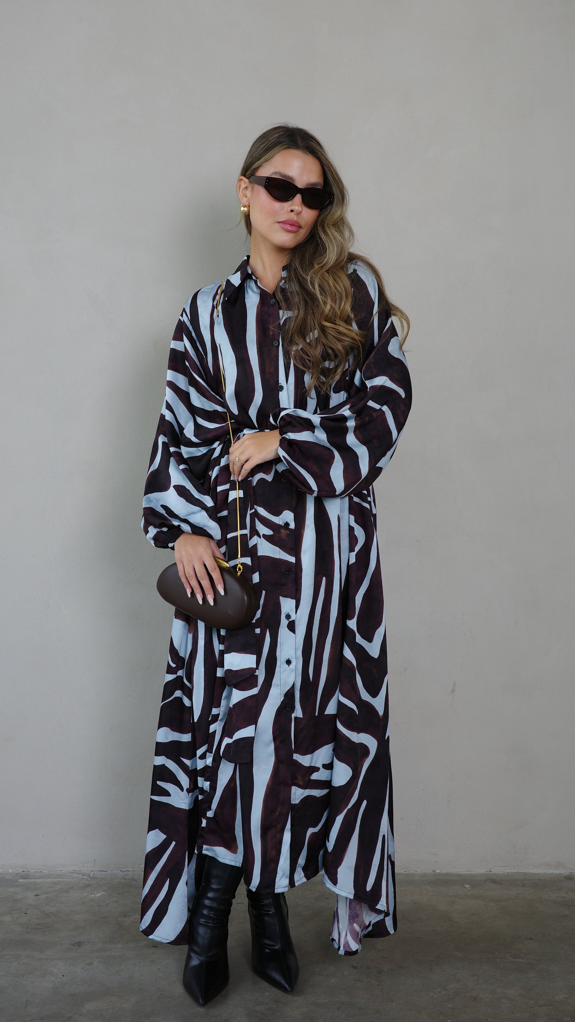 שמלת מקסי אוברסייז כפתורים שארלוט | חום/תכלת