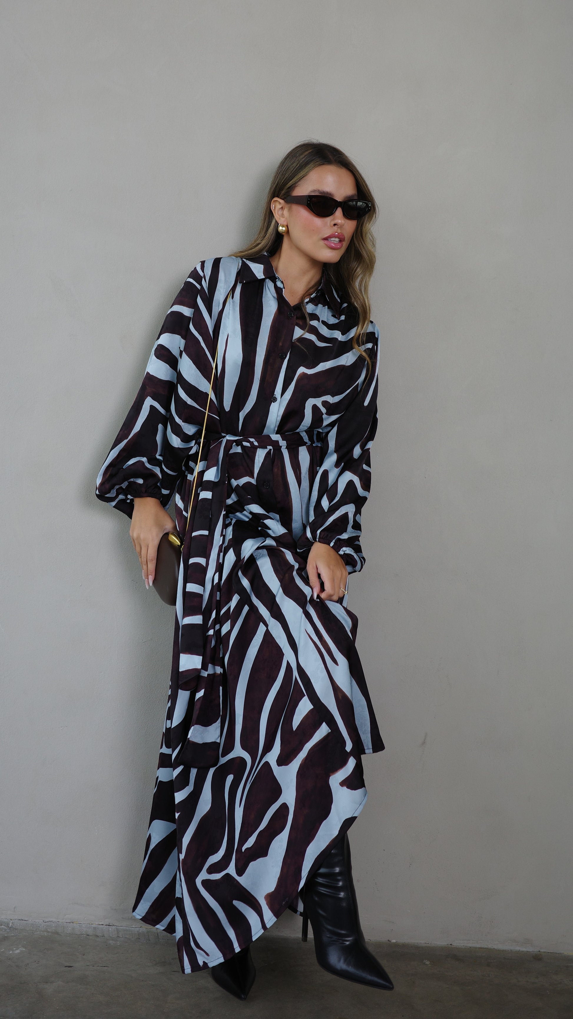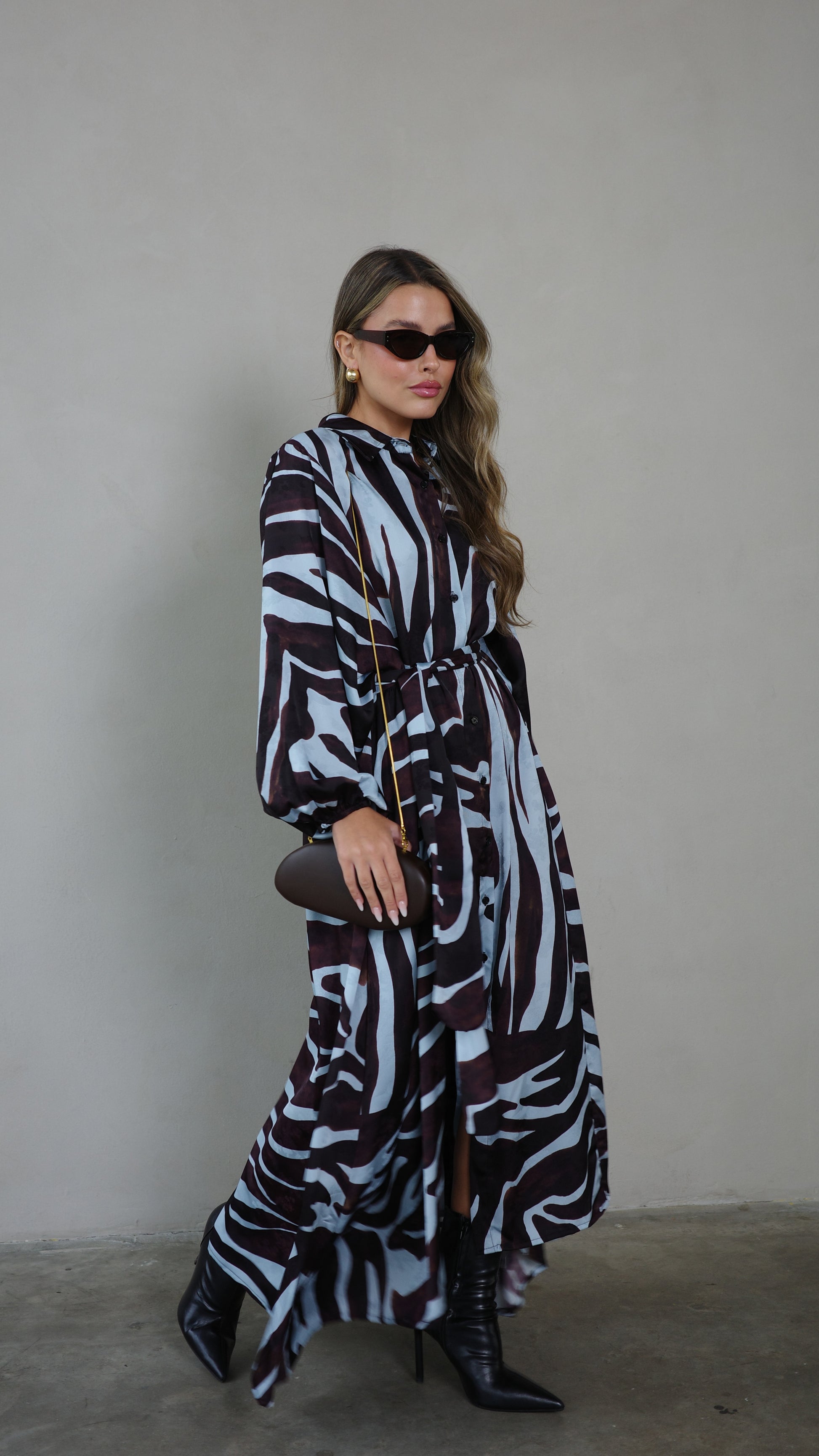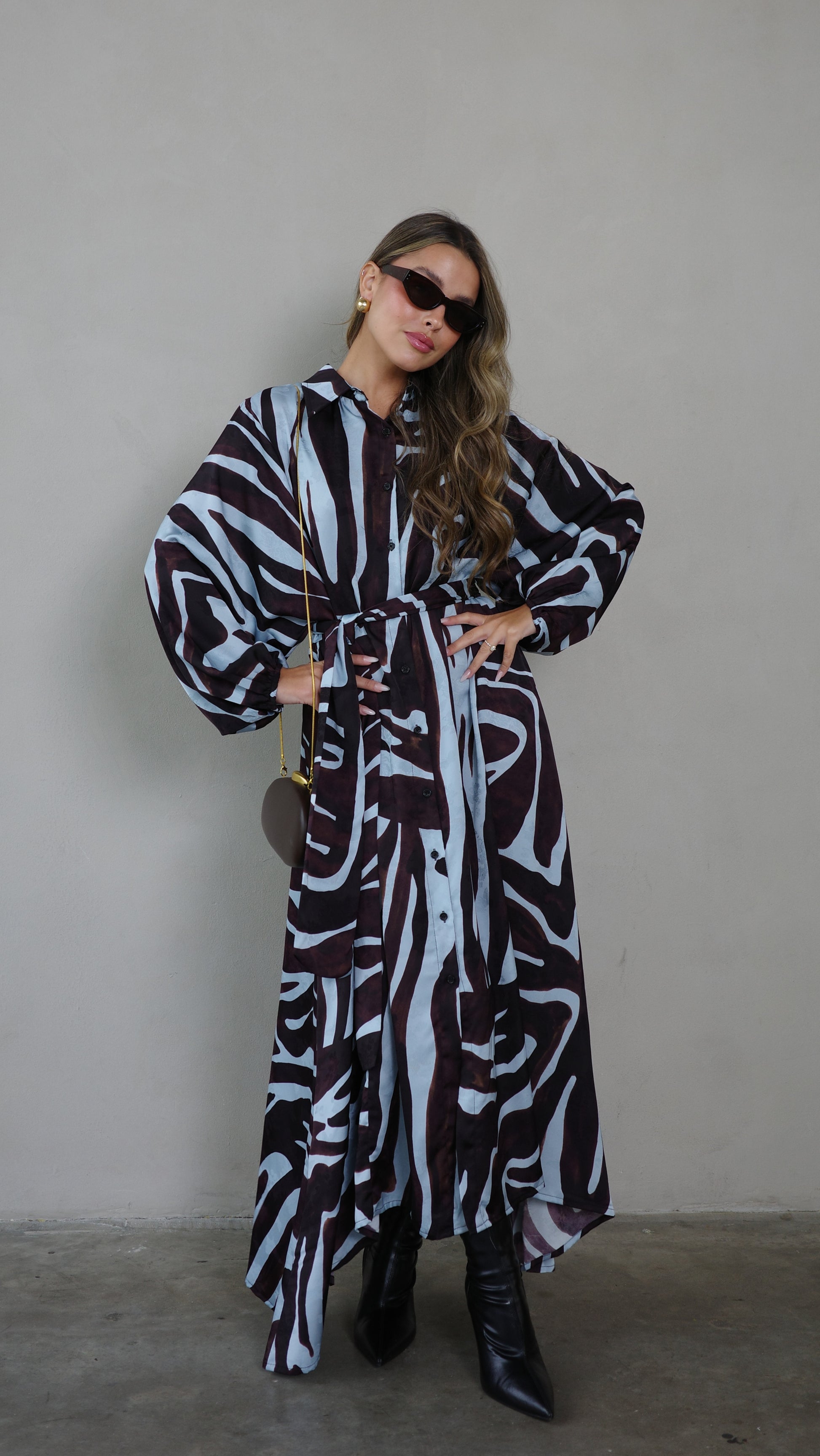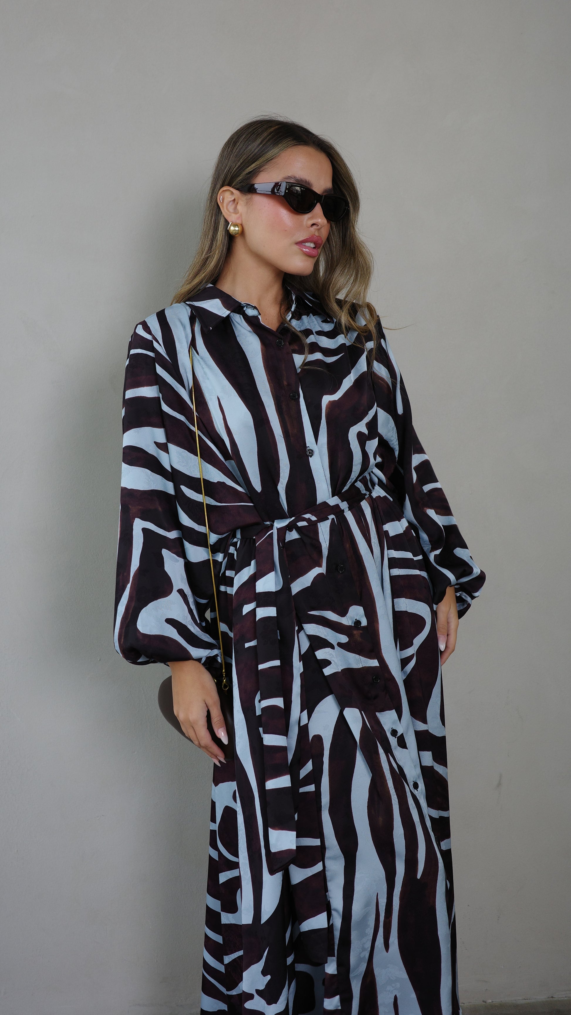 שמלת מקסי אוברסייז כפתורים שארלוט | חום/תכלת