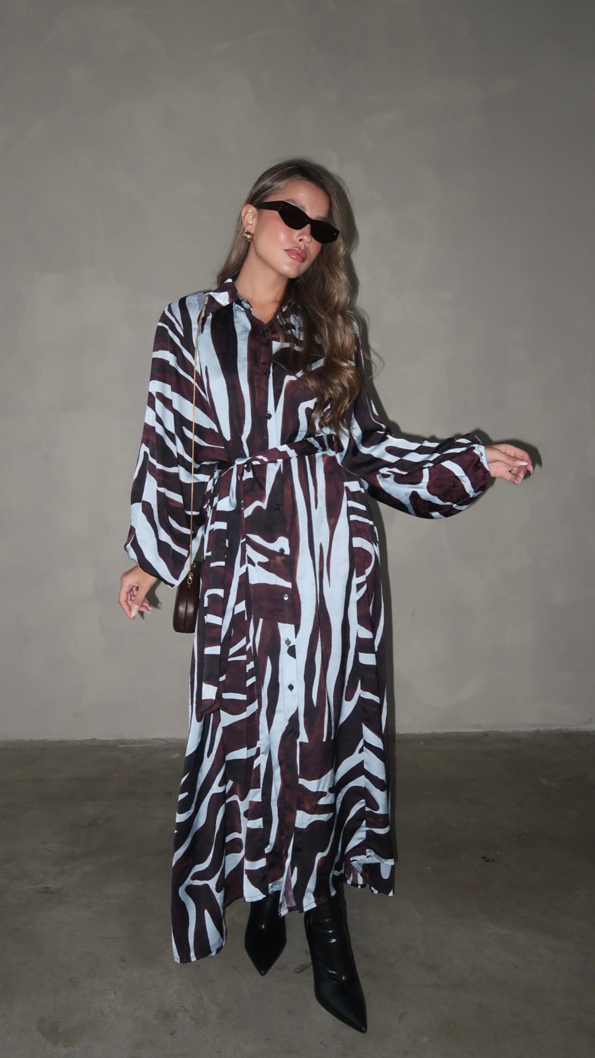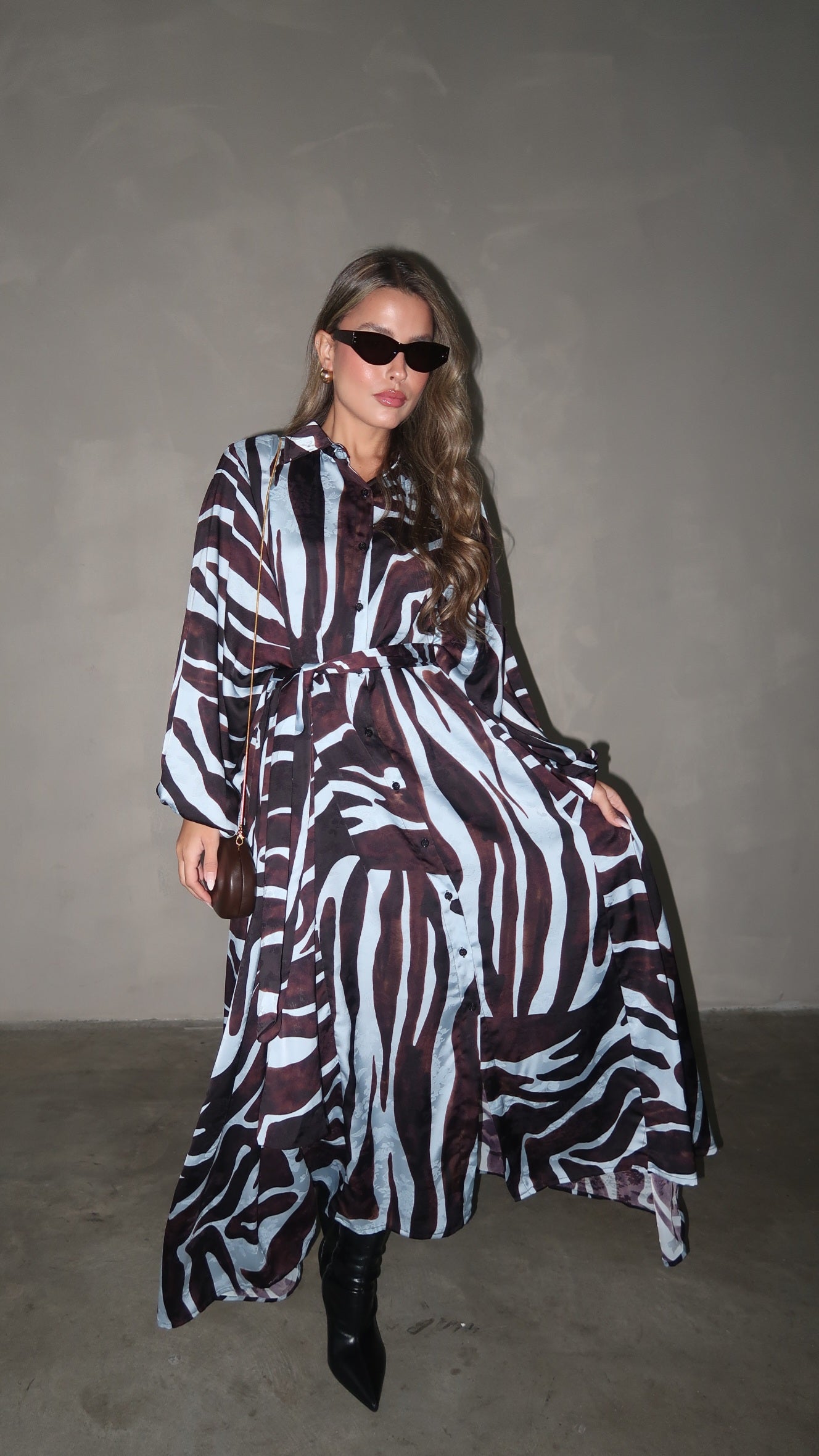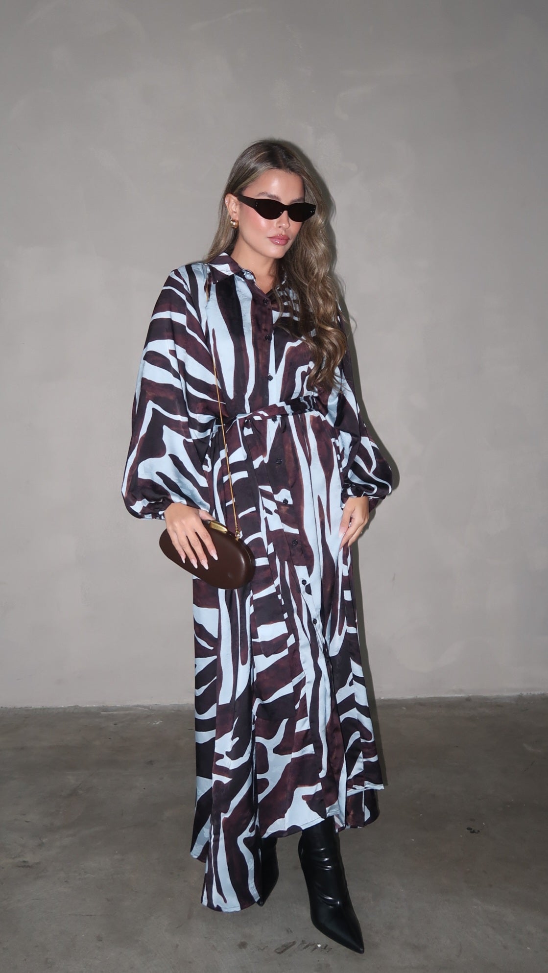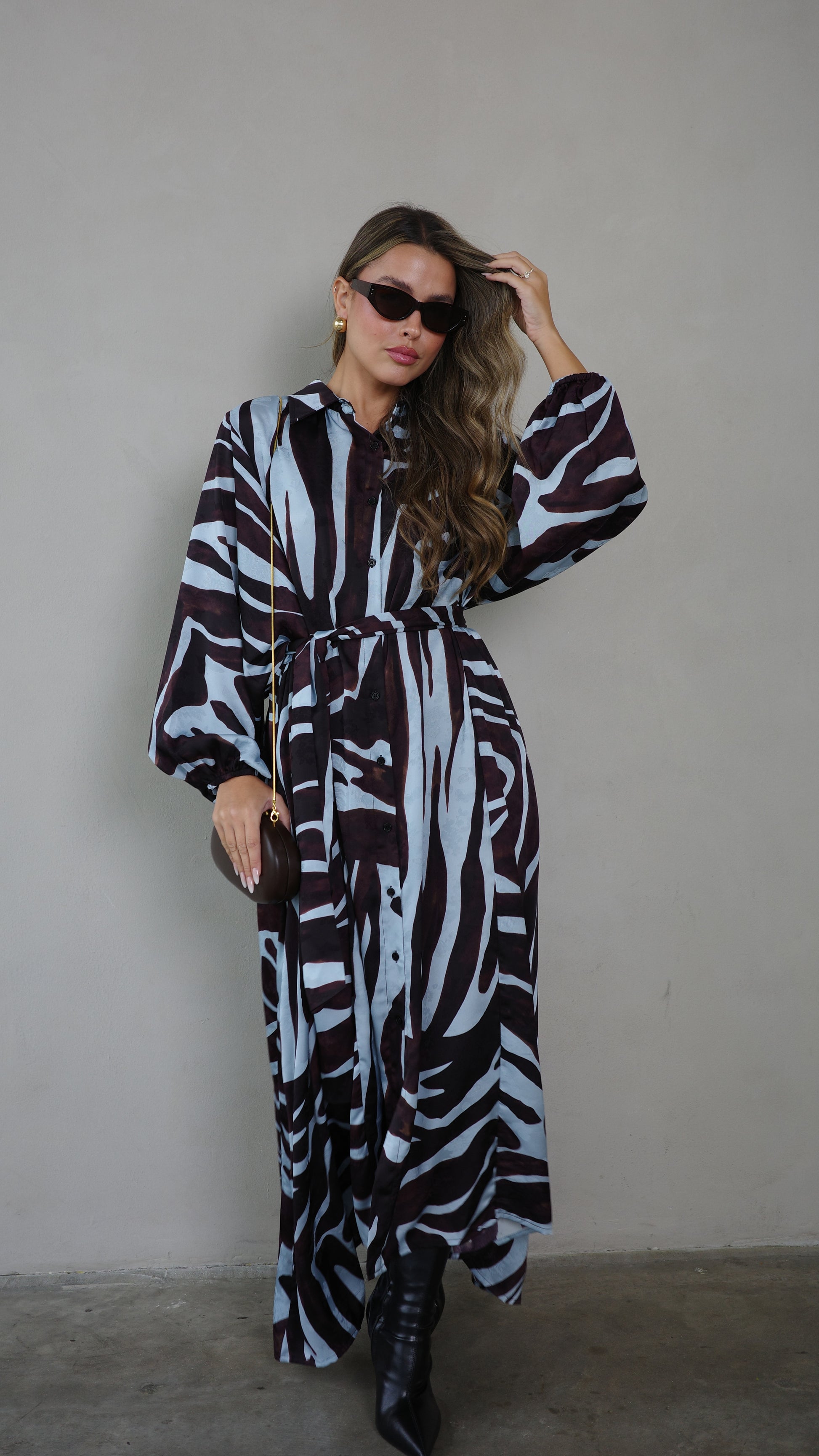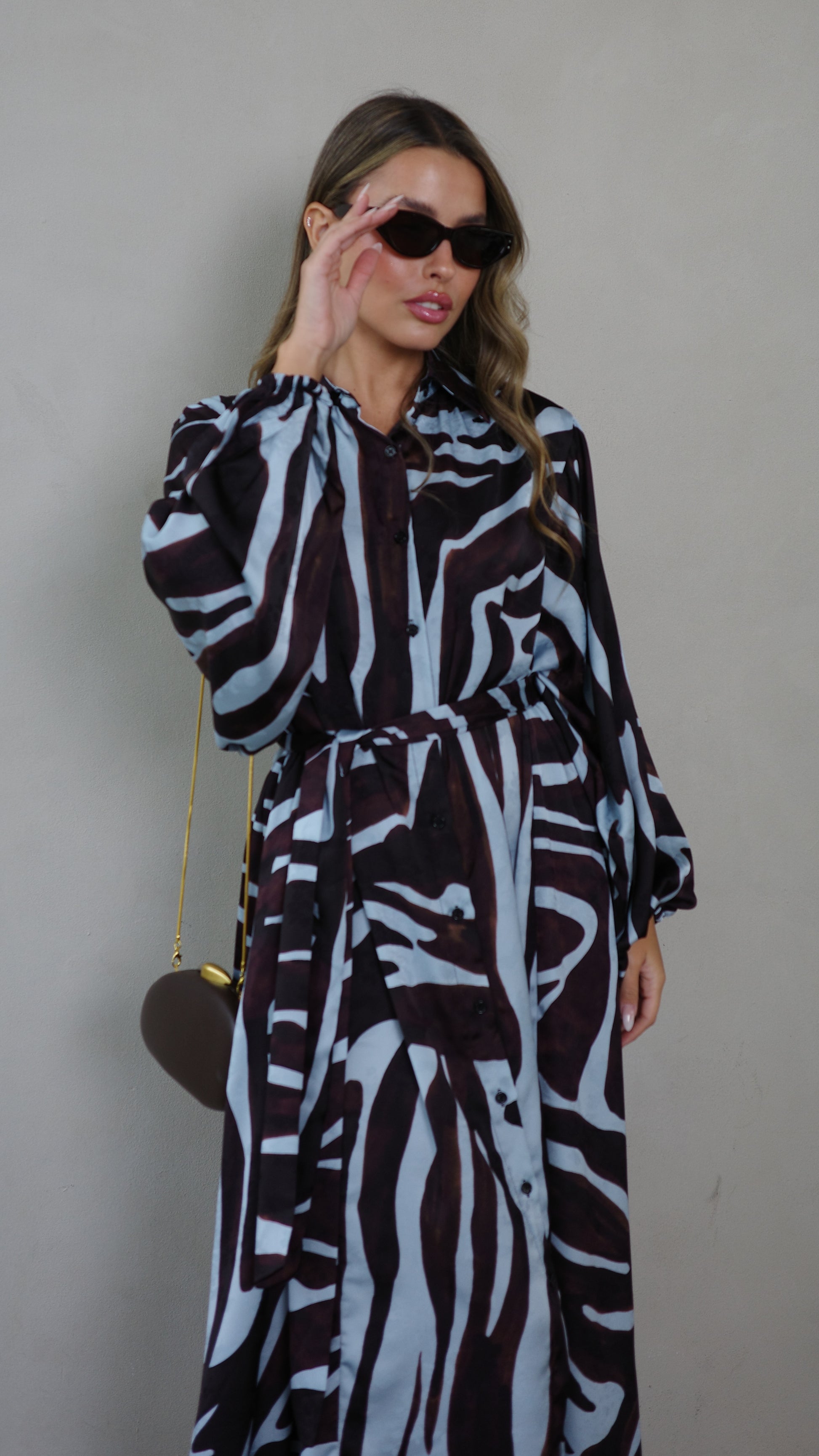 שמלת מקסי אוברסייז כפתורים שארלוט | חום/תכלת