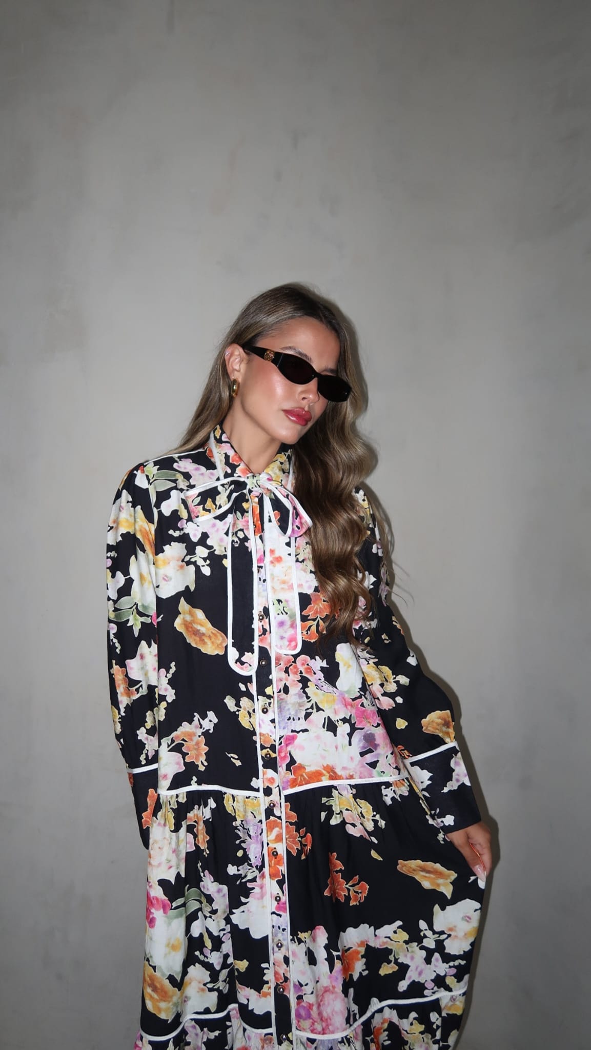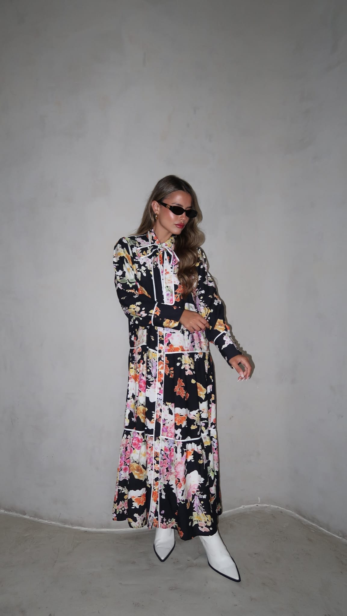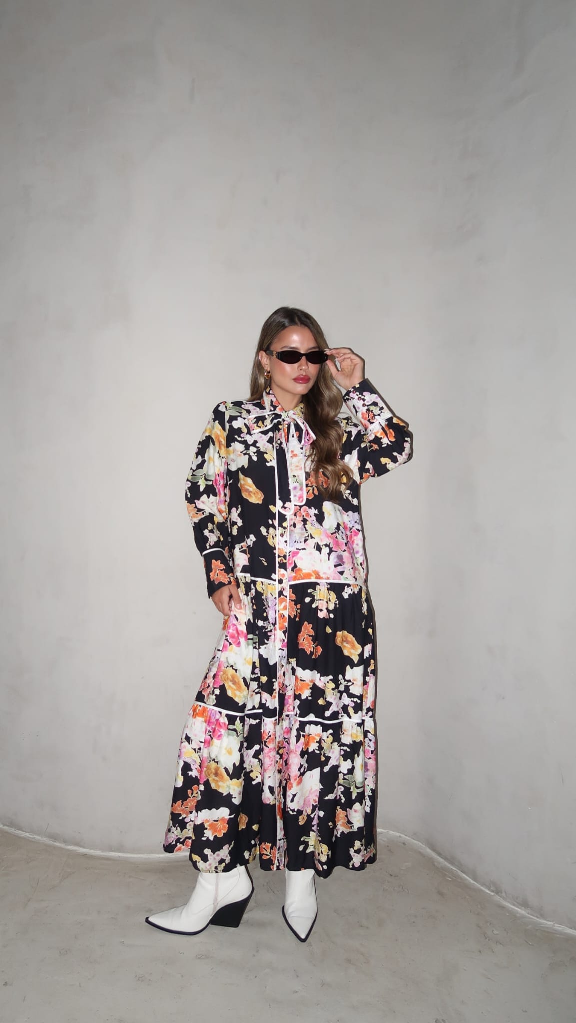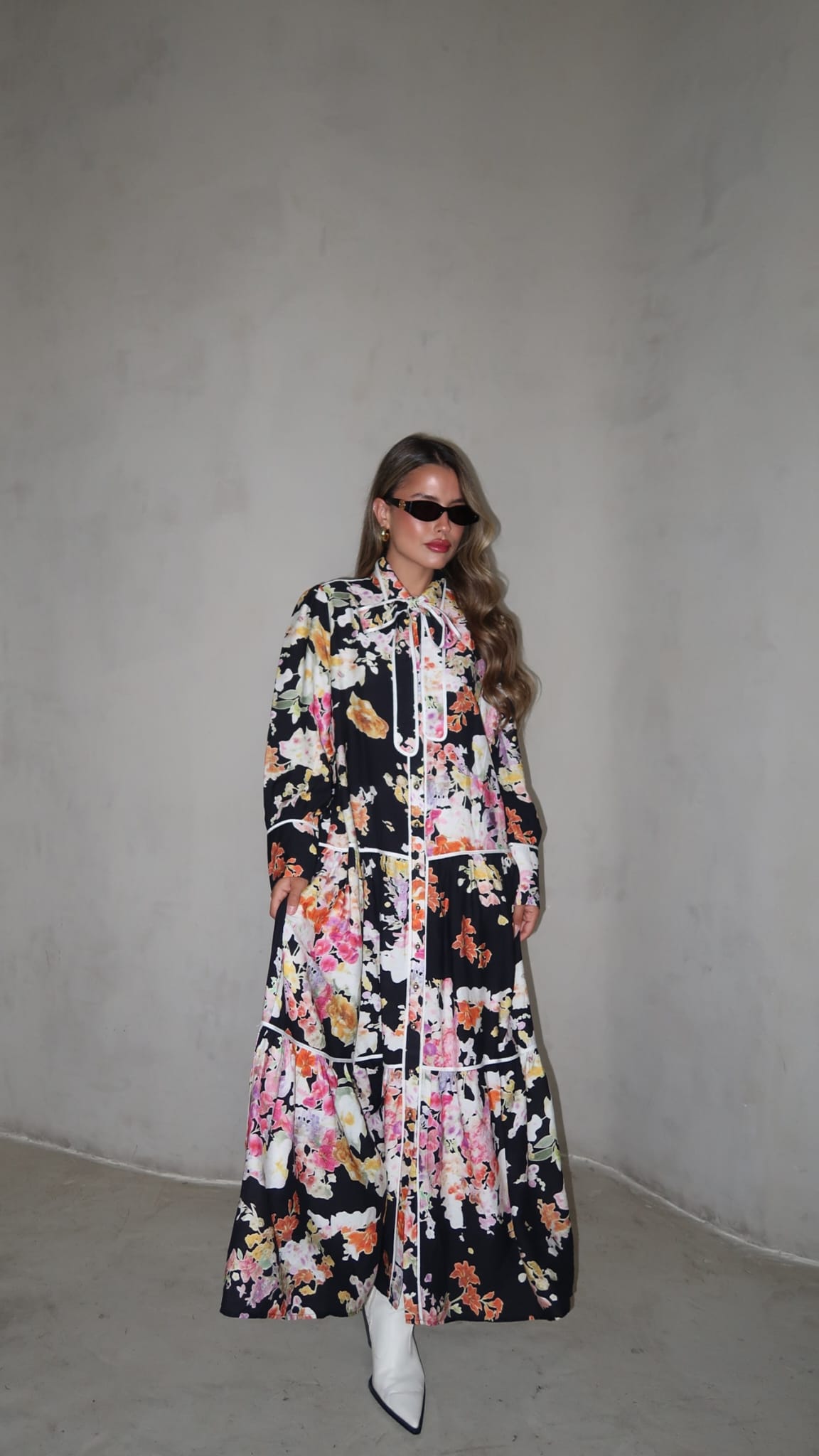 שמלת קלוש כפתורים קומות ונציה | שחור