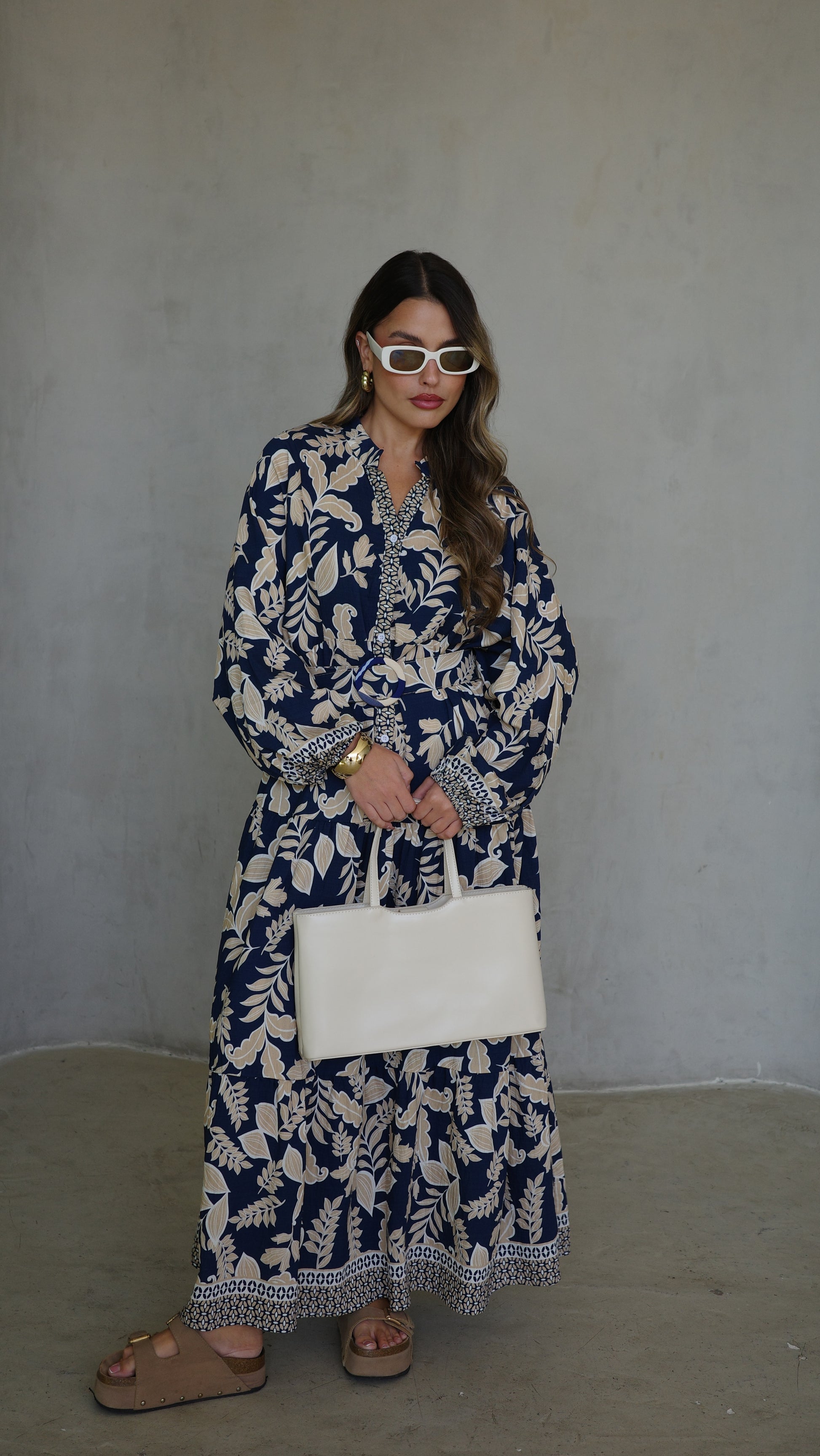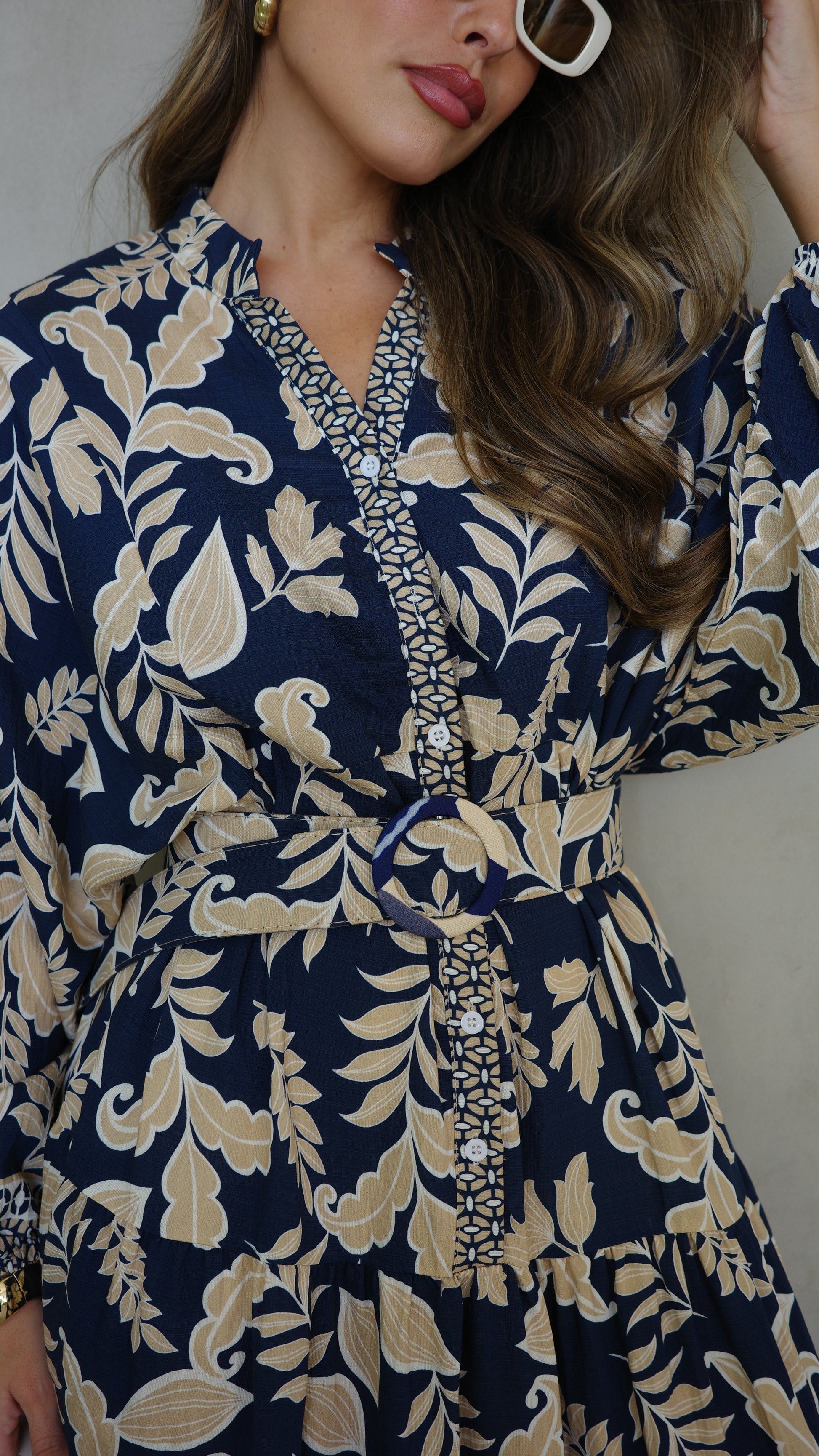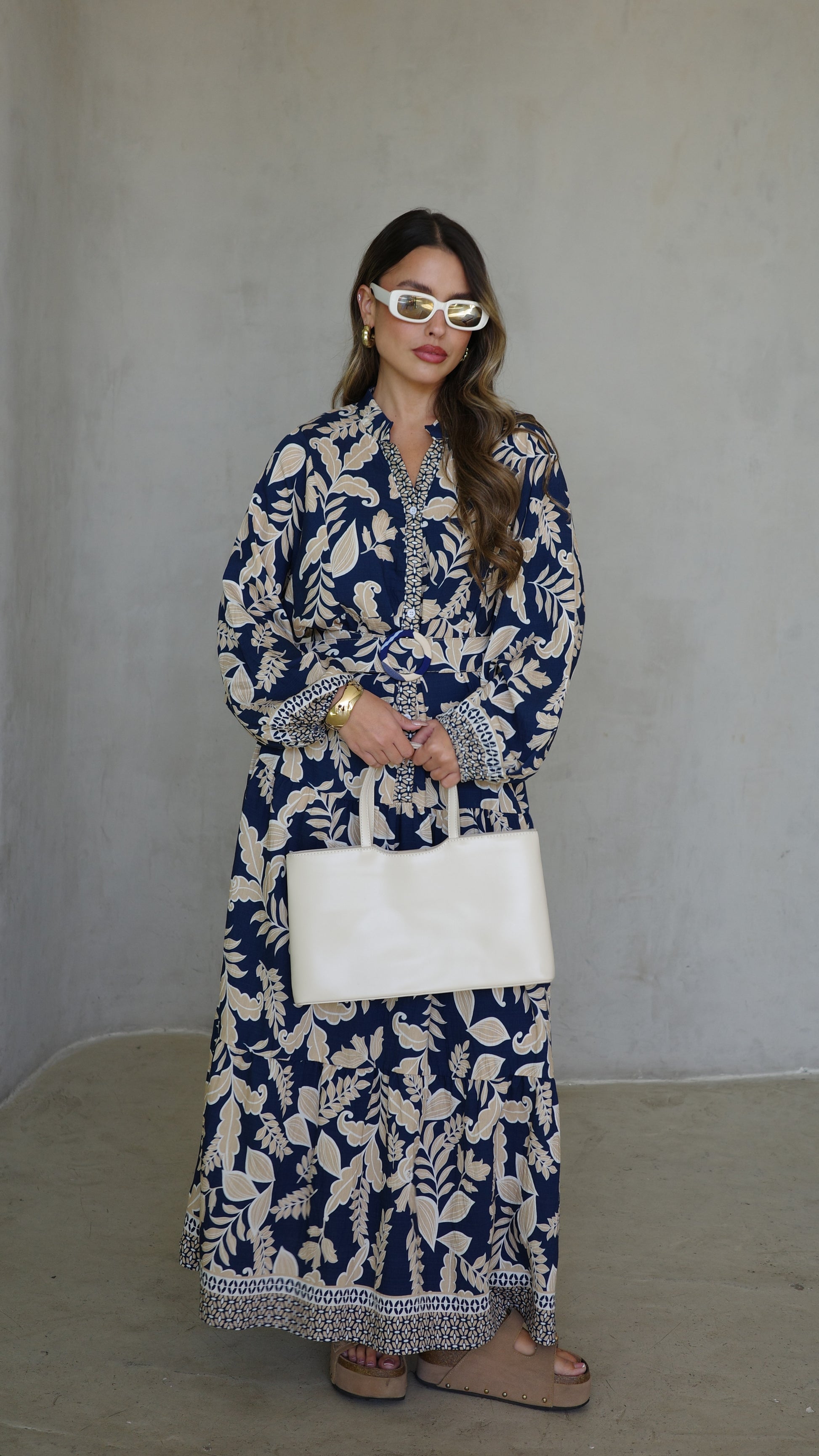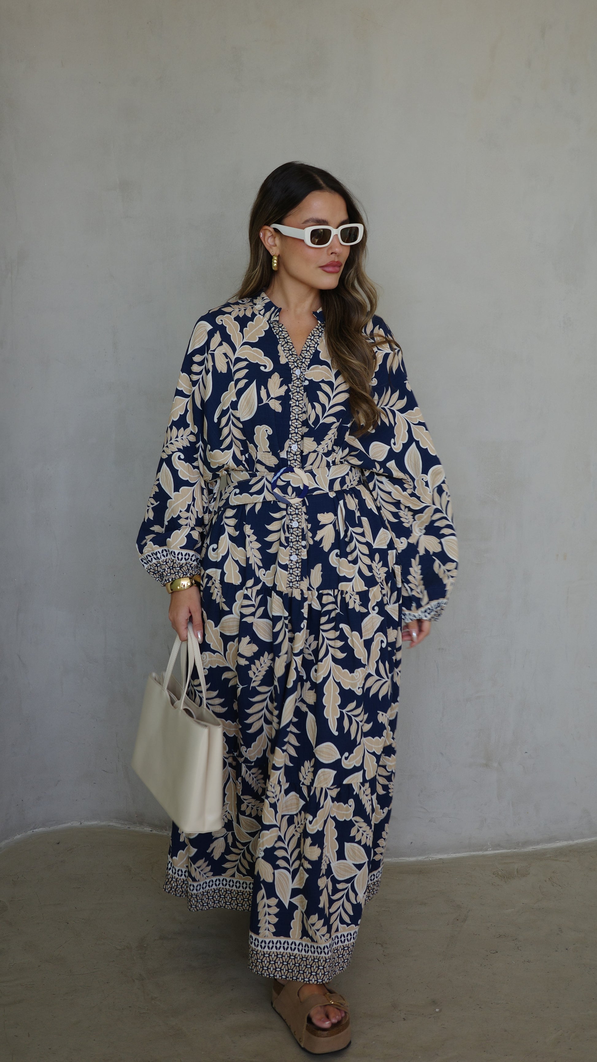 שמלת גלביה מבד ויסקוזה/כותנה איכותי ונעים, משולב דפוס אופנתי