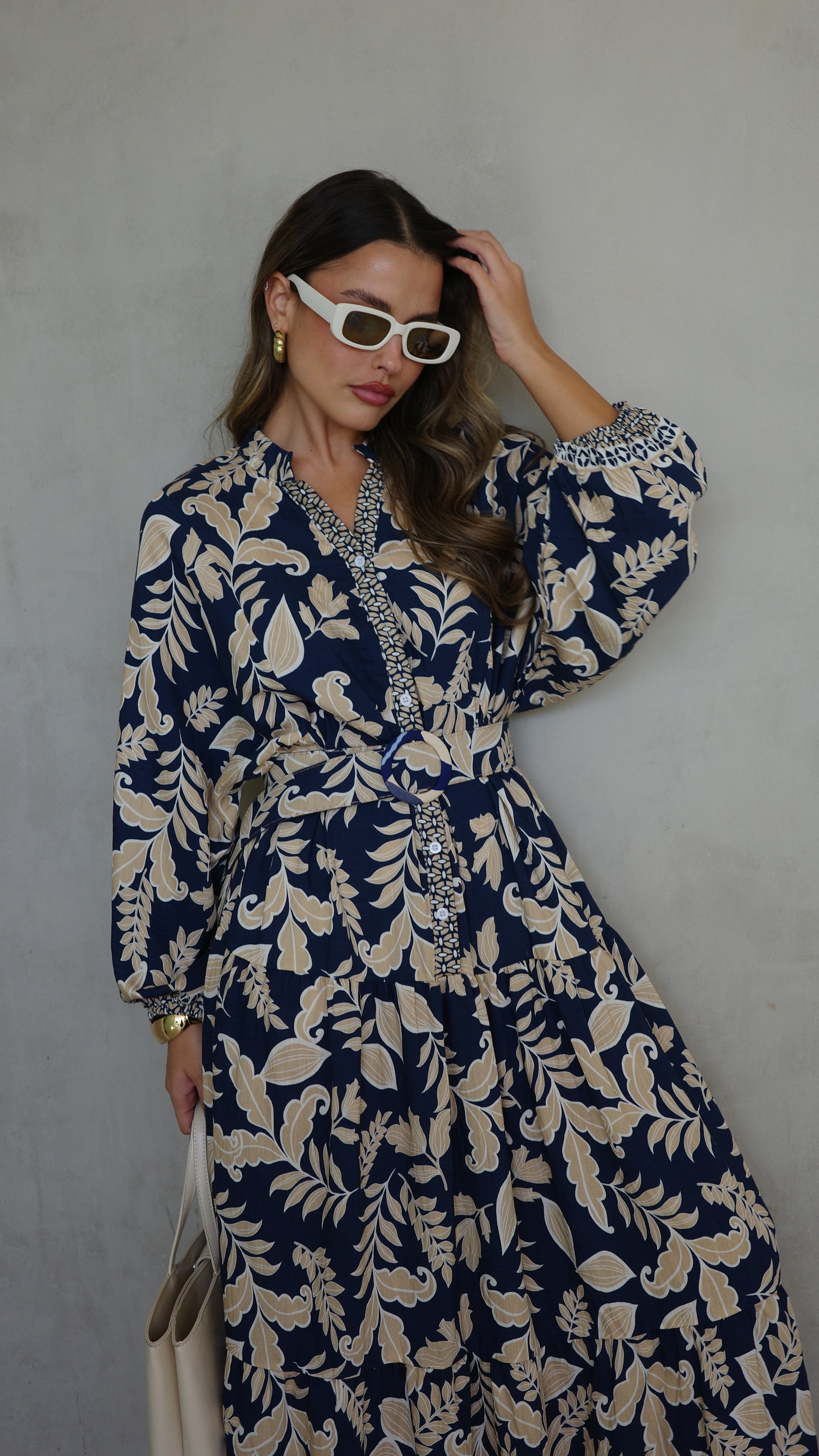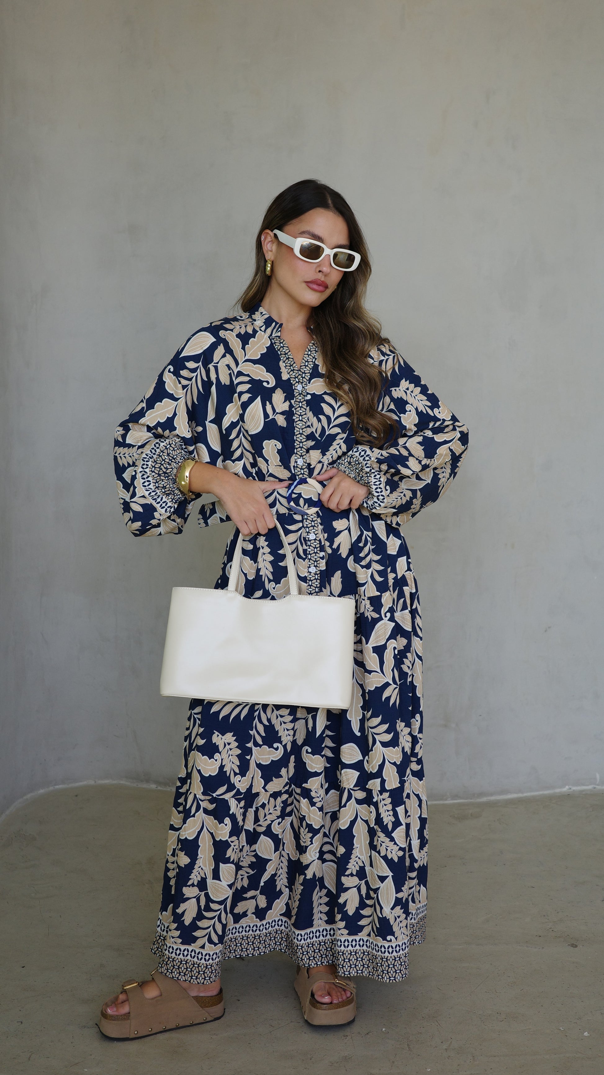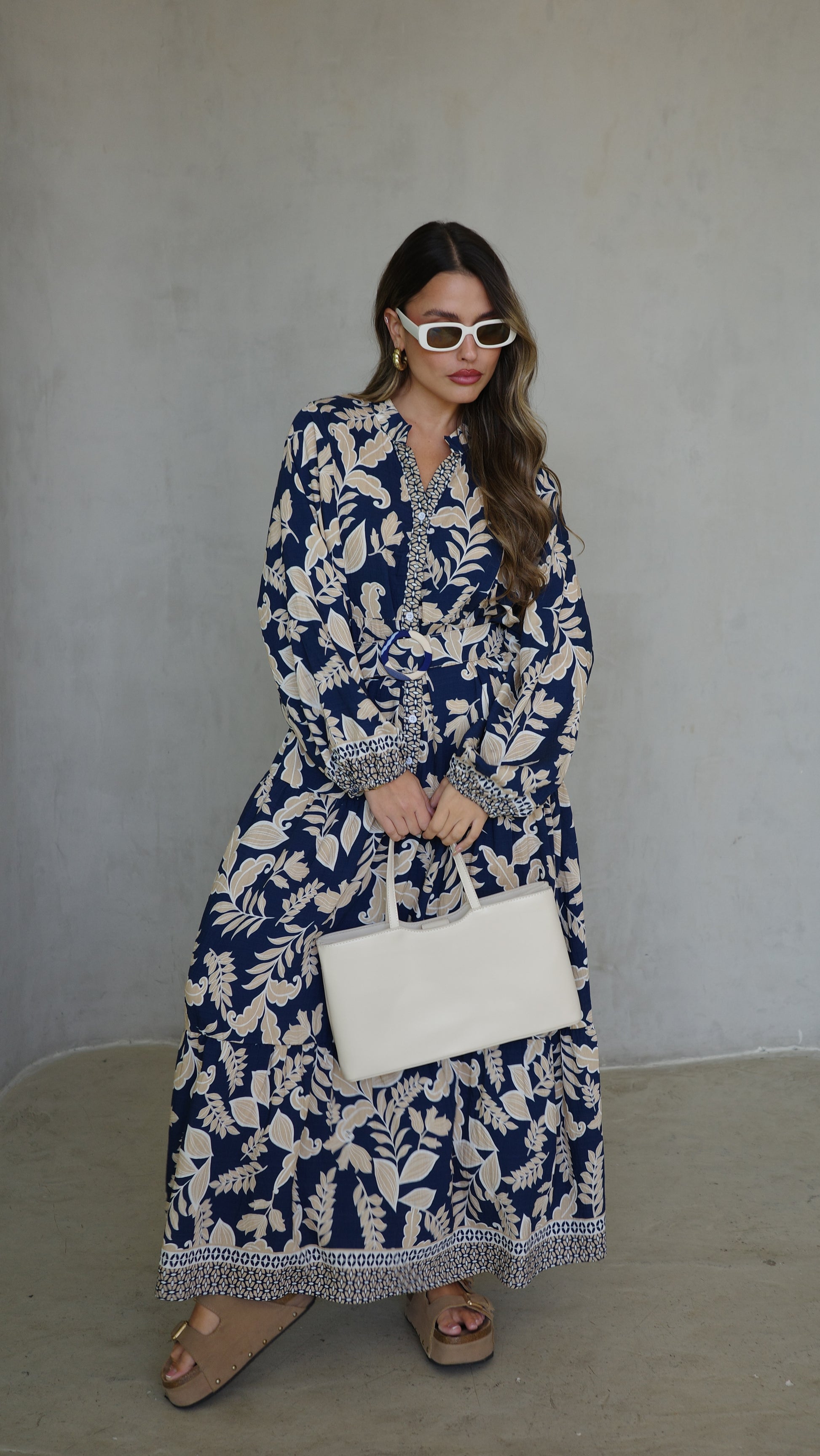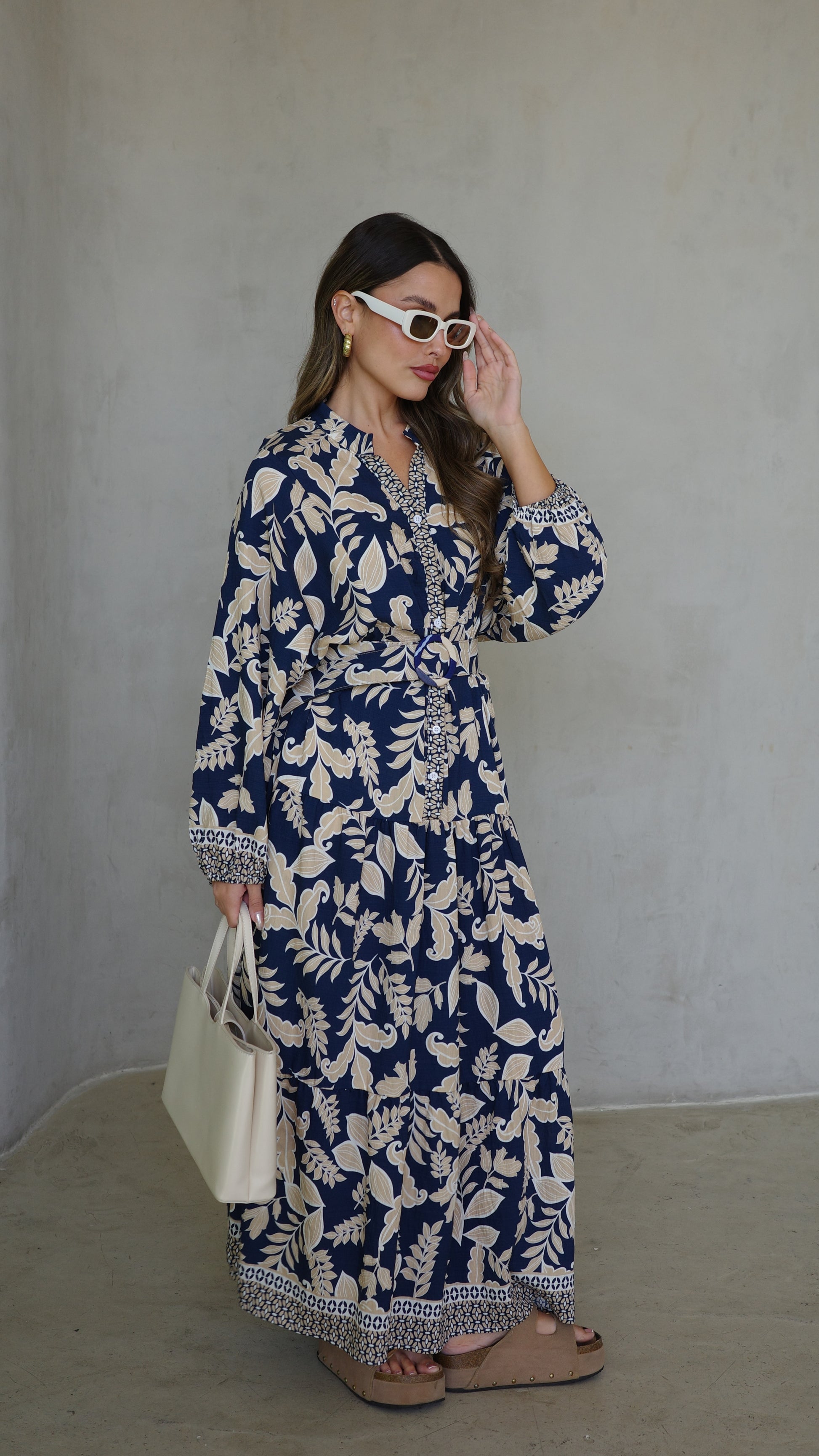 שמלת גלביה מבד ויסקוזה/כותנה איכותי ונעים, משולב דפוס אופנתי