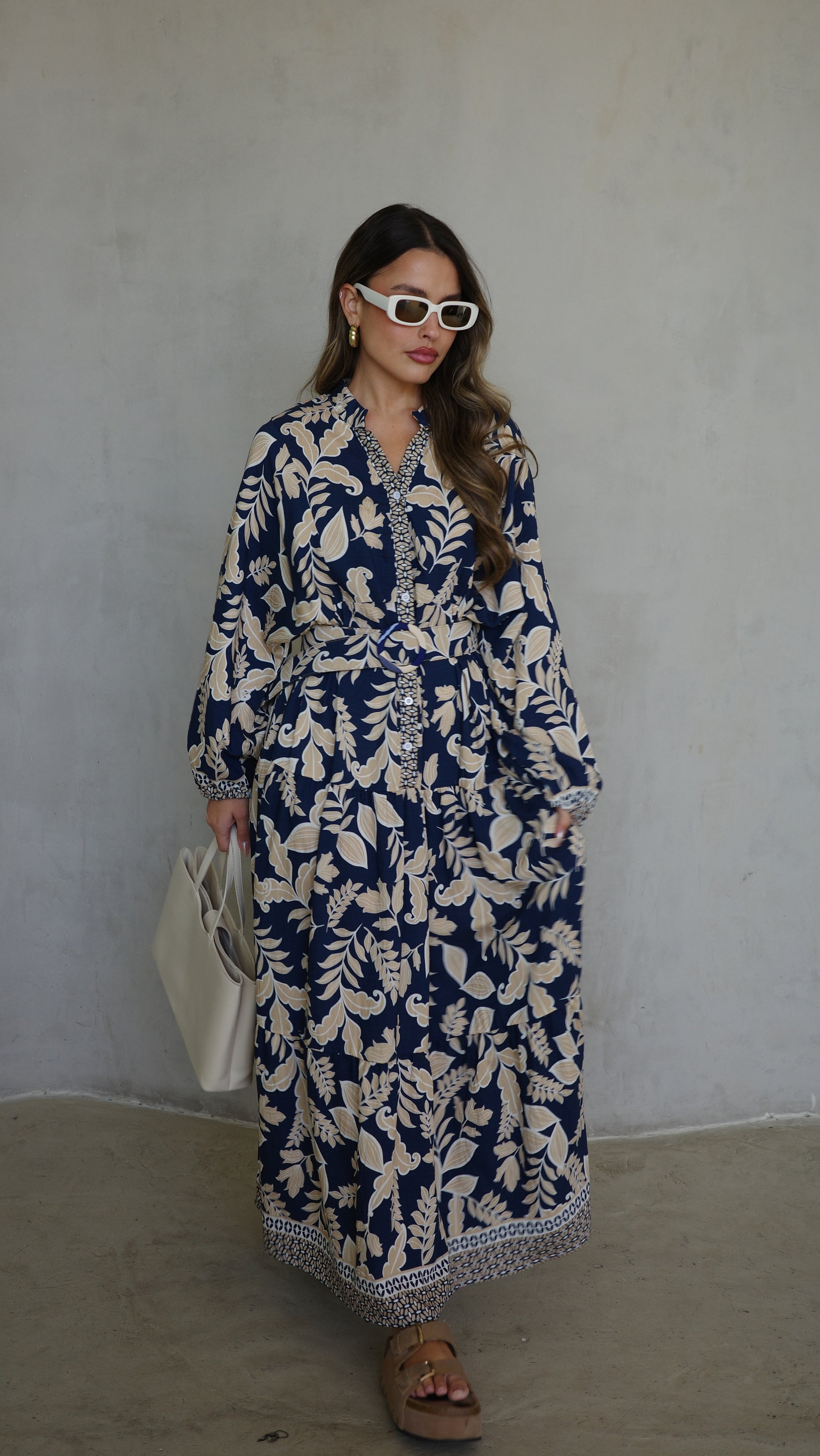 גלביה קומות כפתורים חגורה אמנואל | כחול/בז