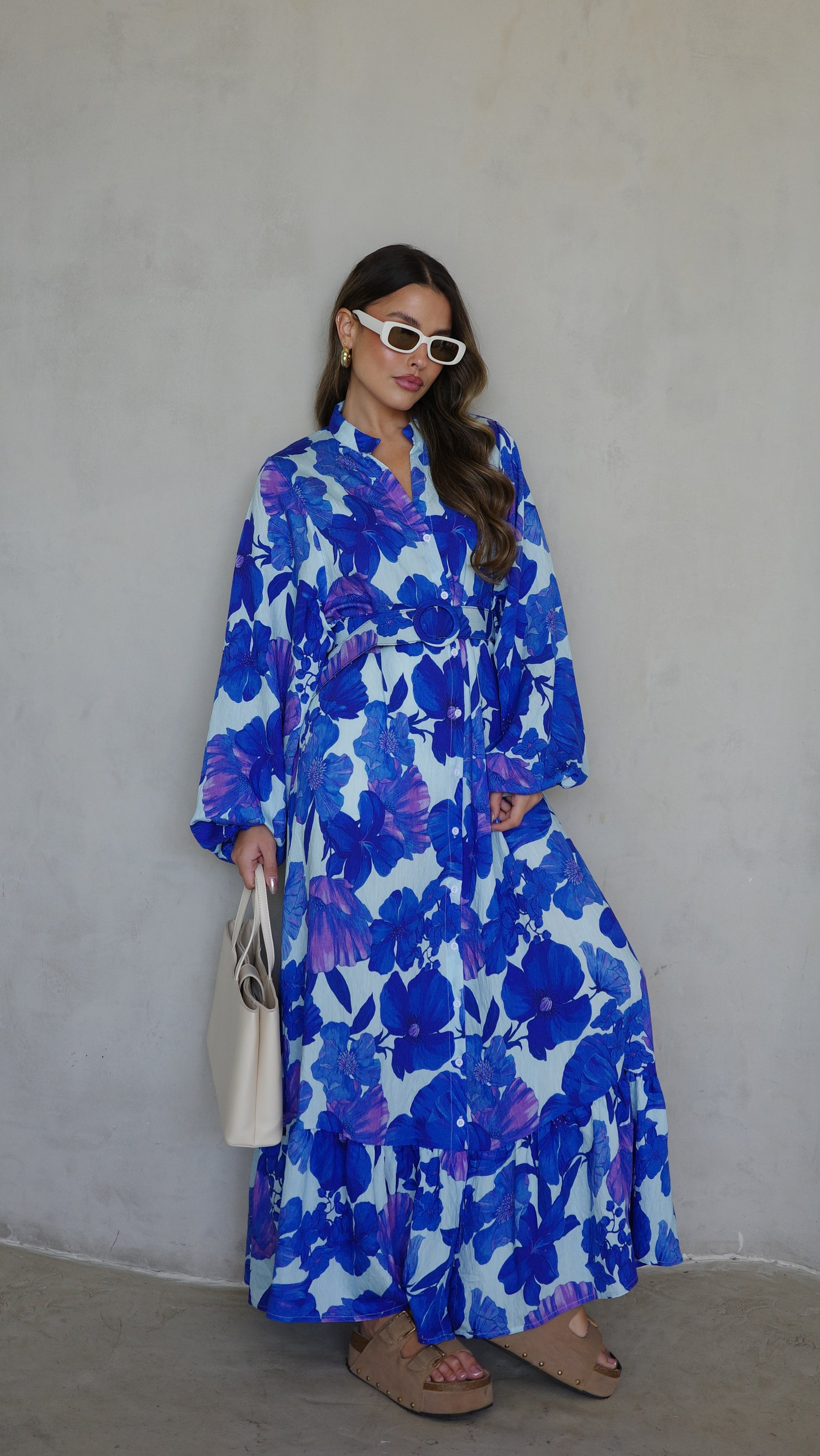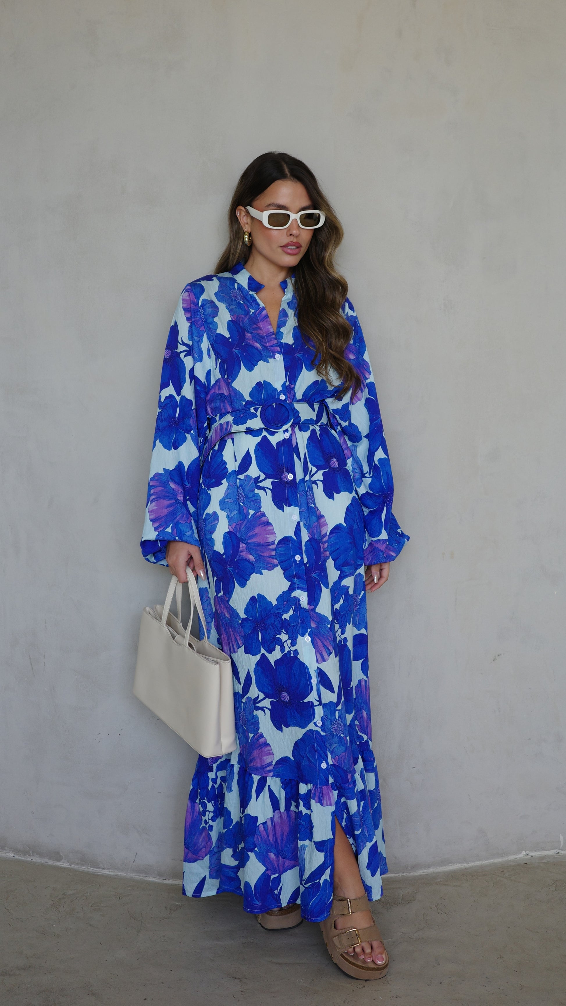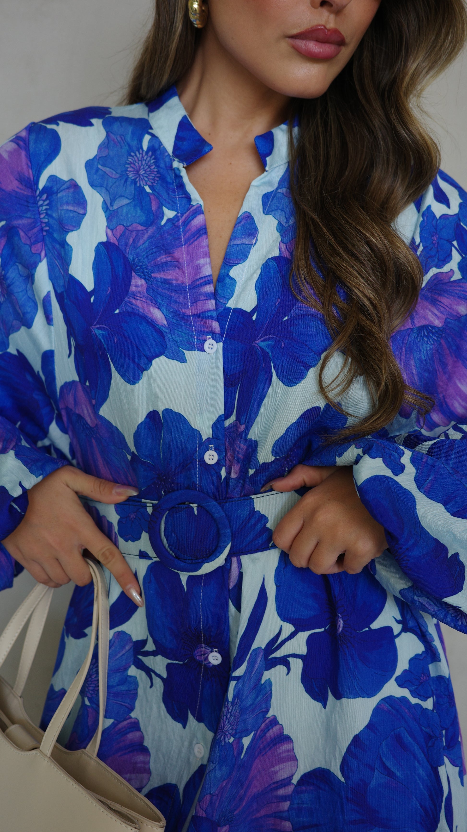 גלביה קומות כפתורים חגורה אנדריאה | תכלת/כחול