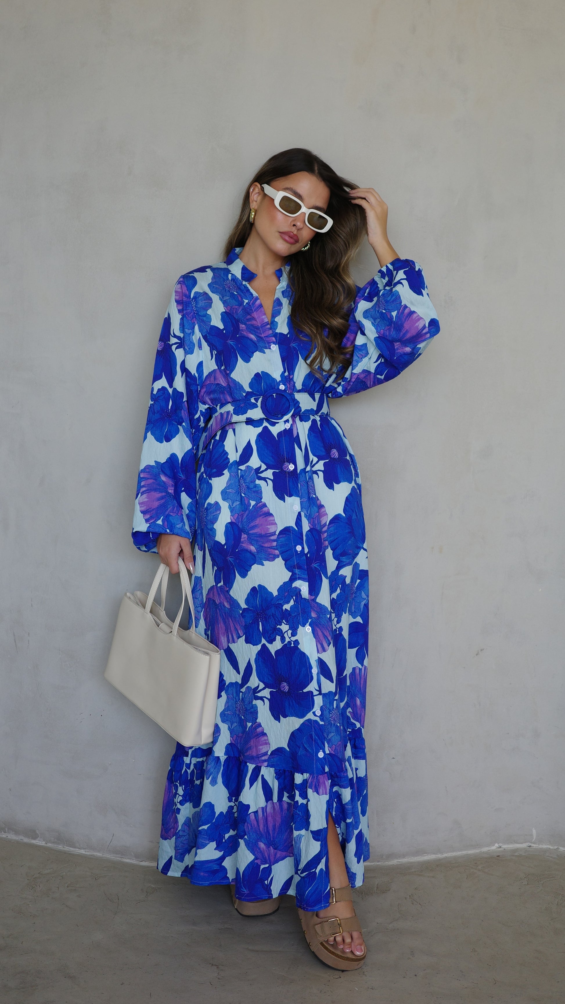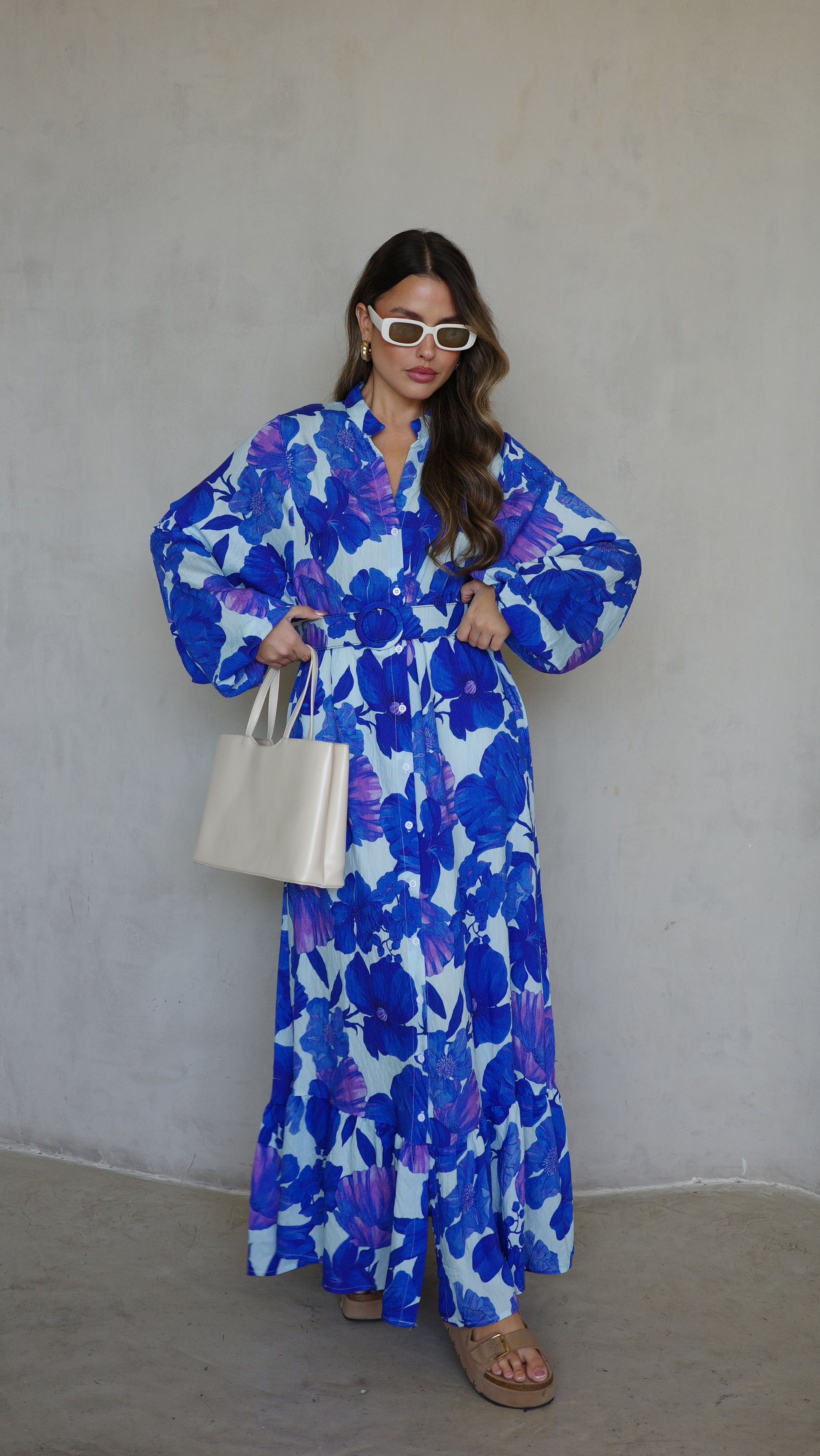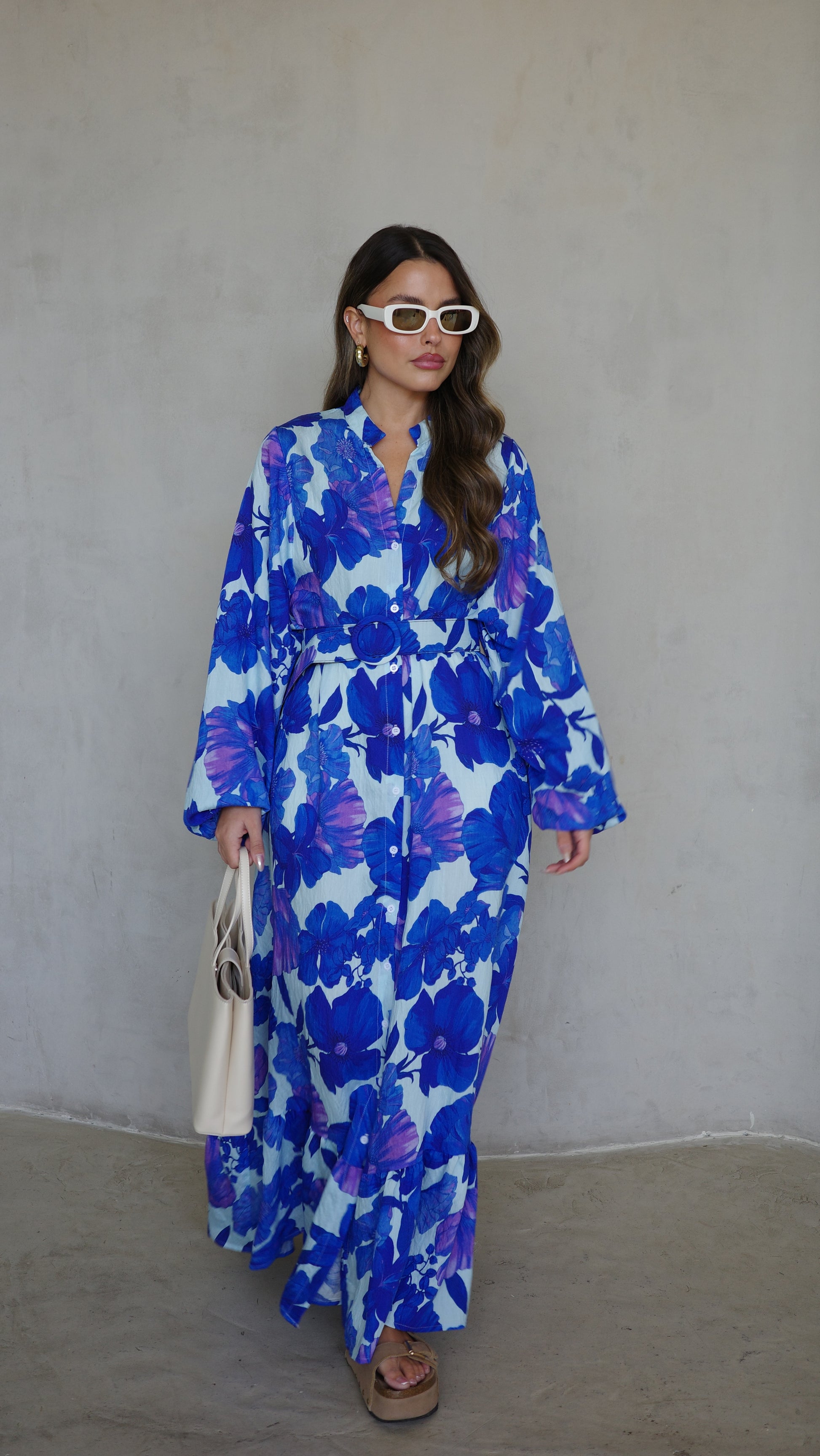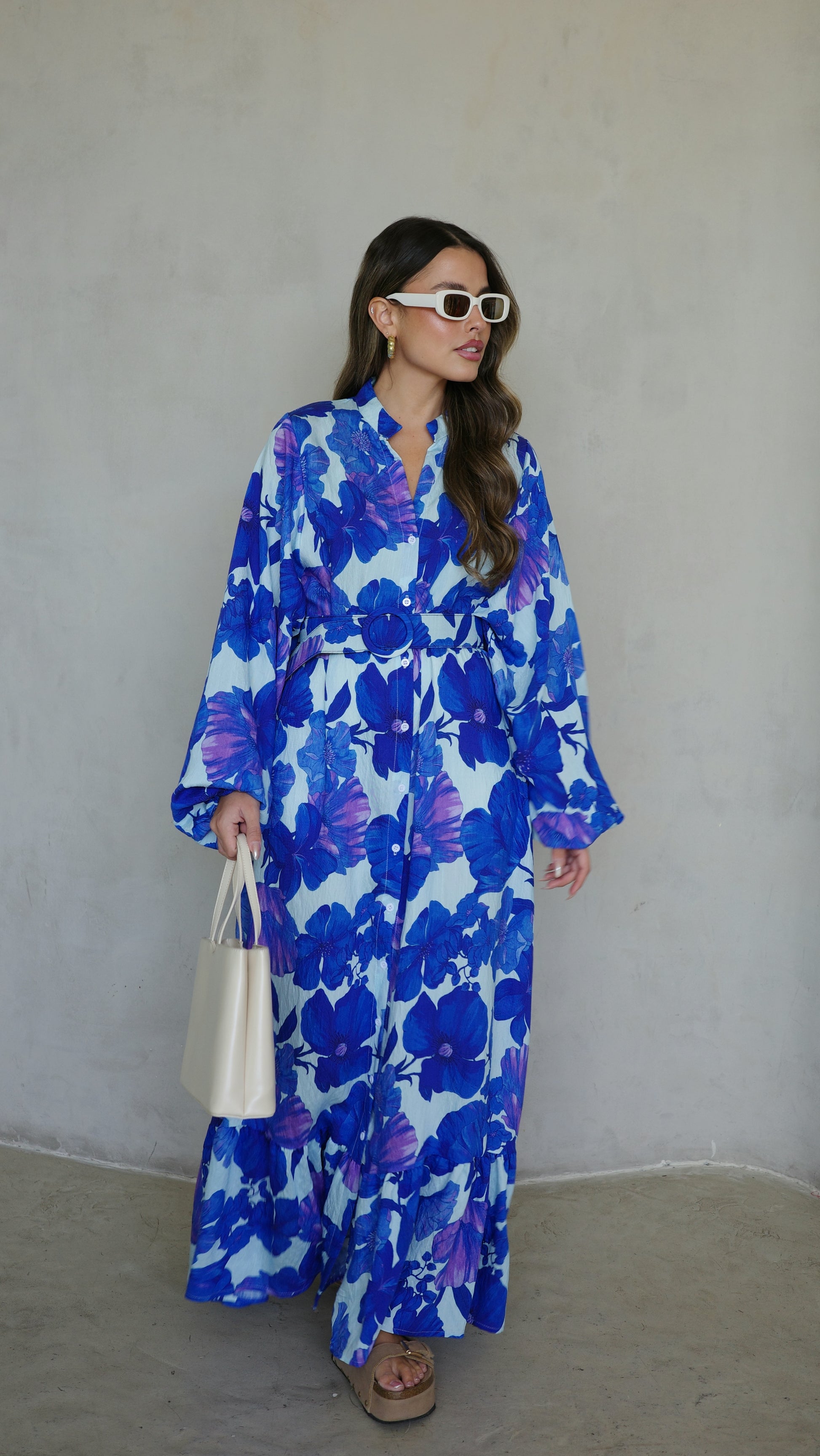גלביה קומות כפתורים חגורה אנדריאה | תכלת/כחול