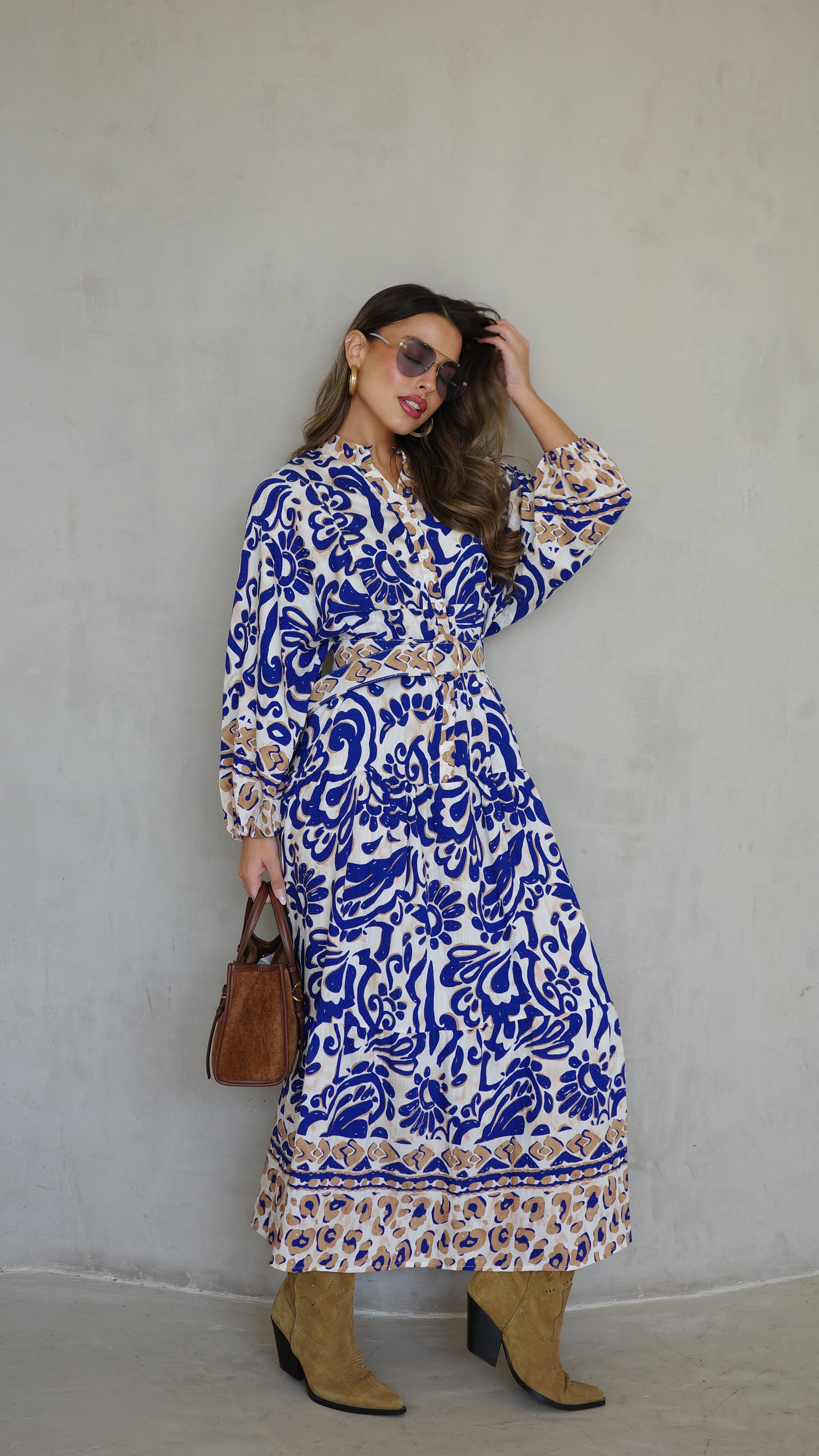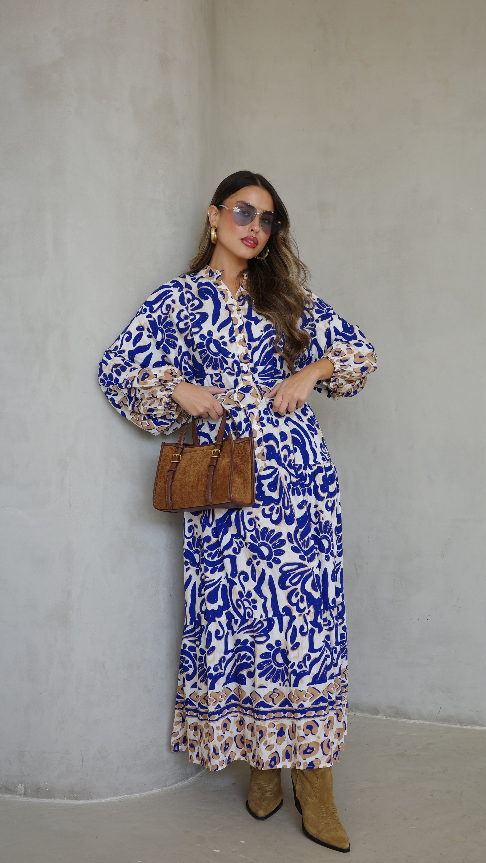 שמלת גלביה מבד ויסקוזה/כותנה איכותי ונעים, משולב דפוס אופנתי