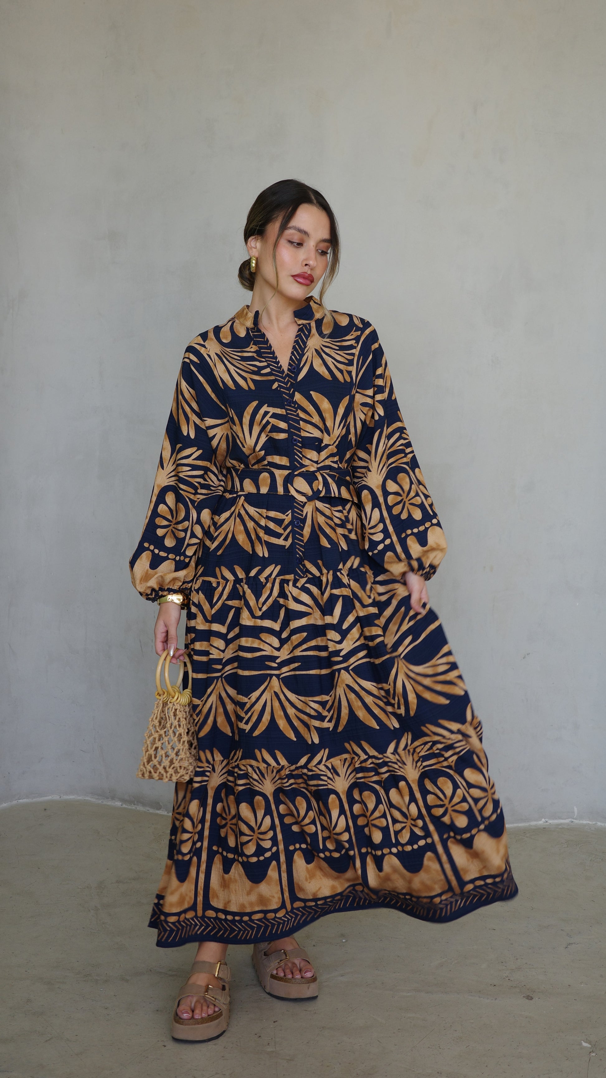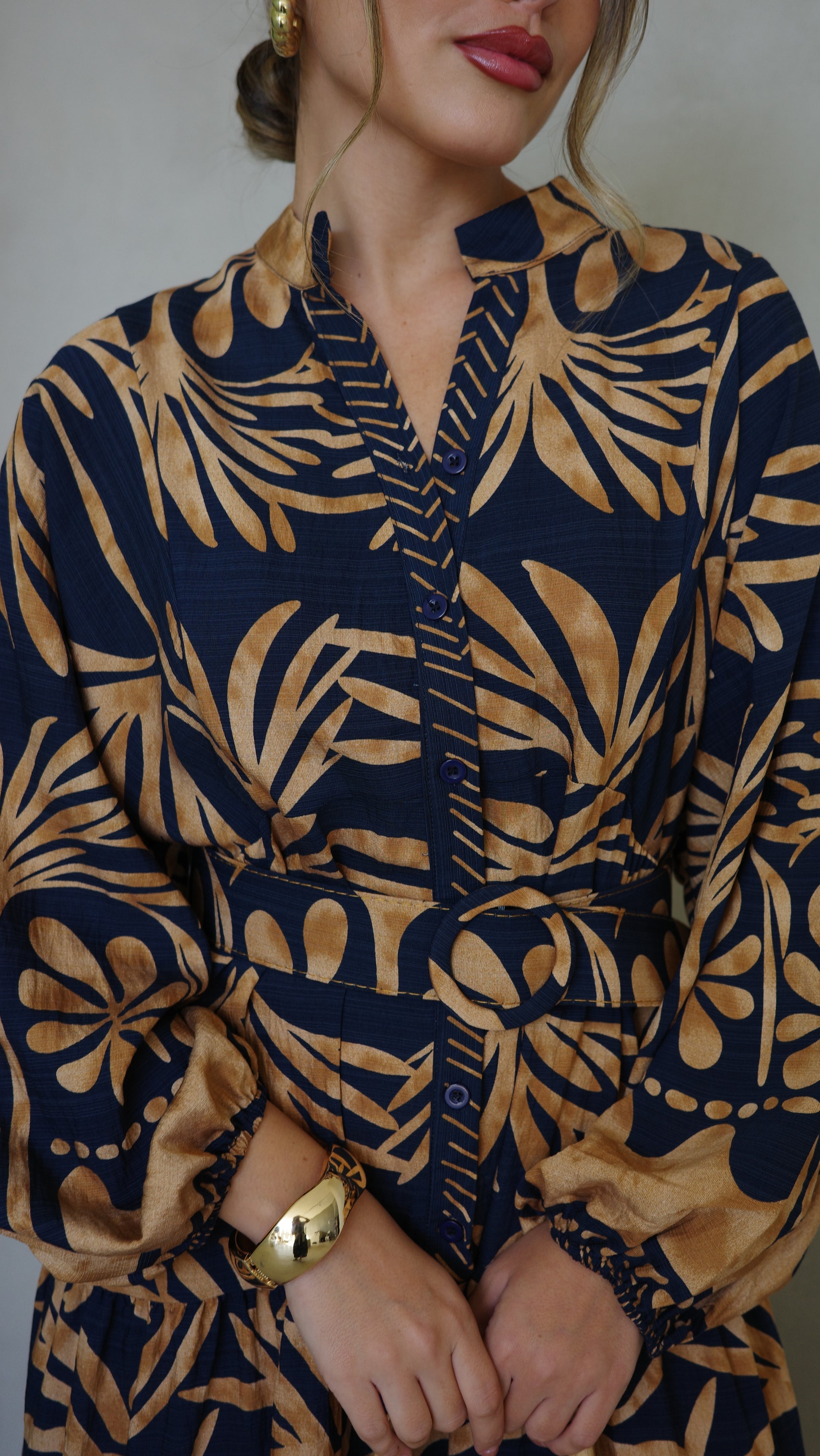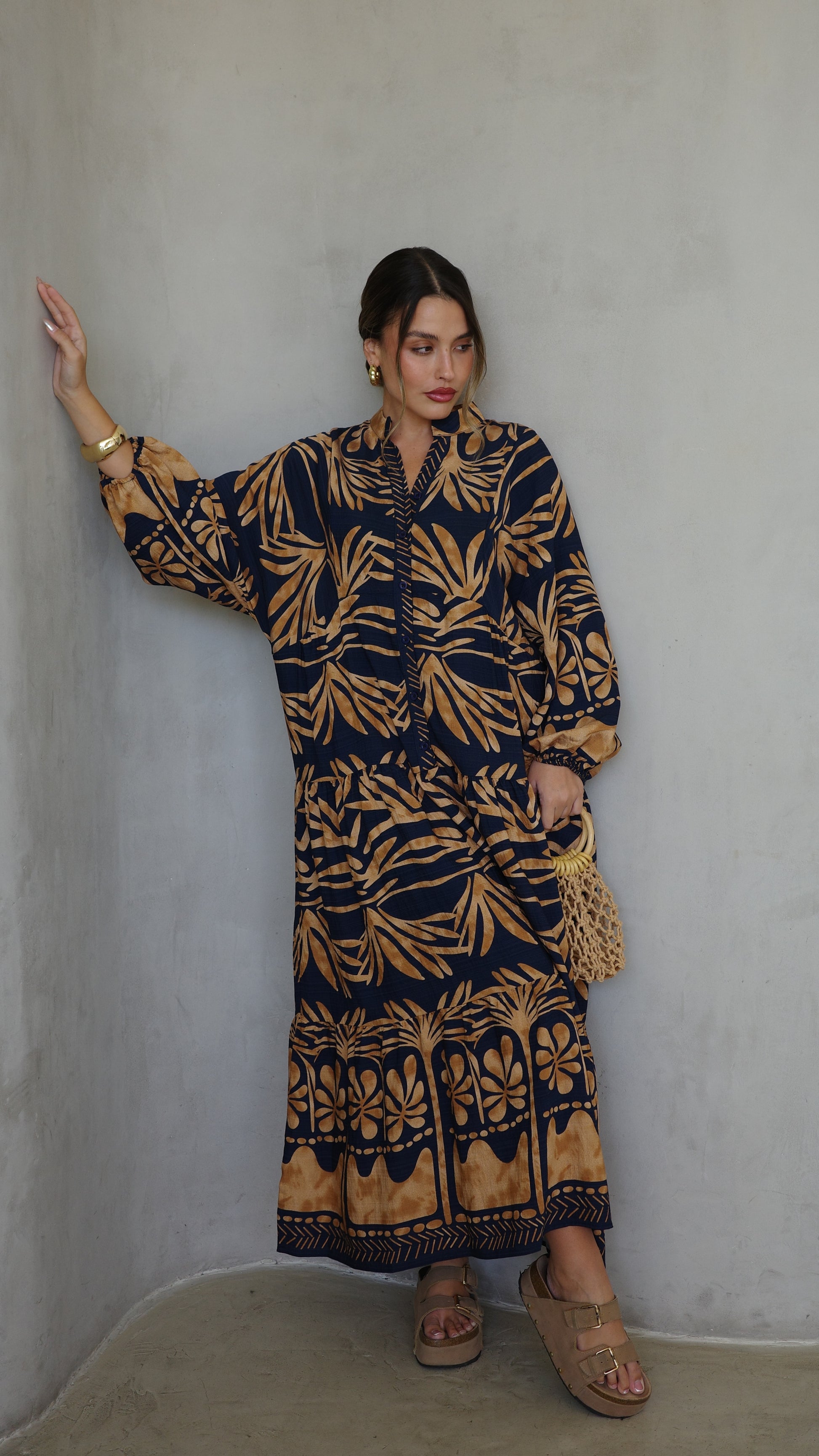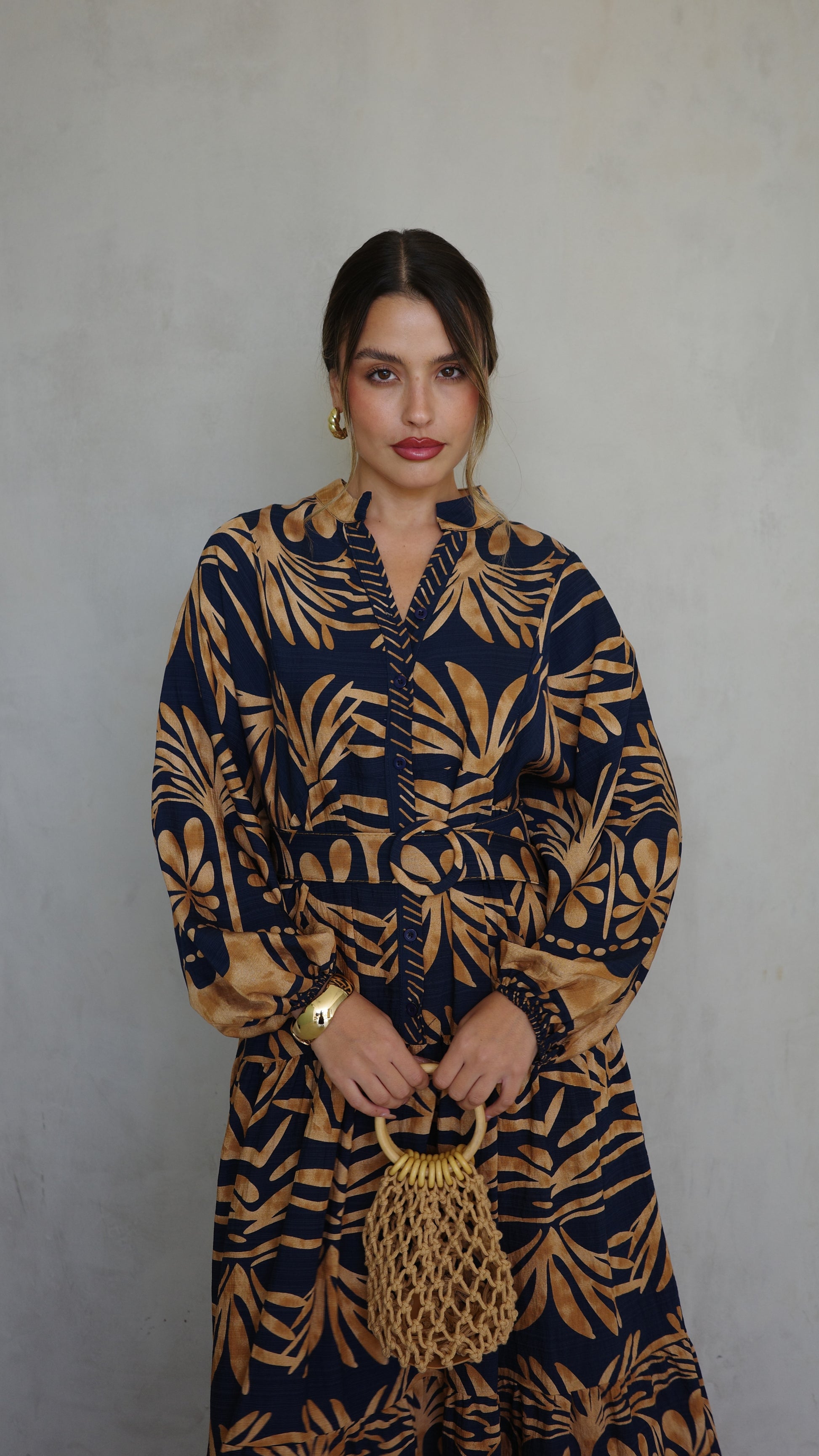 שמלת גלביה מבד ויסקוזה/כותנה איכותי ונעים, משולב דפוס אופנתי
