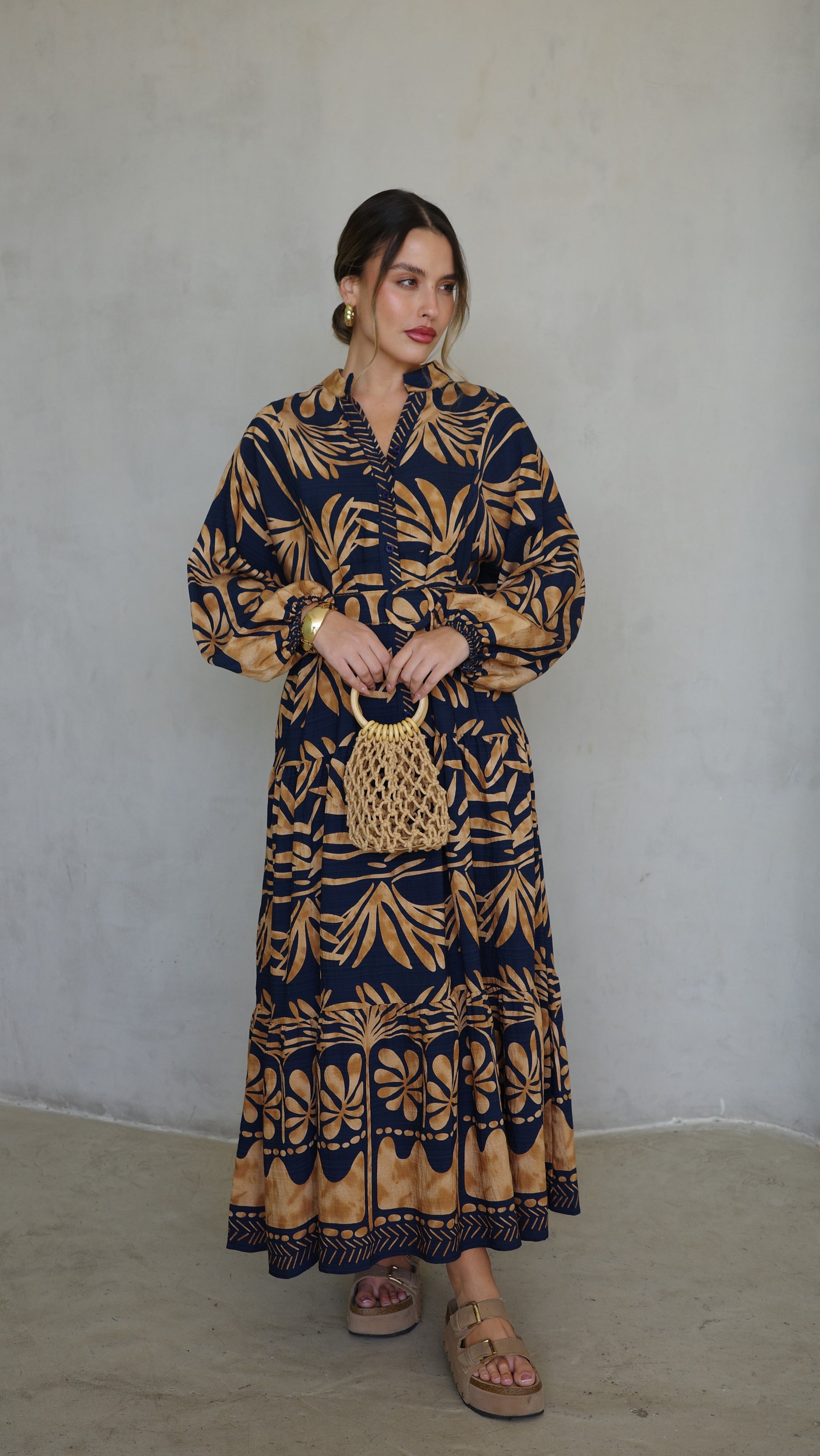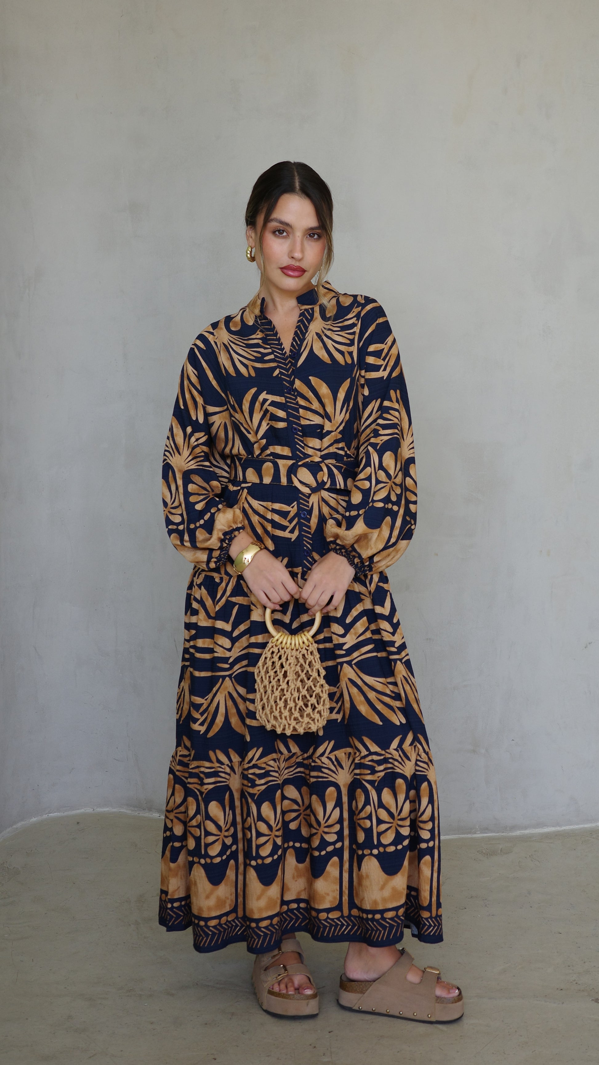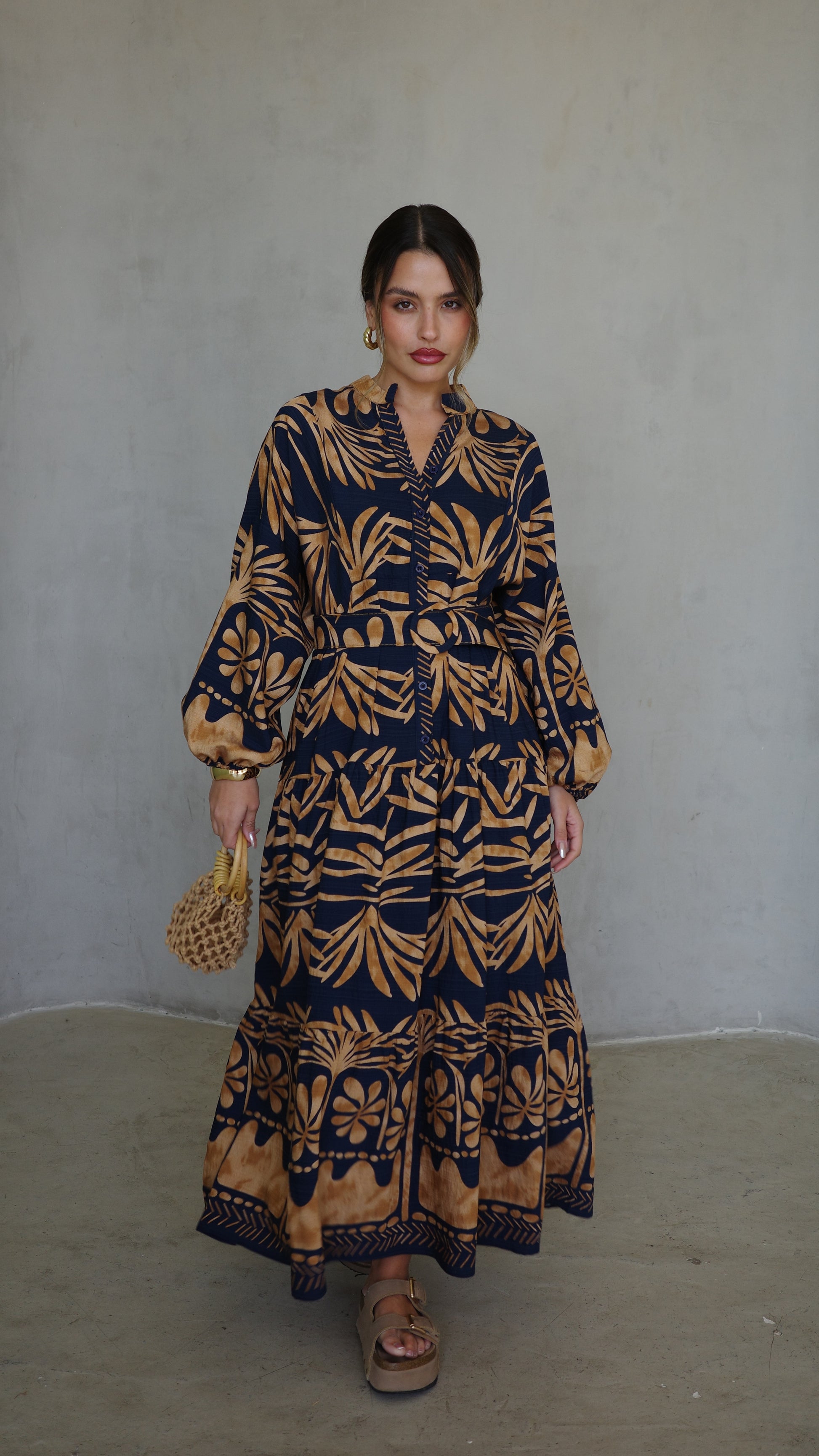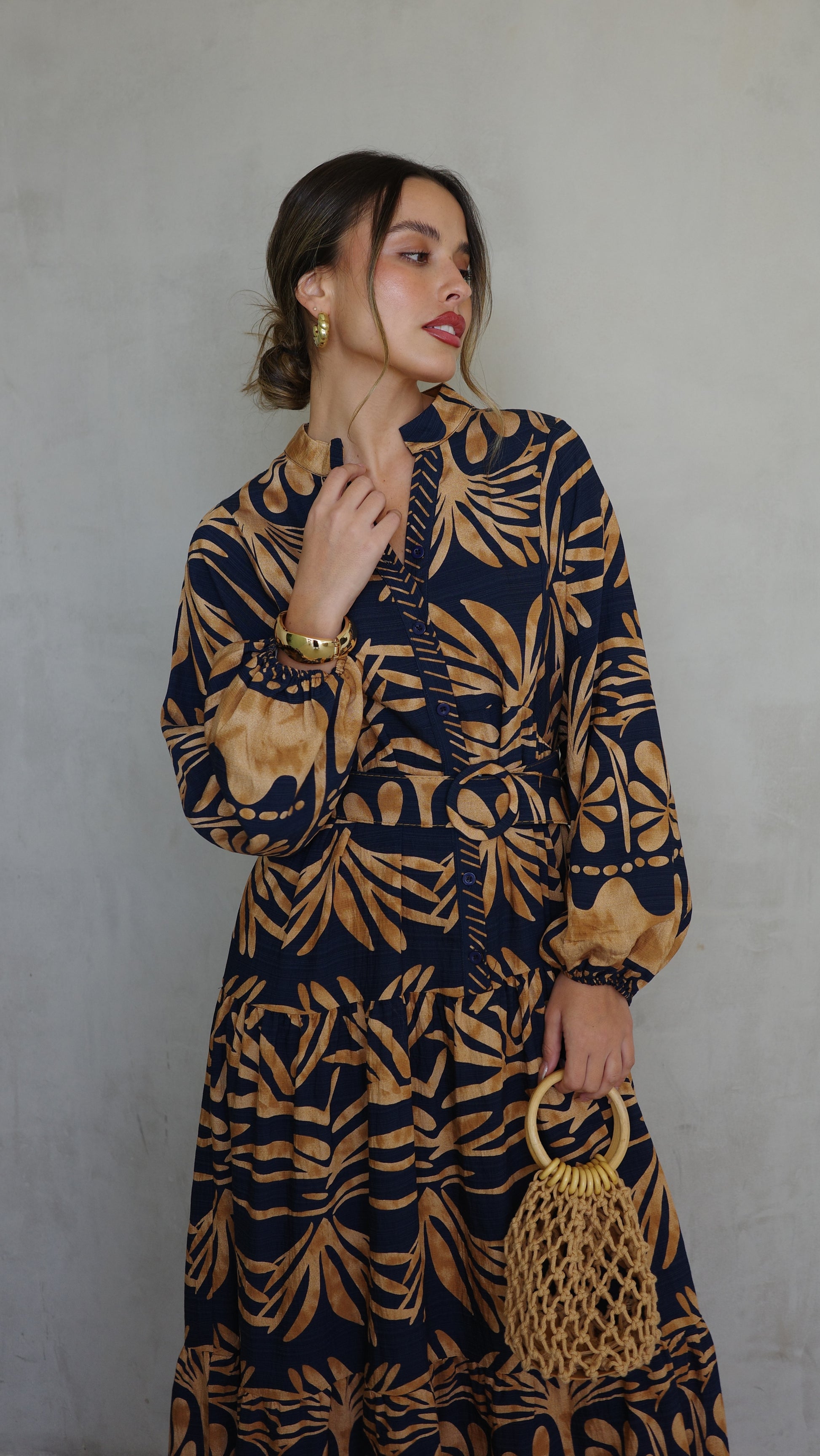 שמלת גלביה מבד ויסקוזה/כותנה איכותי ונעים, משולב דפוס אופנתי