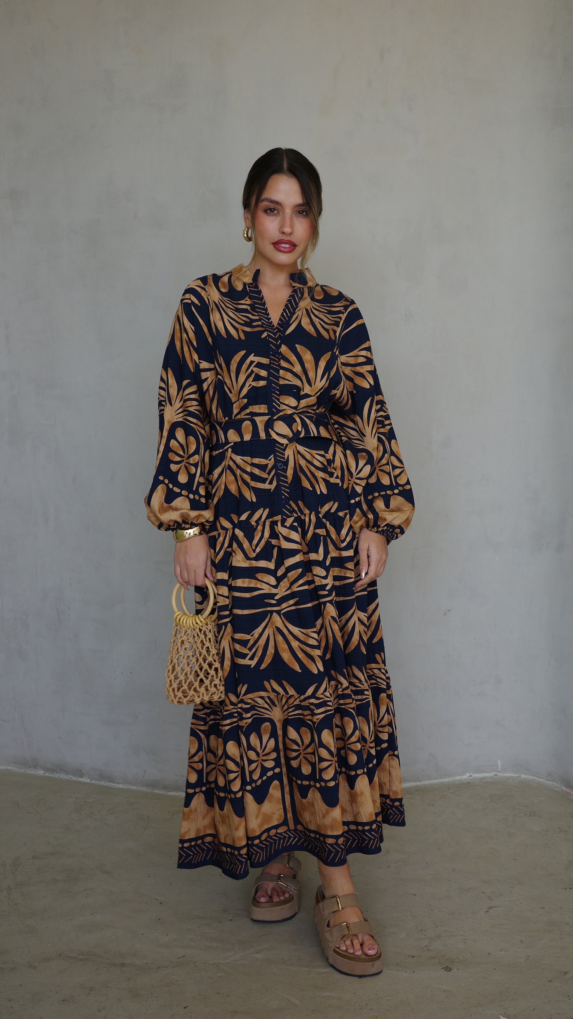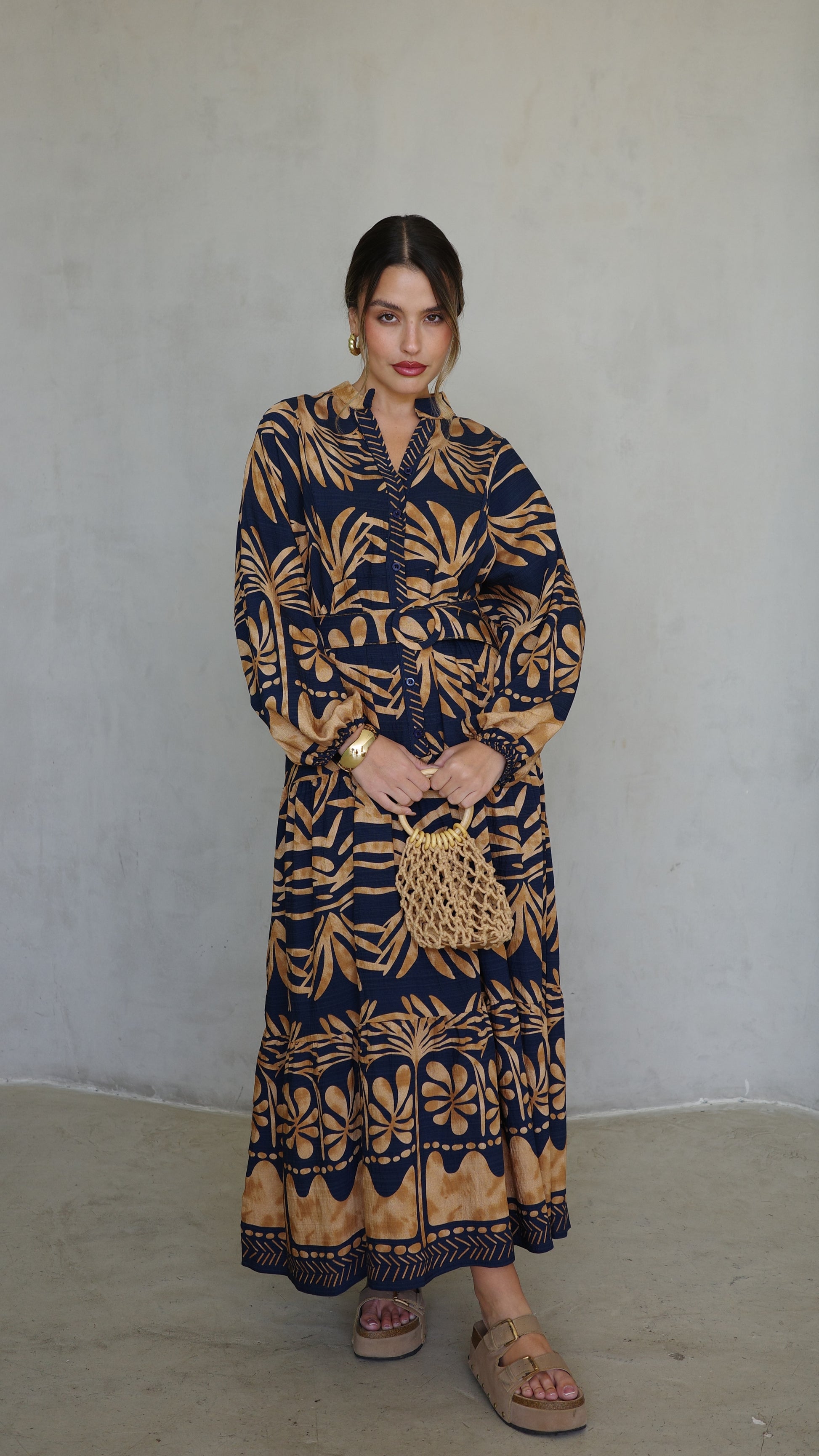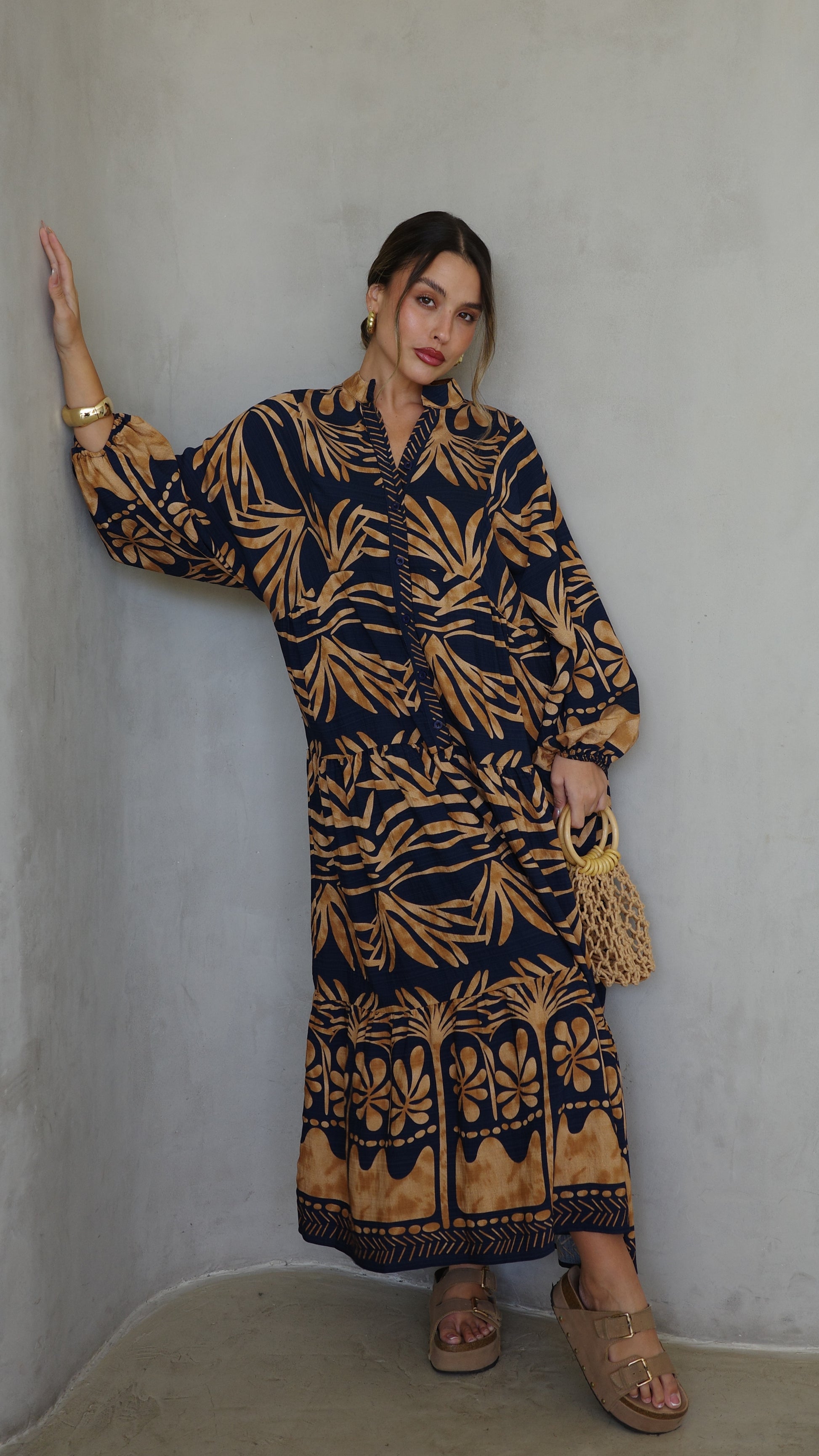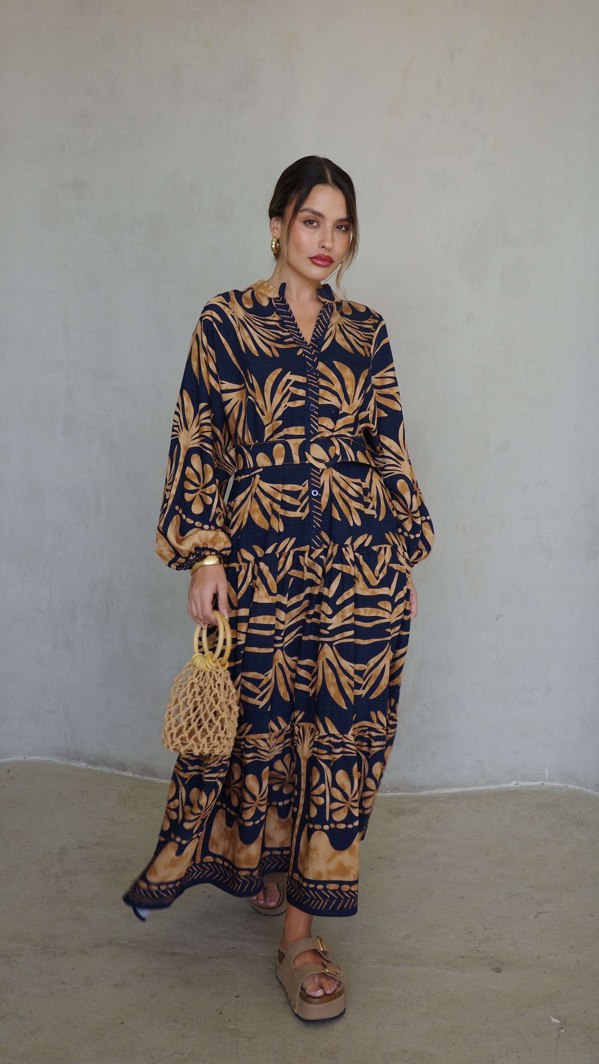 שמלת גלביה מבד ויסקוזה/כותנה איכותי ונעים, משולב דפוס אופנתי