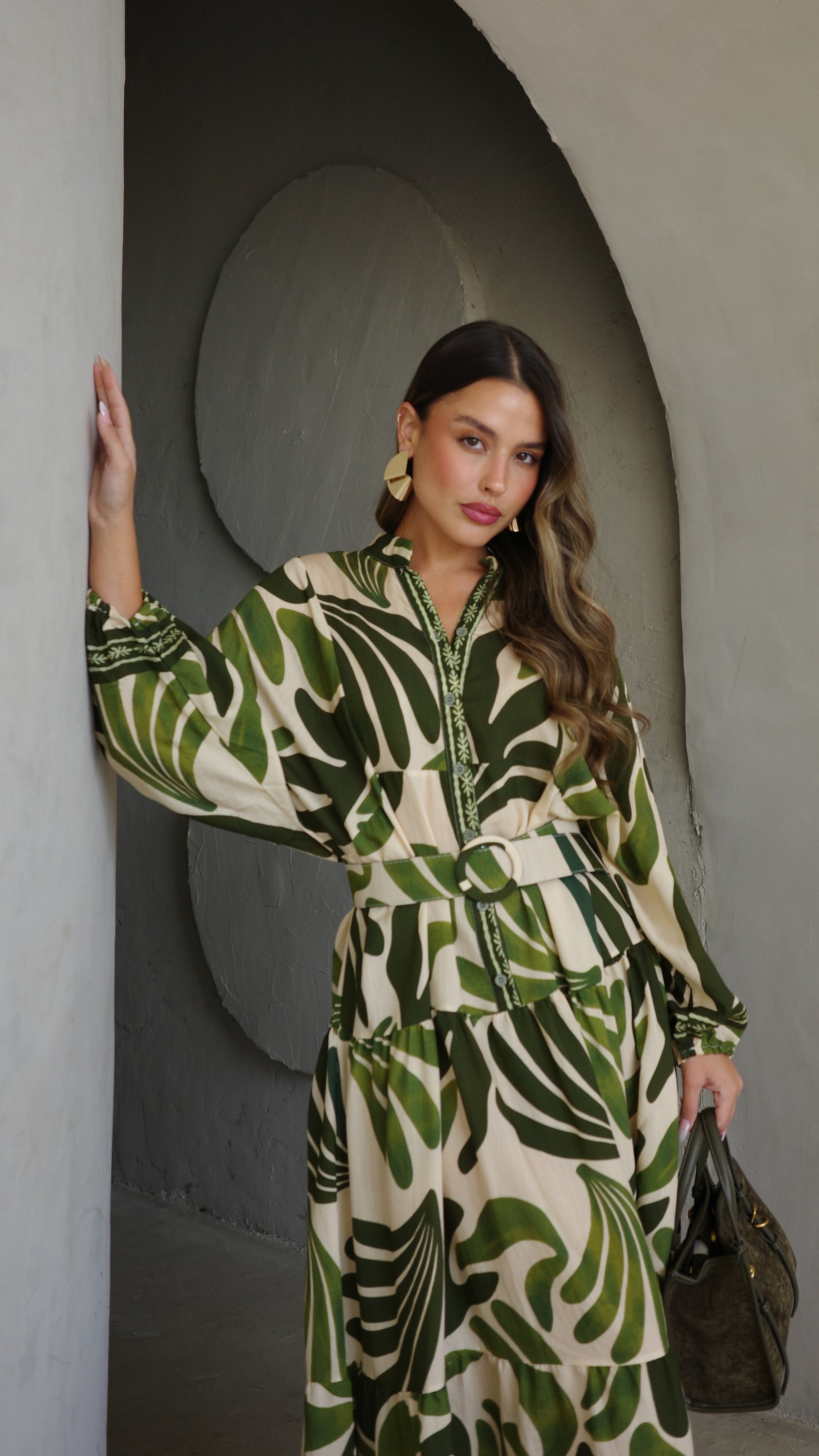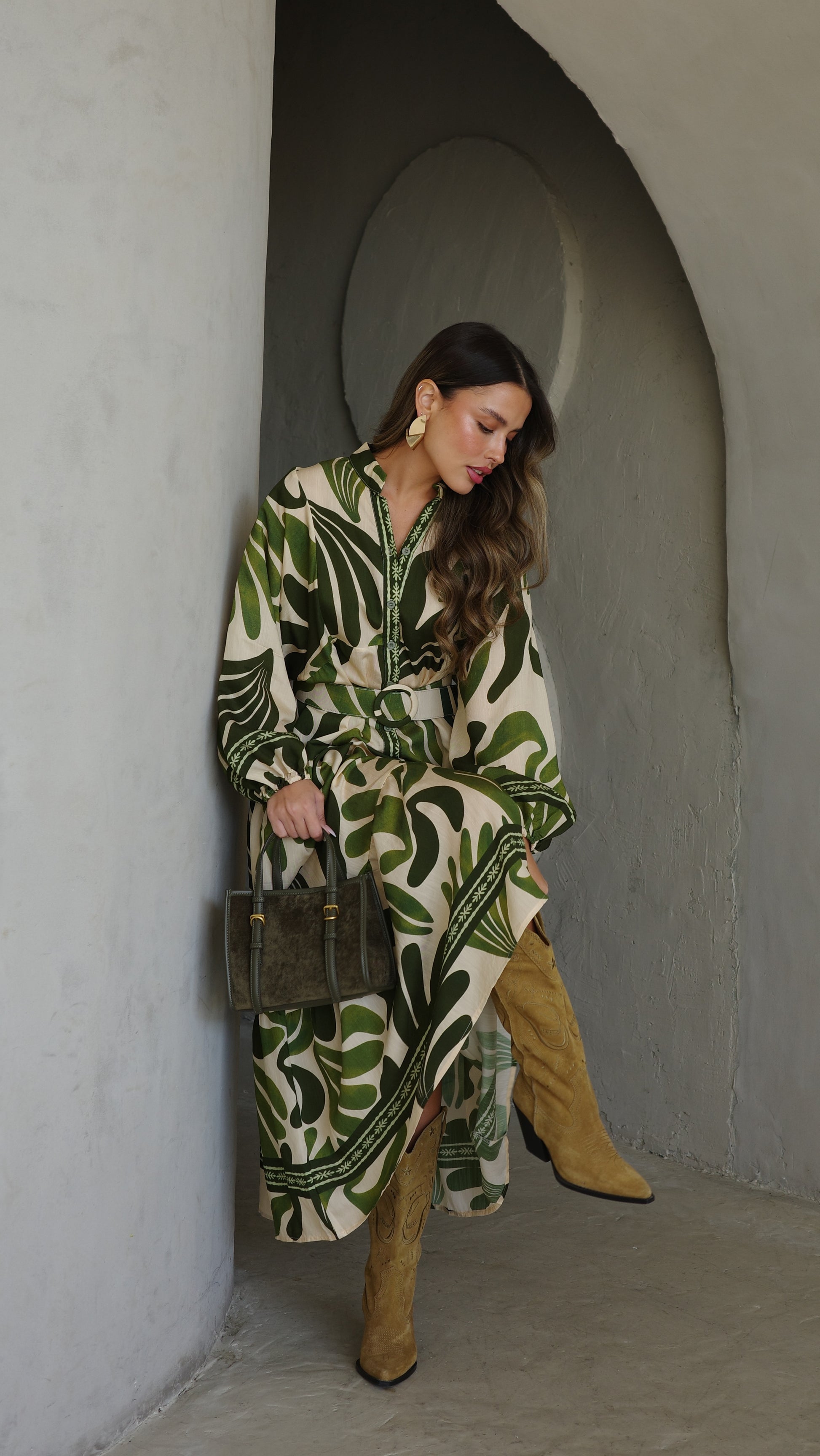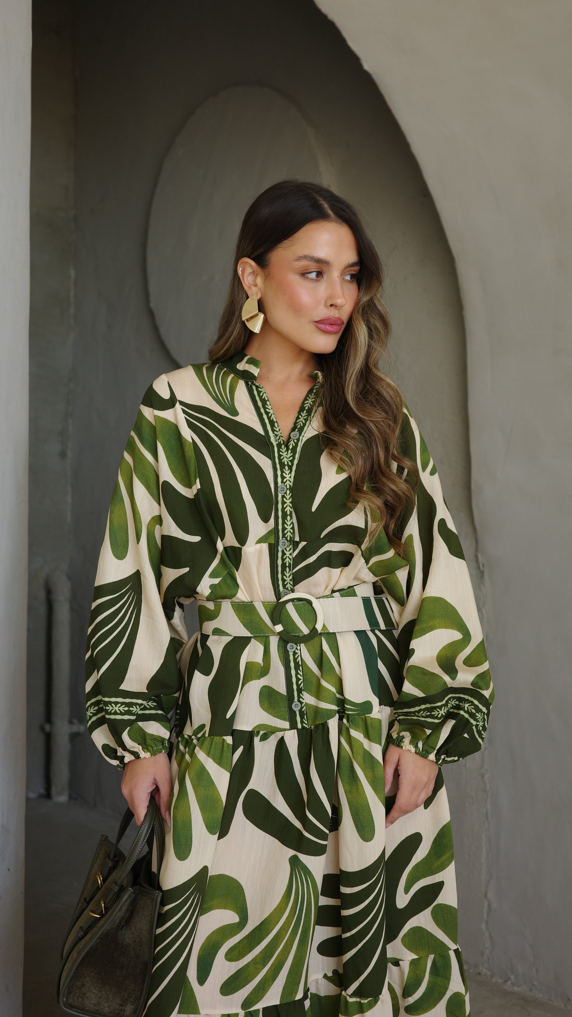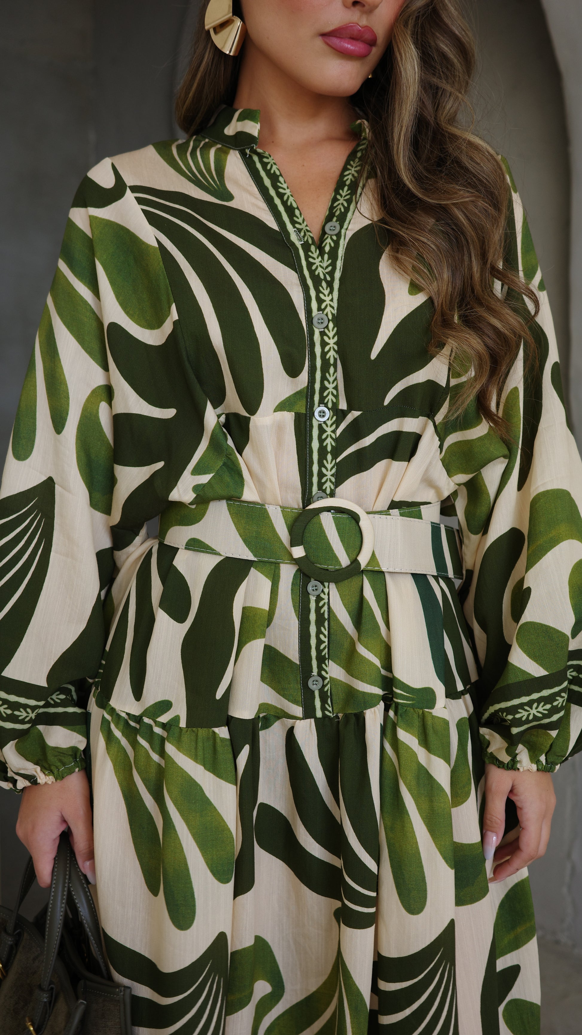 גלביה קומות כפתורים חגורה רוקסנה | שמנת/ירוק
