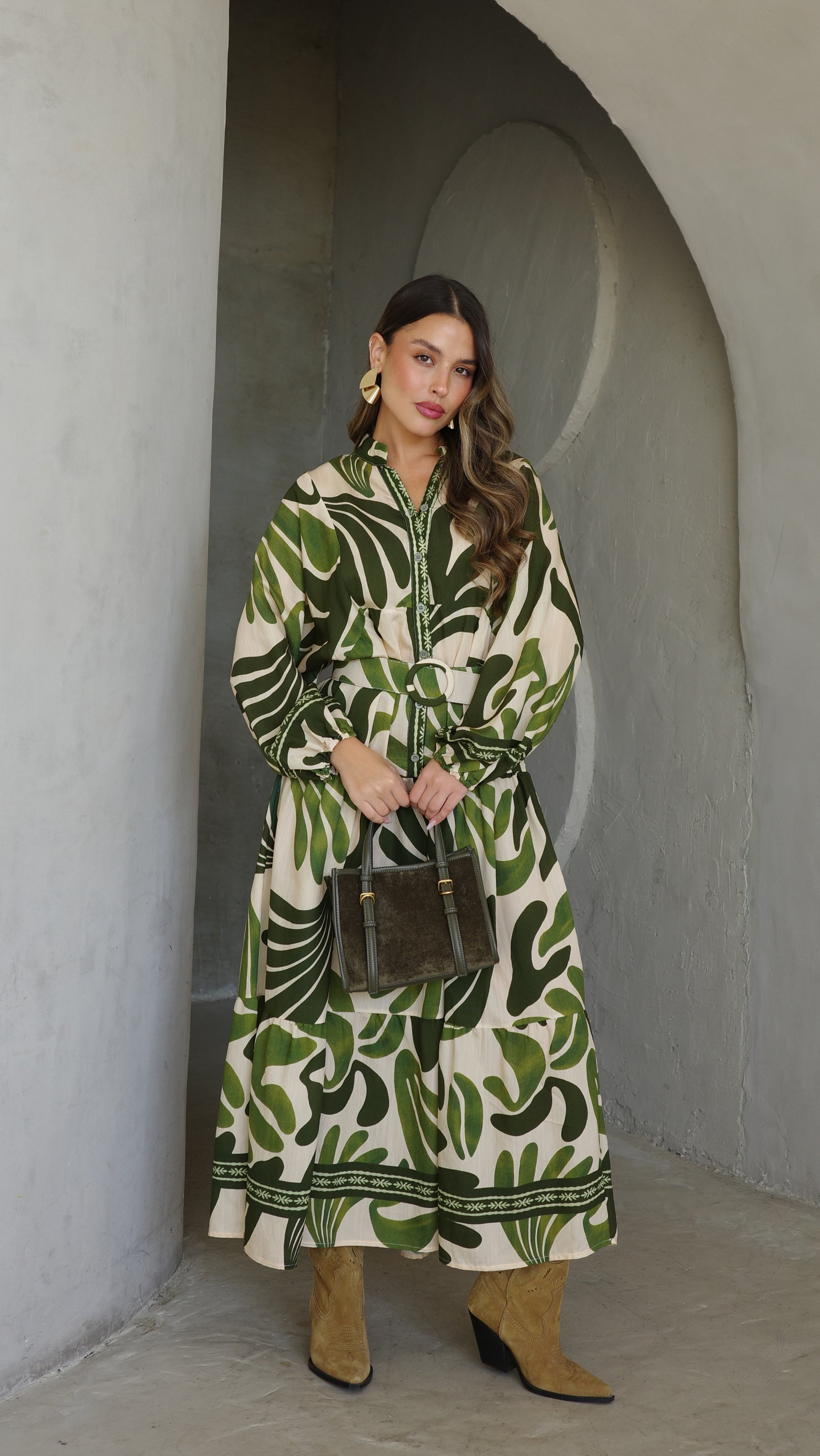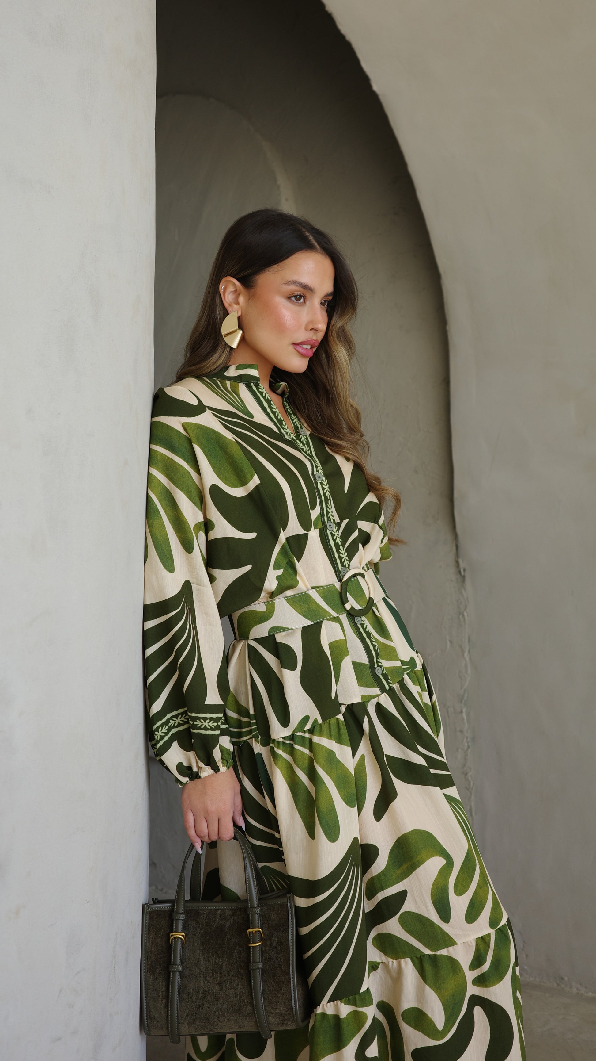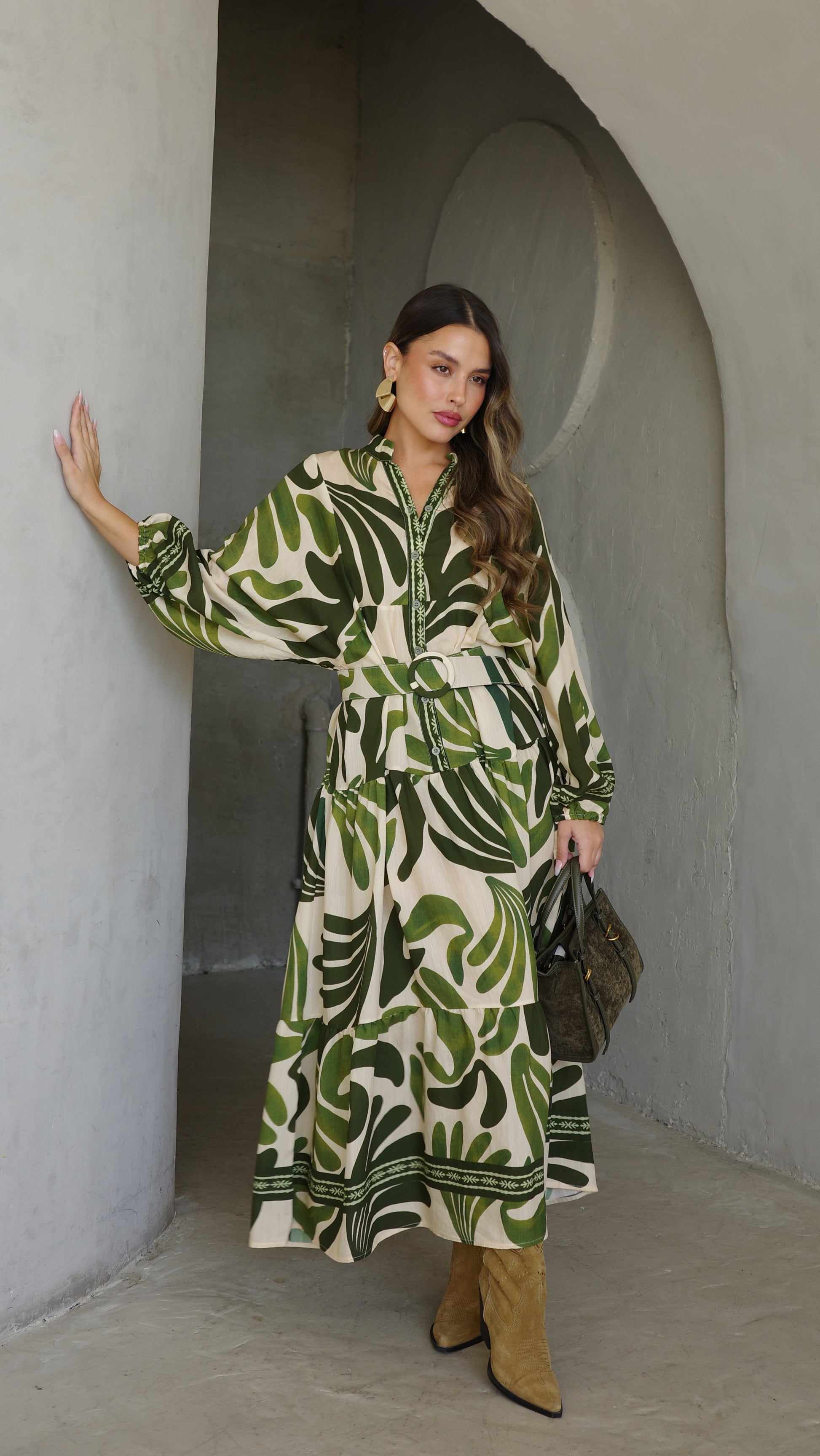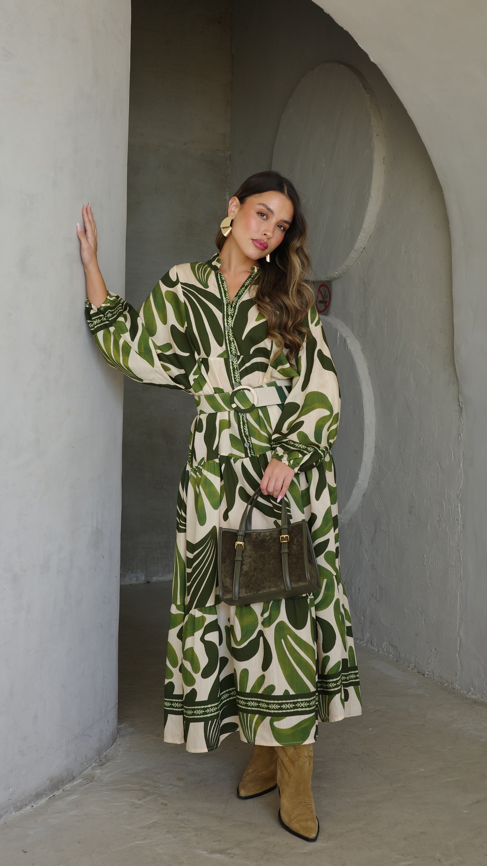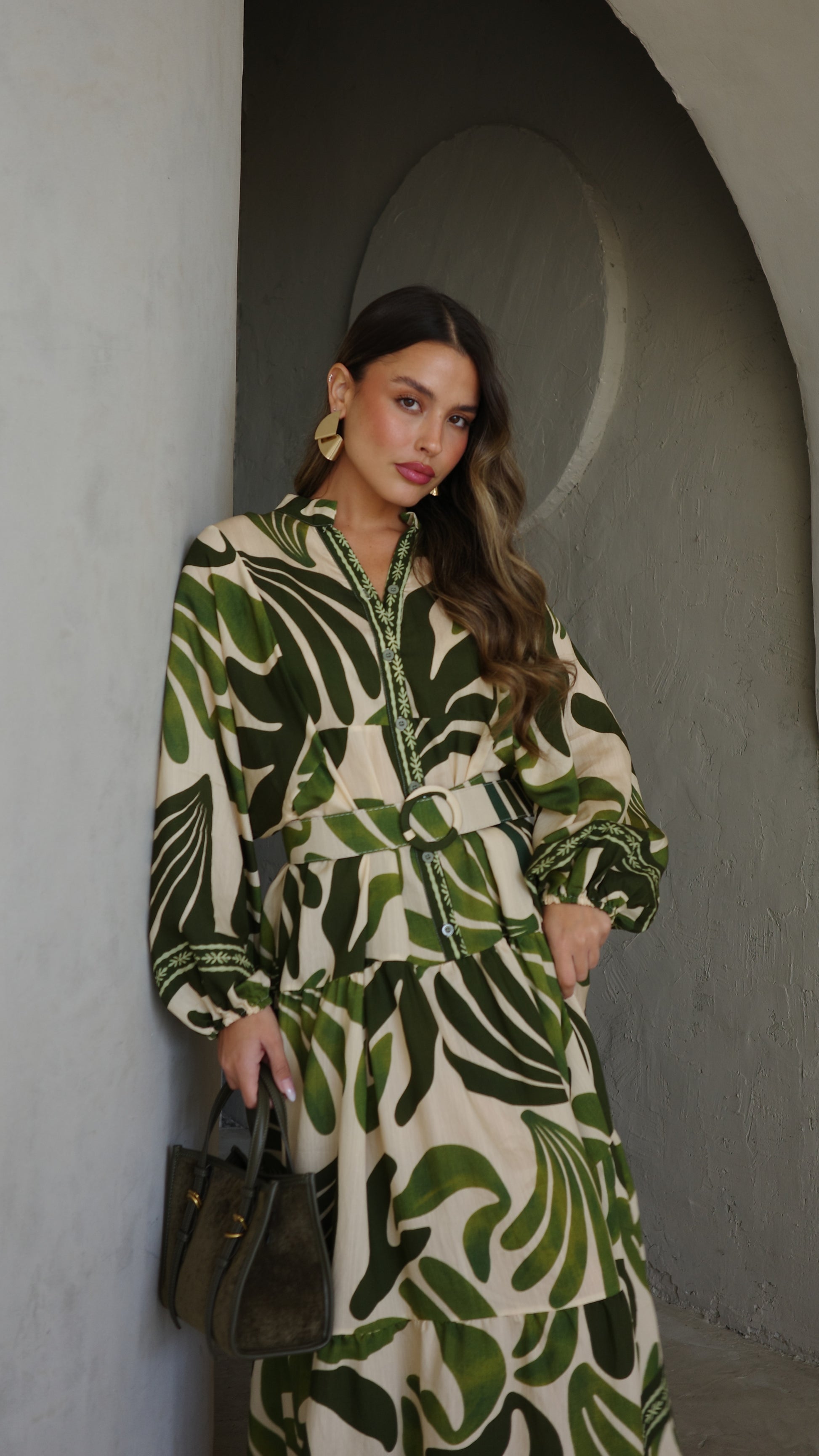 גלביה קומות כפתורים חגורה רוקסנה | שמנת/ירוק