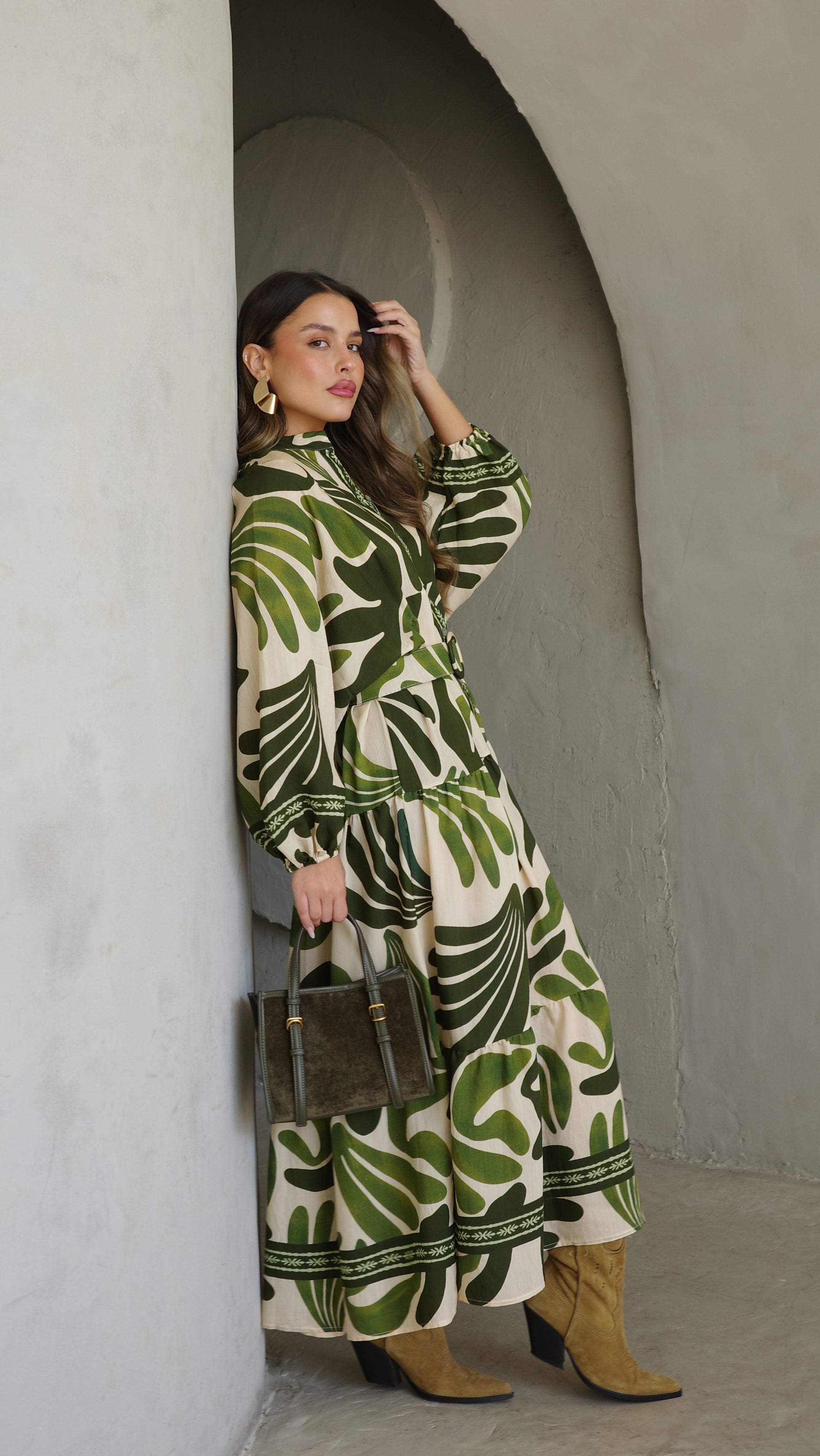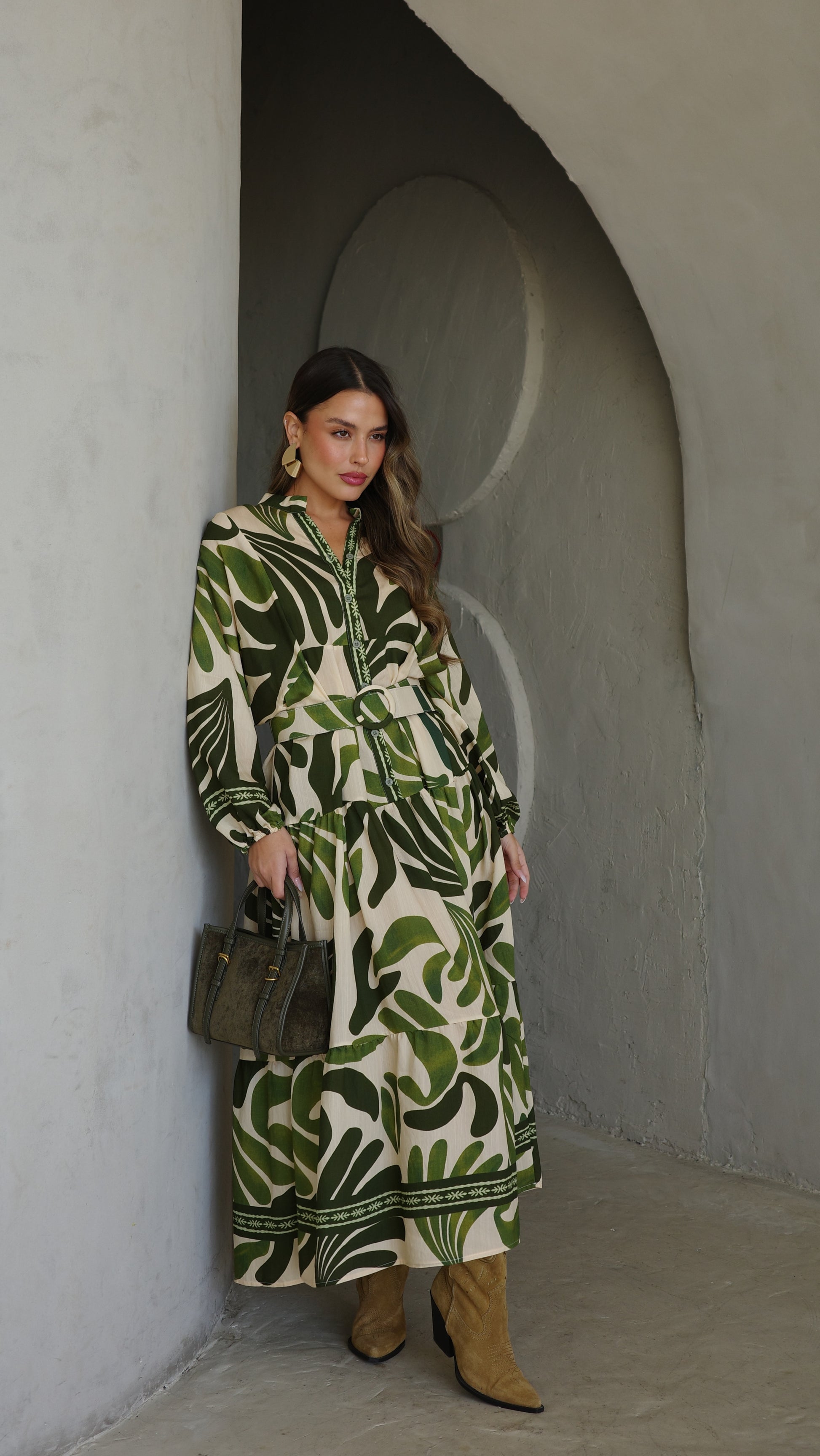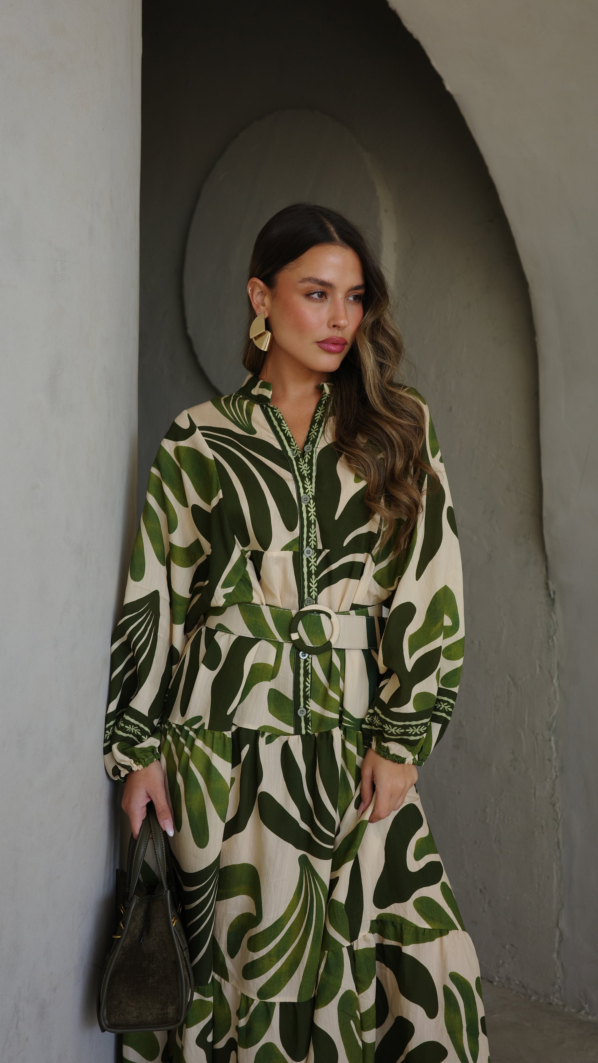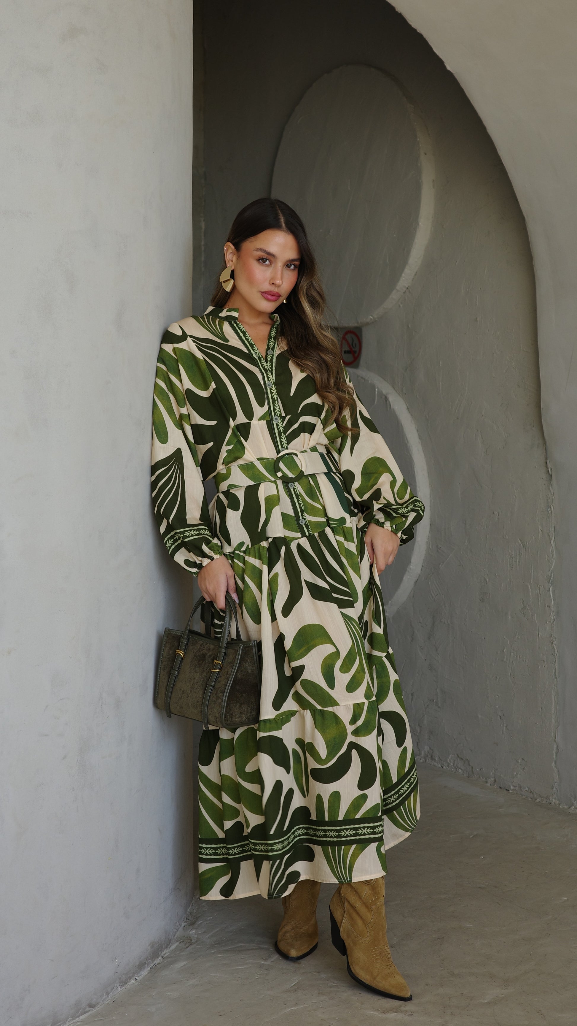 גלביה קומות כפתורים חגורה רוקסנה | שמנת/ירוק