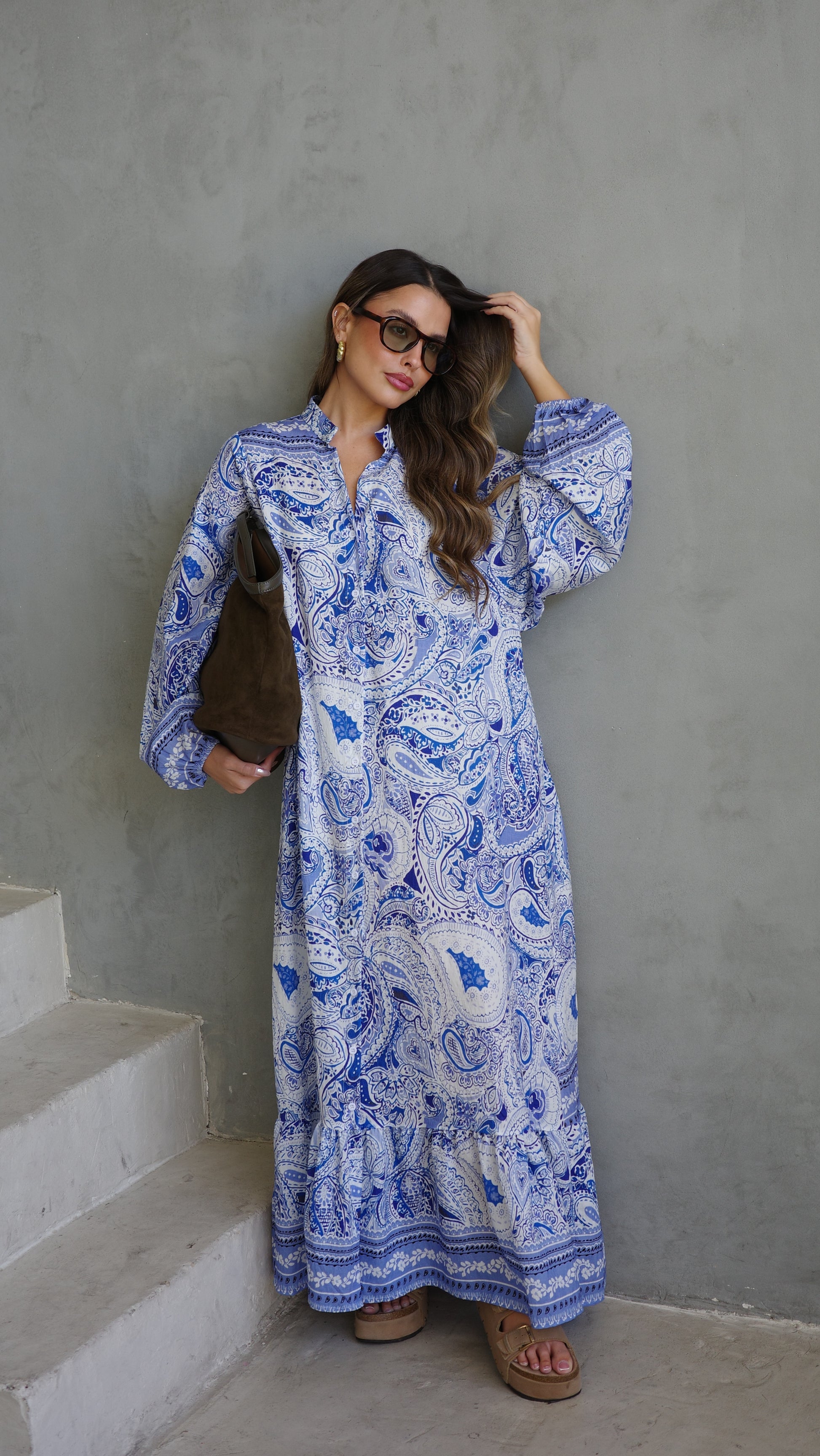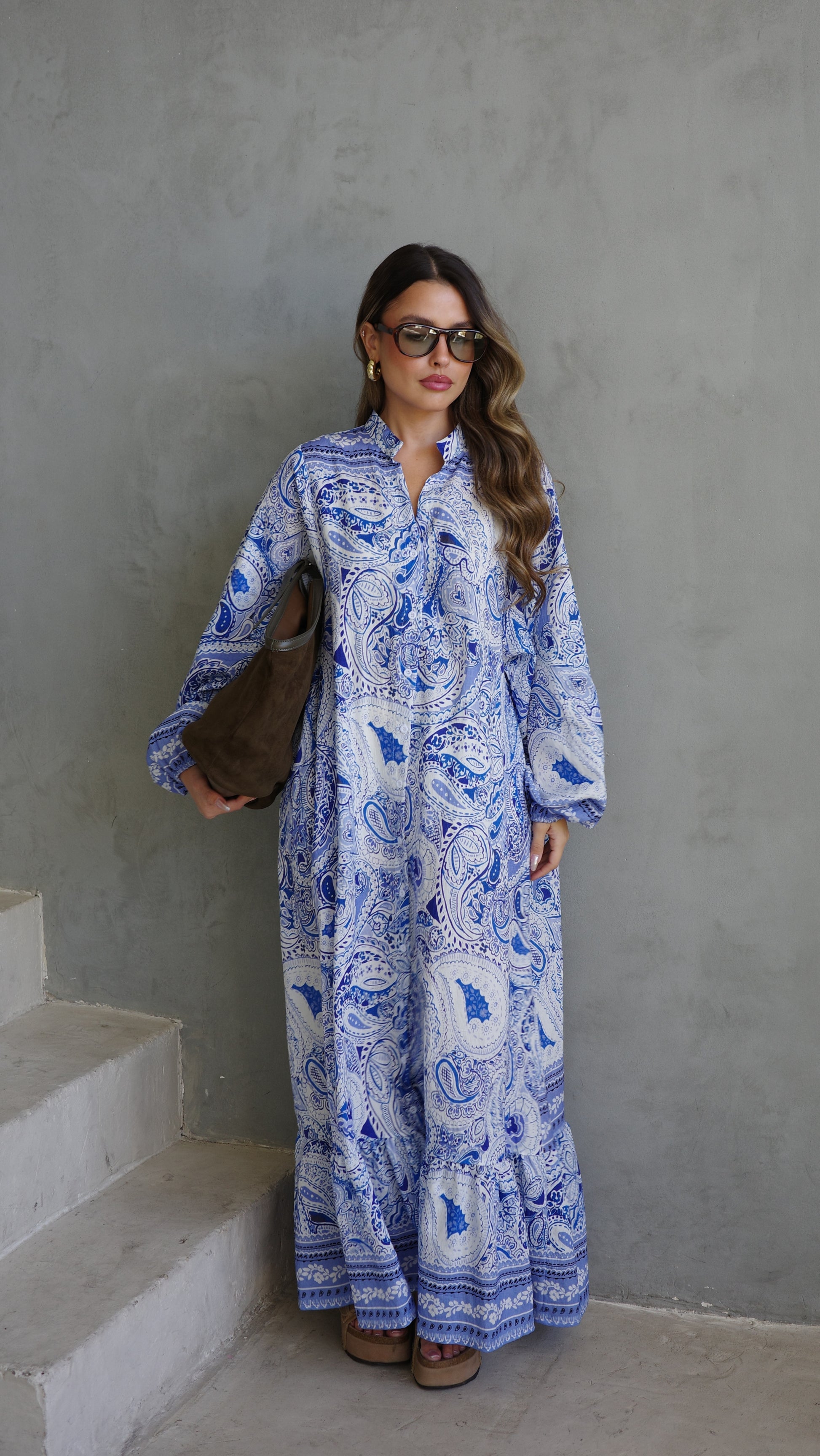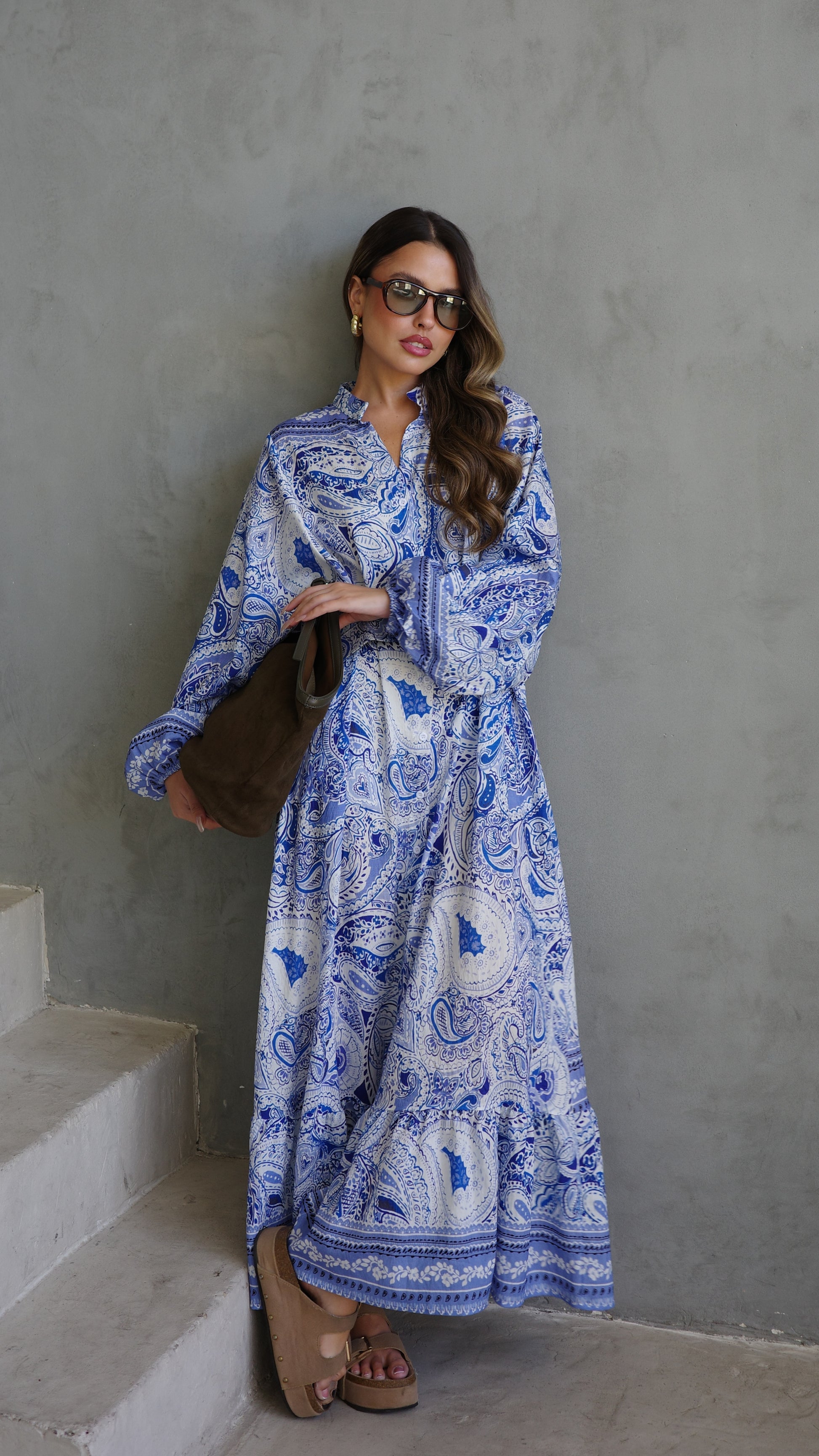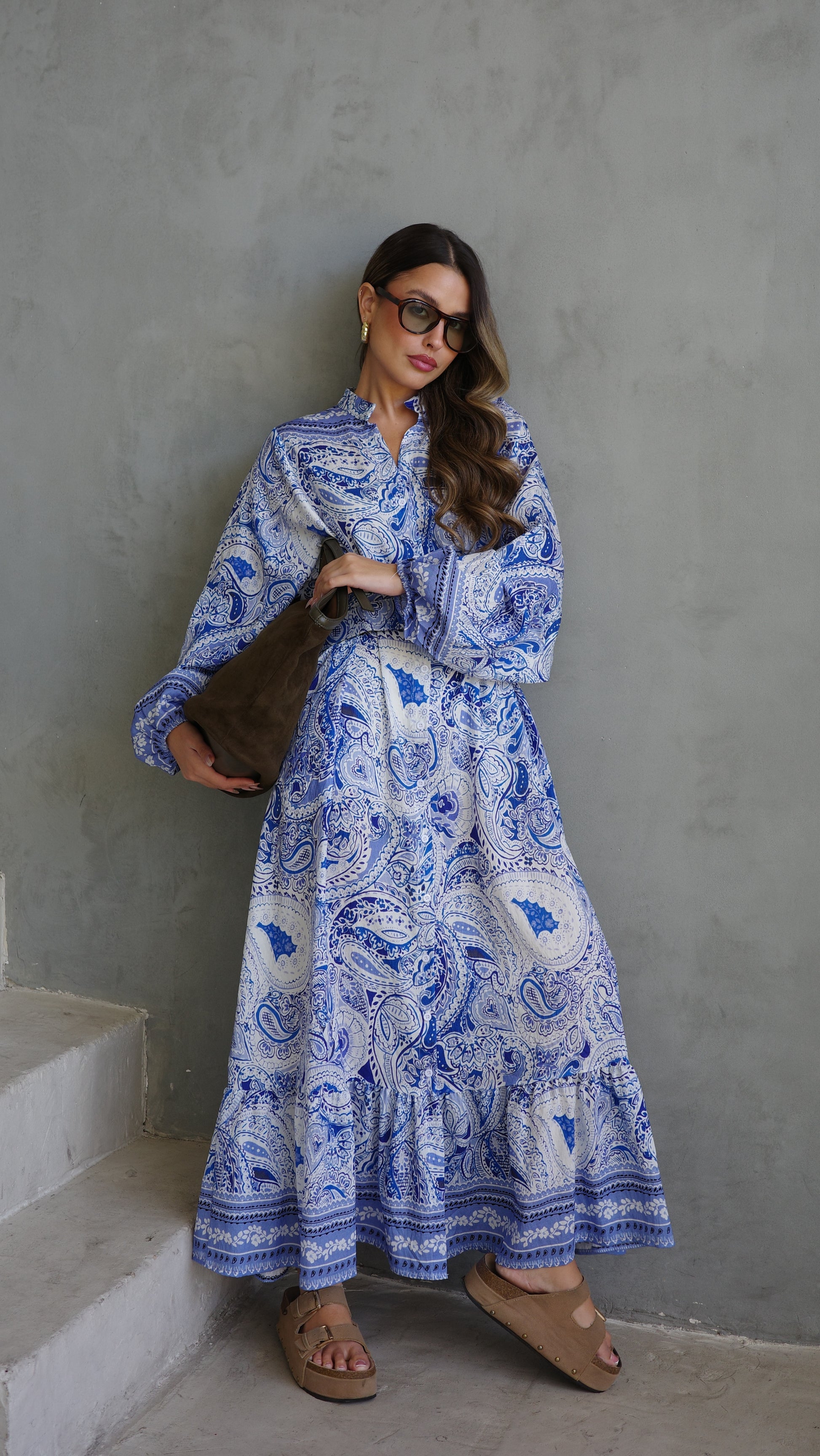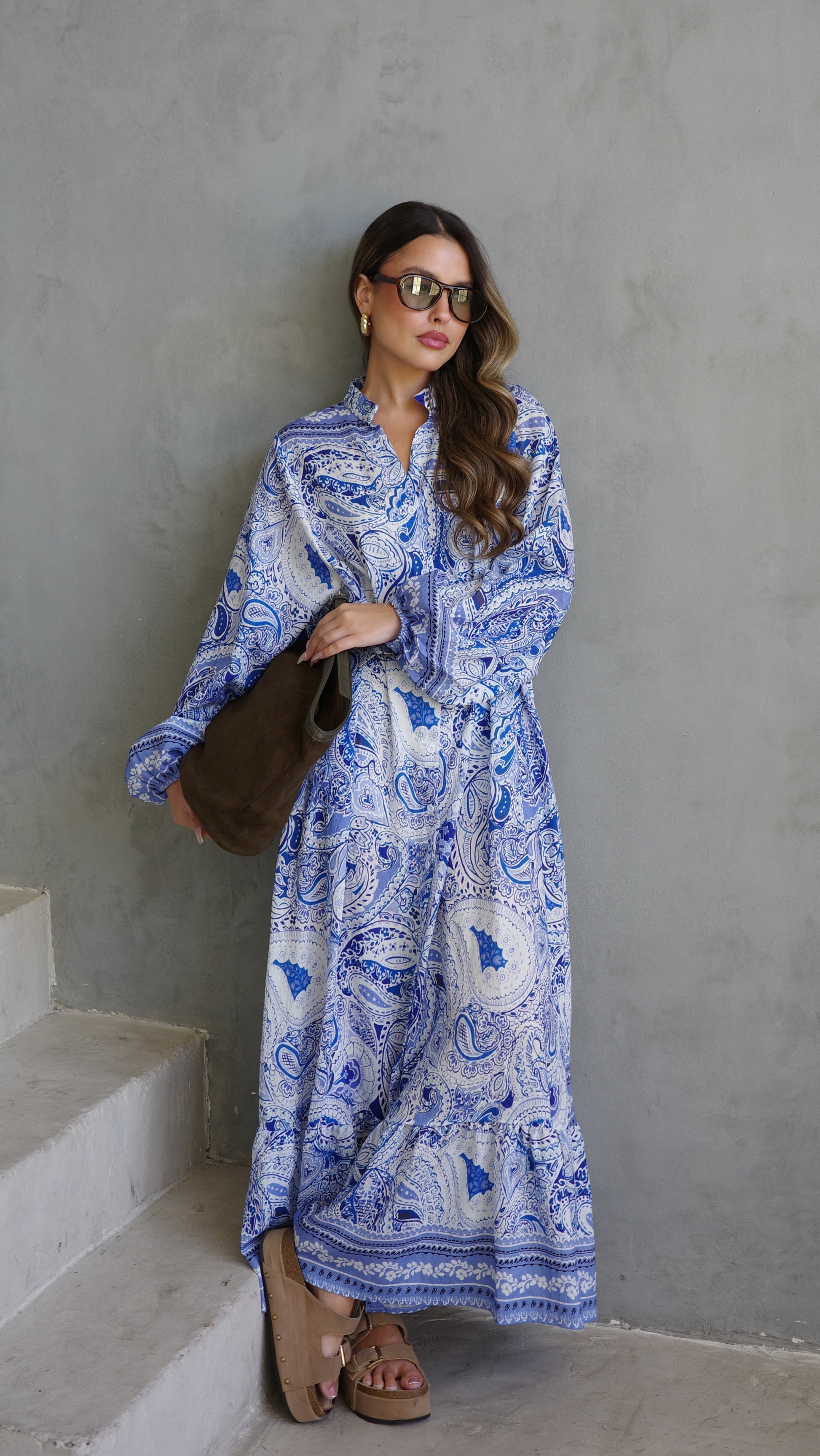 גלביה קומות כפתורים חגורה רייצל | תכלת/לבן