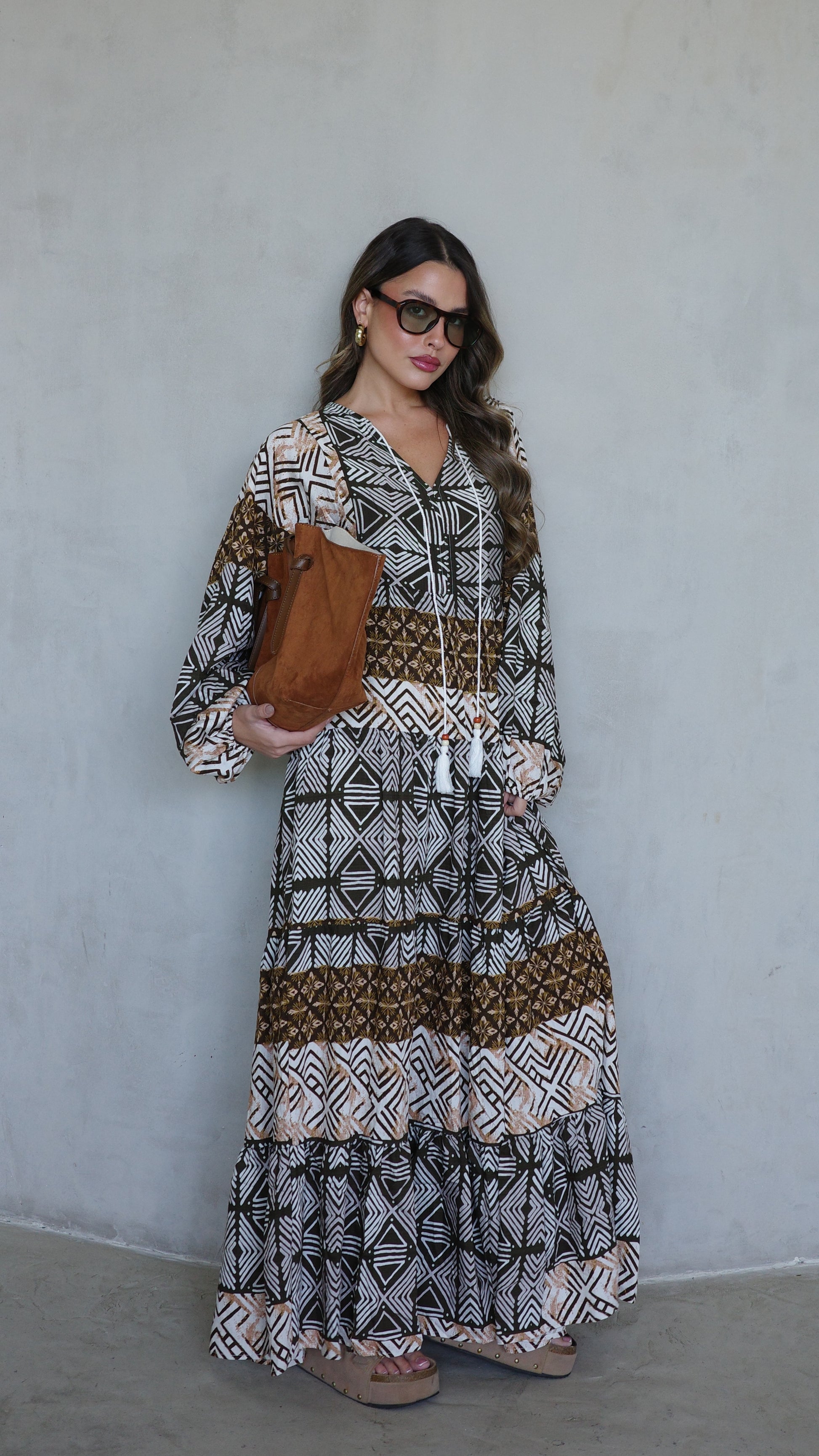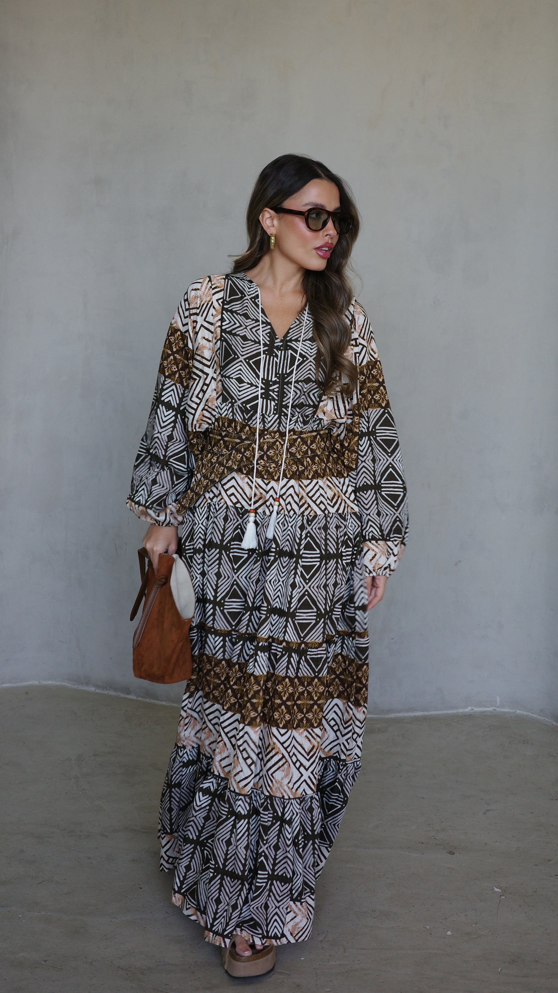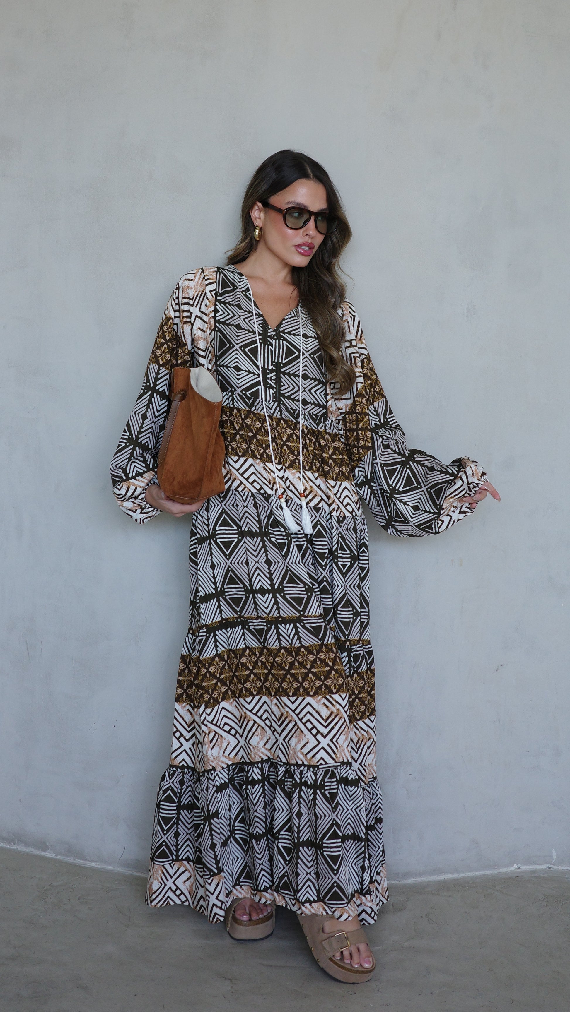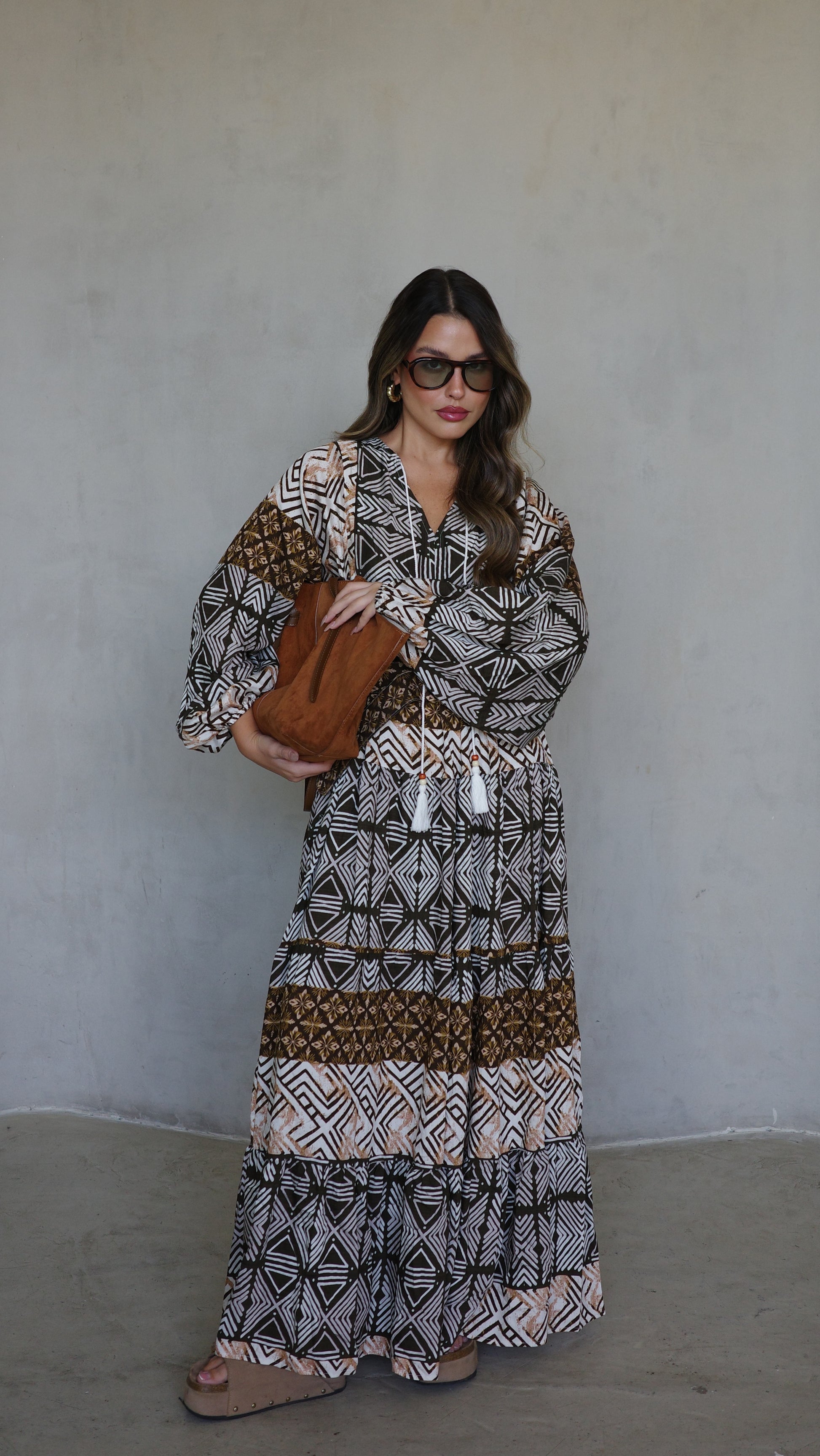 שמלת גלביה מבד ויסקוזה משולב כותנה איכותי ונעים, משולב דפוס אופנתי