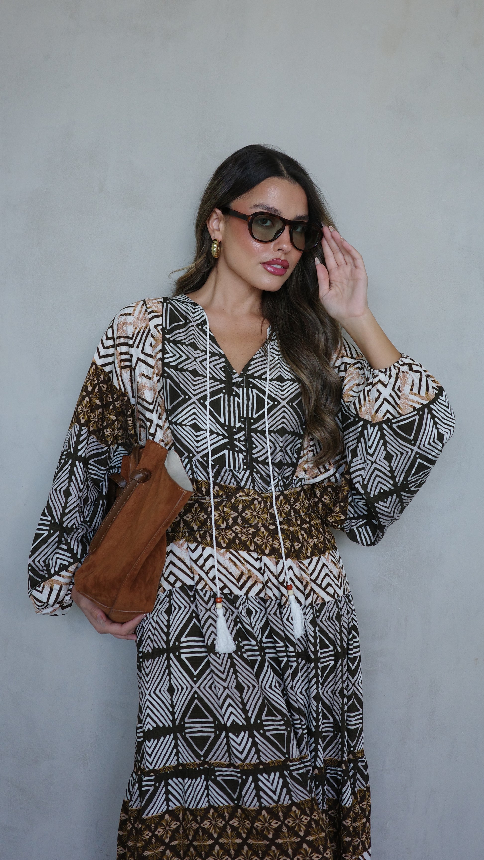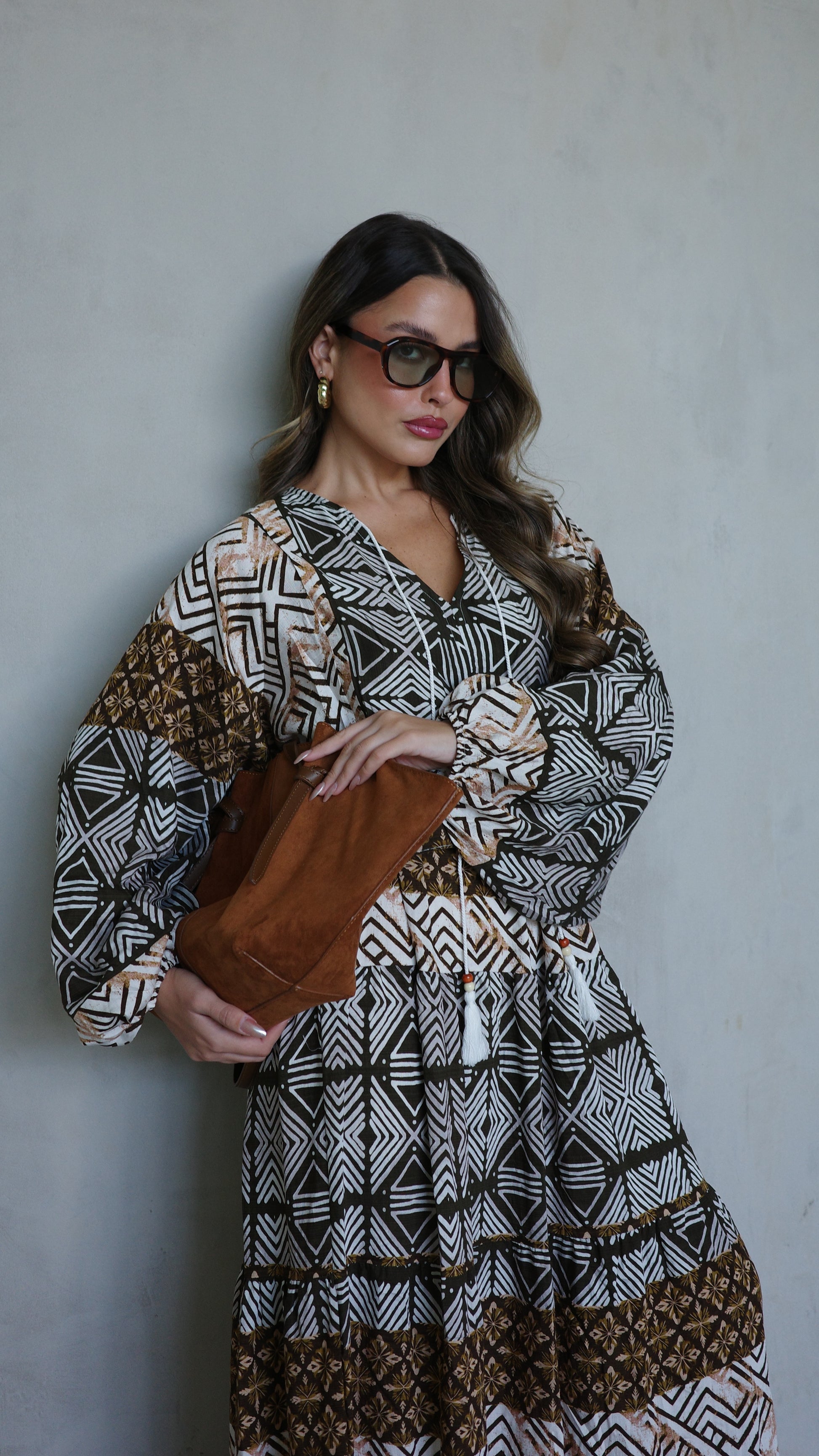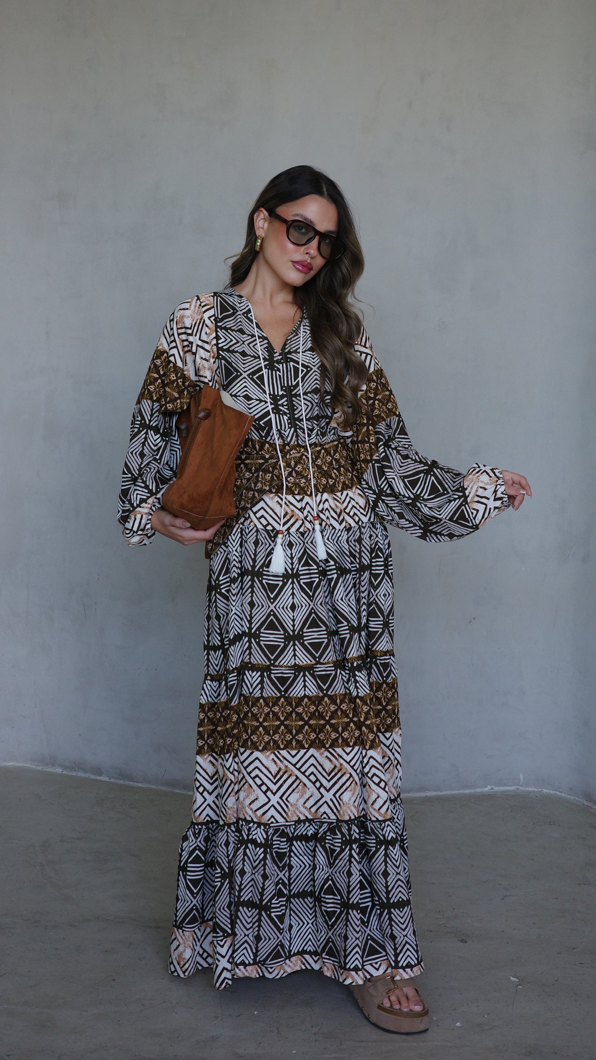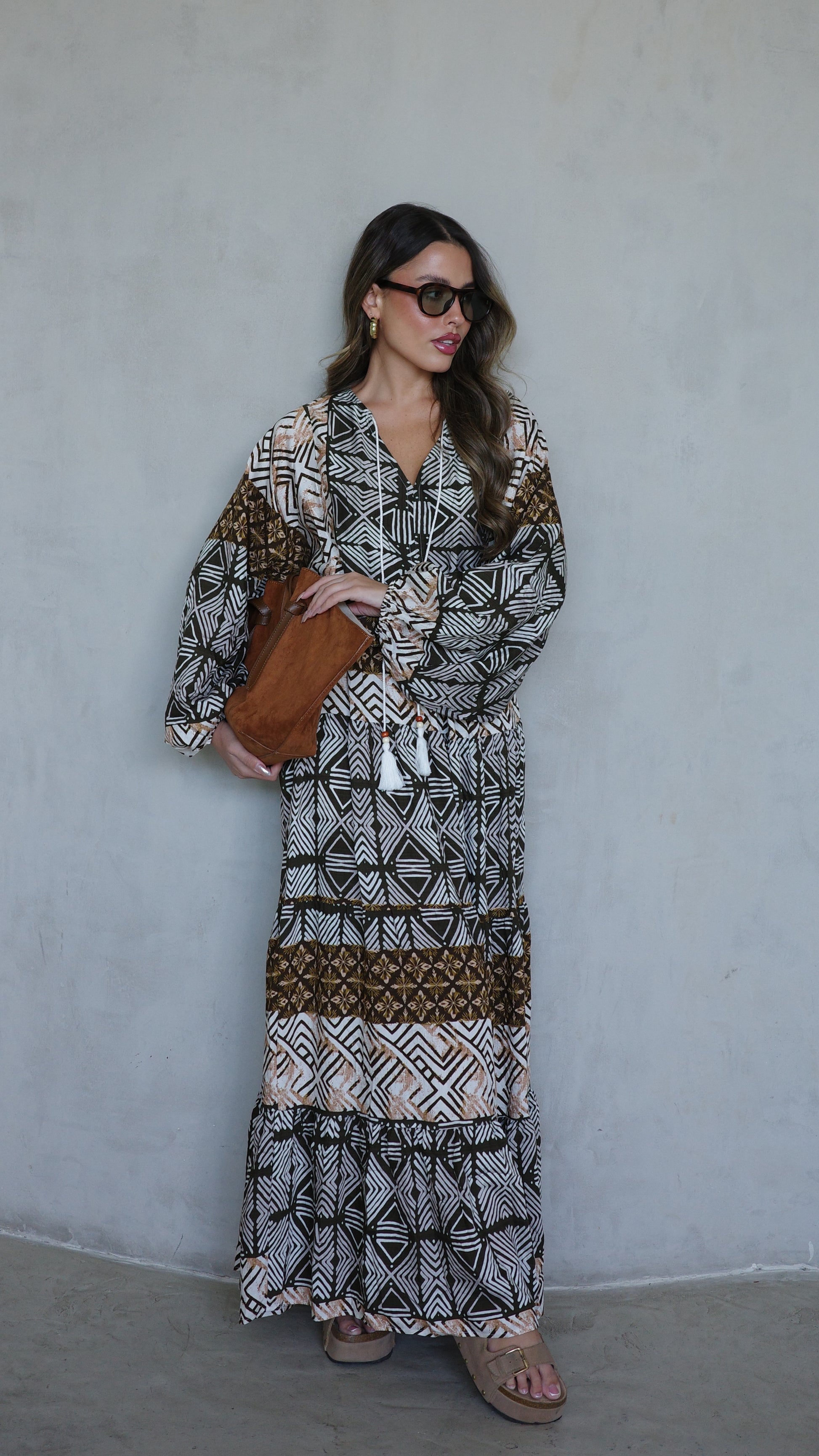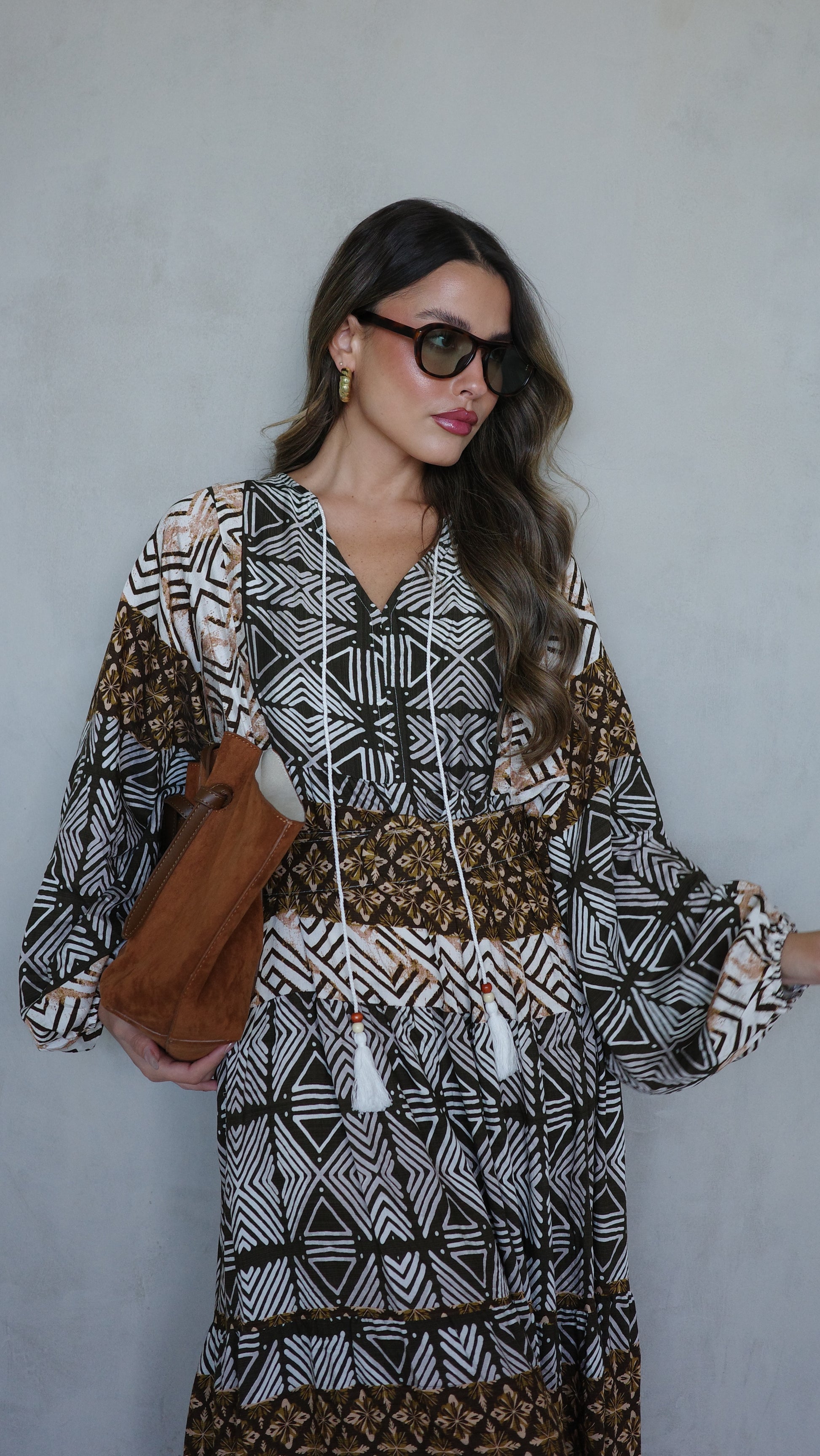 שמלת גלביה מבד ויסקוזה משולב כותנה איכותי ונעים, משולב דפוס אופנתי