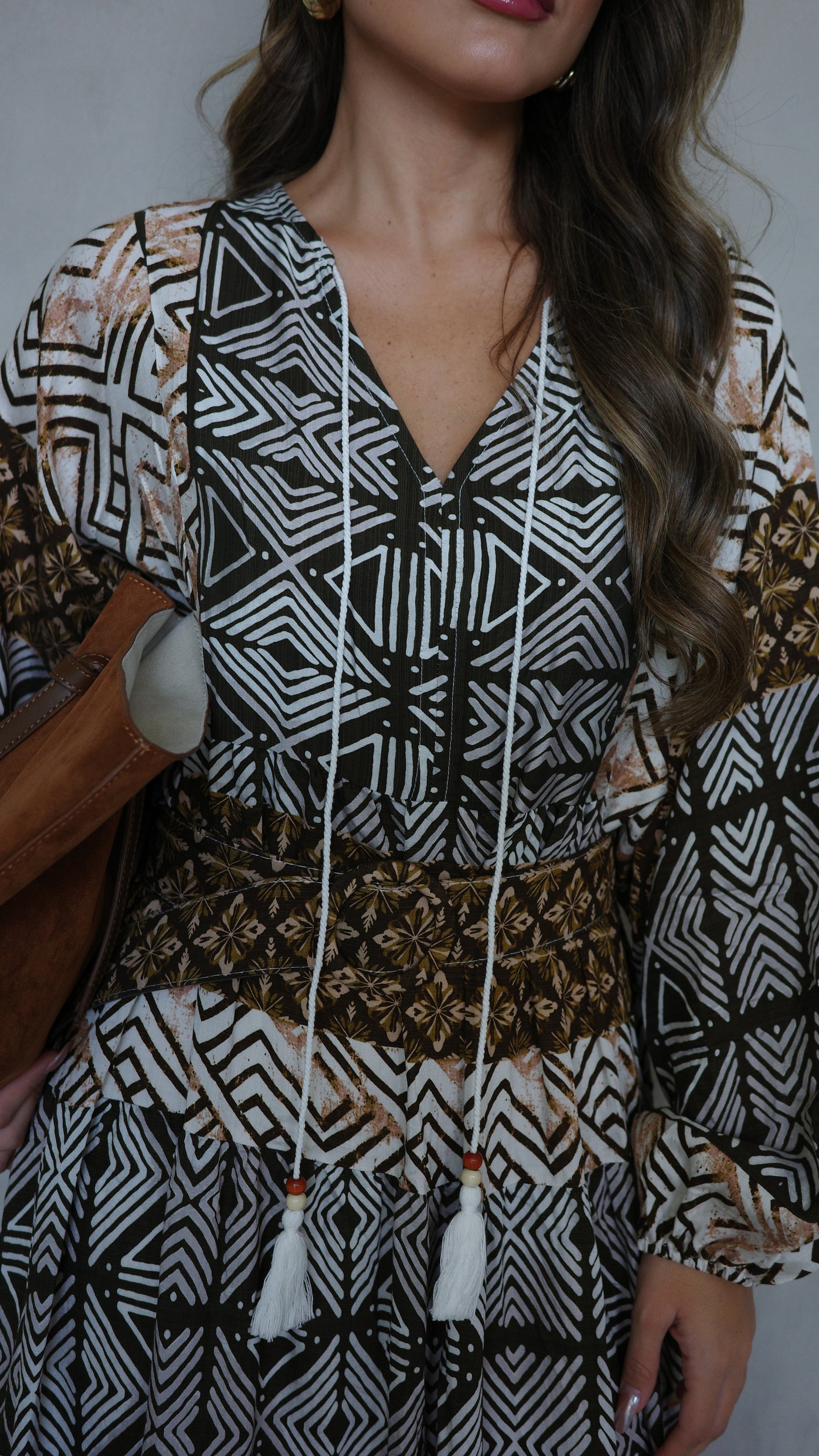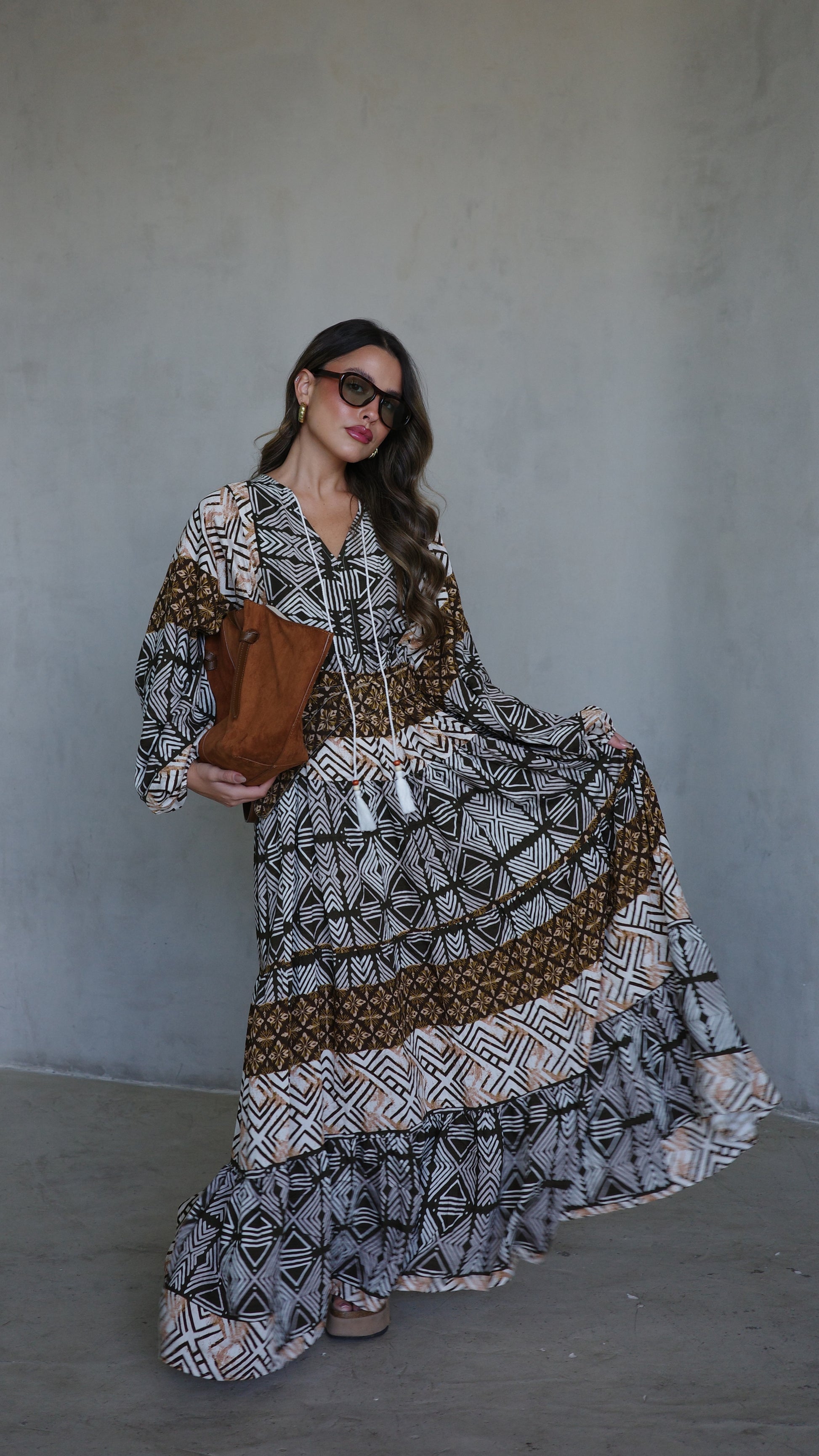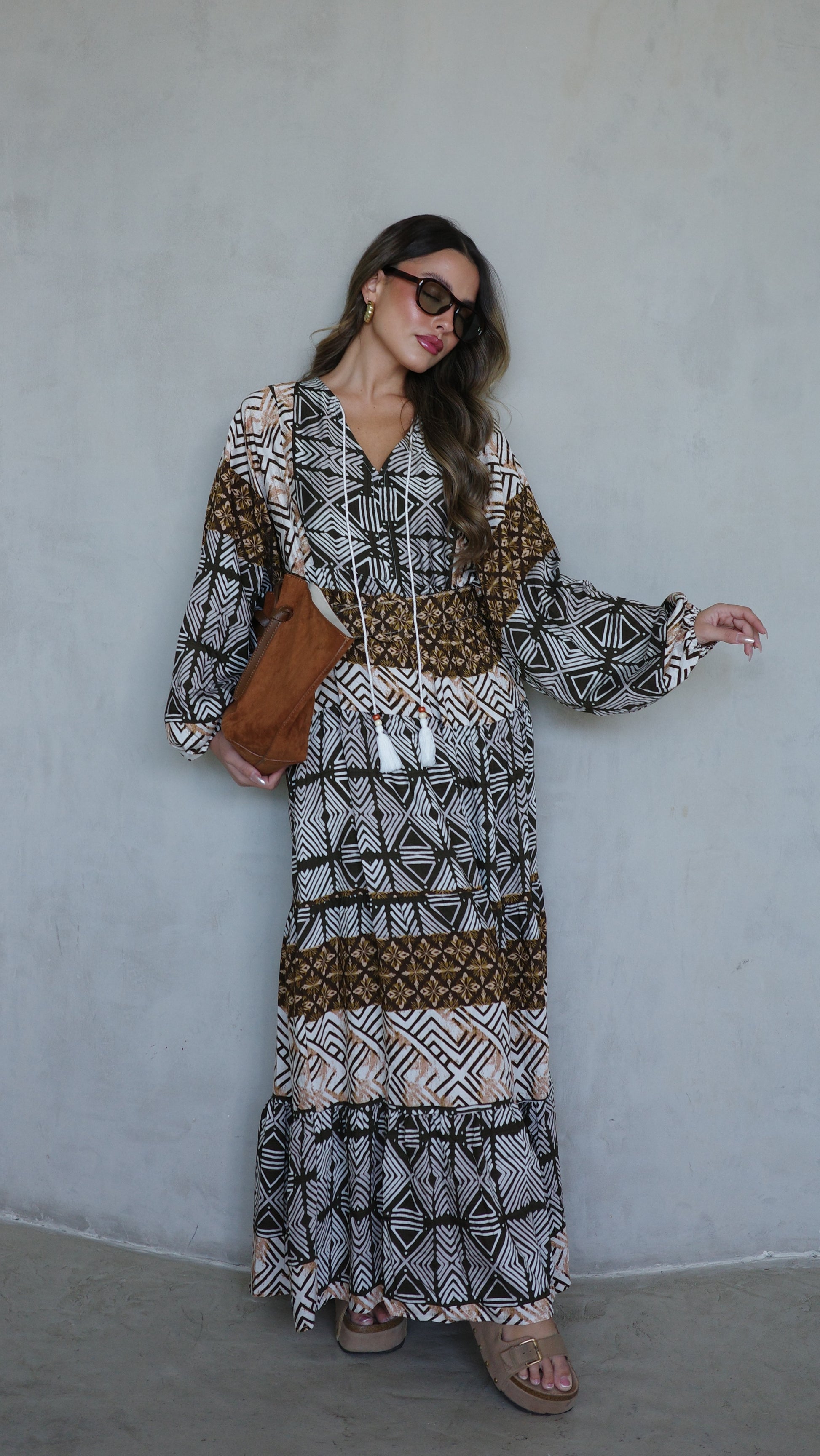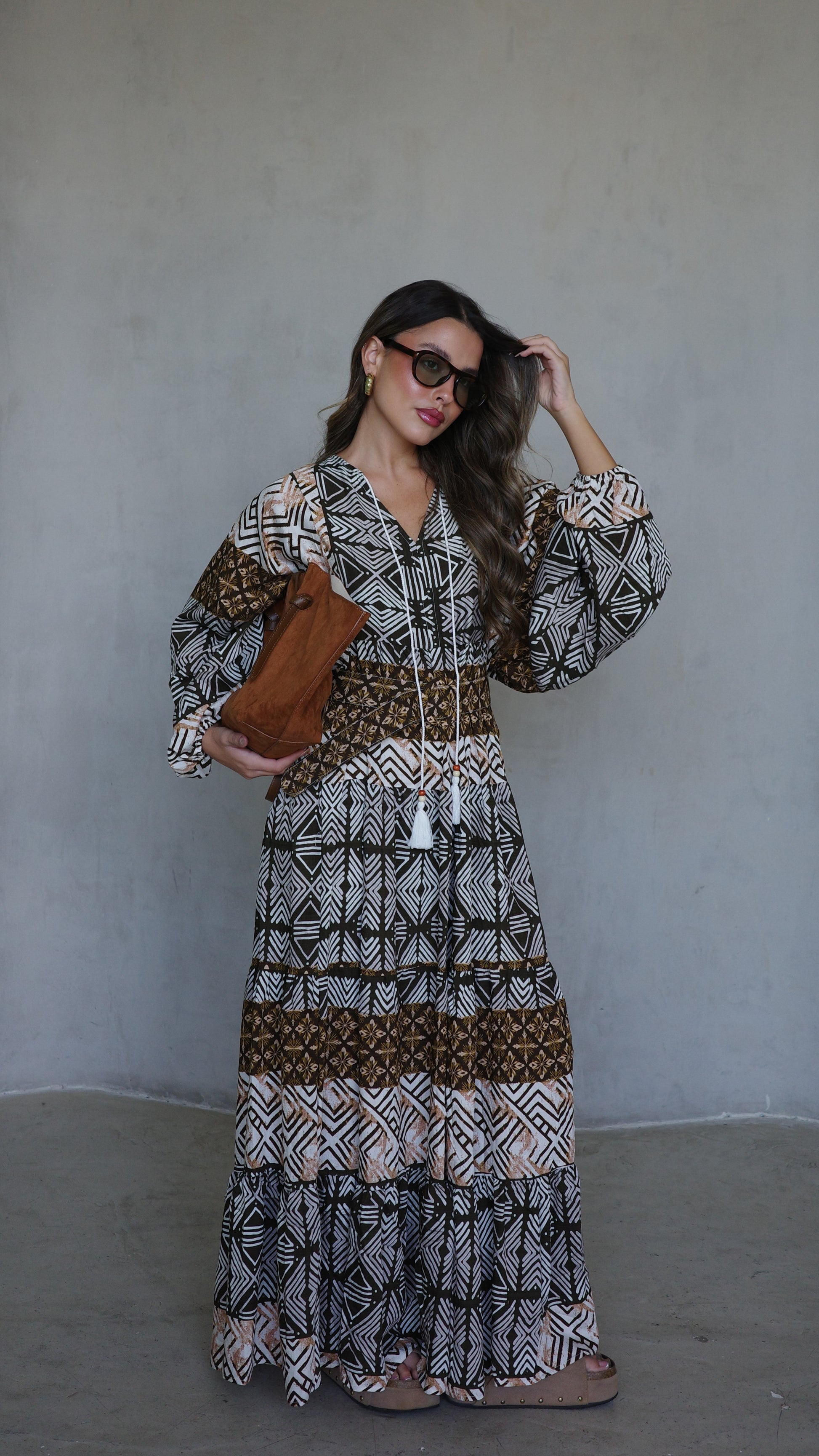 שמלת גלביה מבד ויסקוזה משולב כותנה איכותי ונעים, משולב דפוס אופנתי