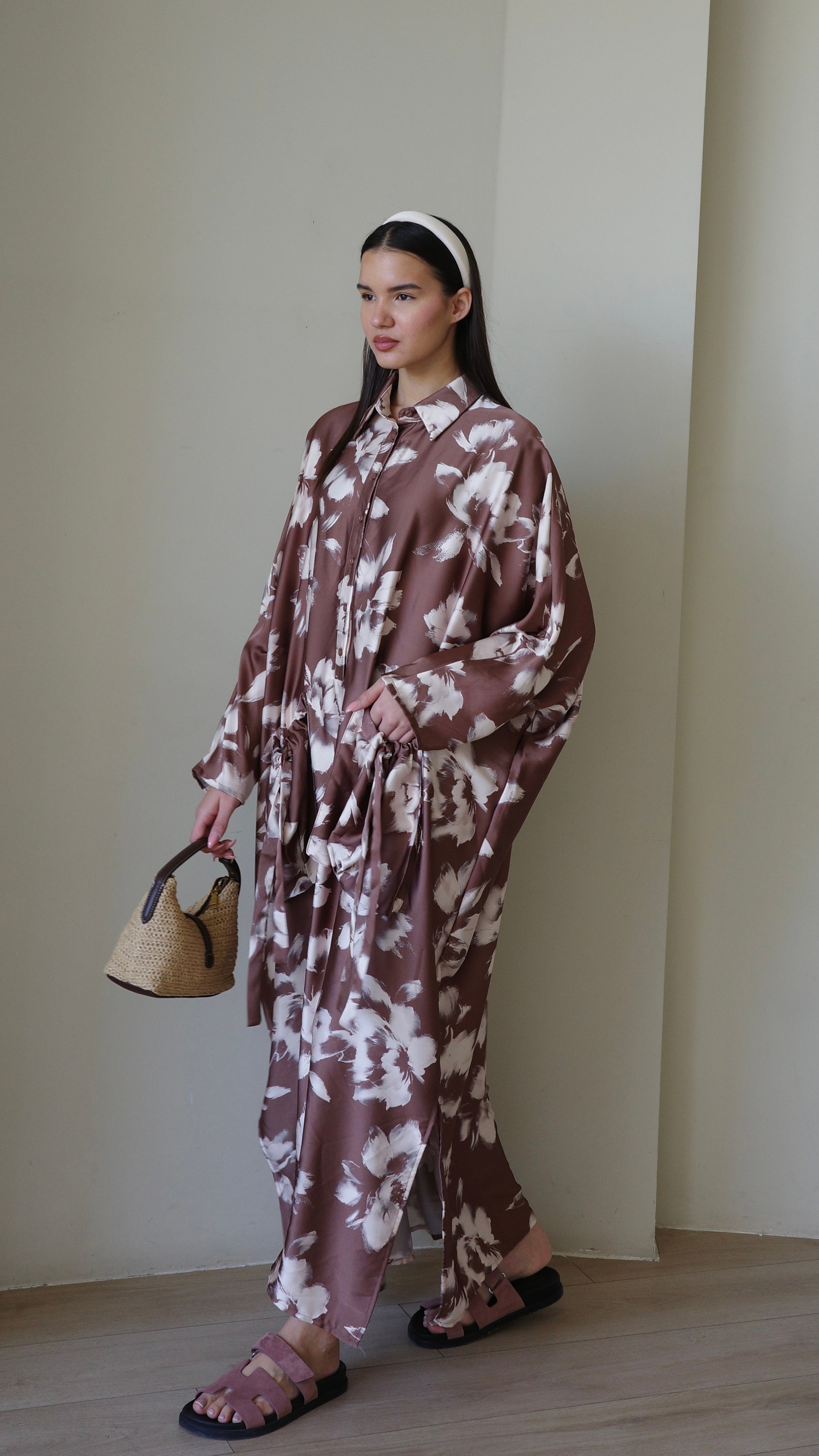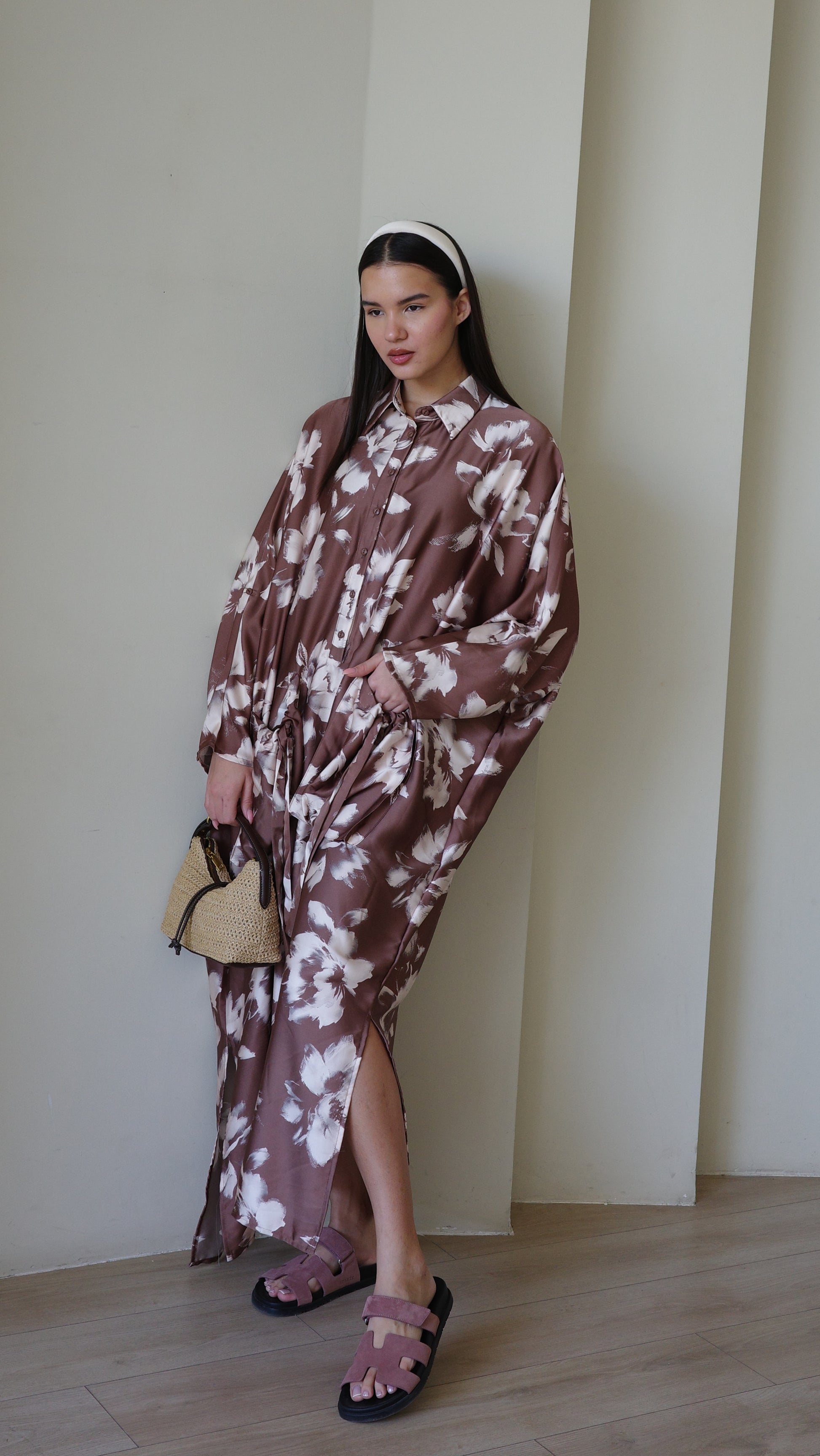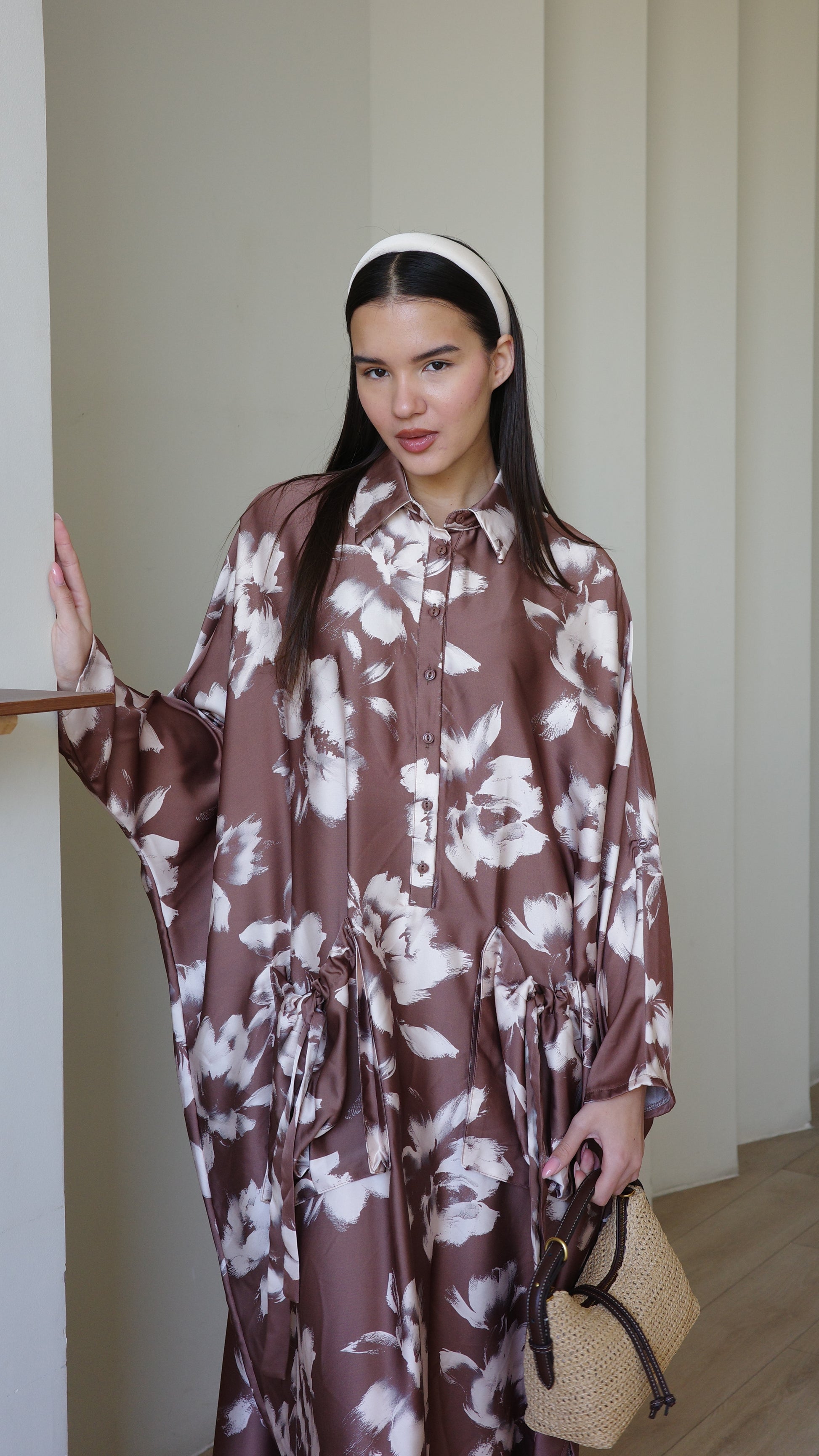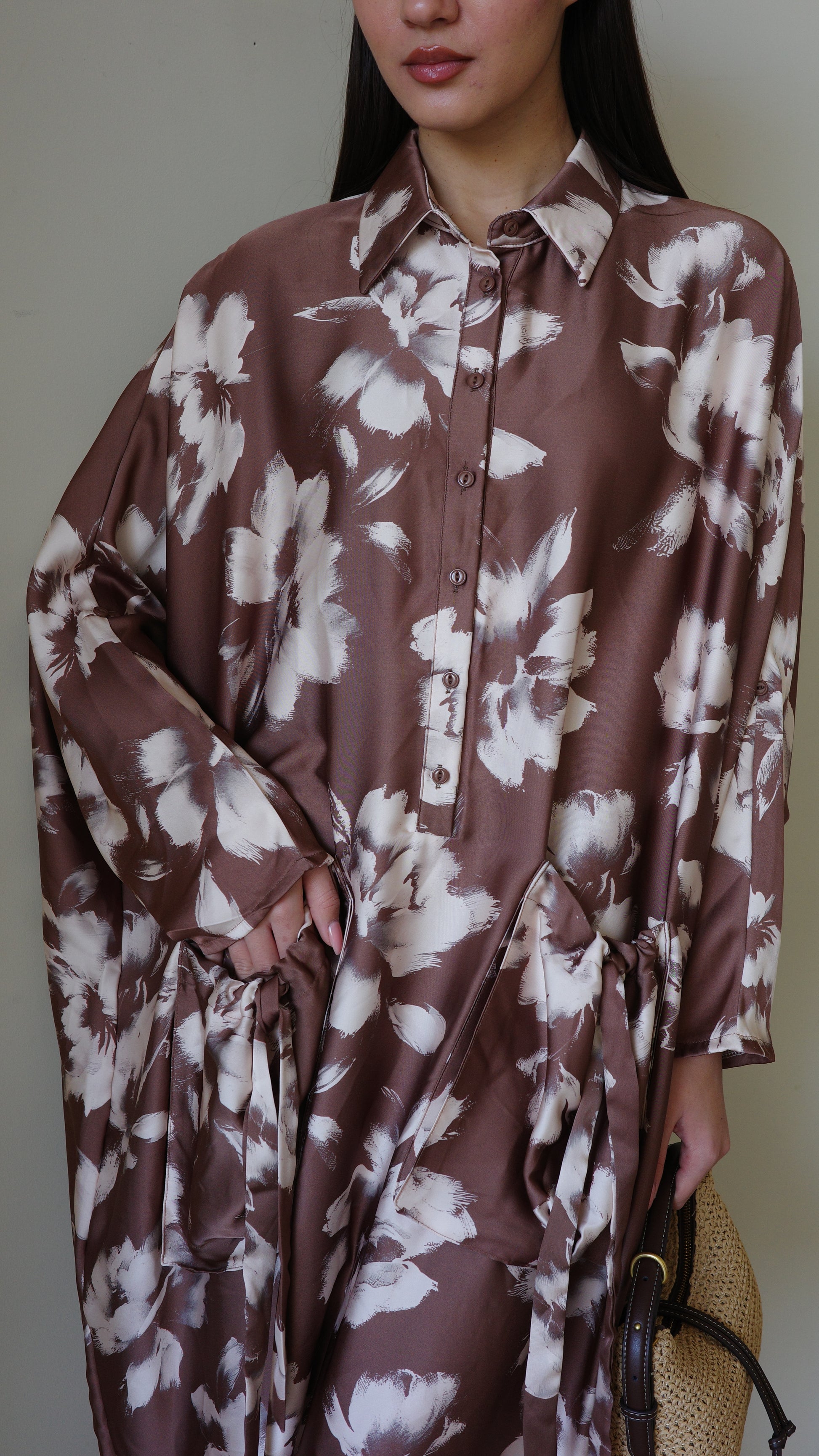 Title: שמלת אוברסיז עטלף אמבר | חום
