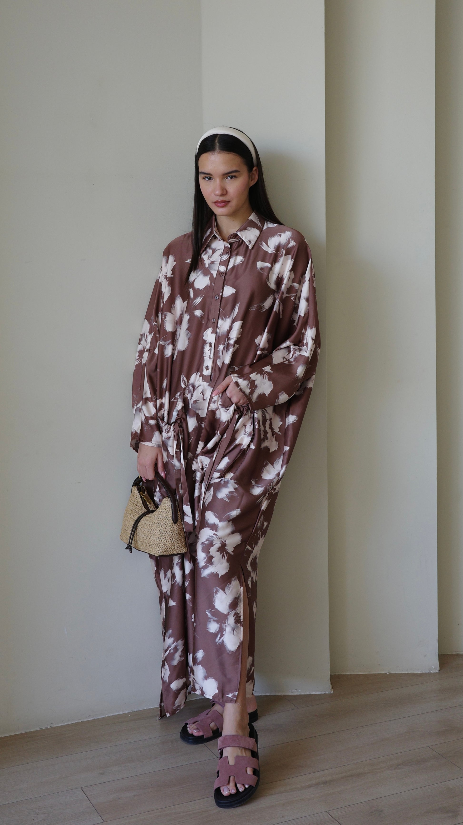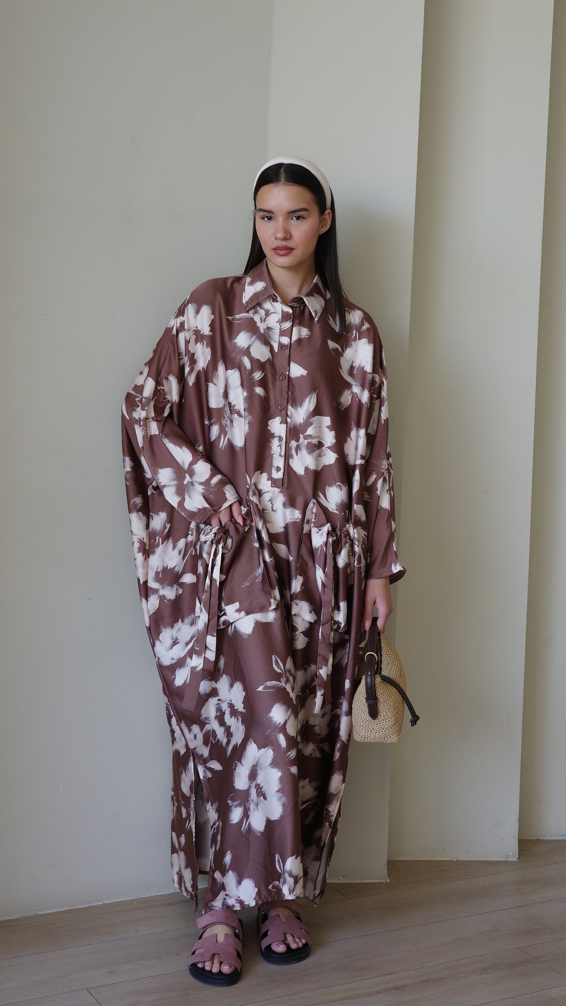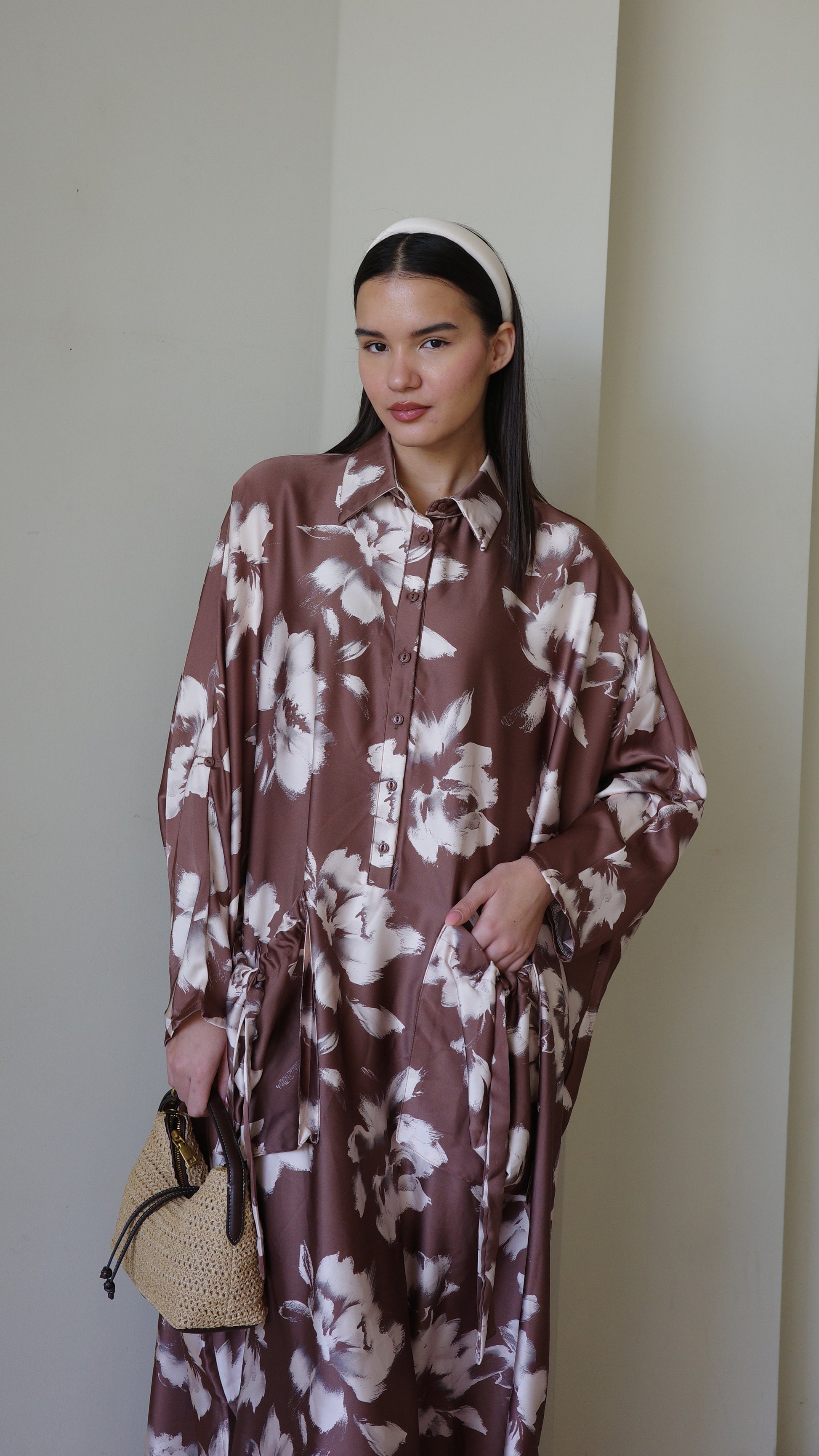 Title: שמלת אוברסיז עטלף אמבר | חום