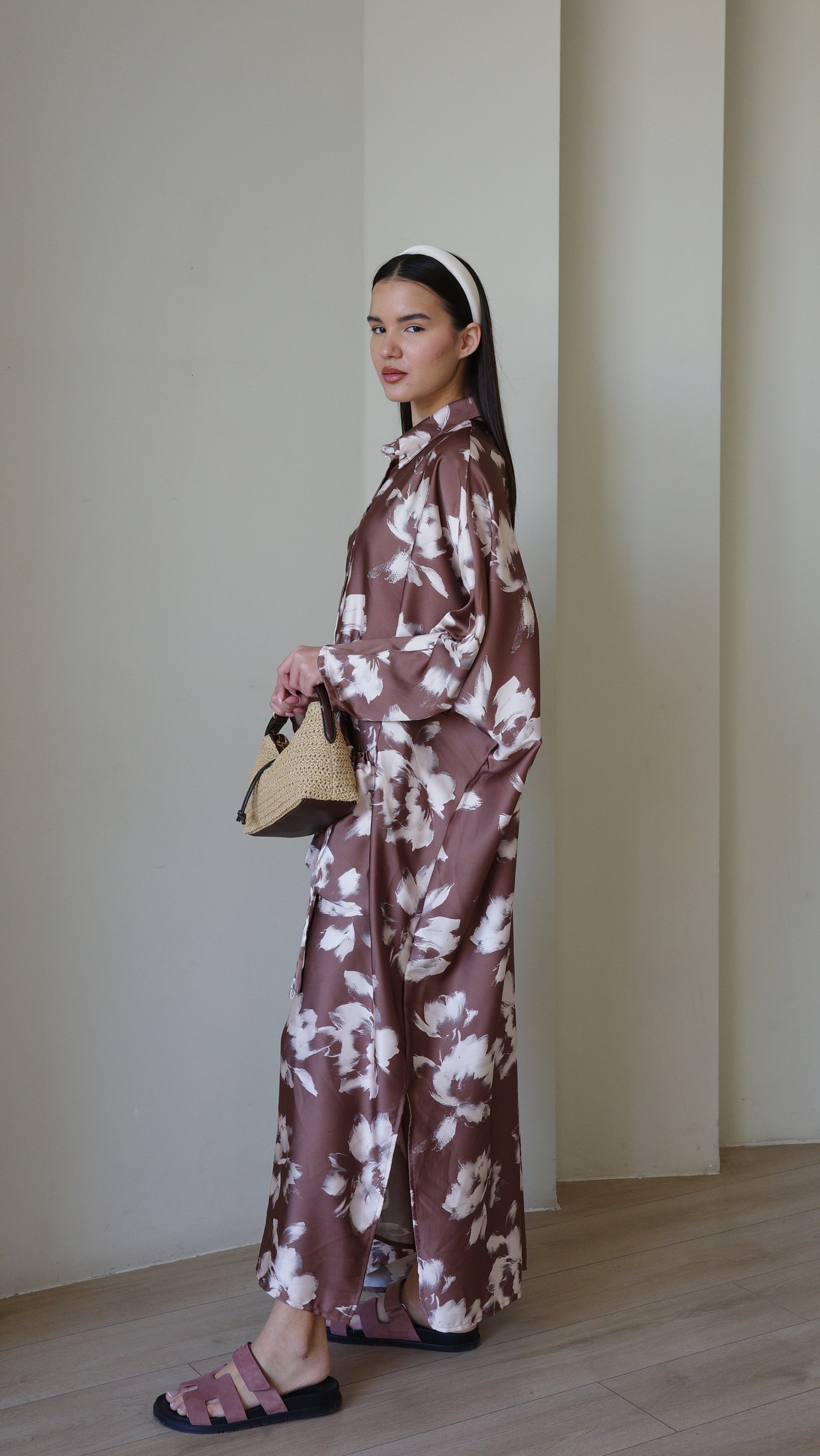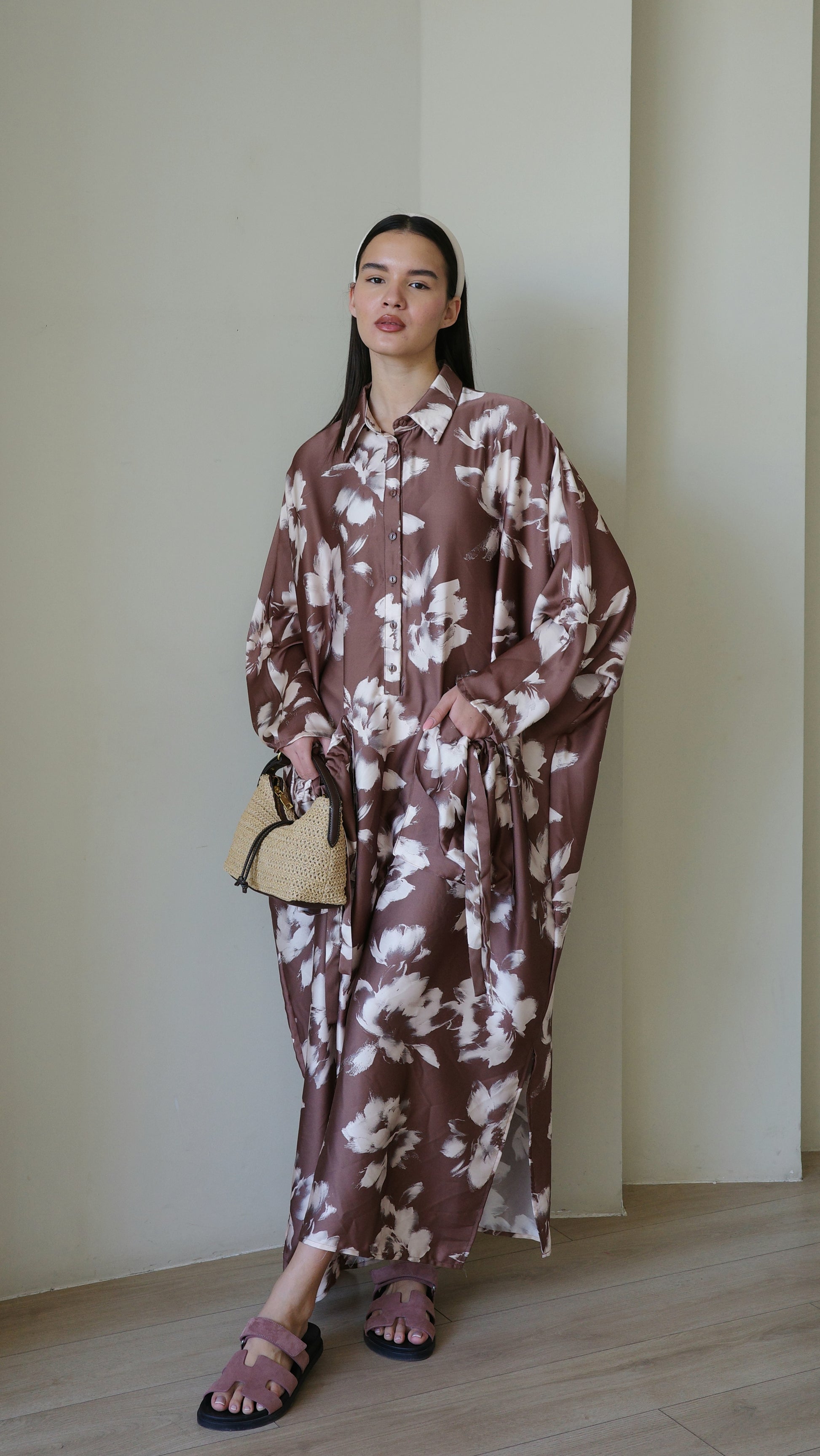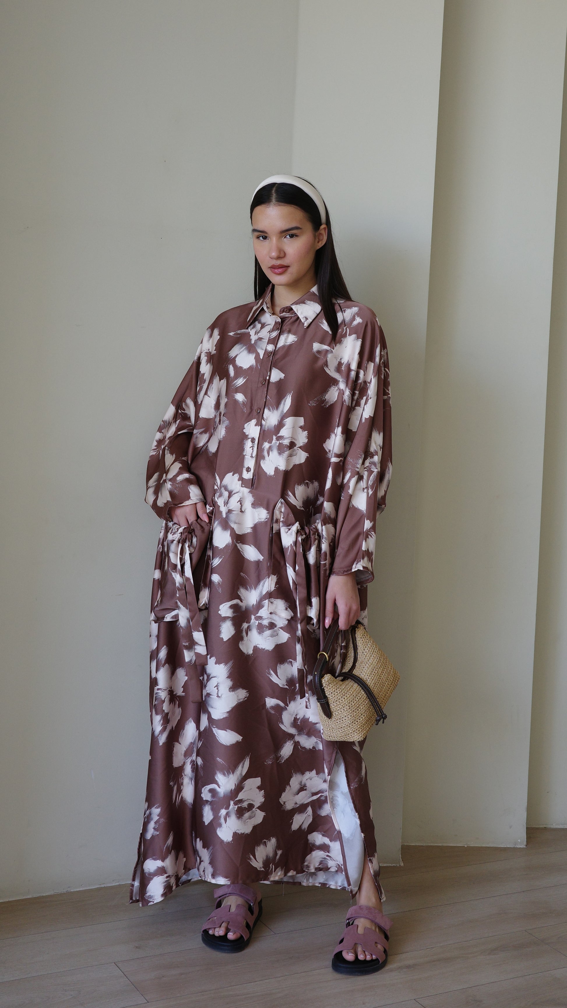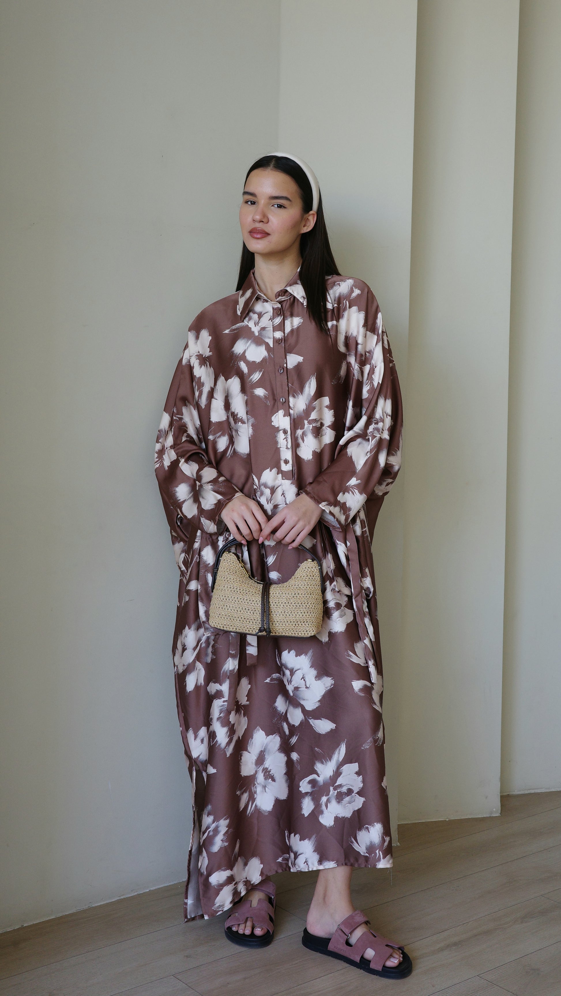 Title: שמלת אוברסיז עטלף אמבר | חום
