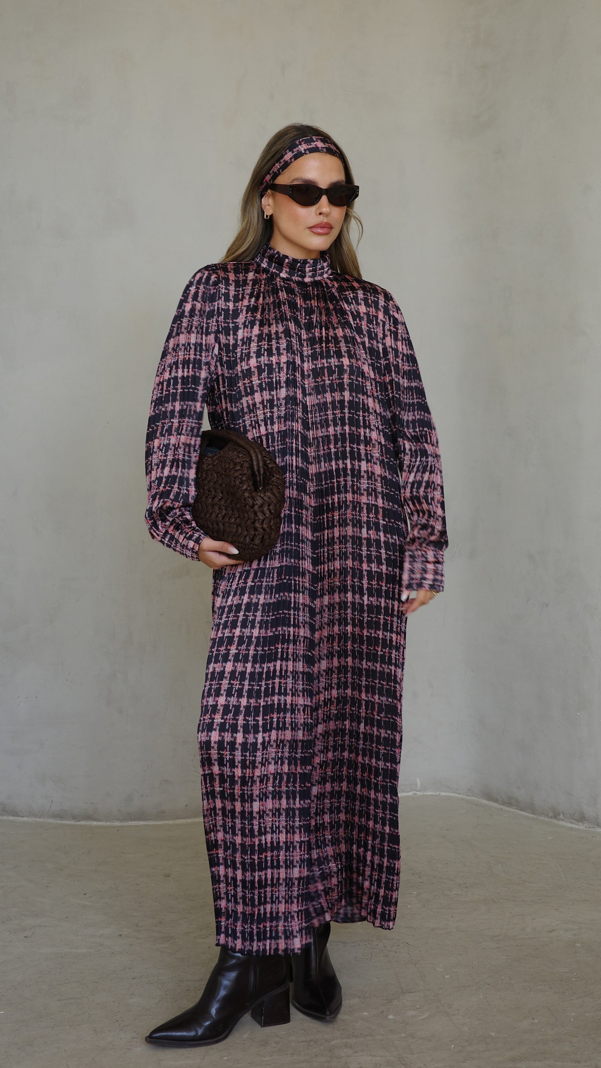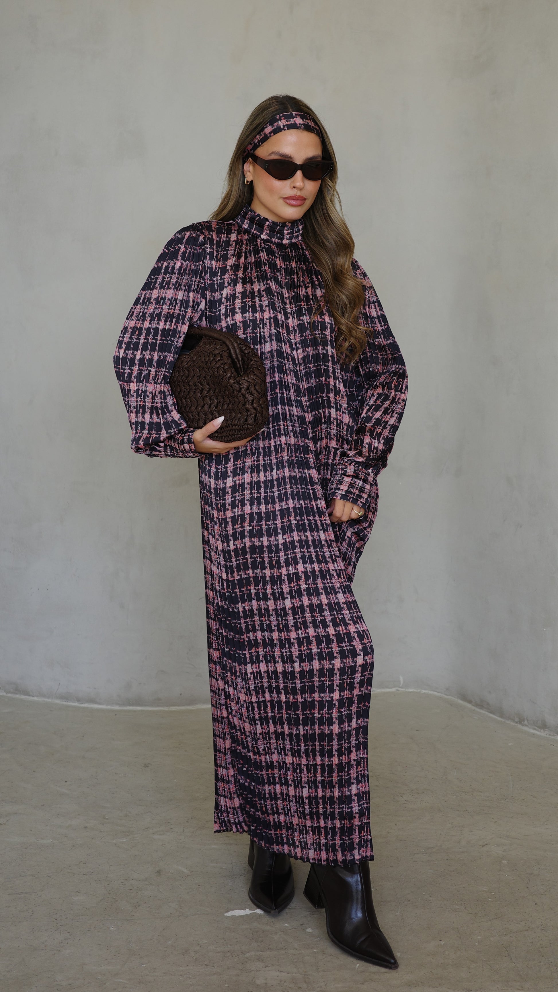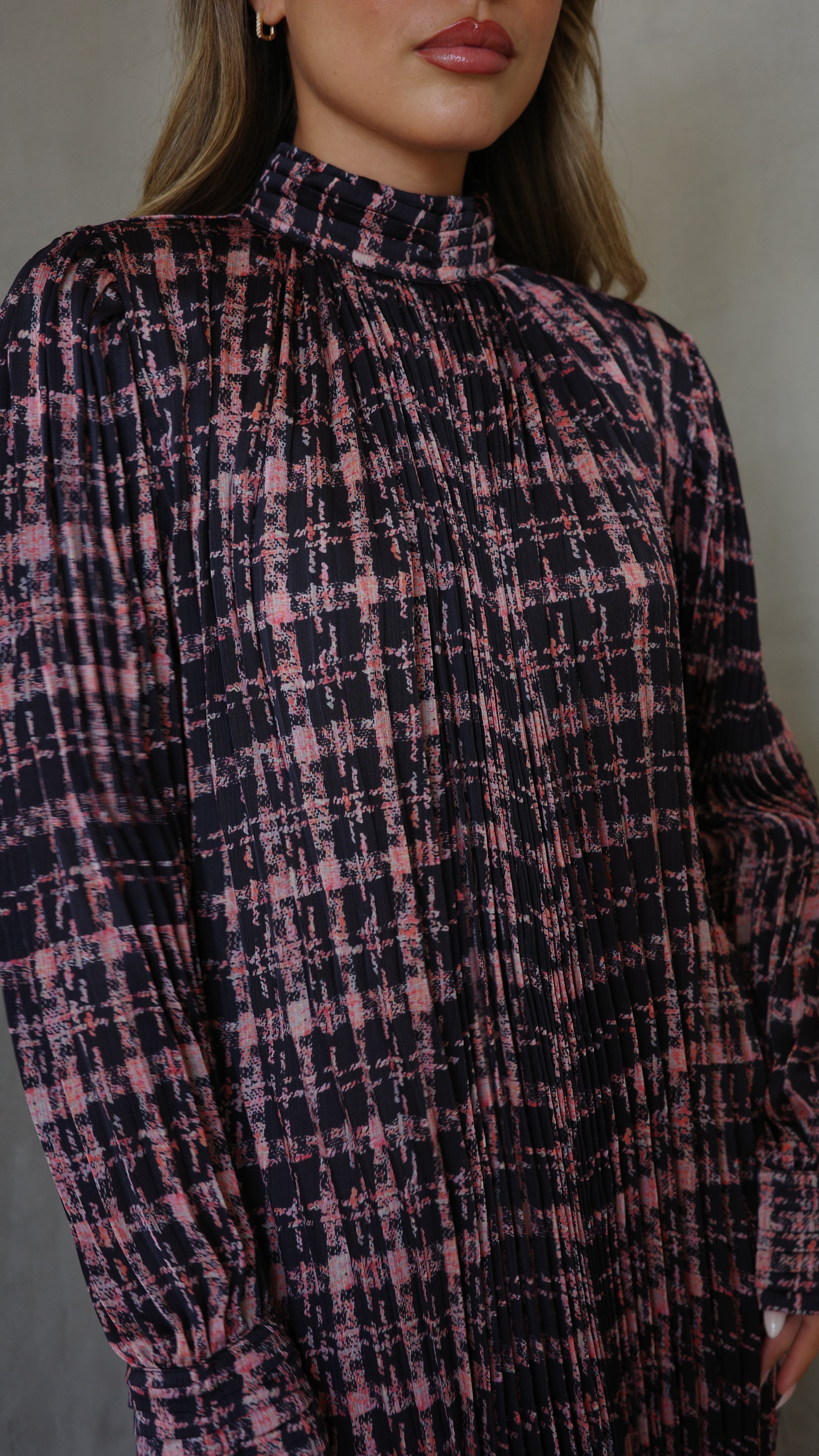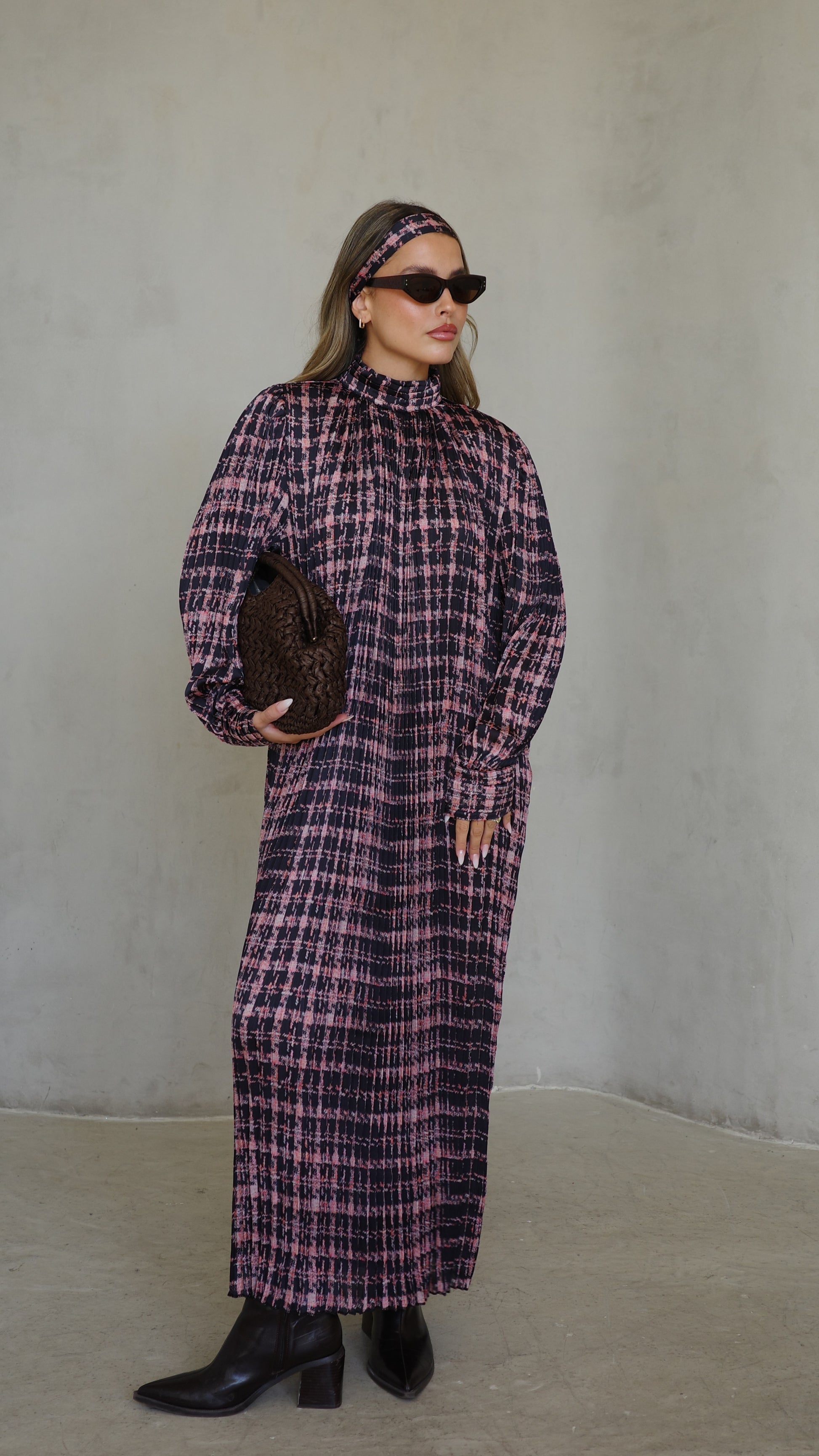 שמלת מידי פליסה קנדרה | שחור/ורוד