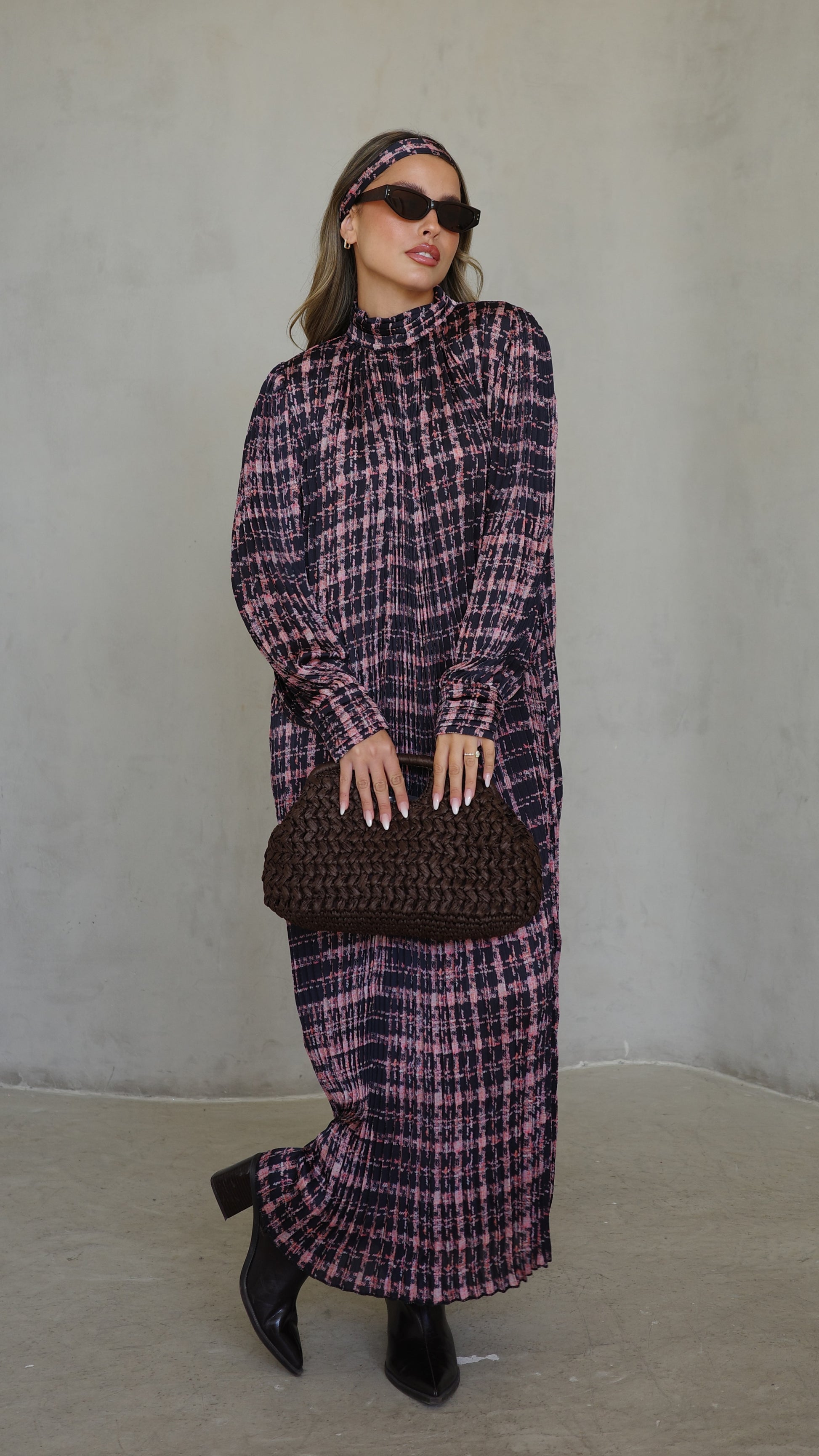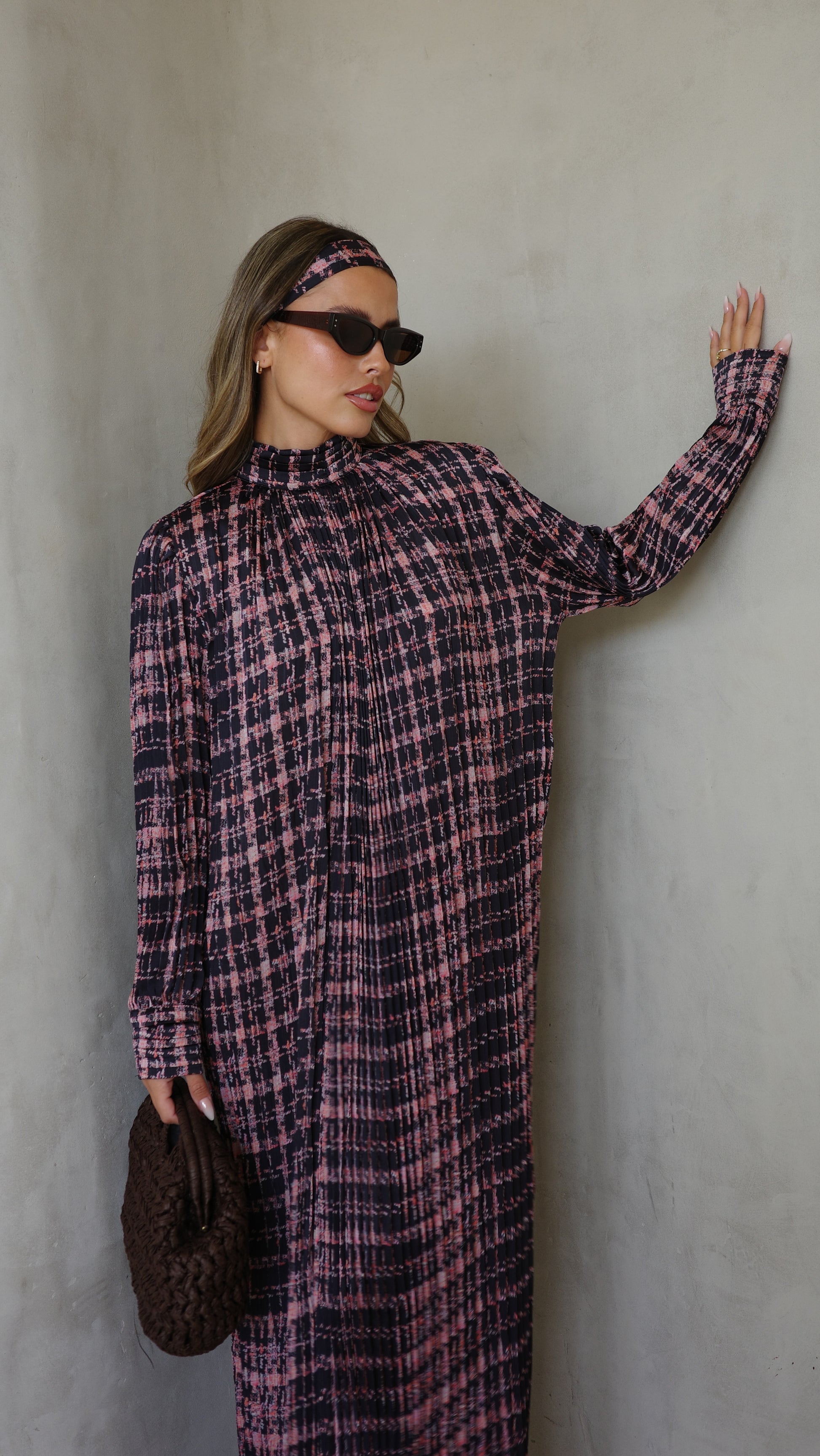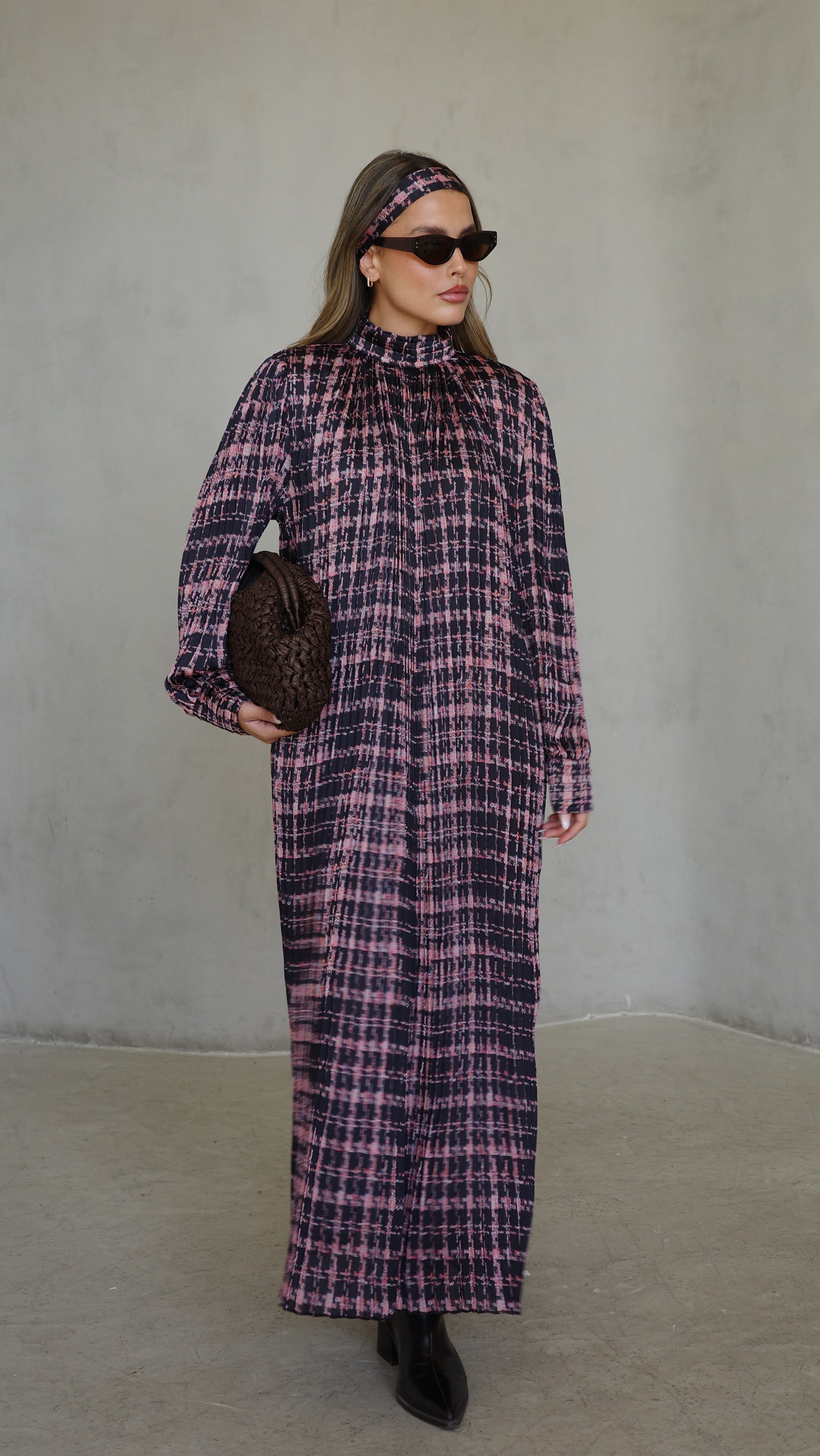 שמלת מידי פליסה קנדרה | שחור/ורוד