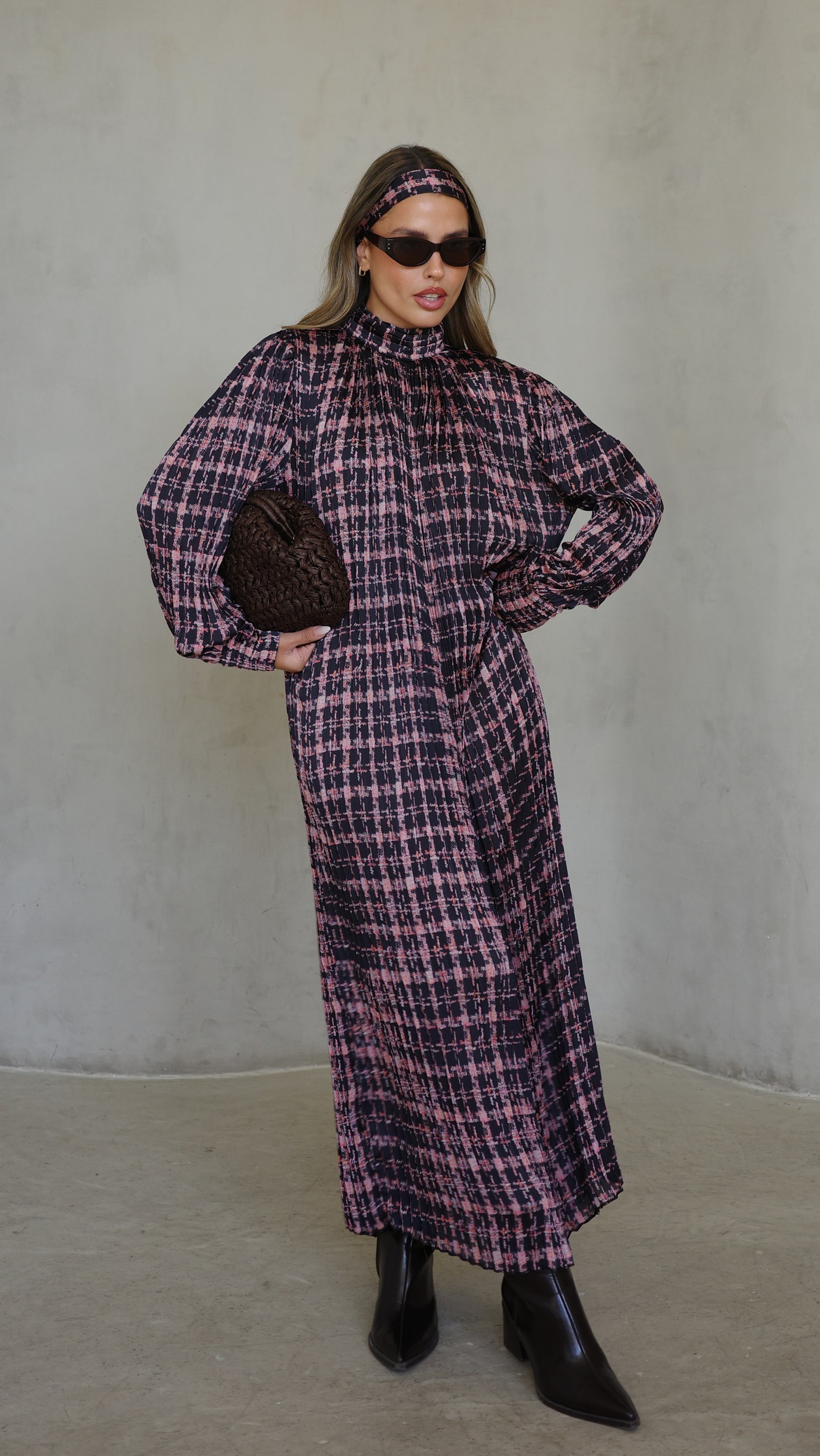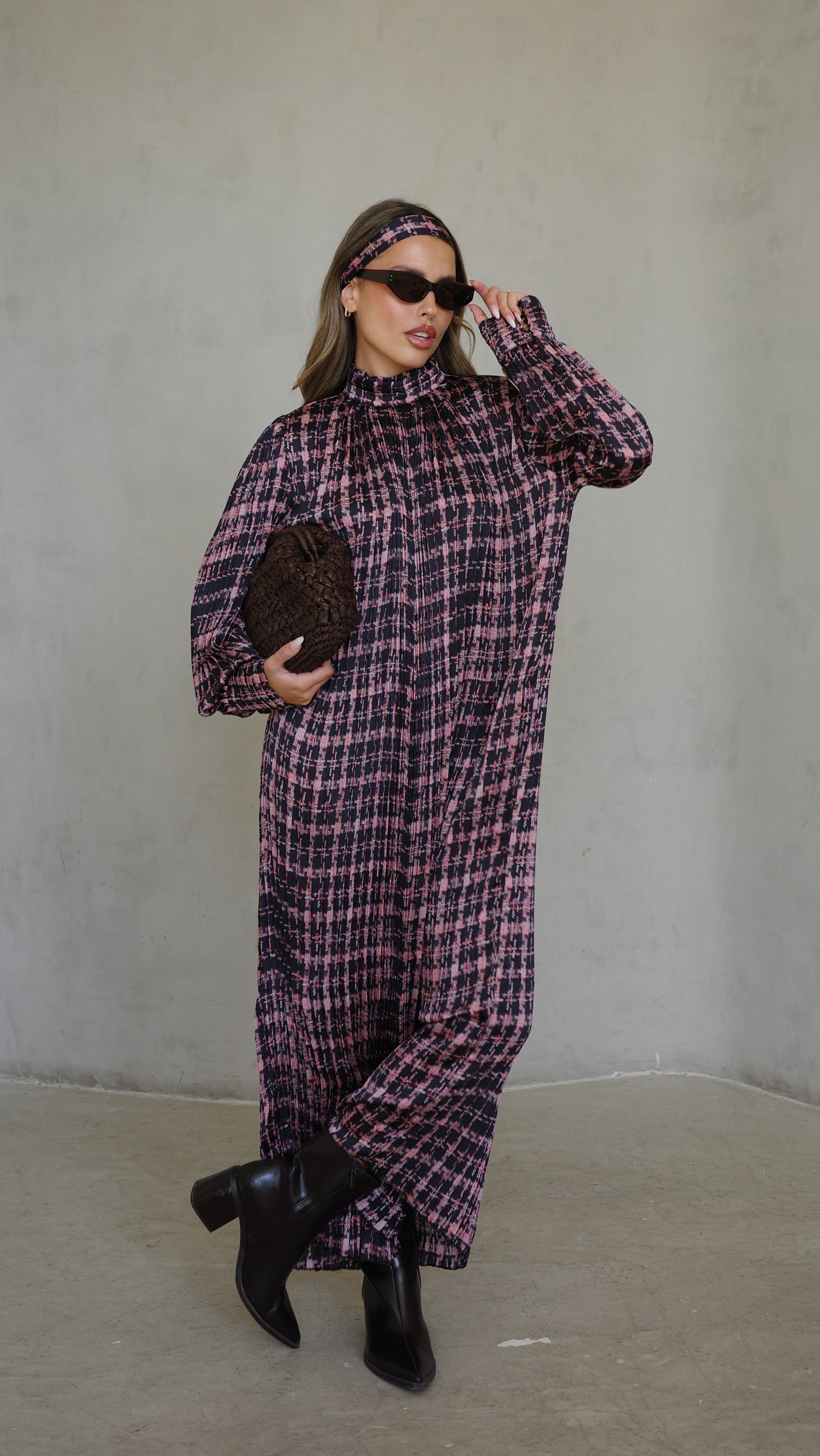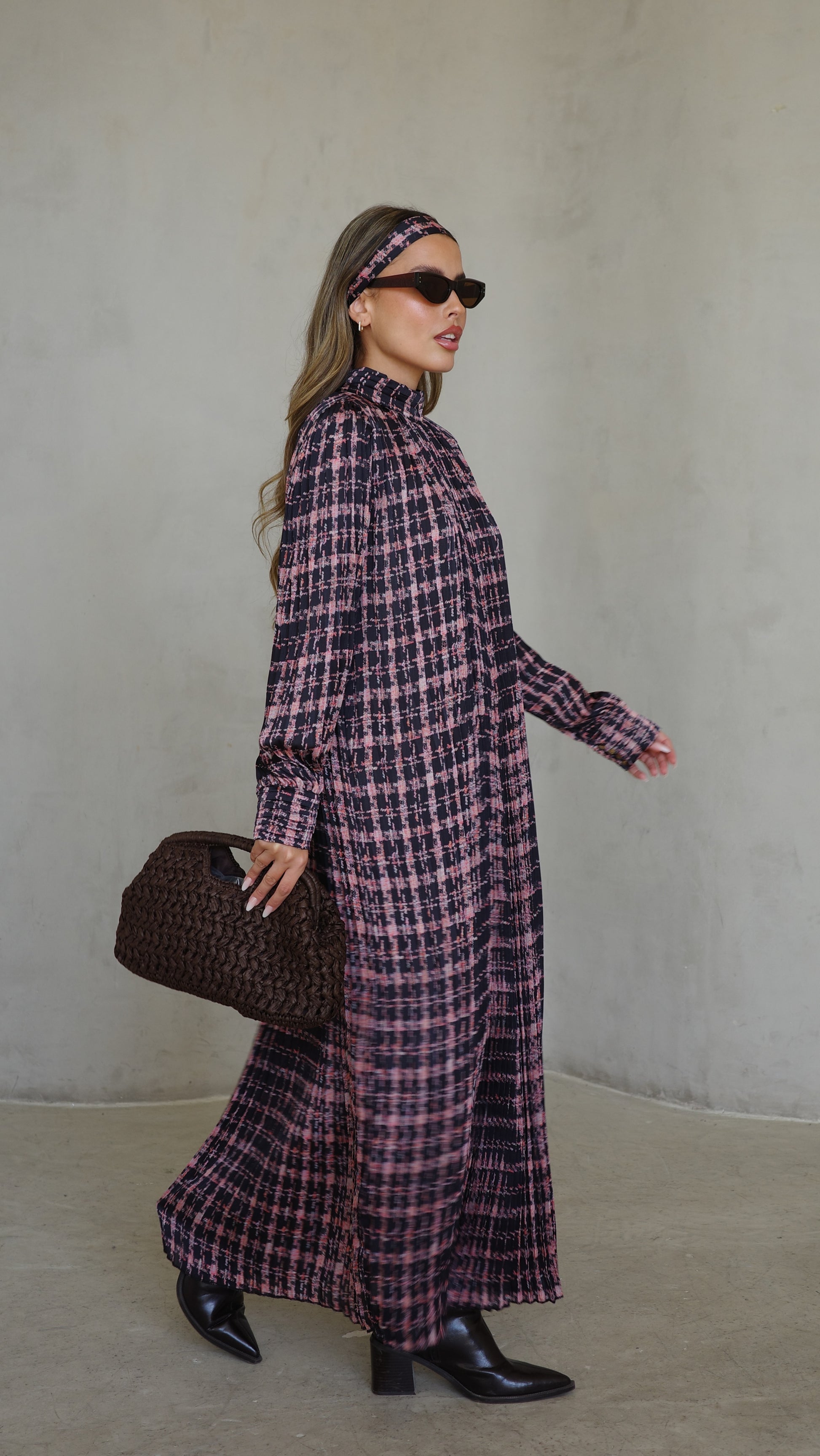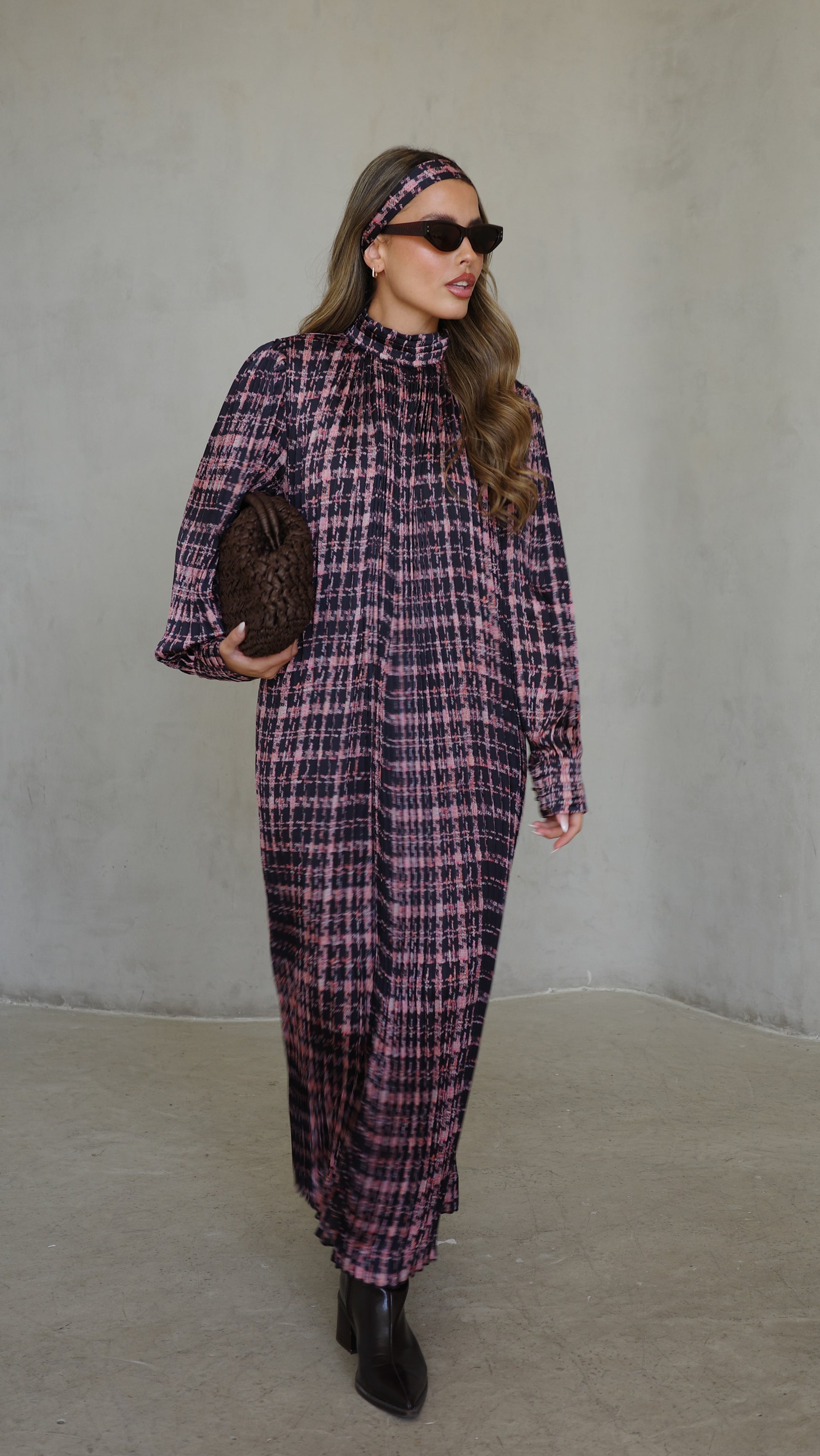 שמלת מידי פליסה קנדרה | שחור/ורוד
