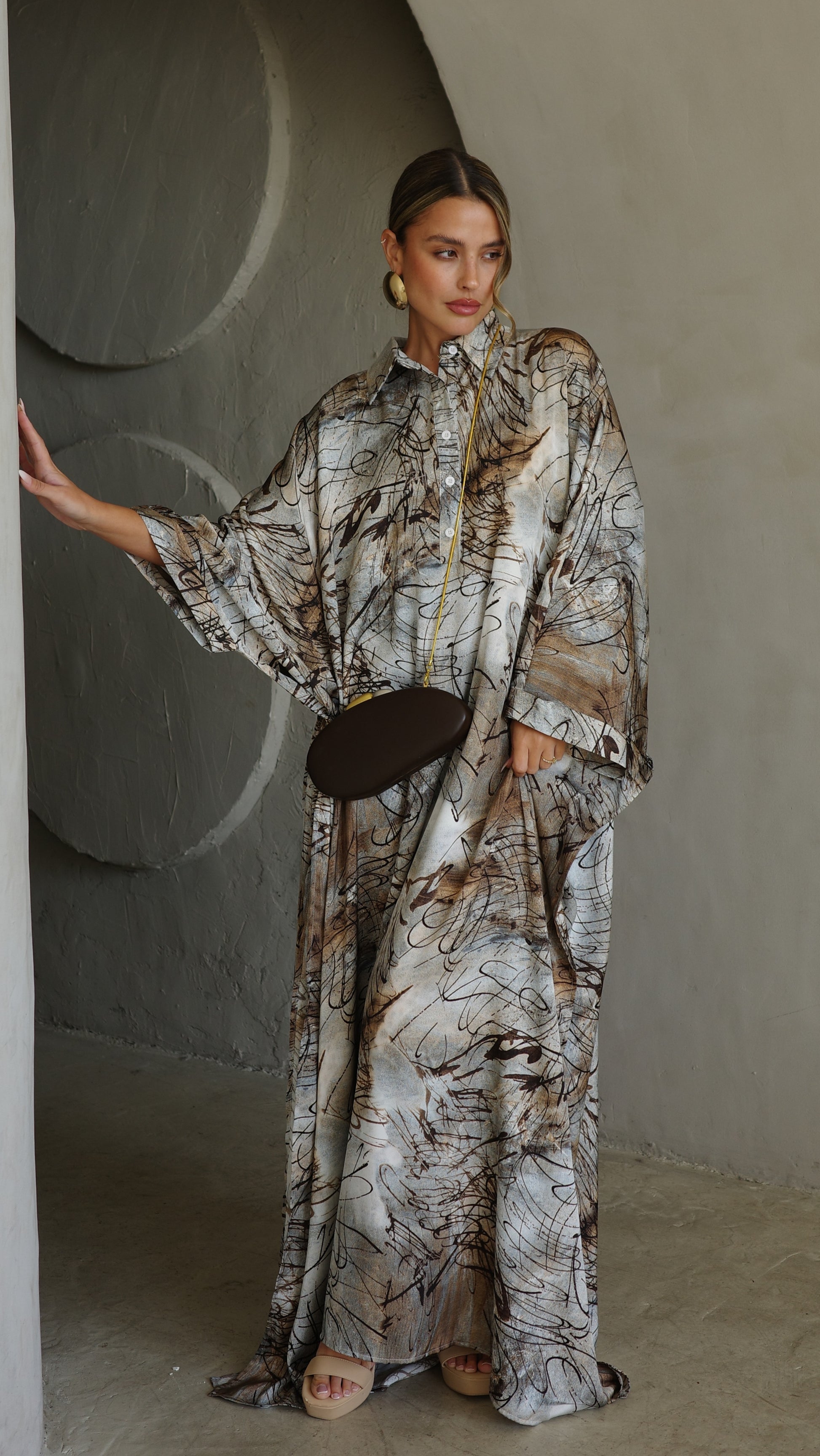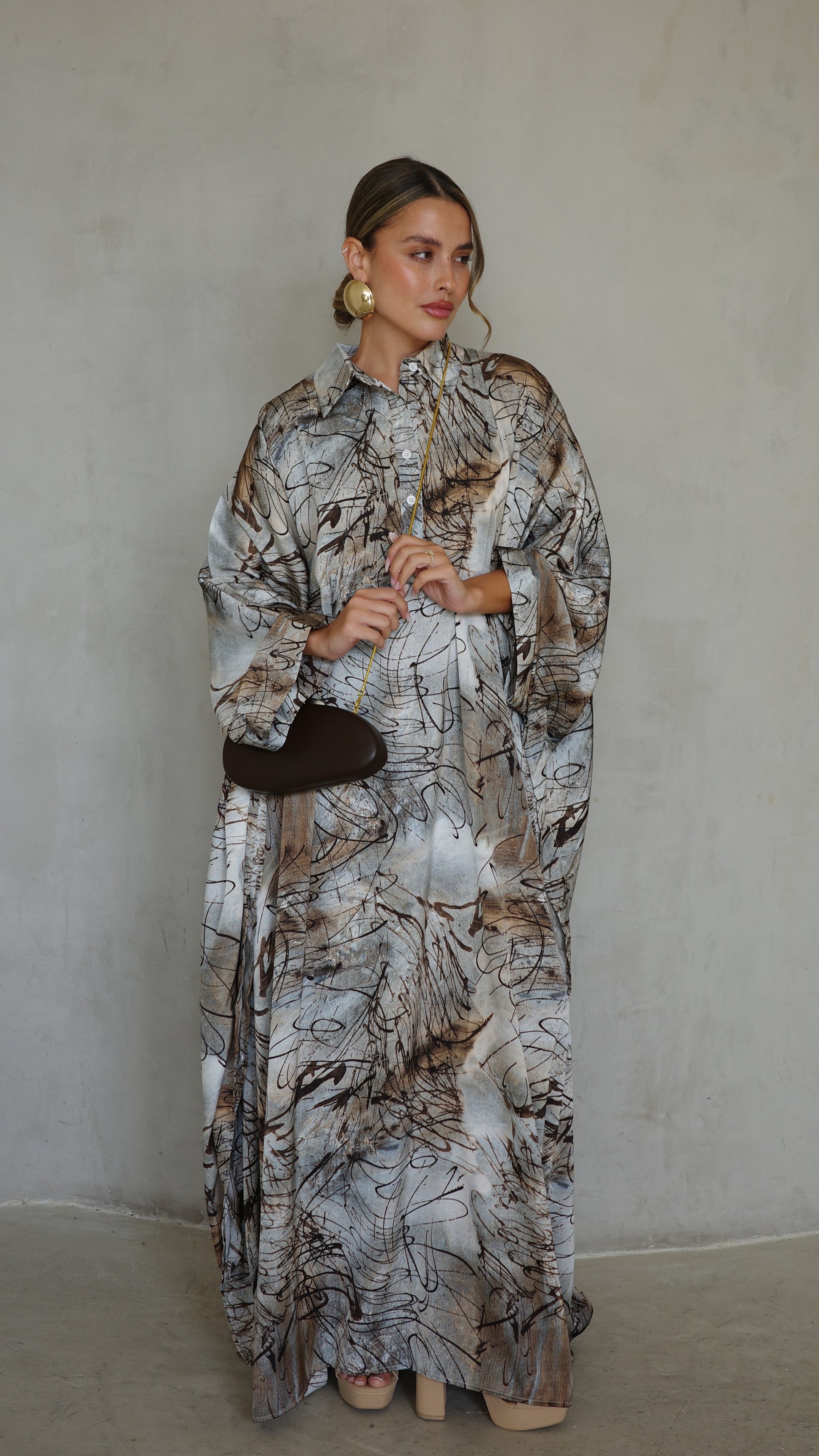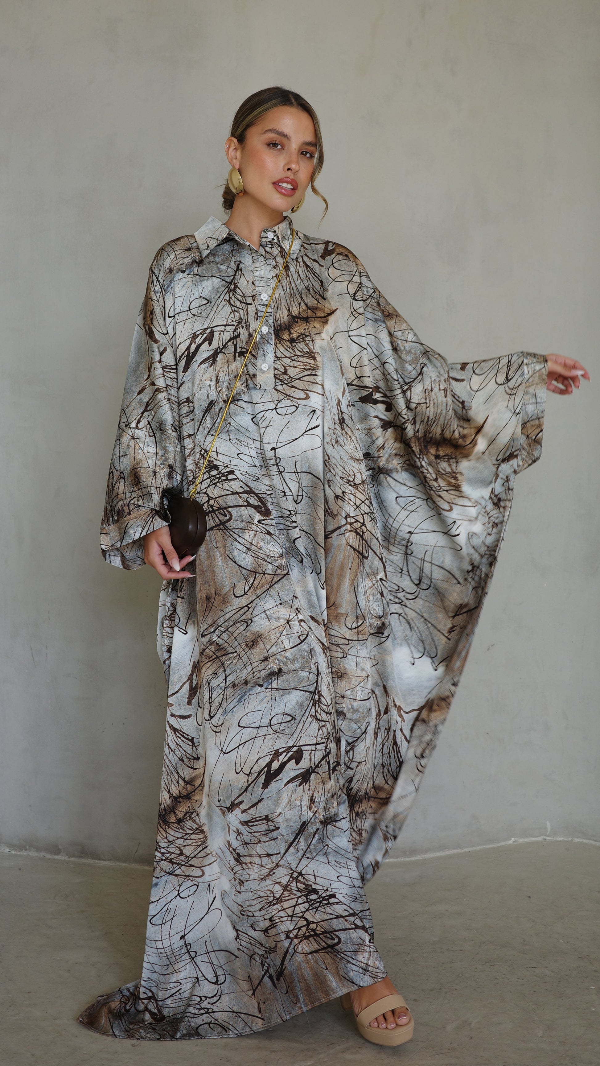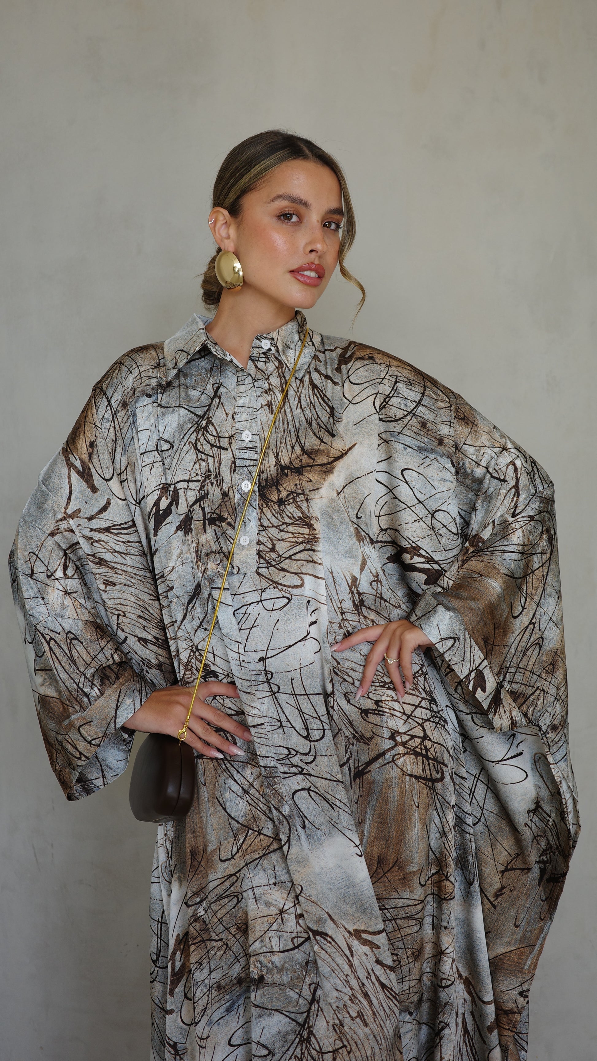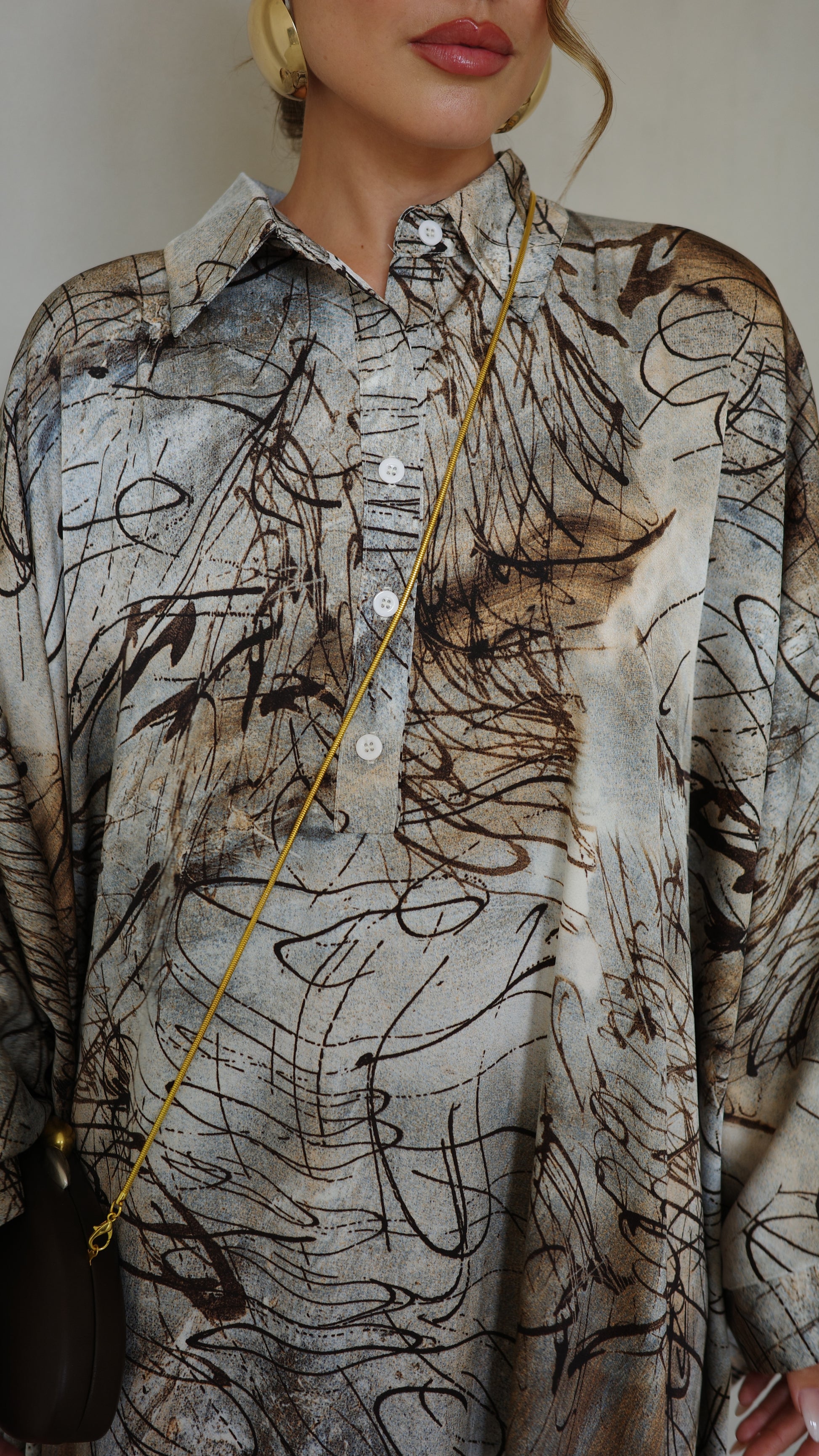 שמלת מקסי אוברסייז סאטן גולייט | בז