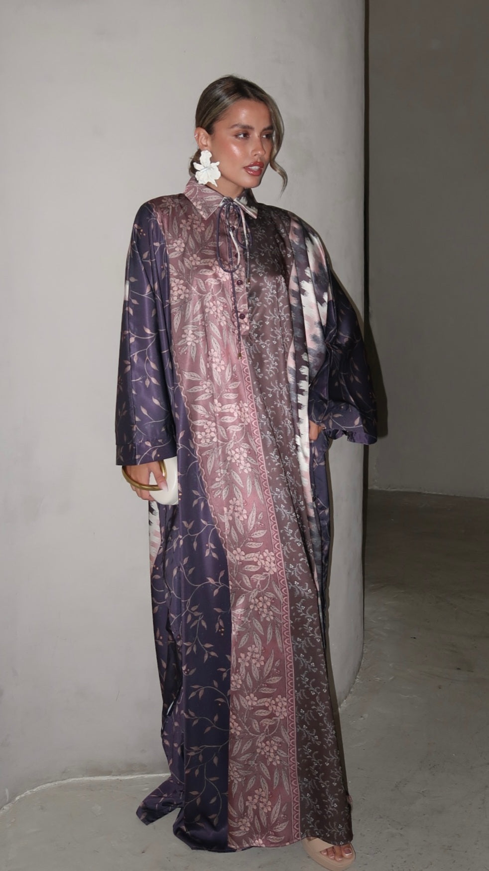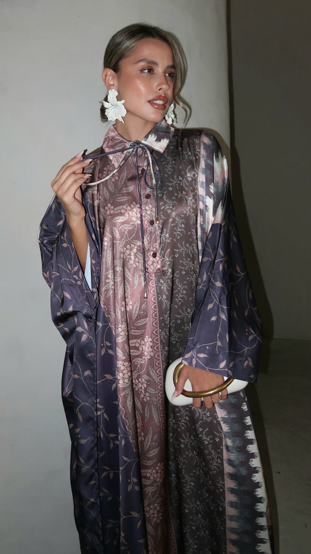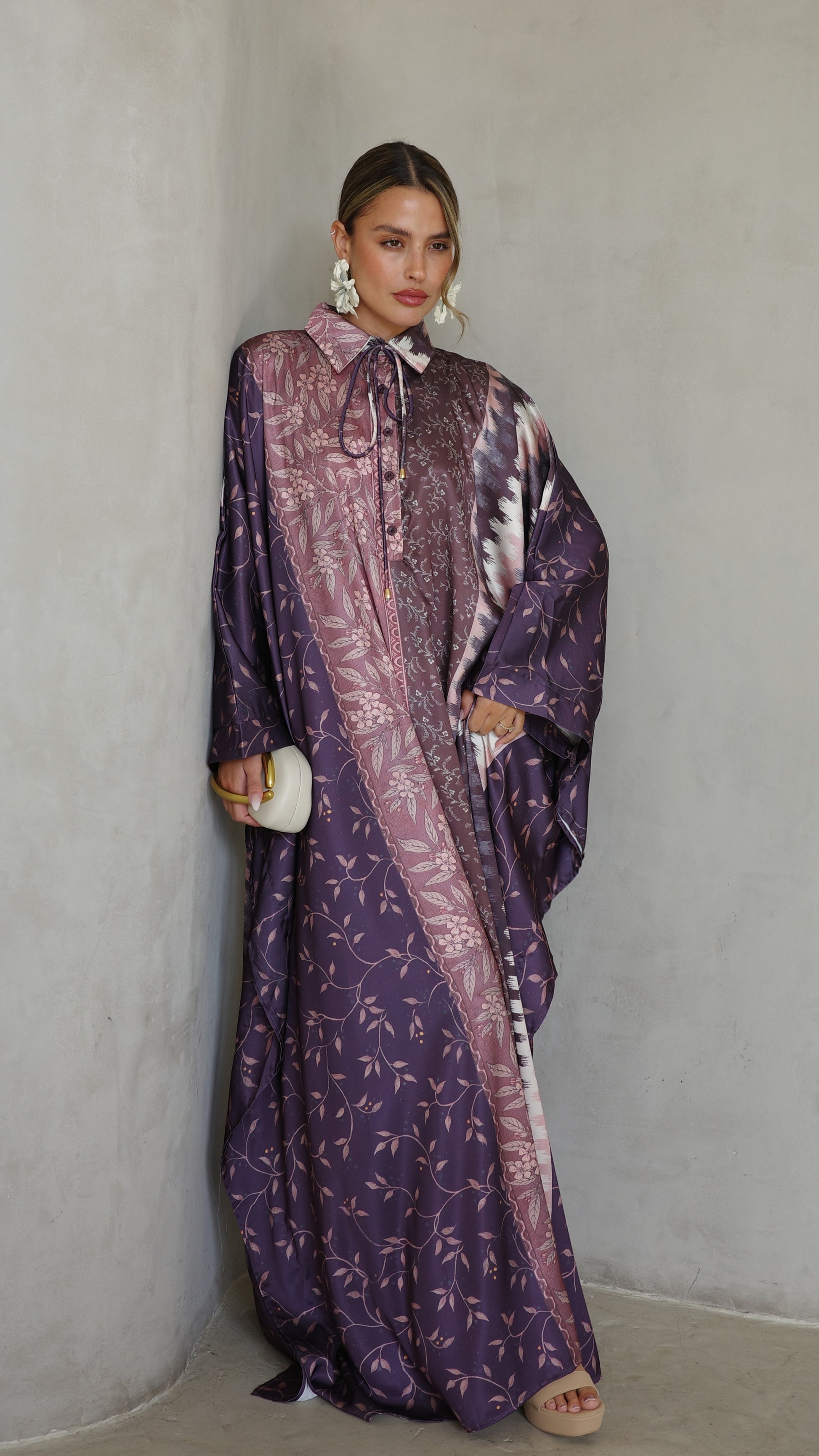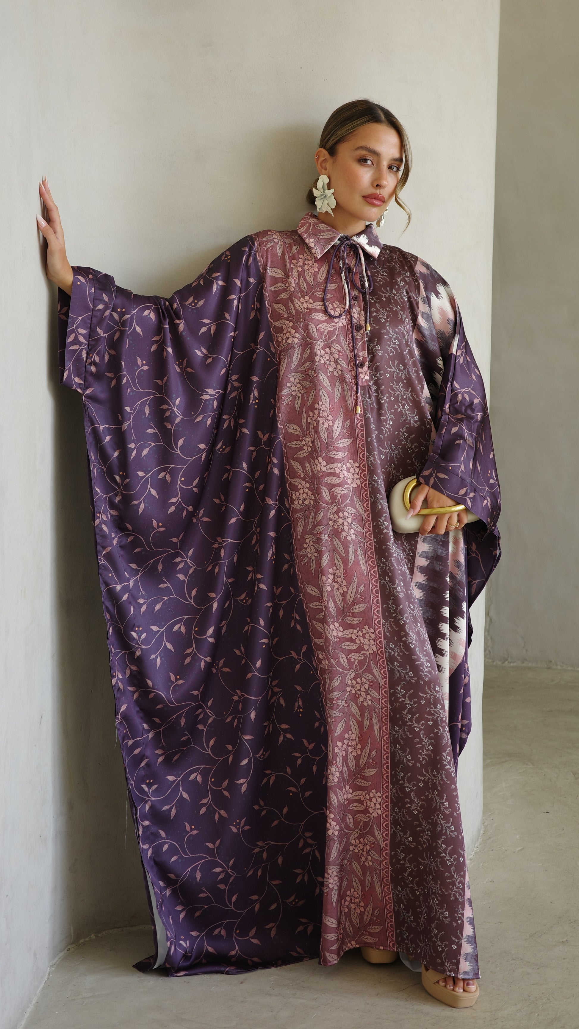 שמלת מקסי אוברסייז סאטן גולייט | סגול/ורוד