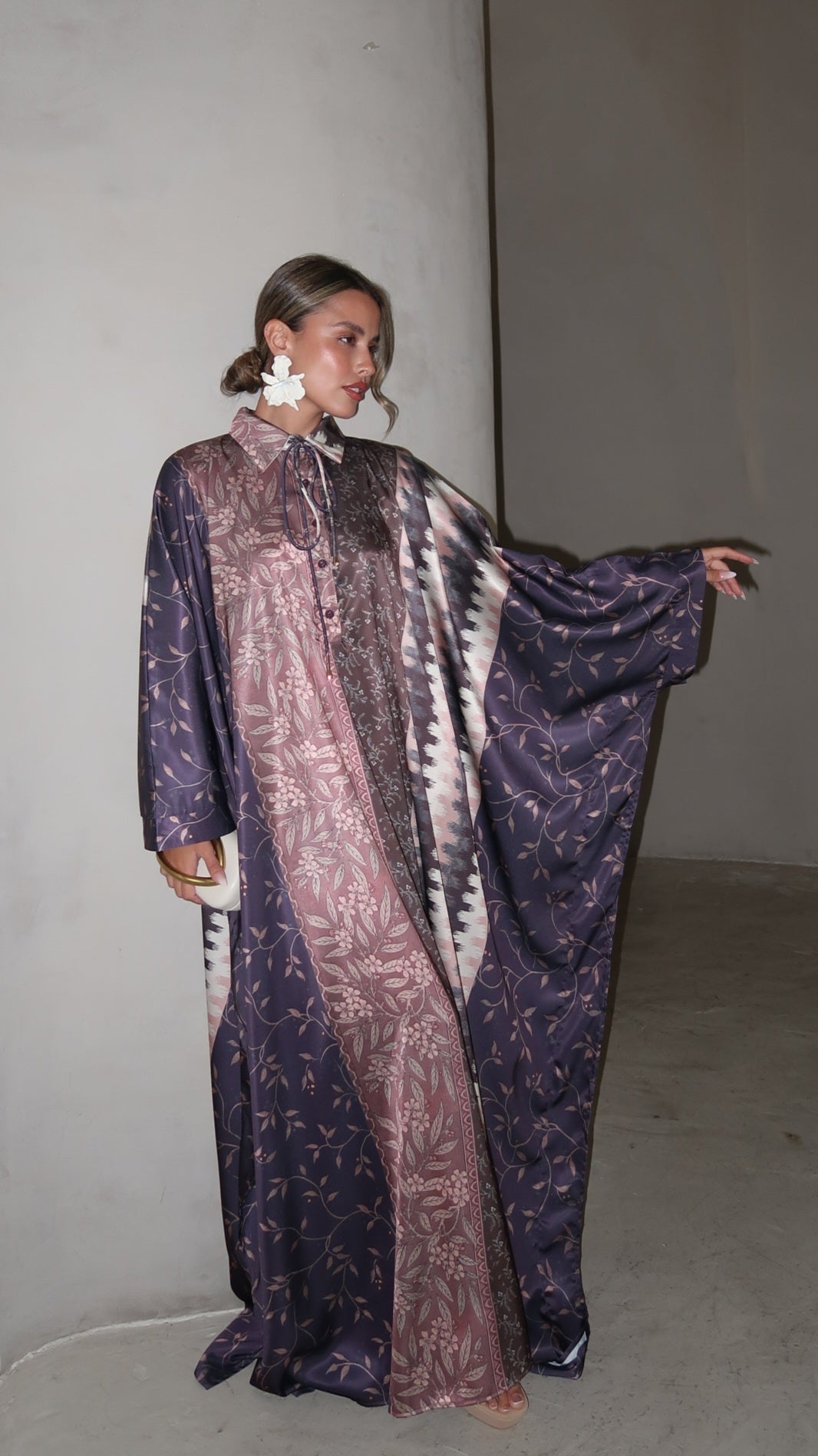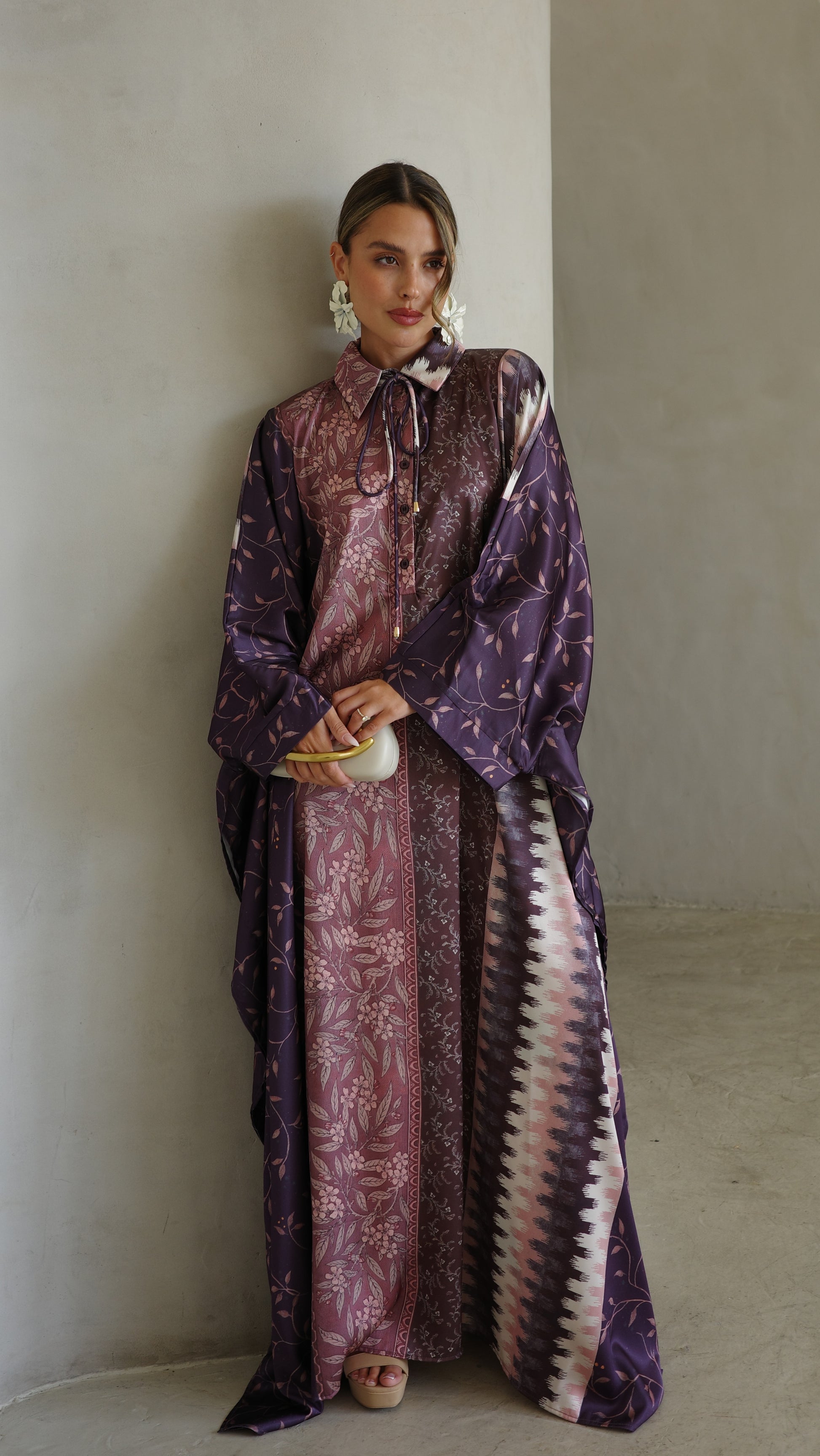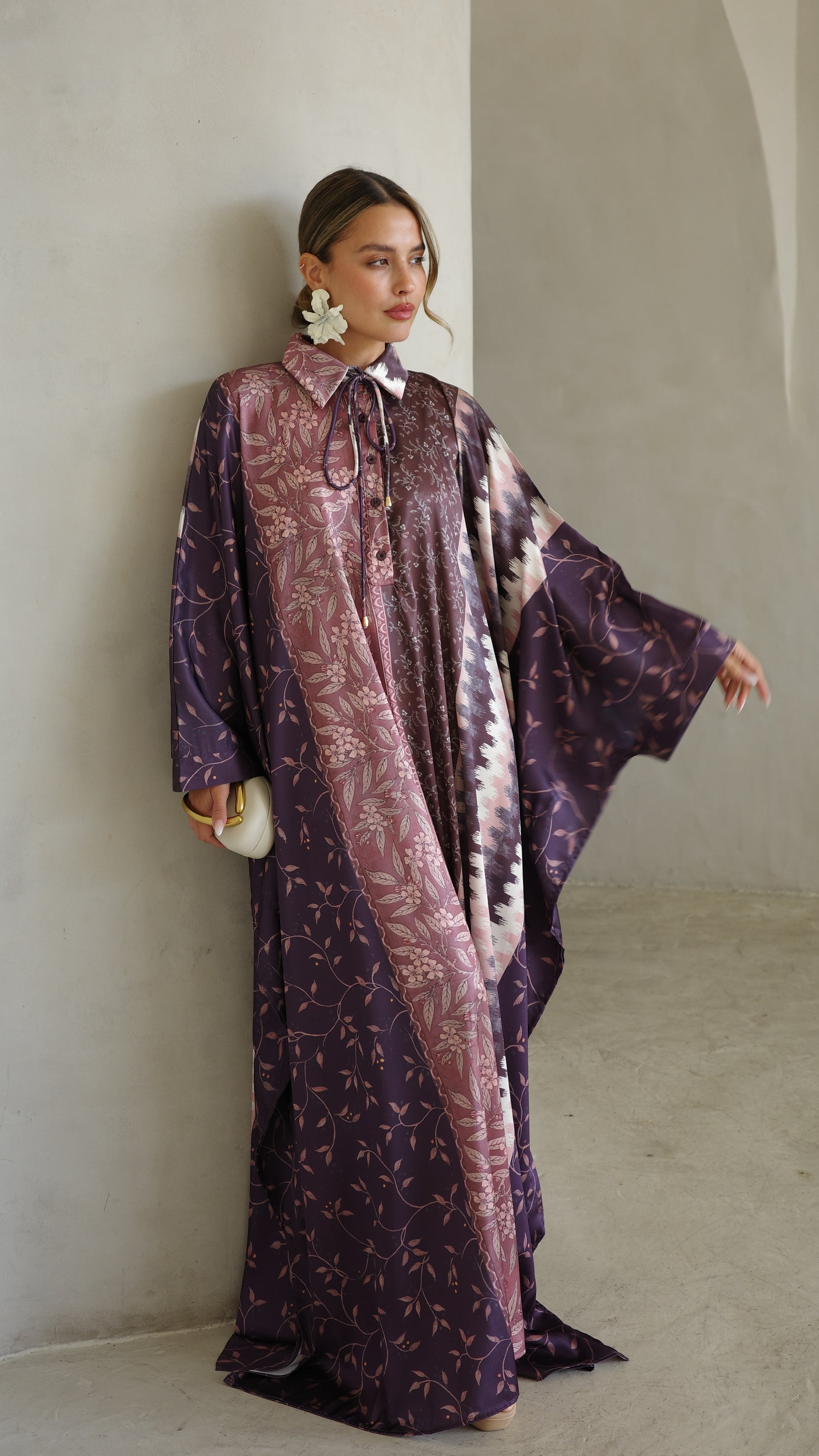 שמלת מקסי אוברסייז סאטן גולייט | סגול/ורוד