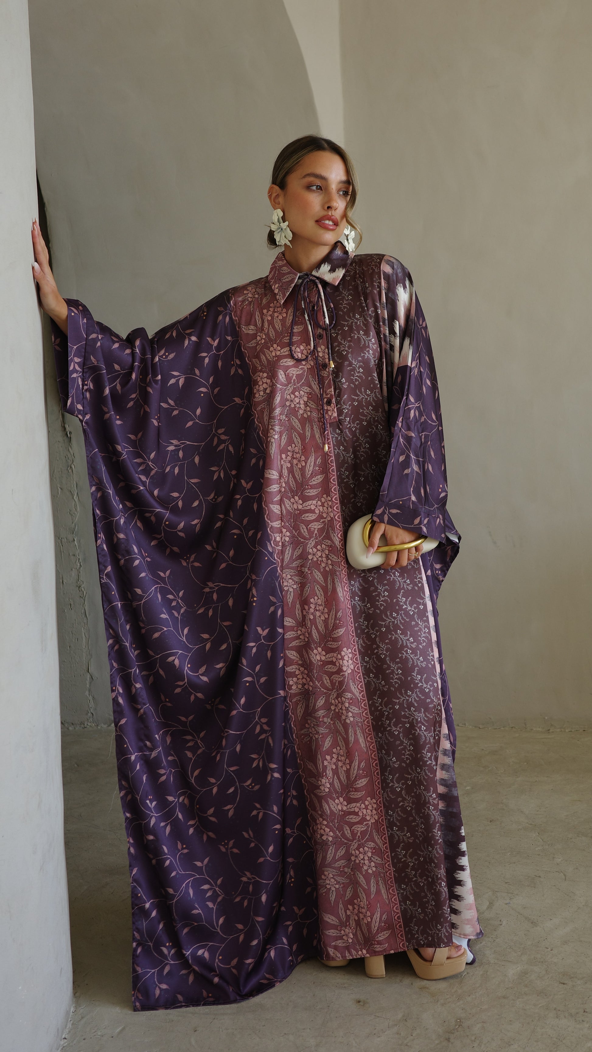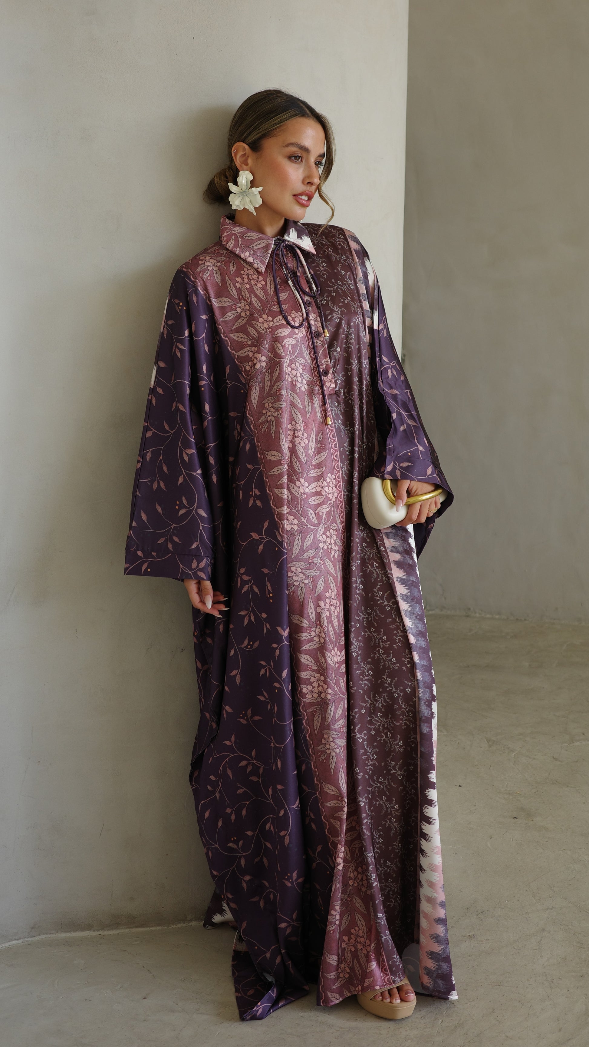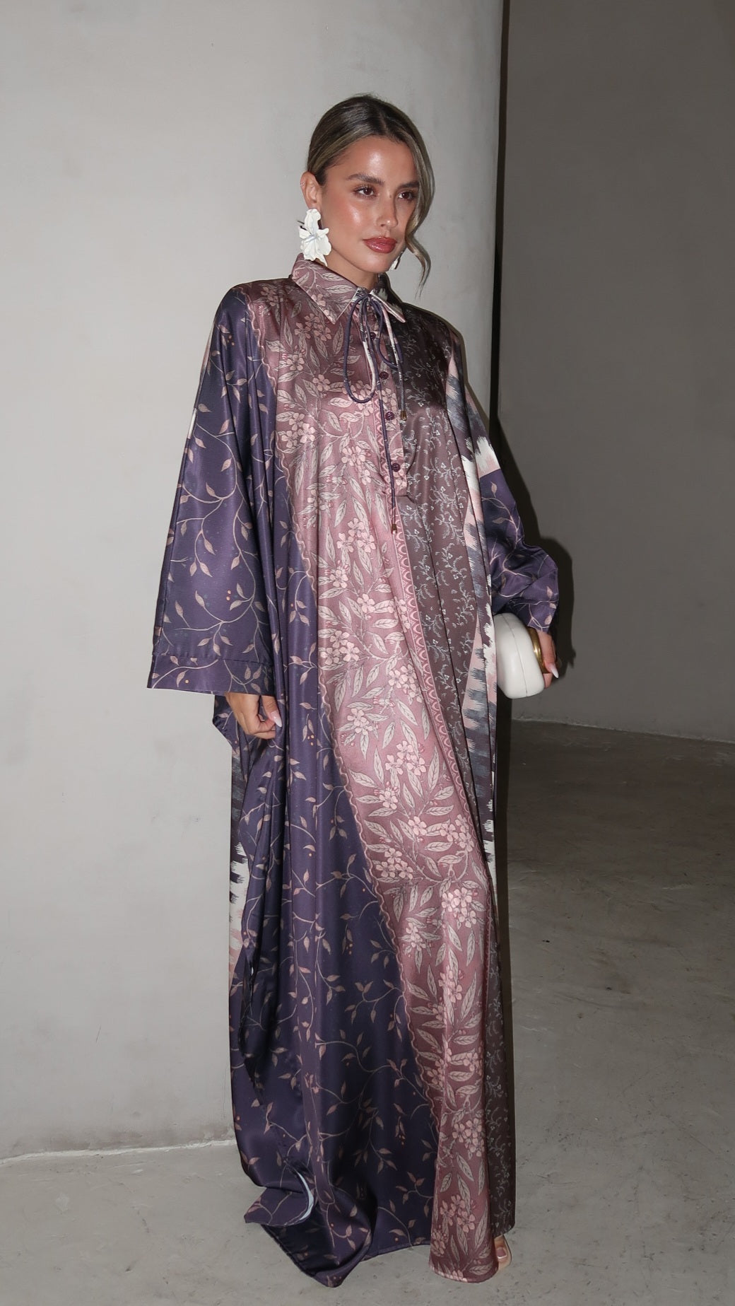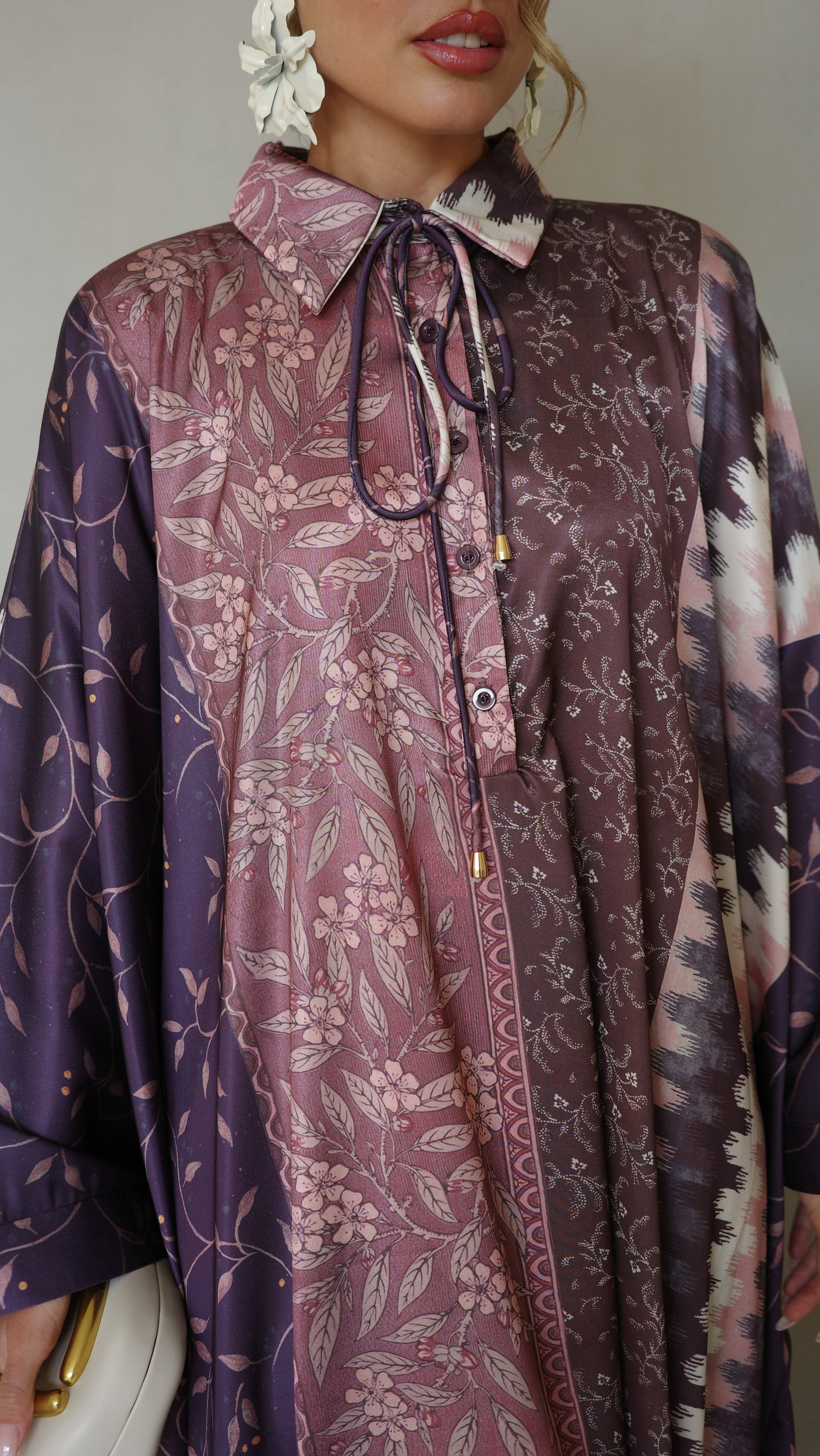 שמלת מקסי אוברסייז סאטן גולייט | סגול/ורוד