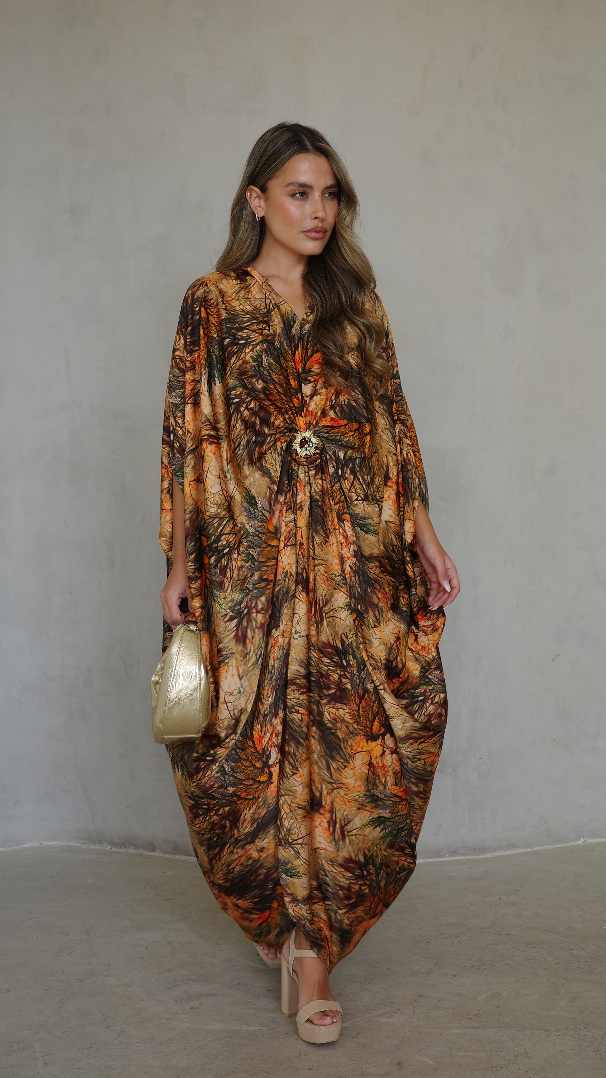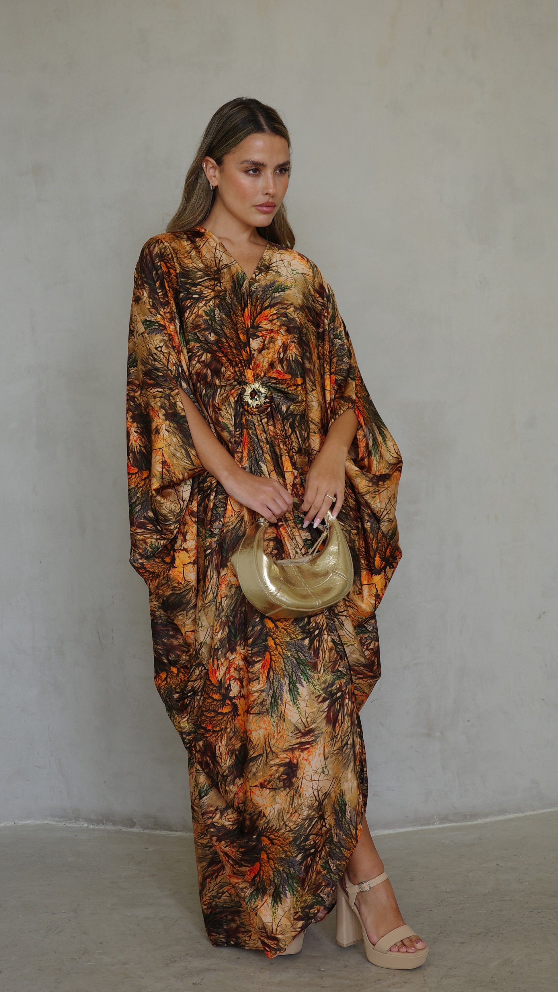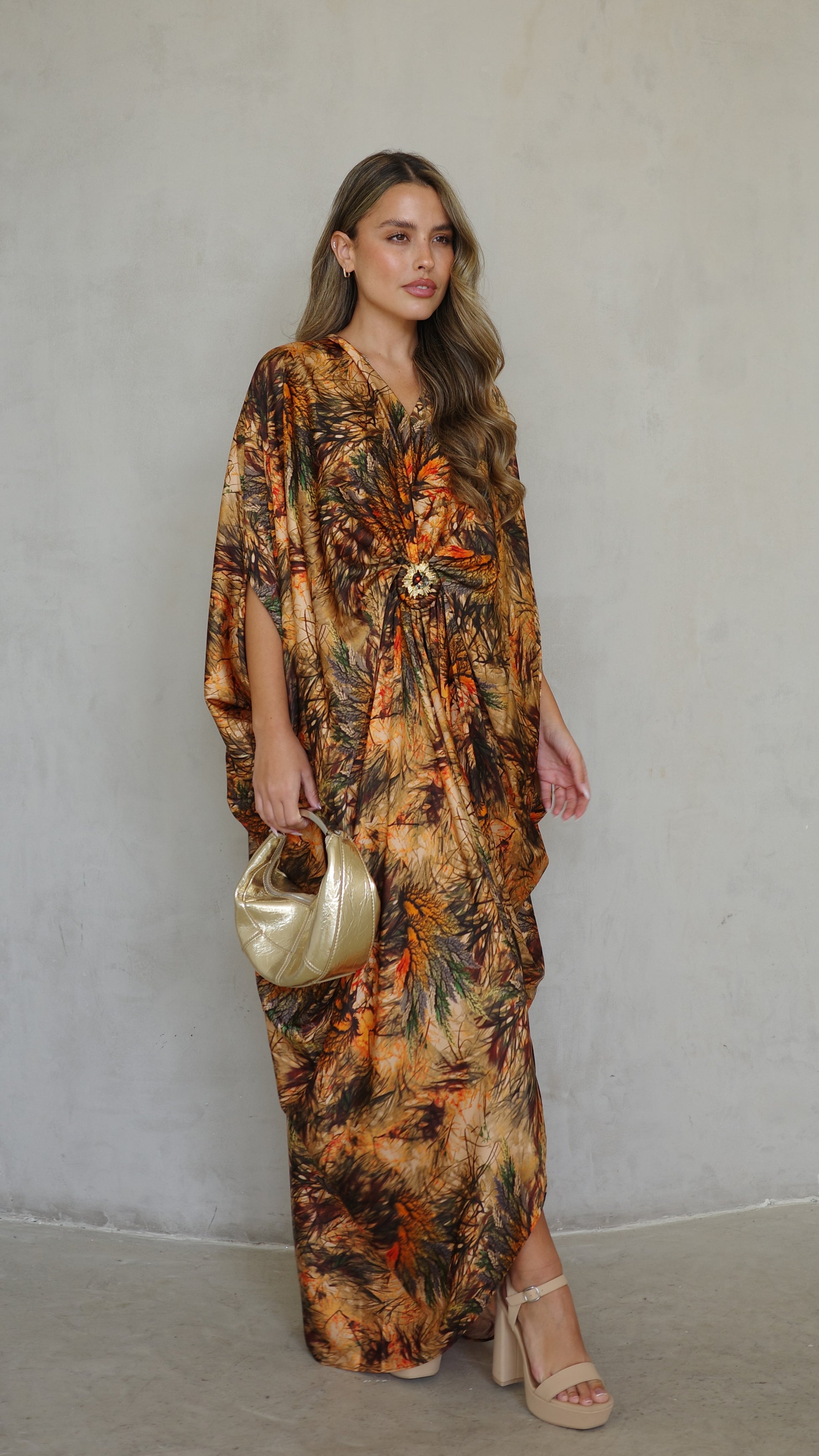 שמלת עטלף כיווצים אבזם פירנצה | בז/כתום