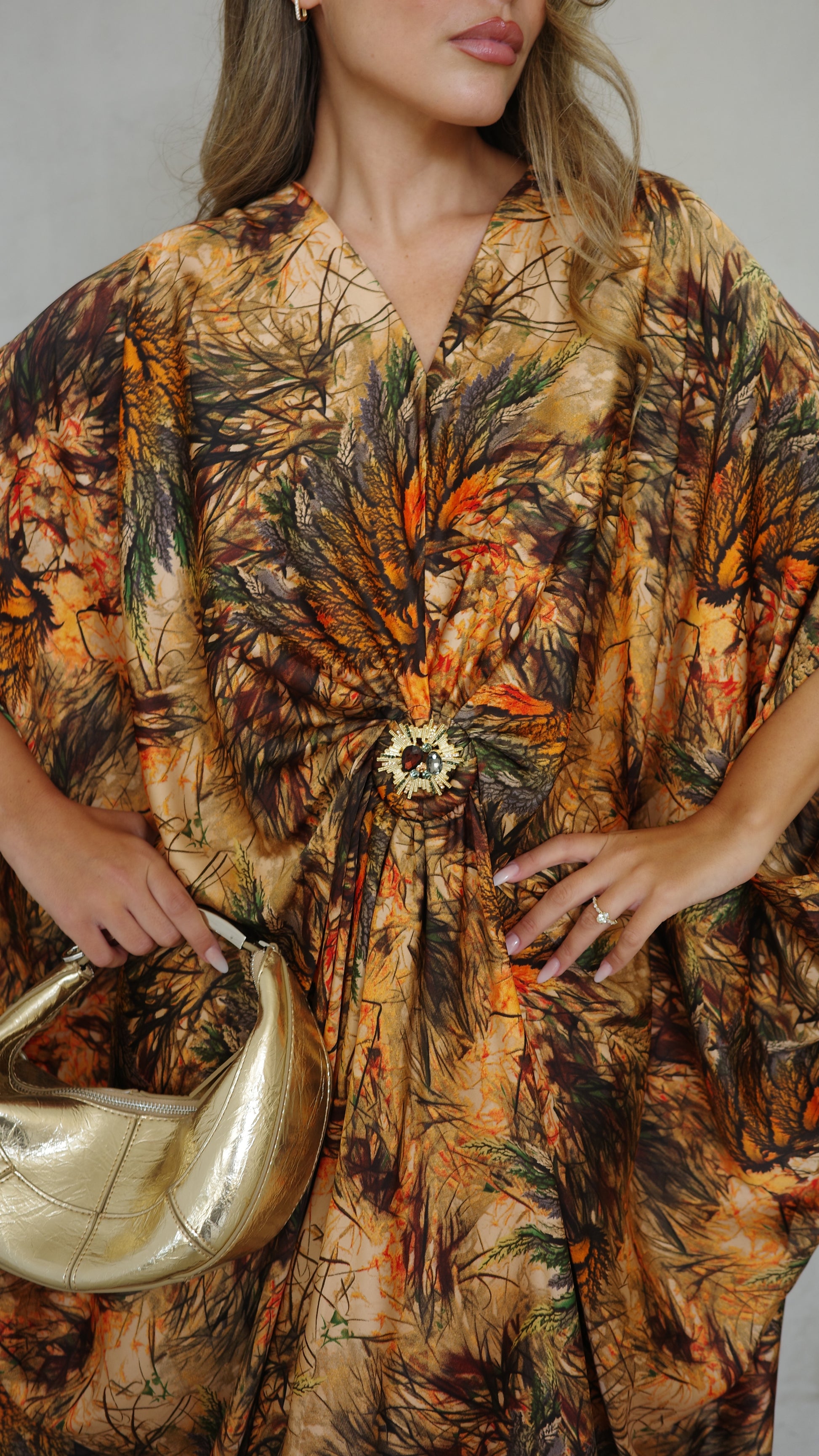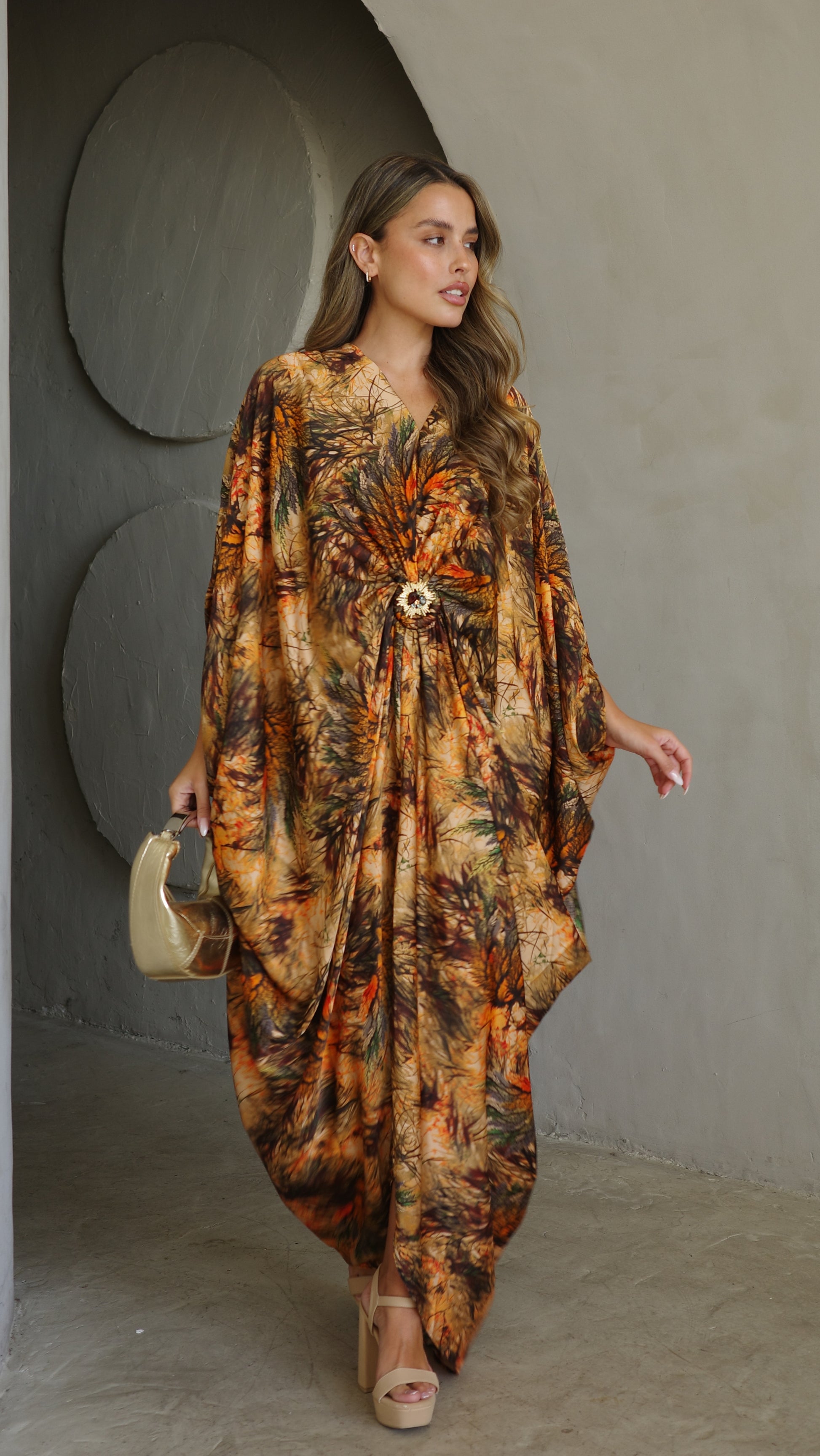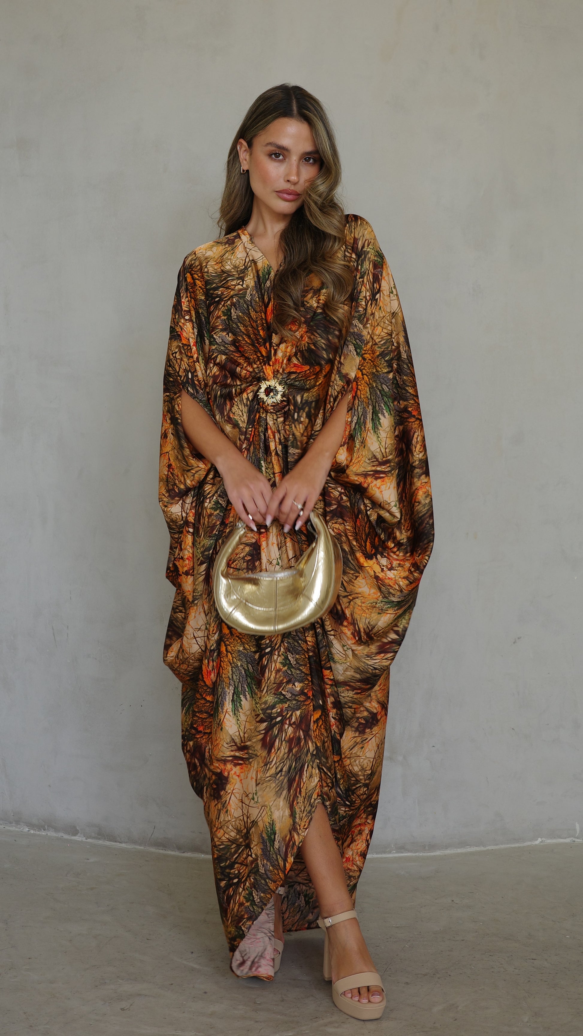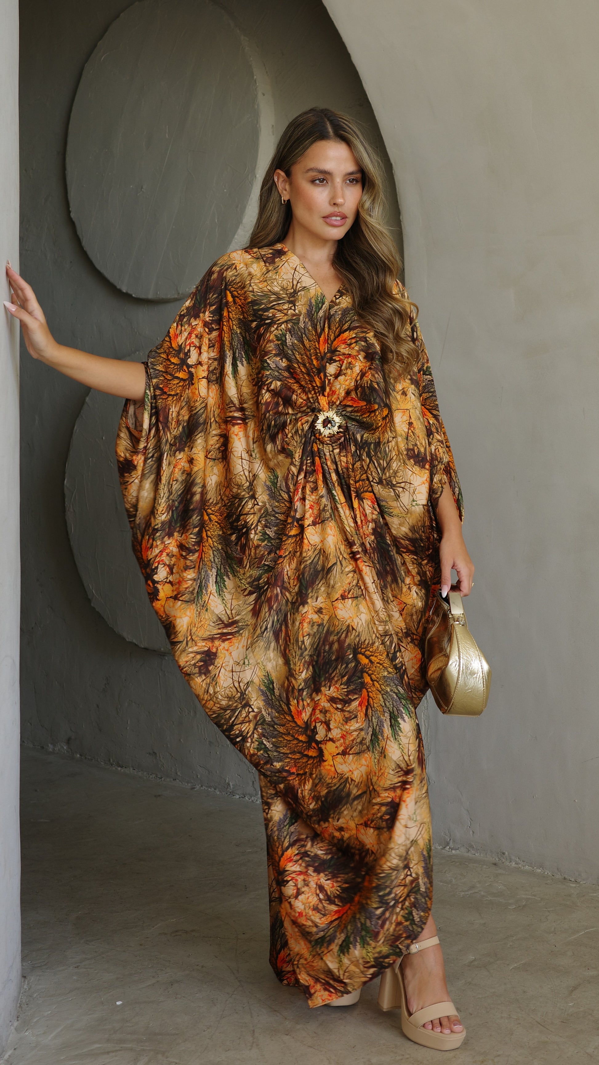 שמלת עטלף כיווצים אבזם פירנצה | בז/כתום