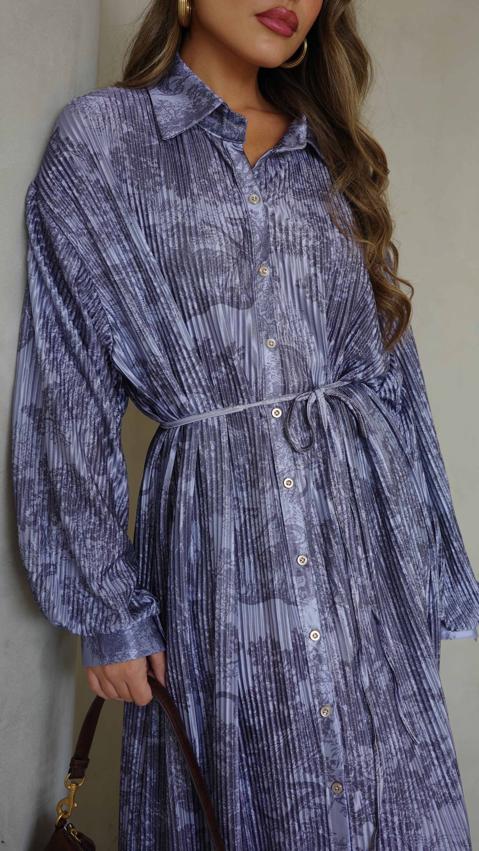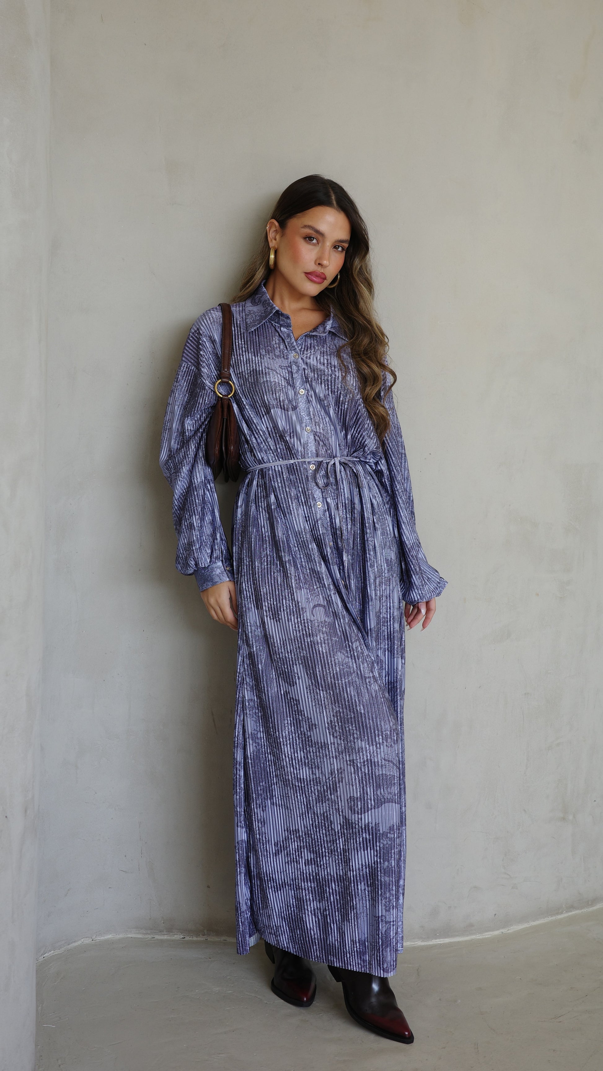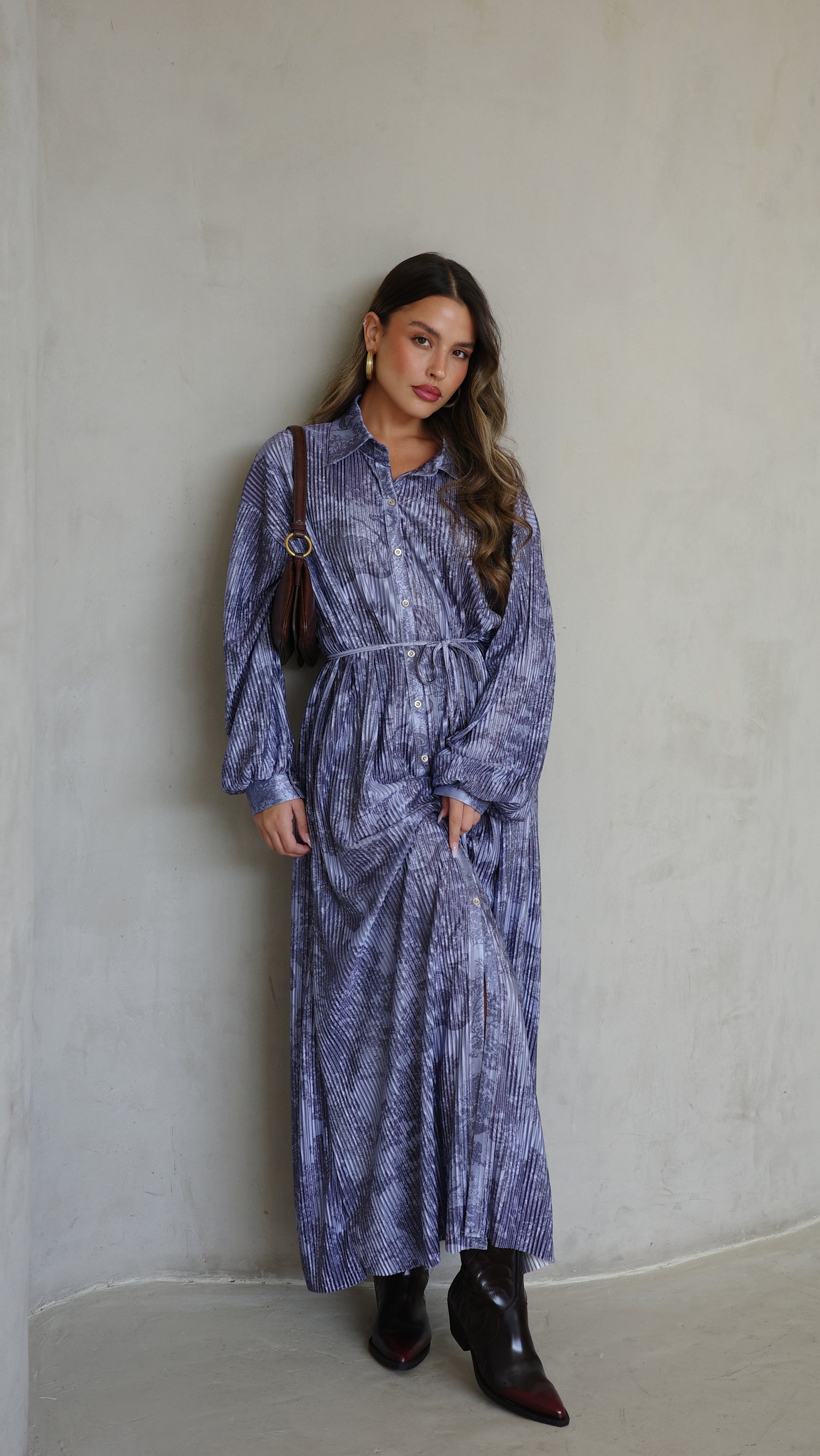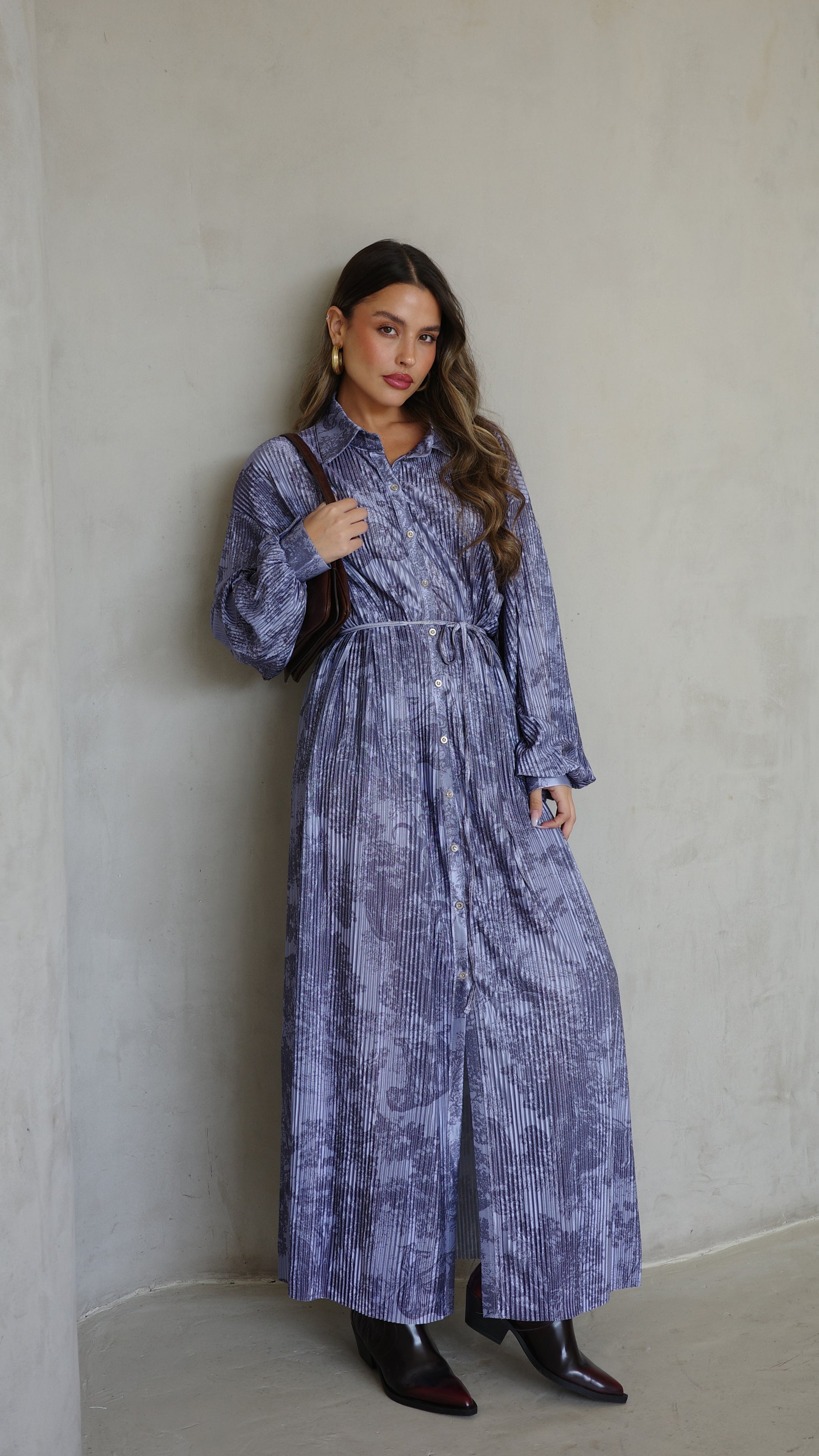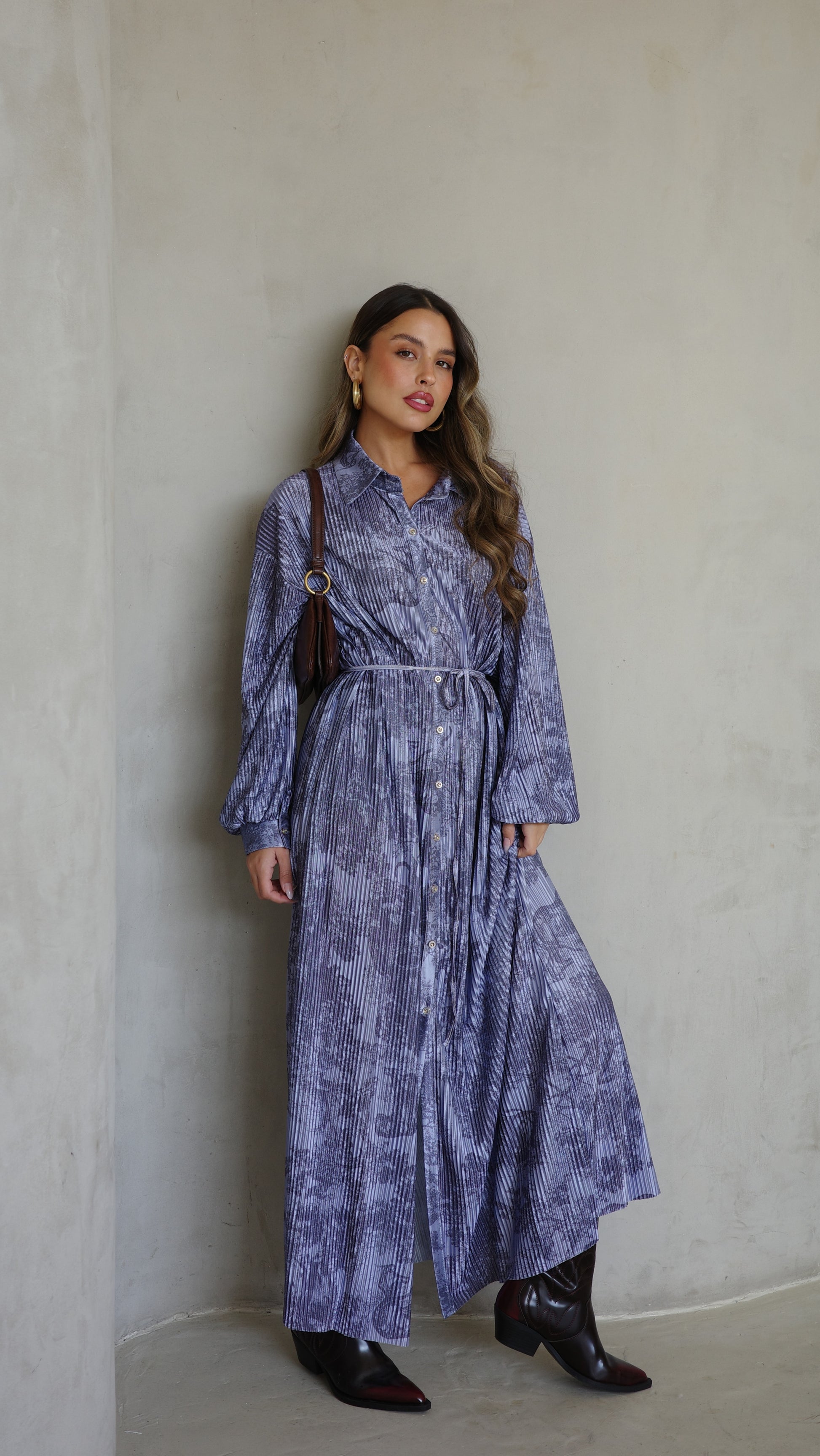 שמלת פליסה כפתורים אבלין | כחול