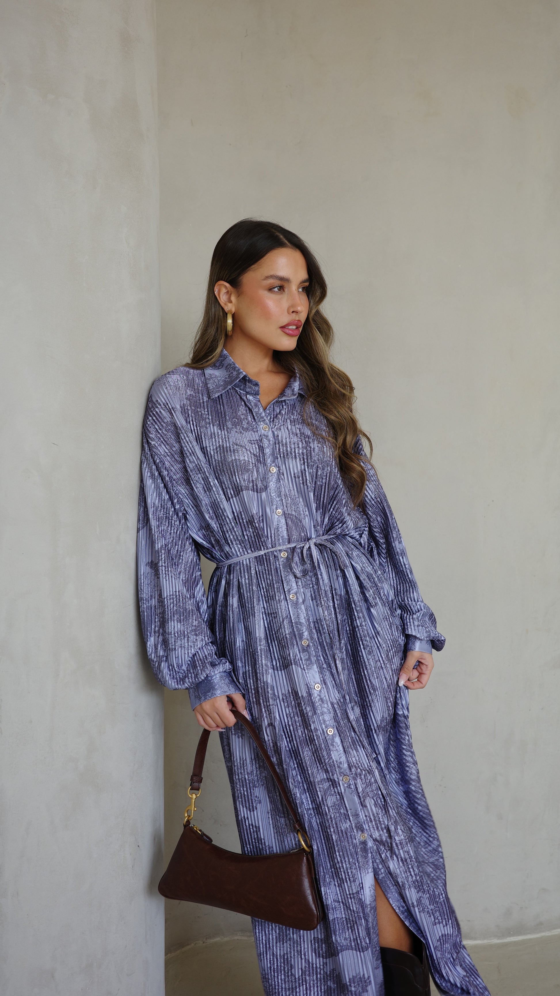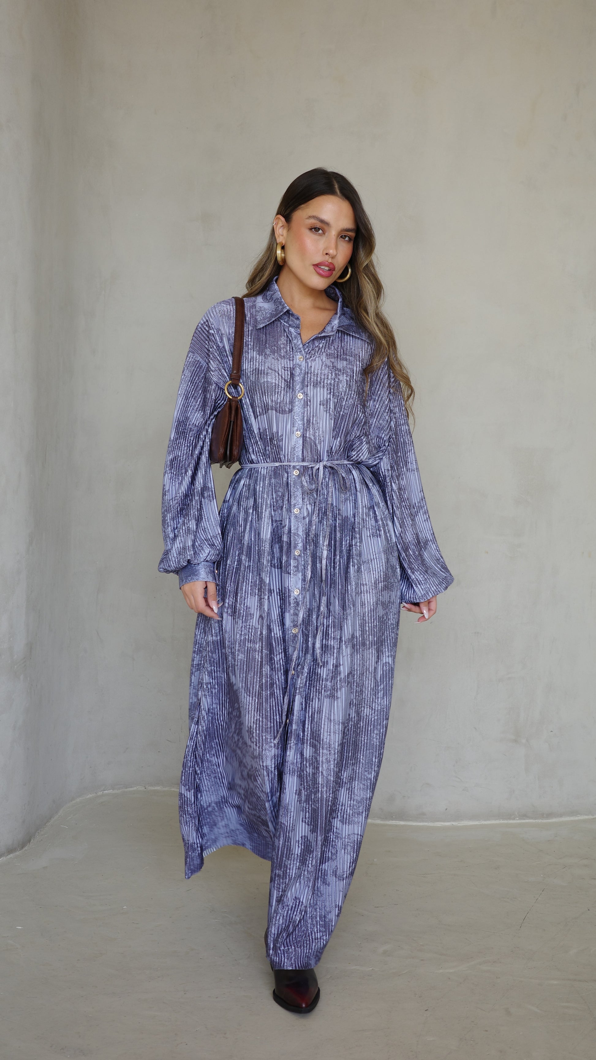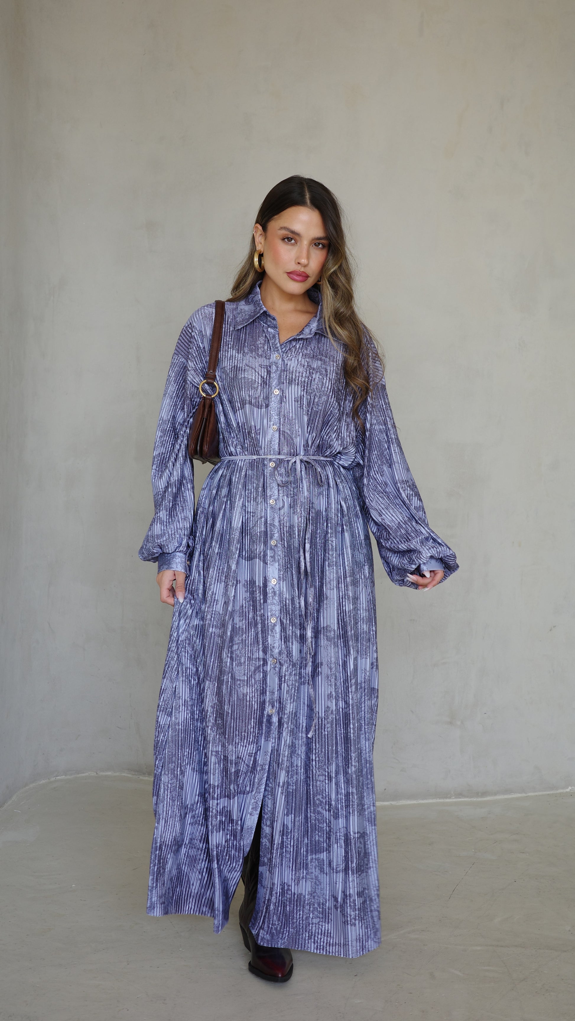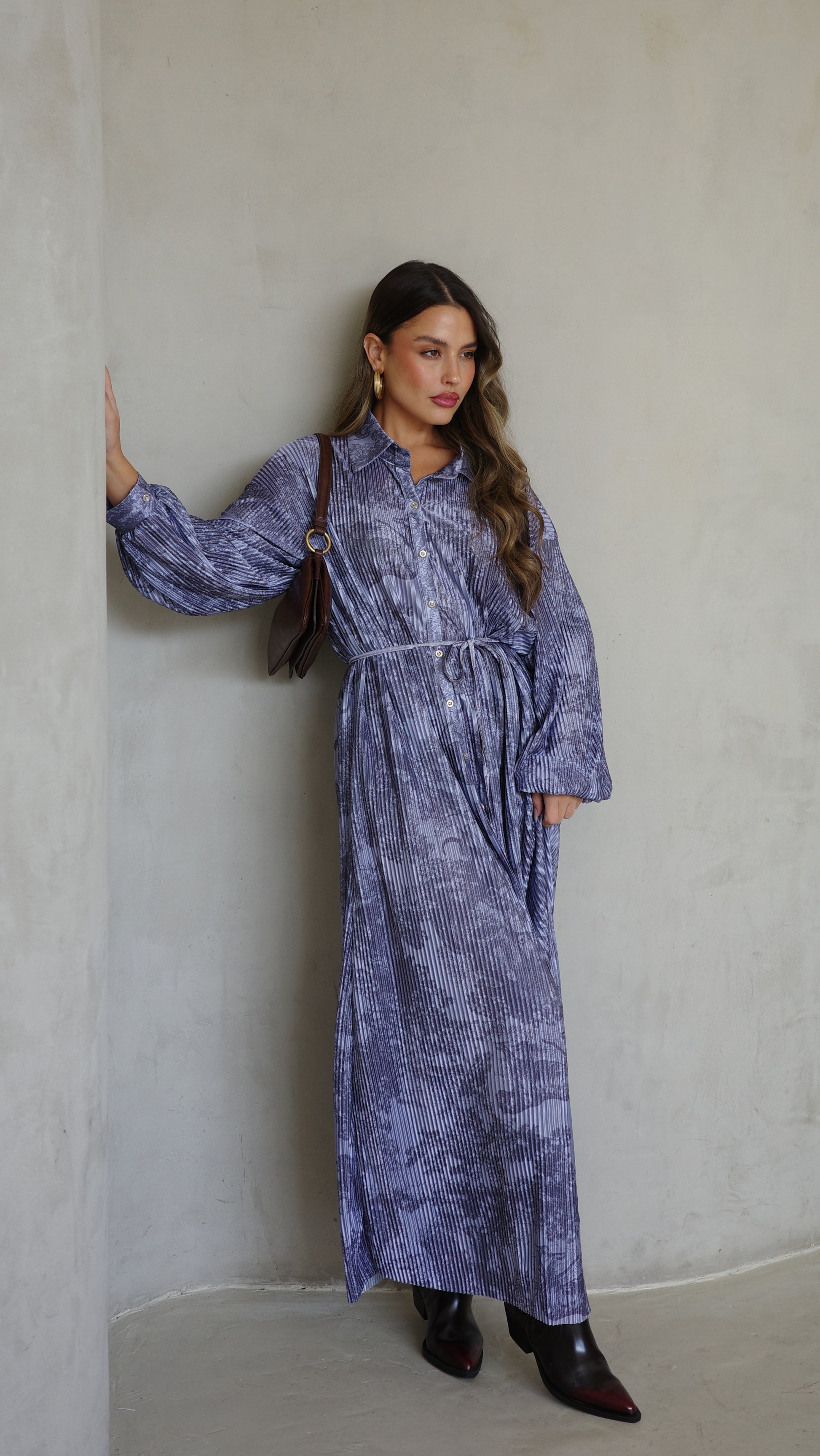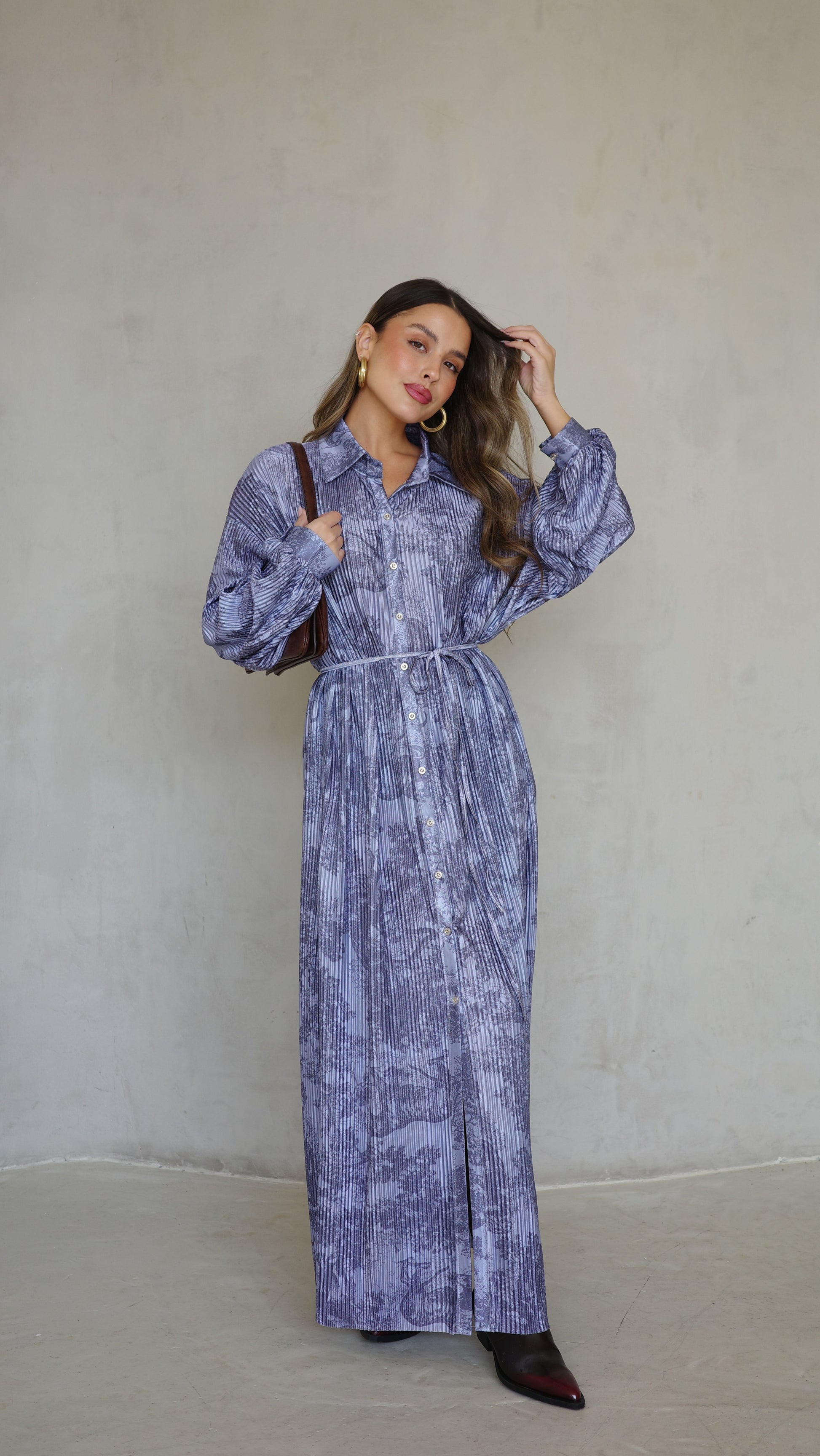 שמלת פליסה כפתורים אבלין | כחול