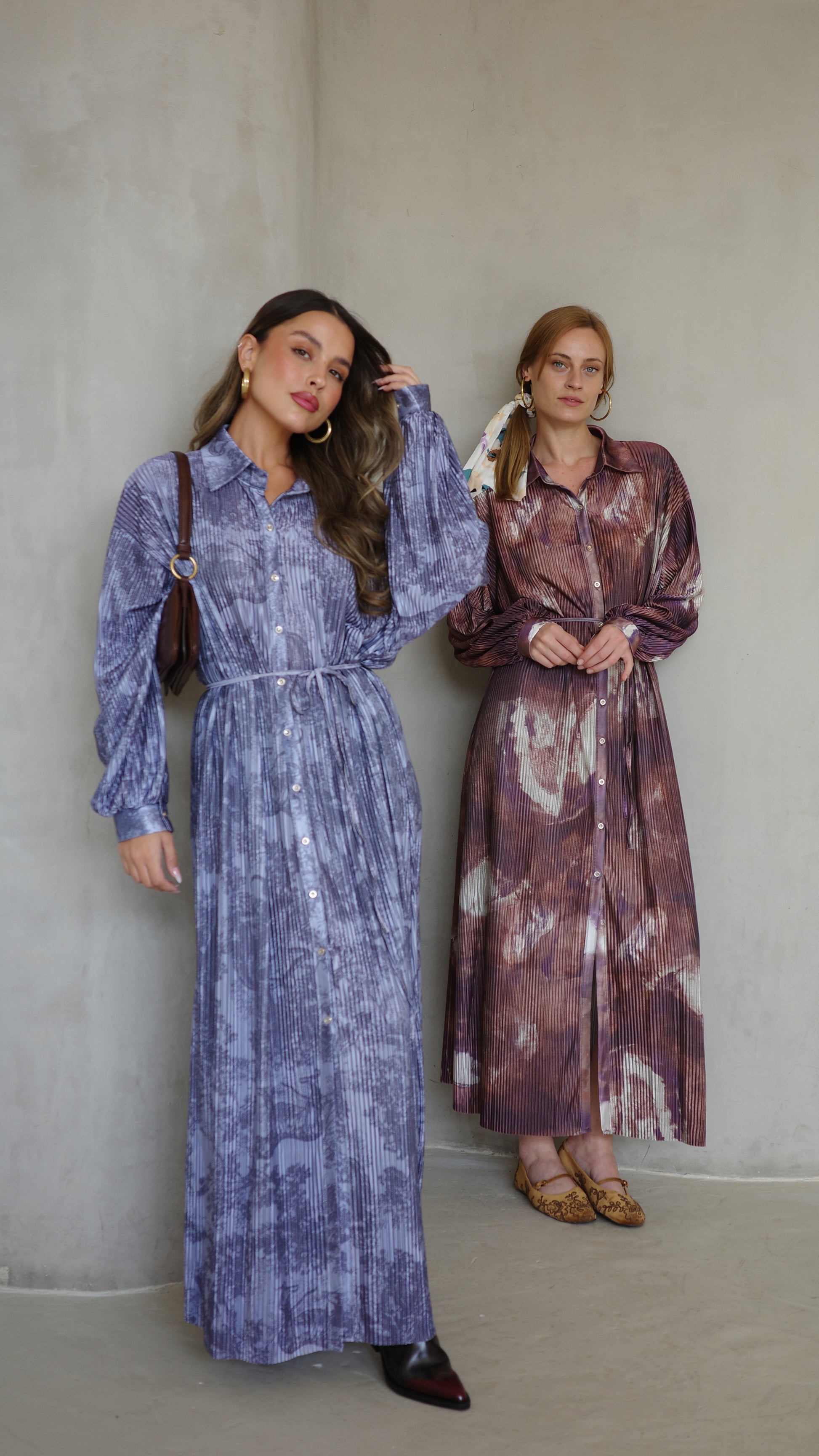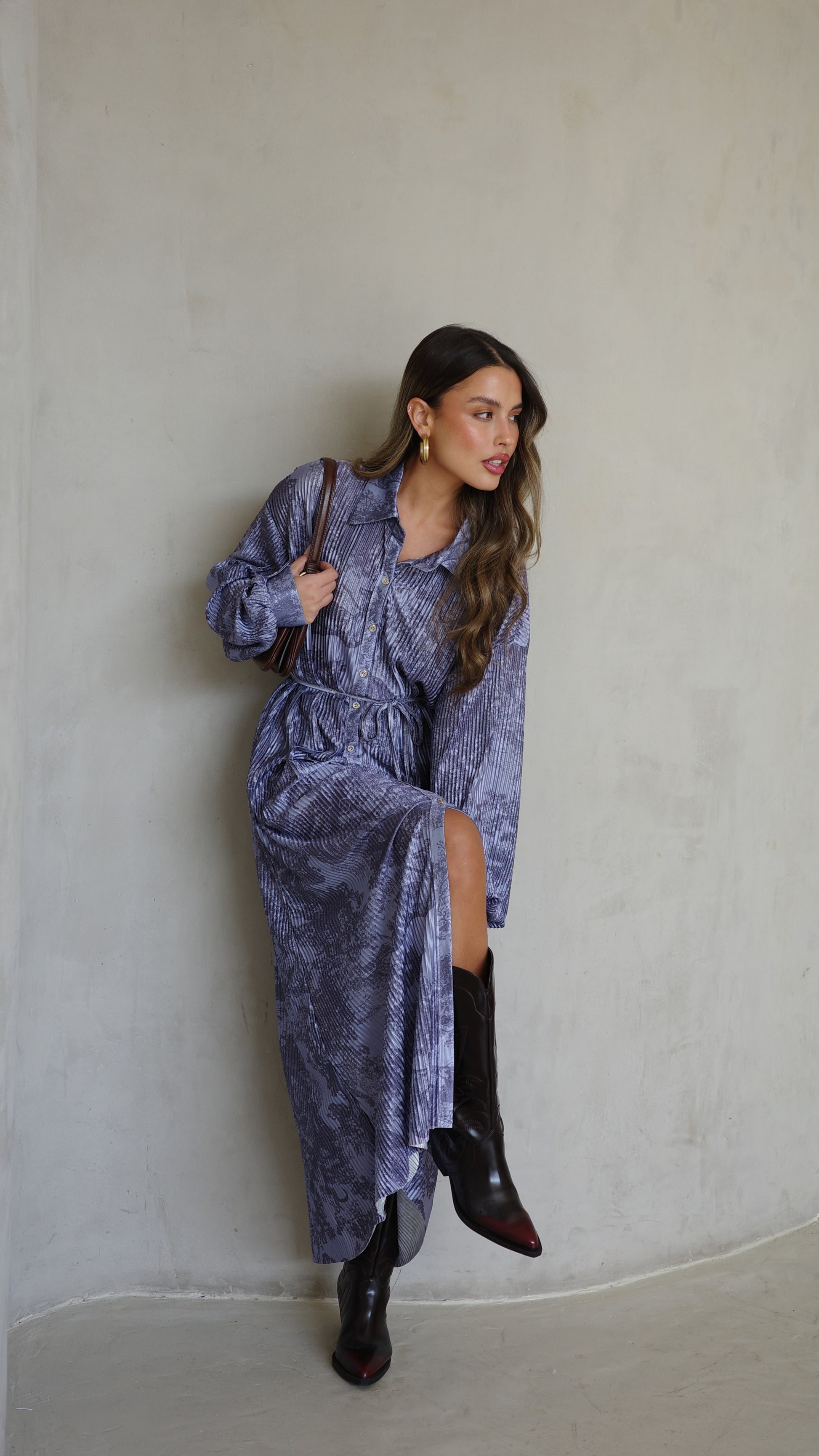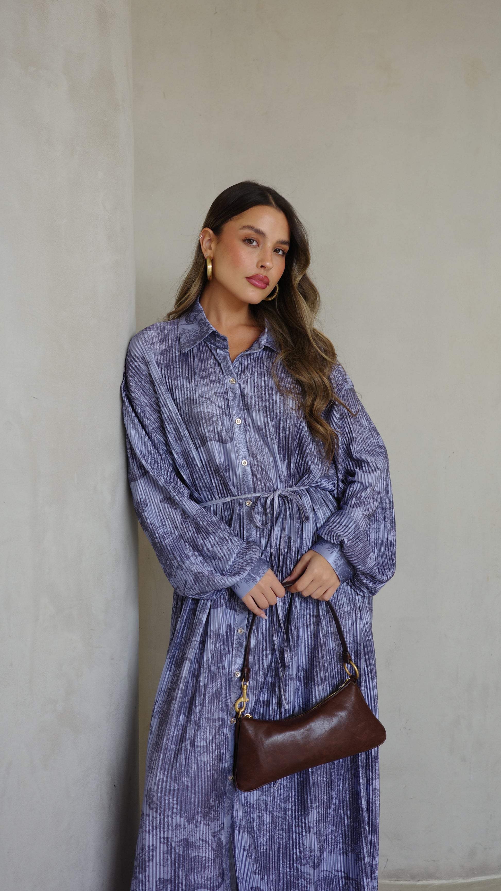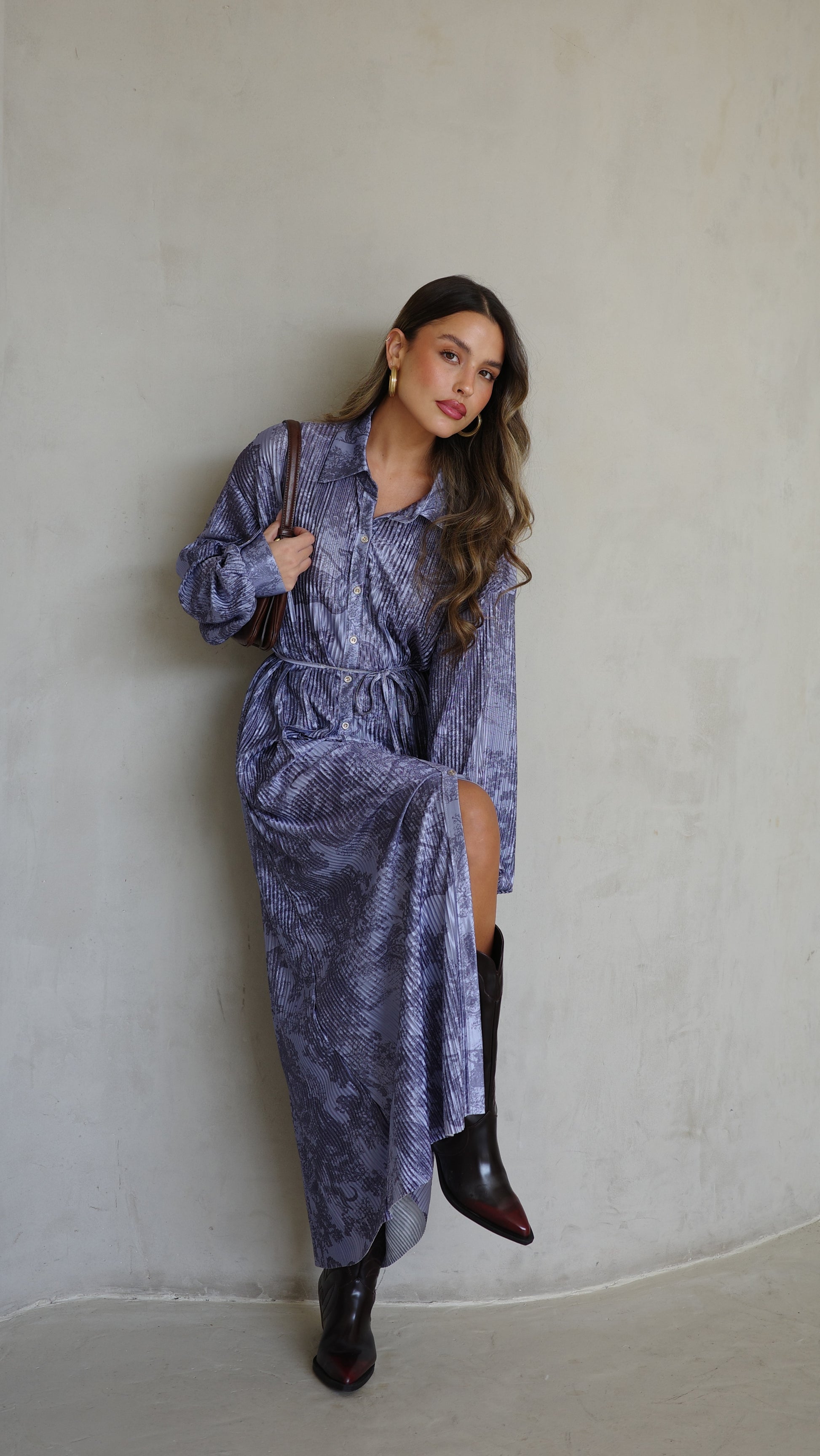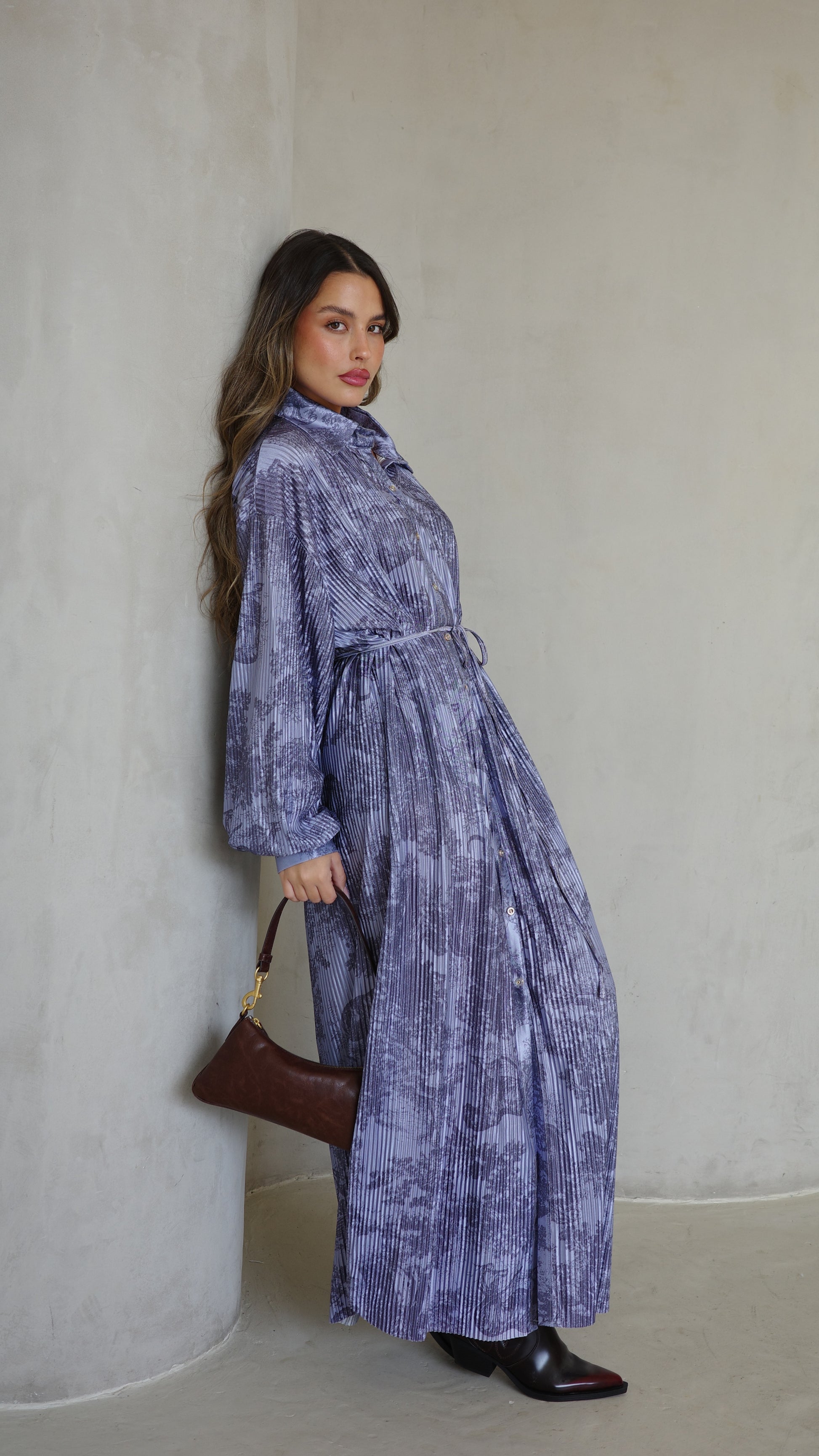שמלת פליסה כפתורים אבלין | כחול
