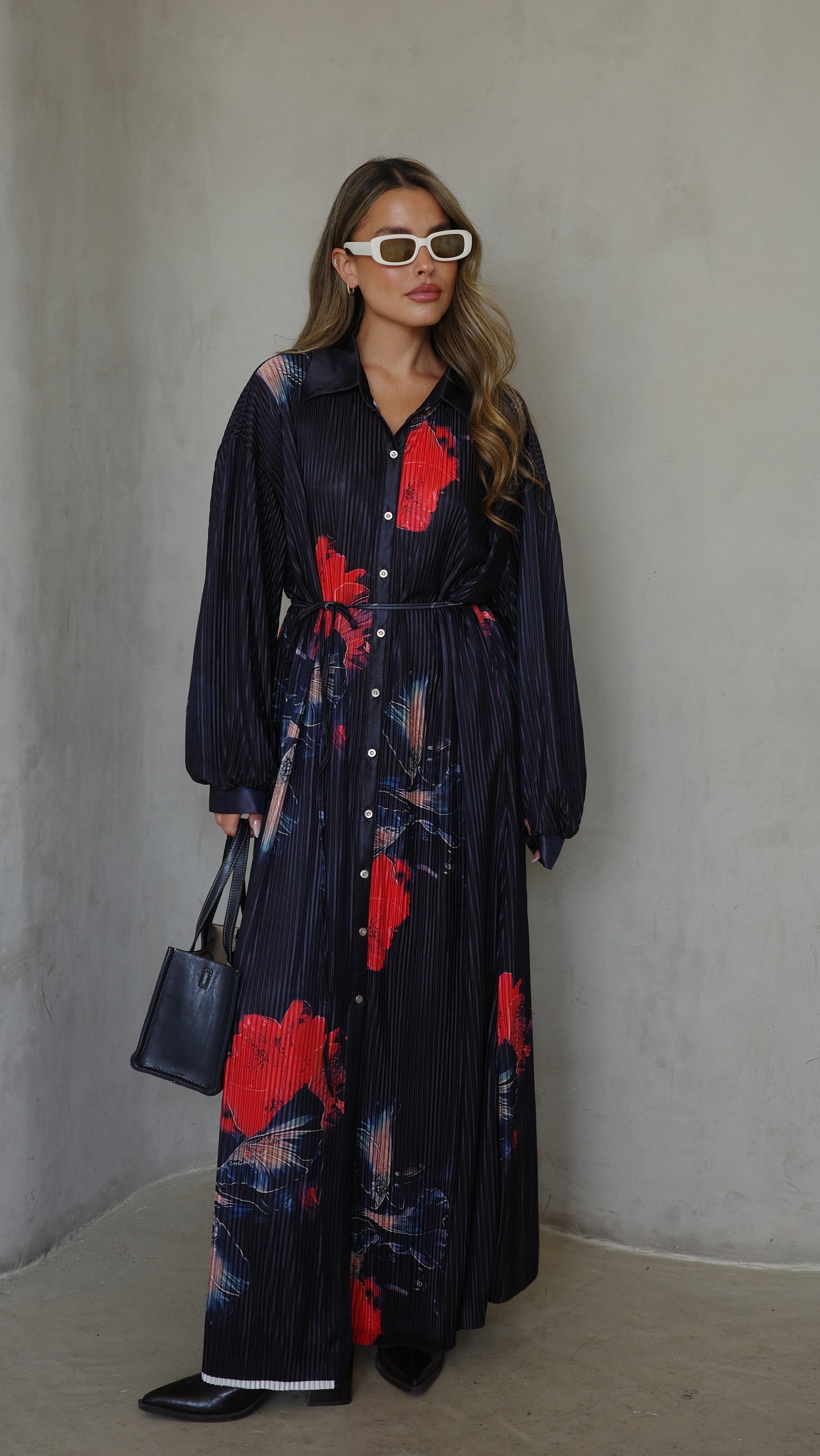 שמלת פליסה כפתורים קארן | שחור