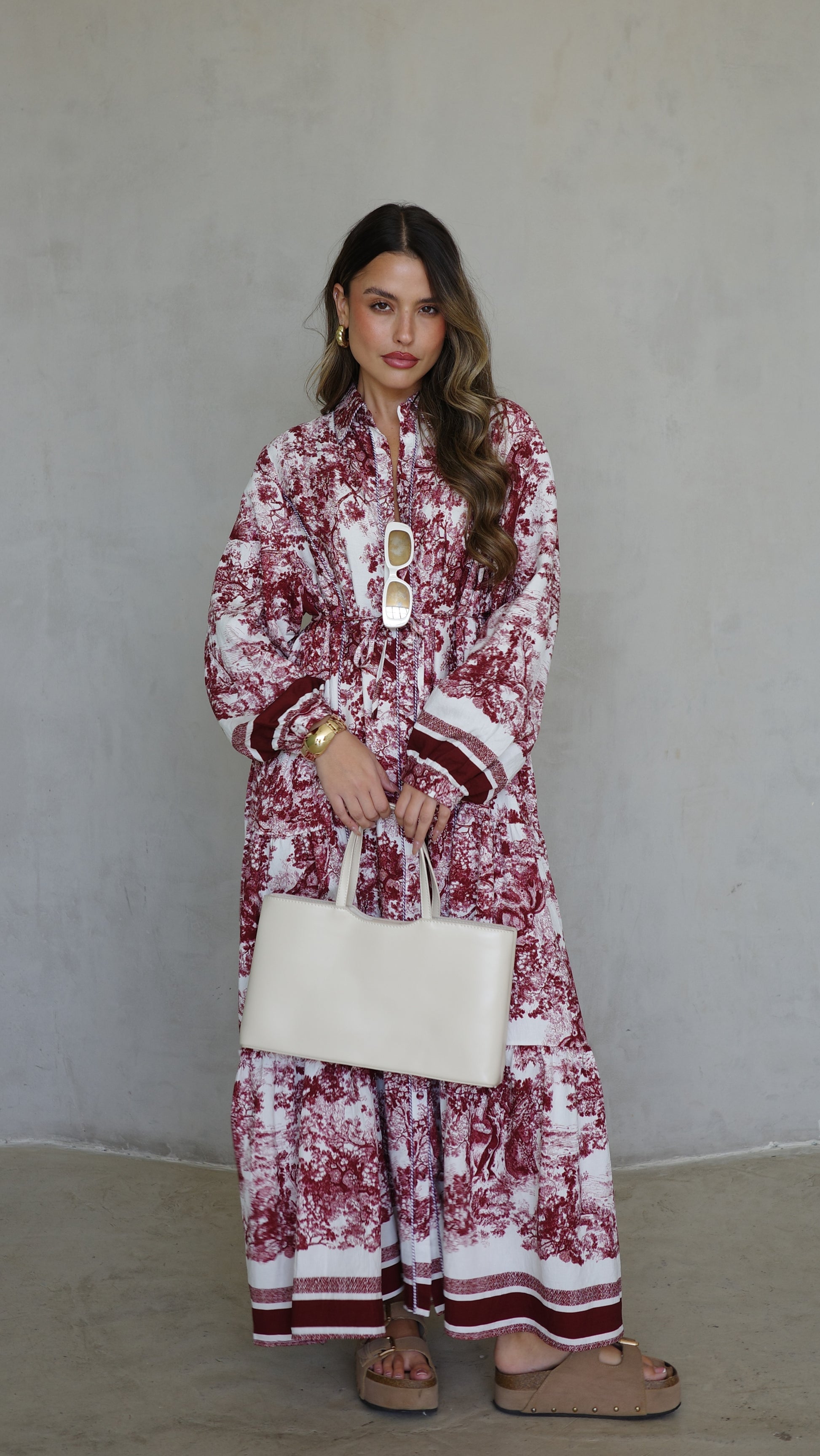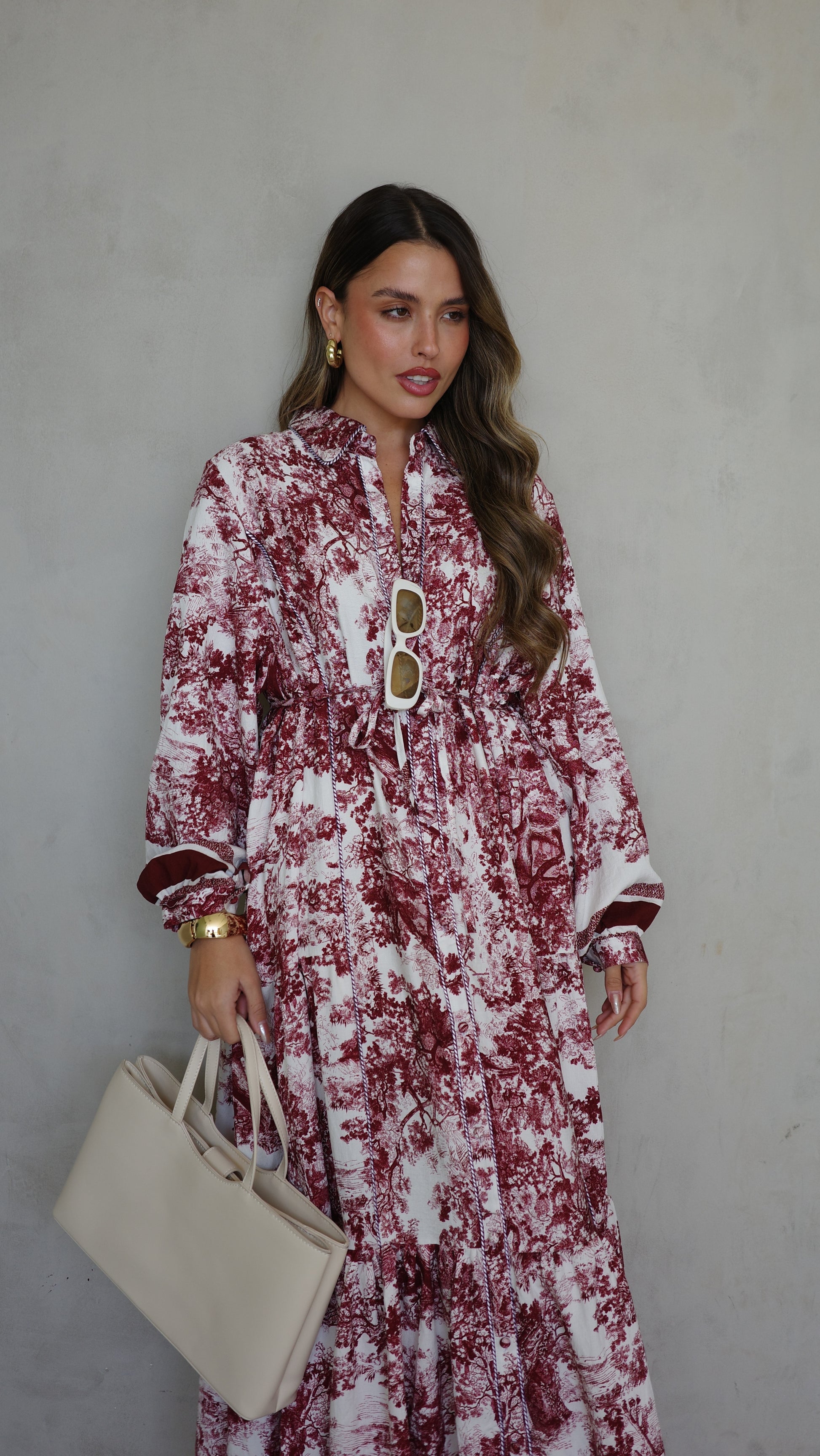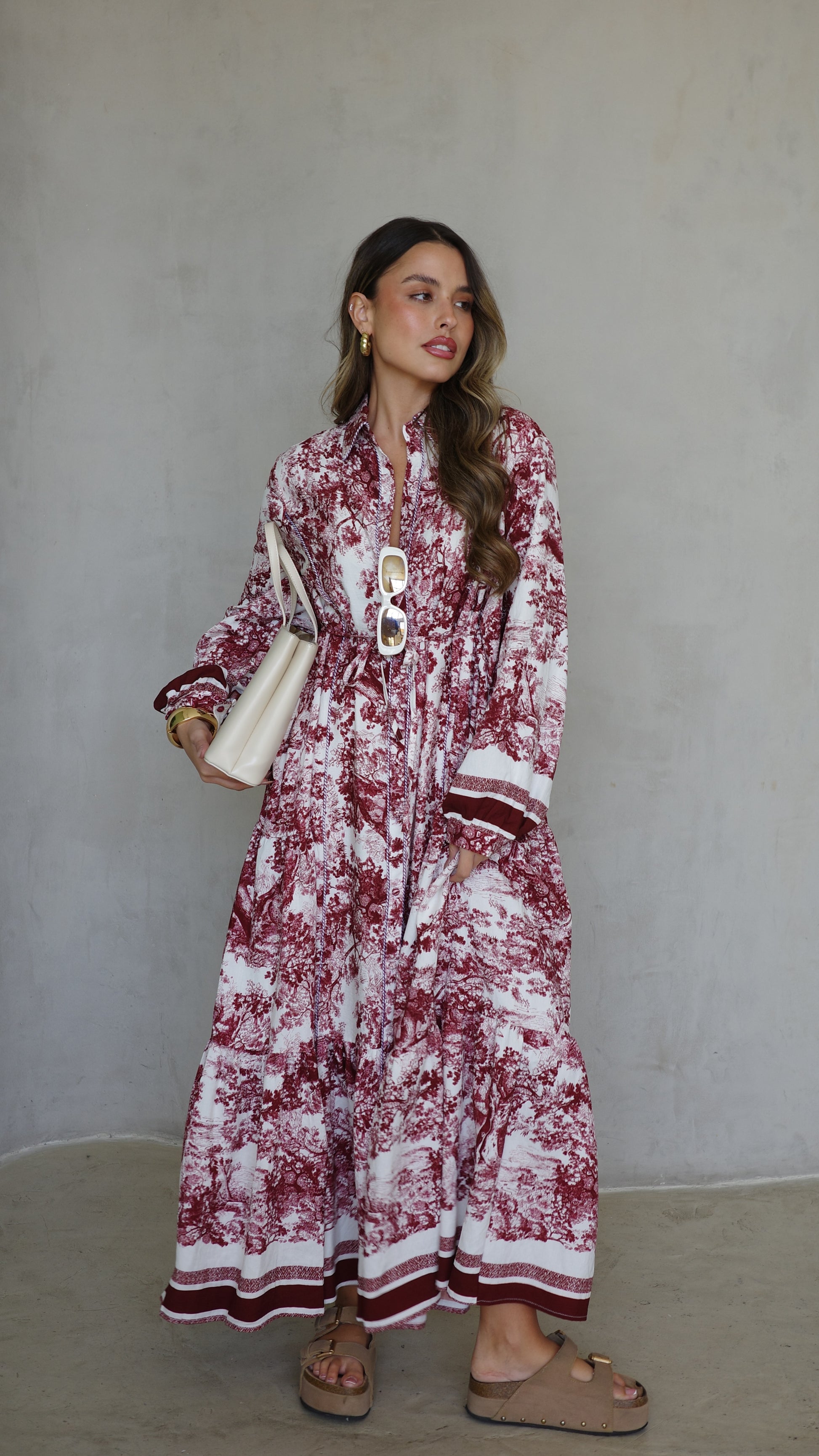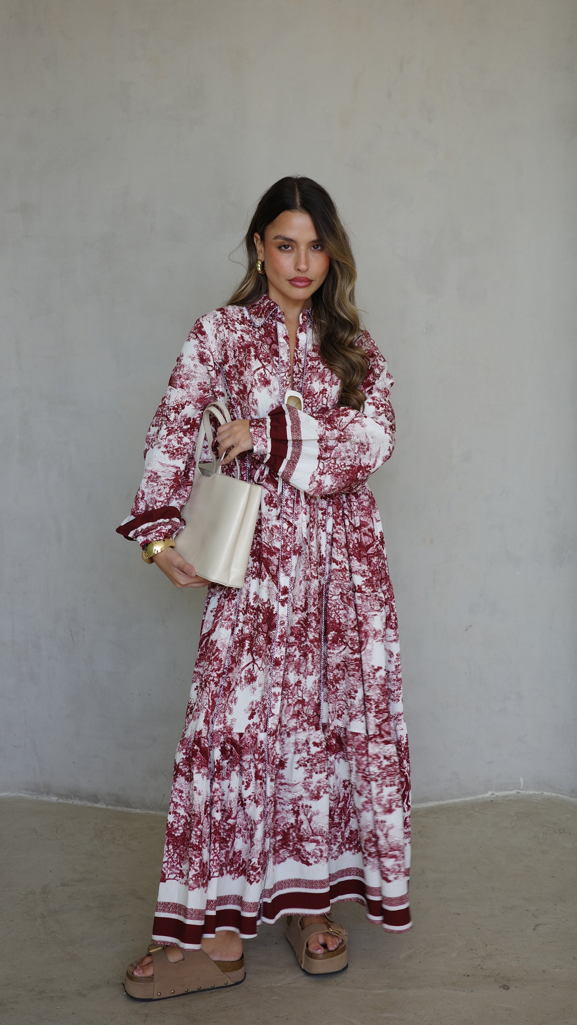 שמלת קלוש כפתורים אשלי | שמנת/בורדו