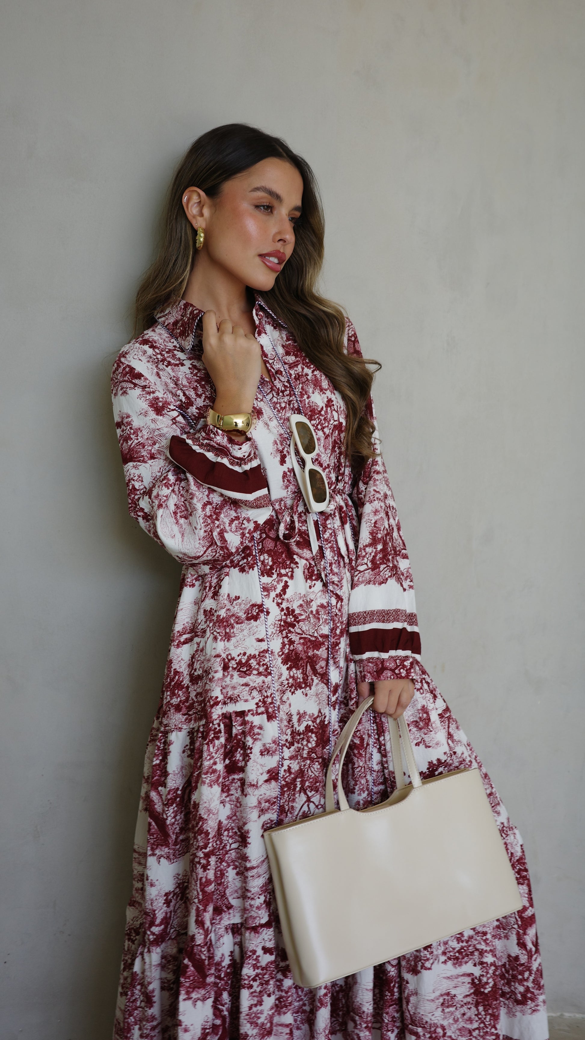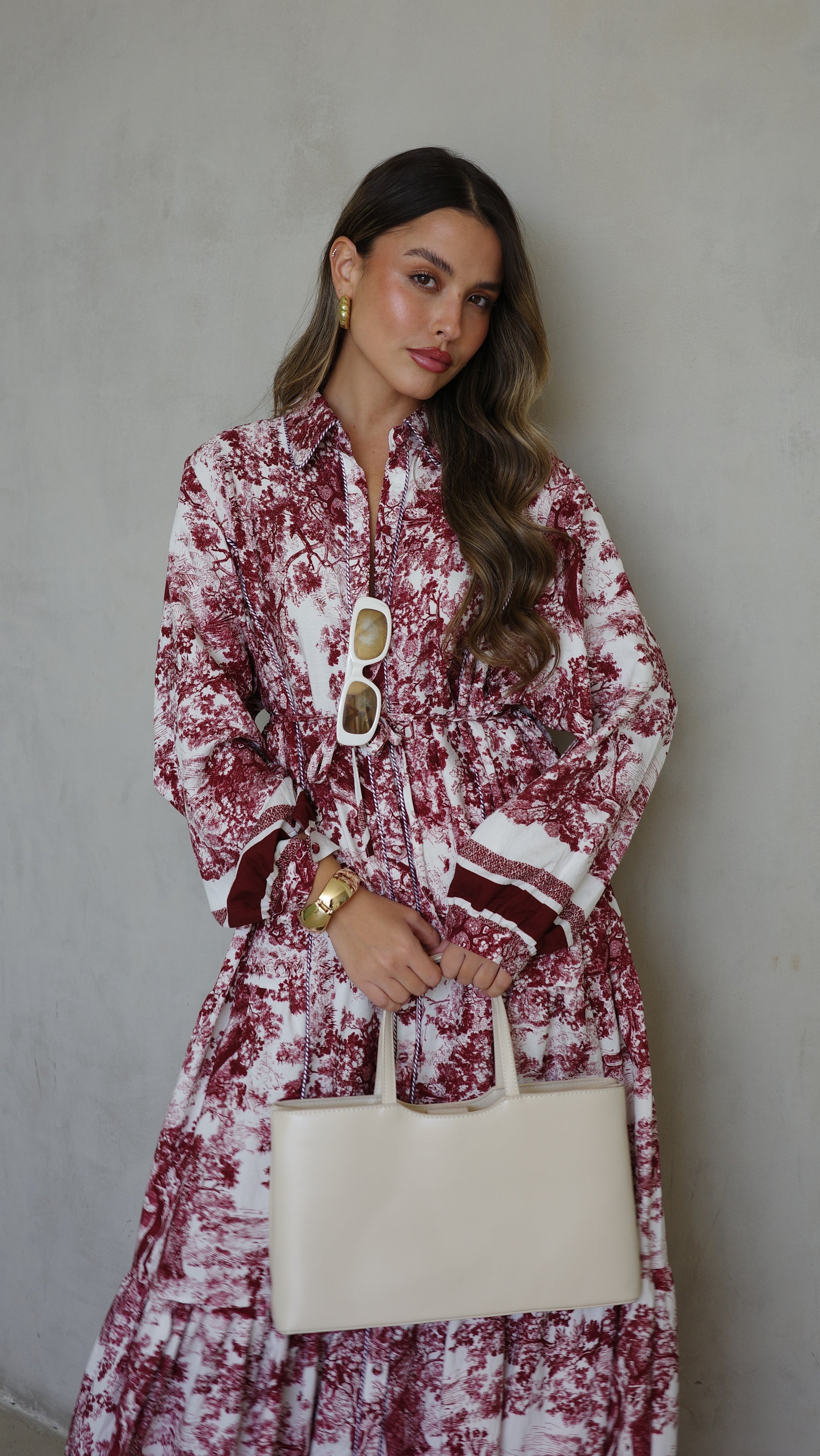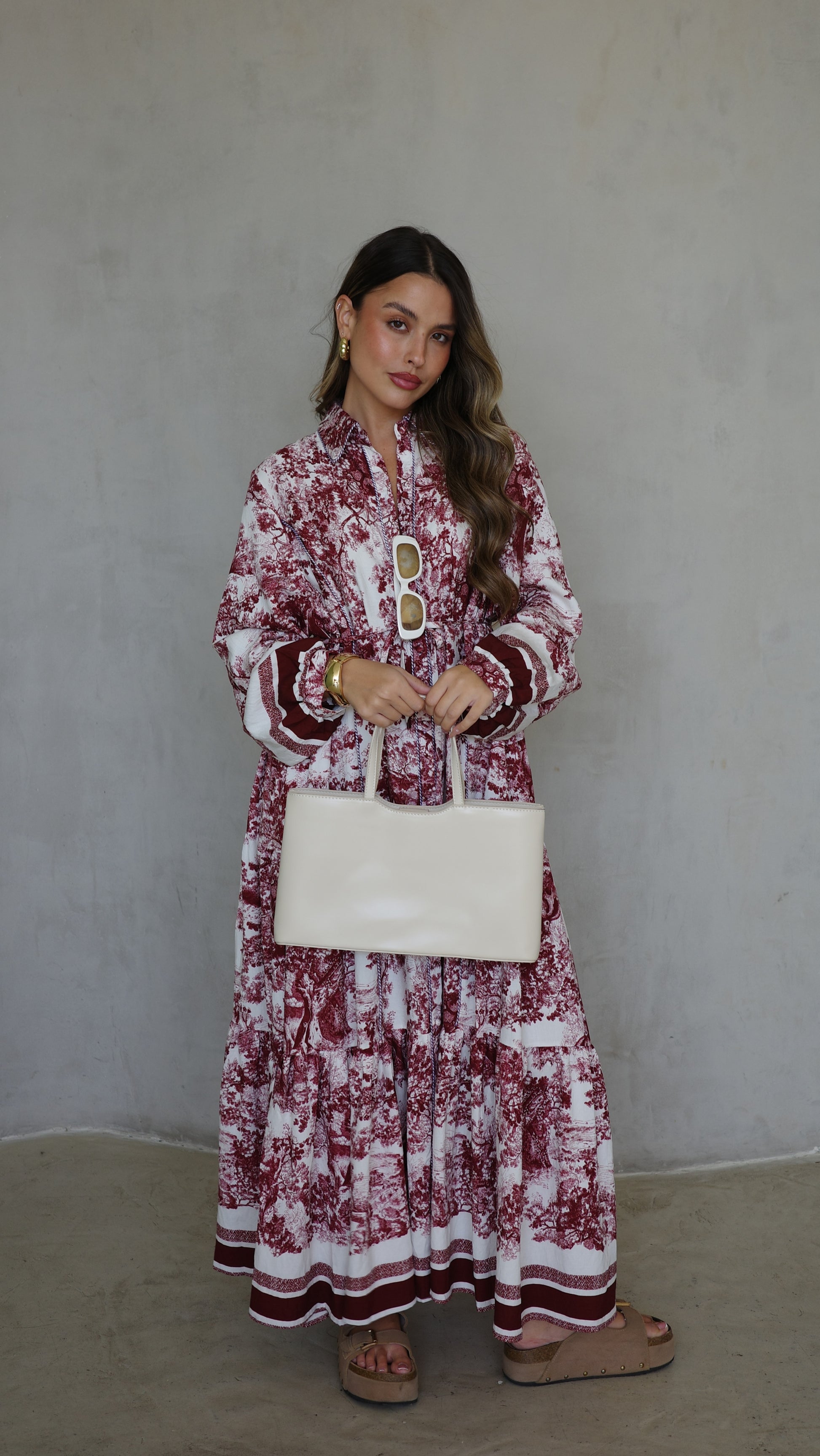 שמלת קלוש כפתורים אשלי | שמנת/בורדו