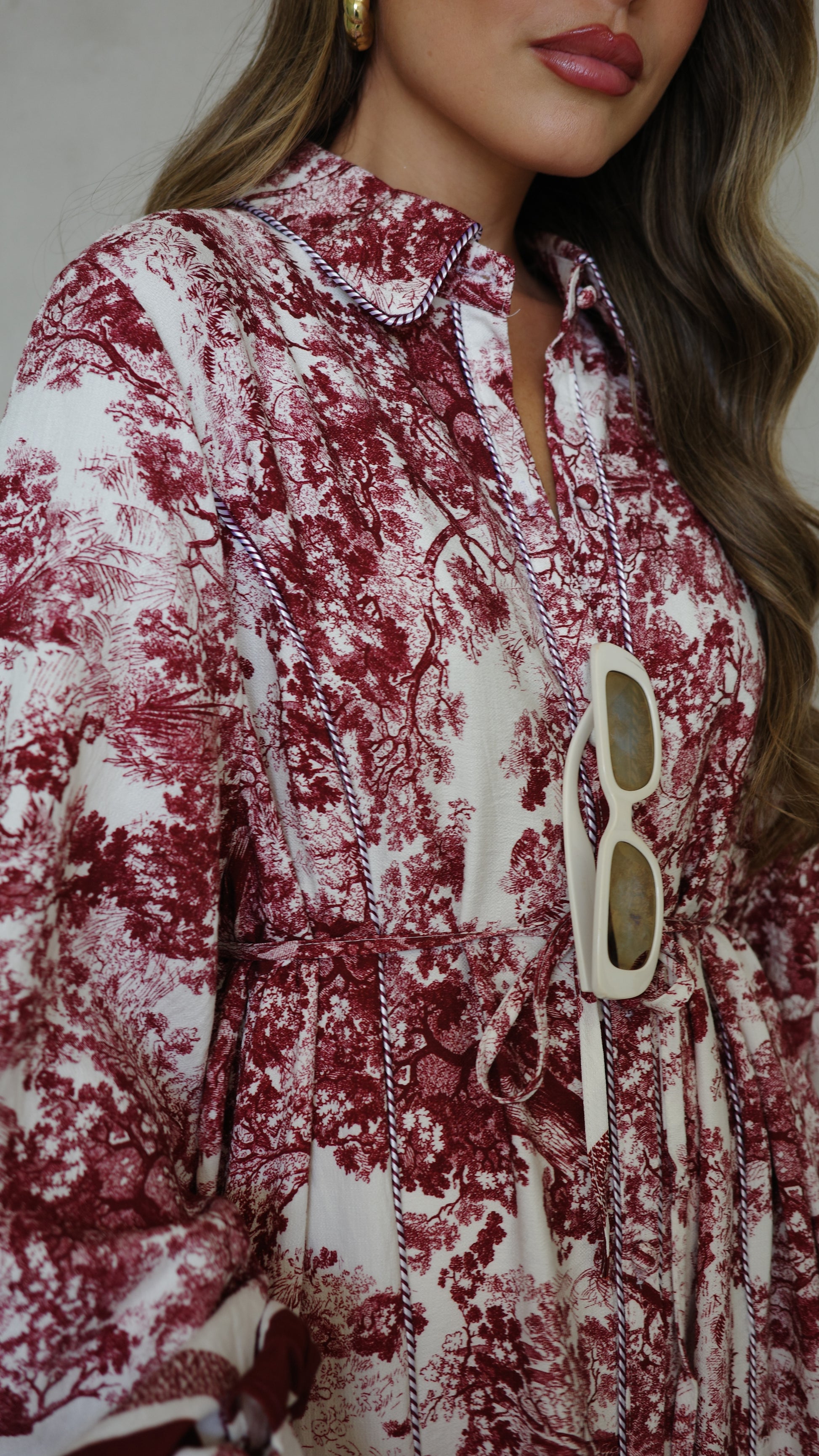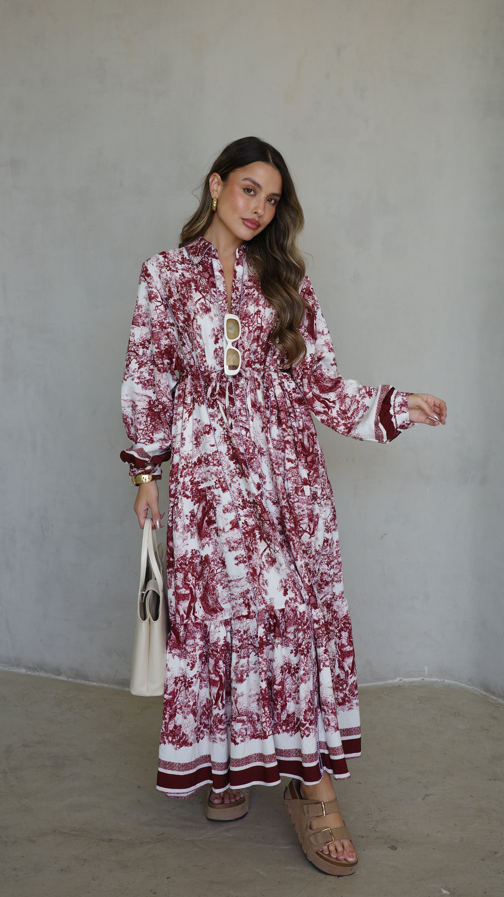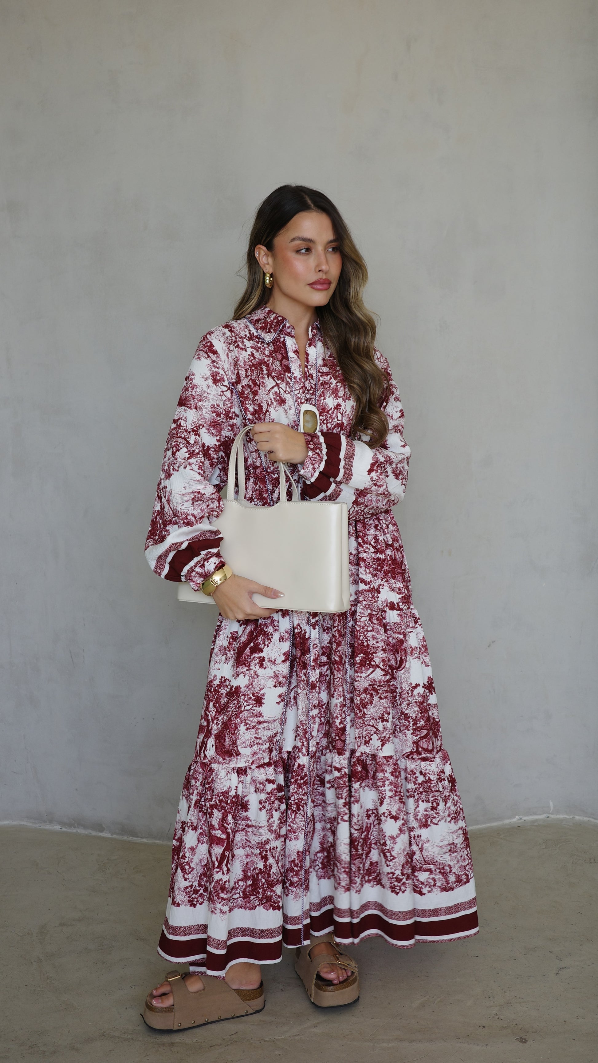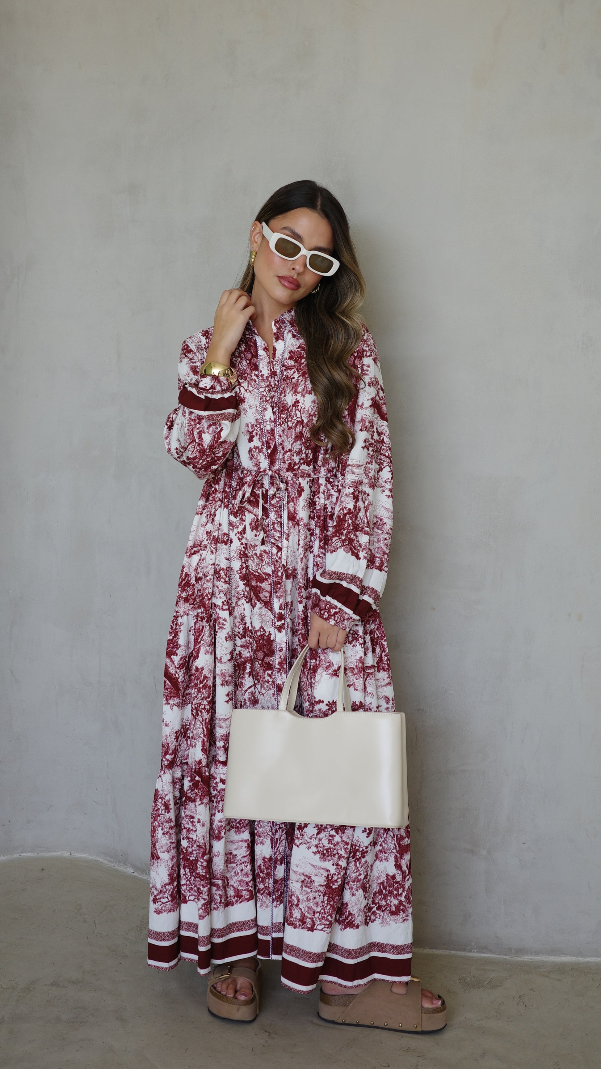 שמלת קלוש כפתורים אשלי | שמנת/בורדו