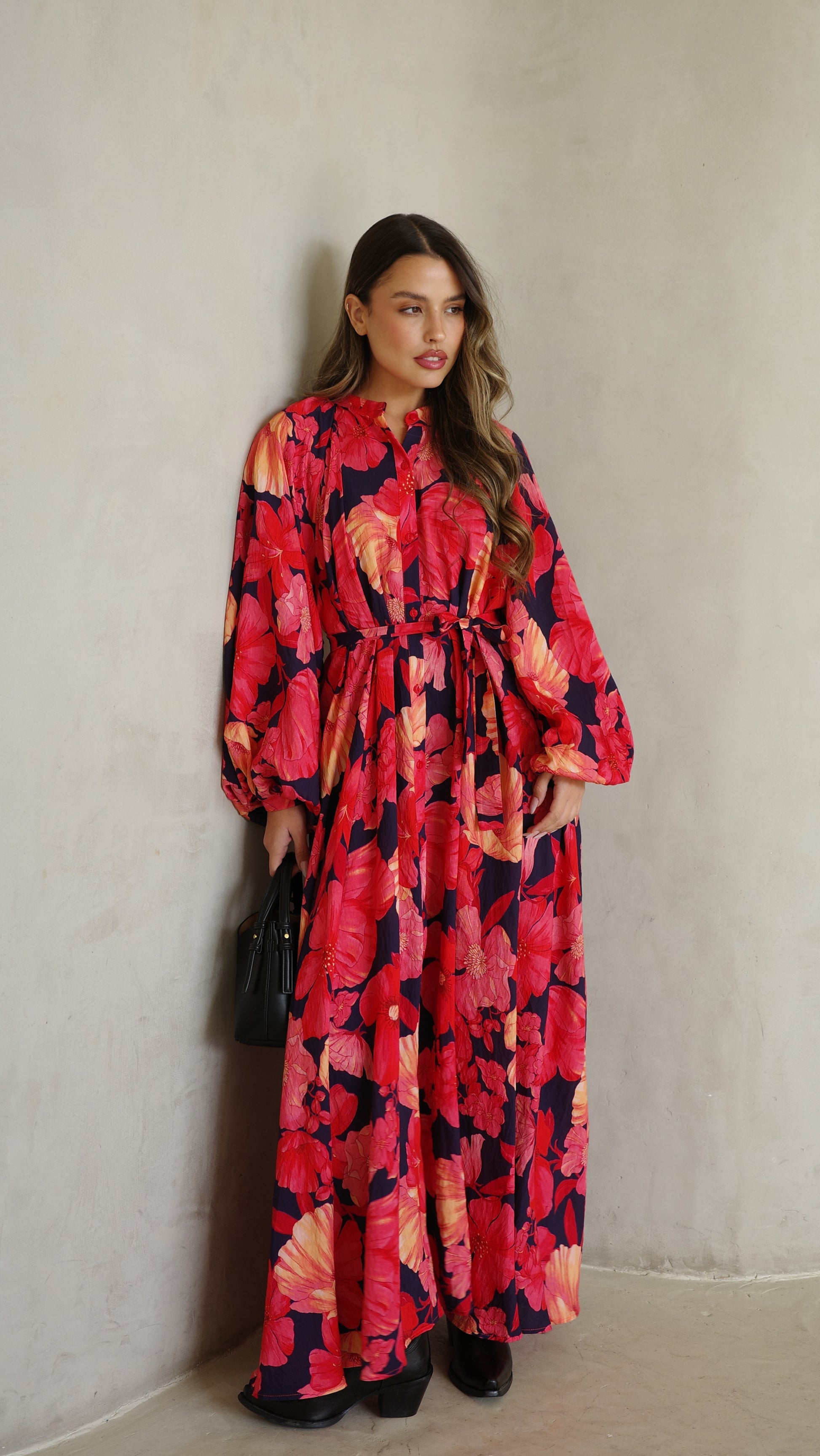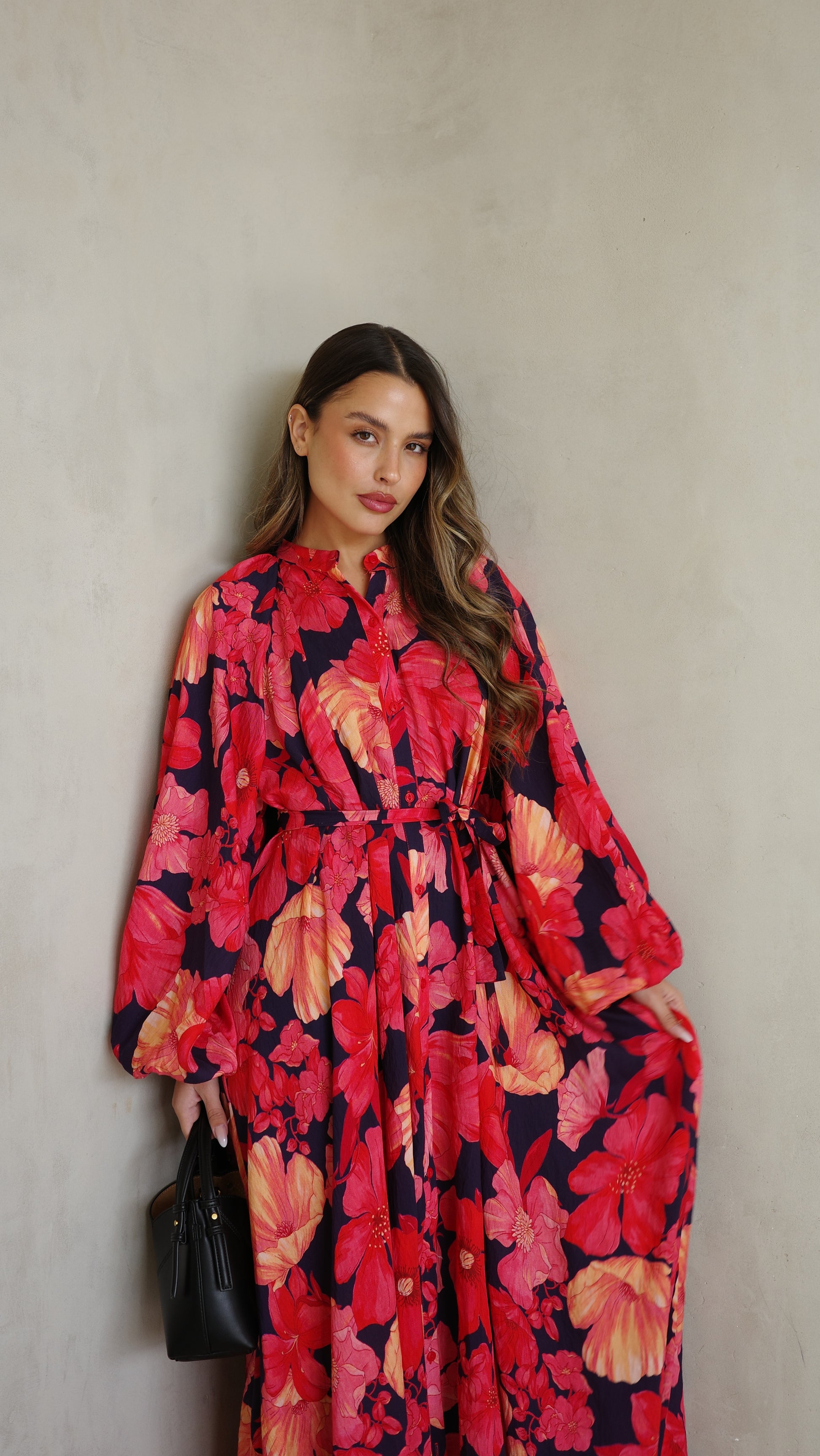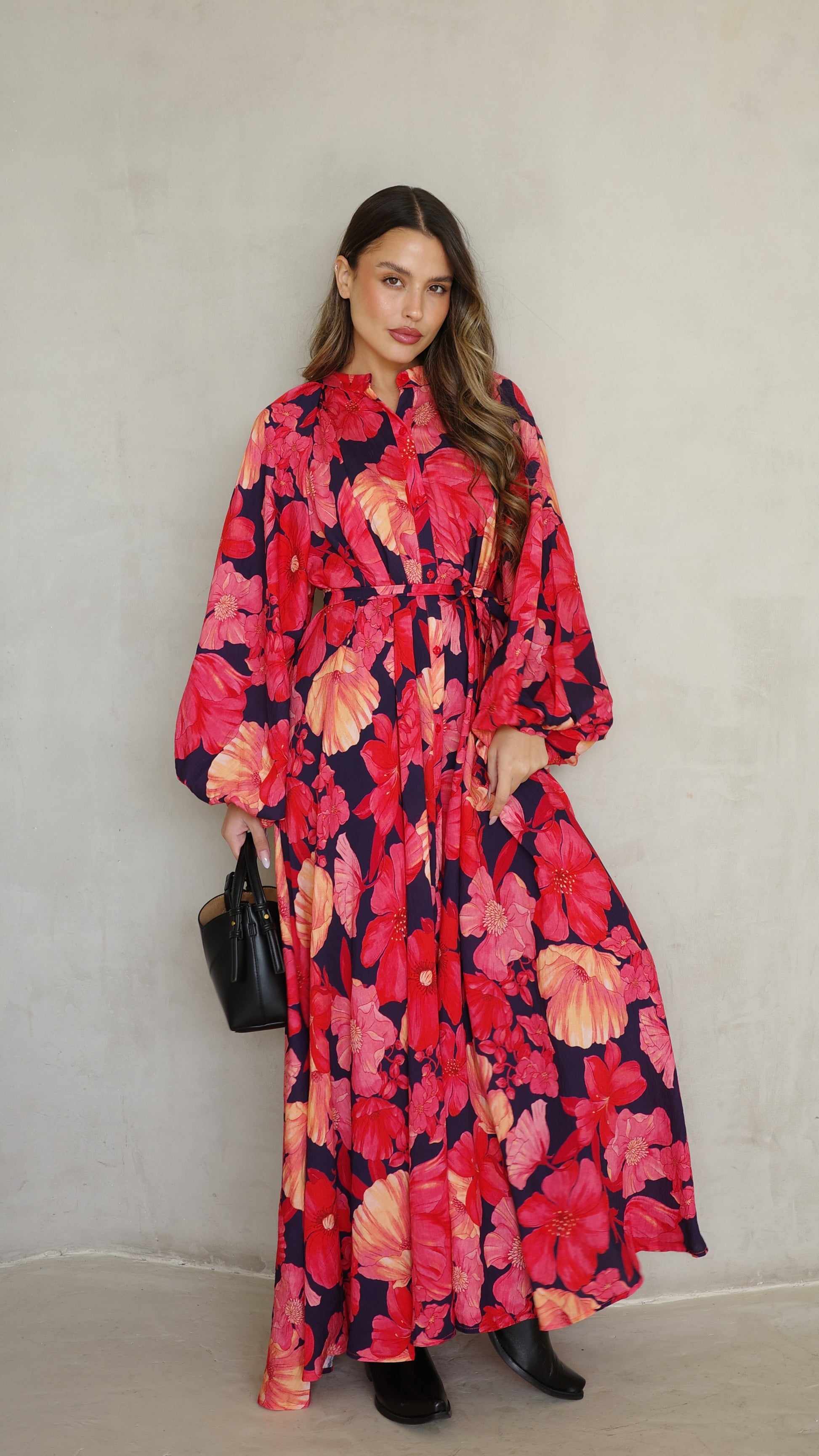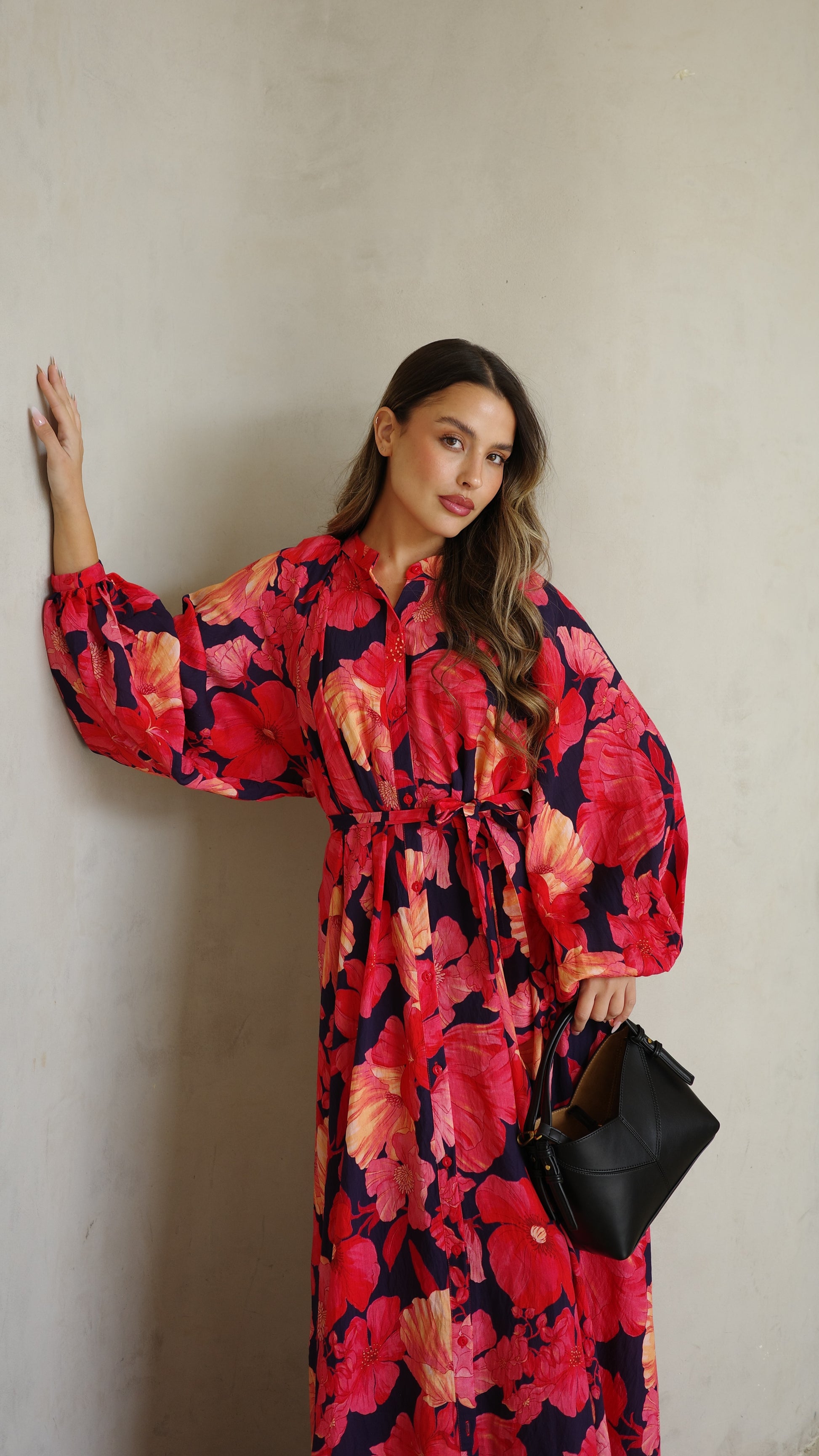 שמלת קלוש כפתורים דניס |שחור/אדום