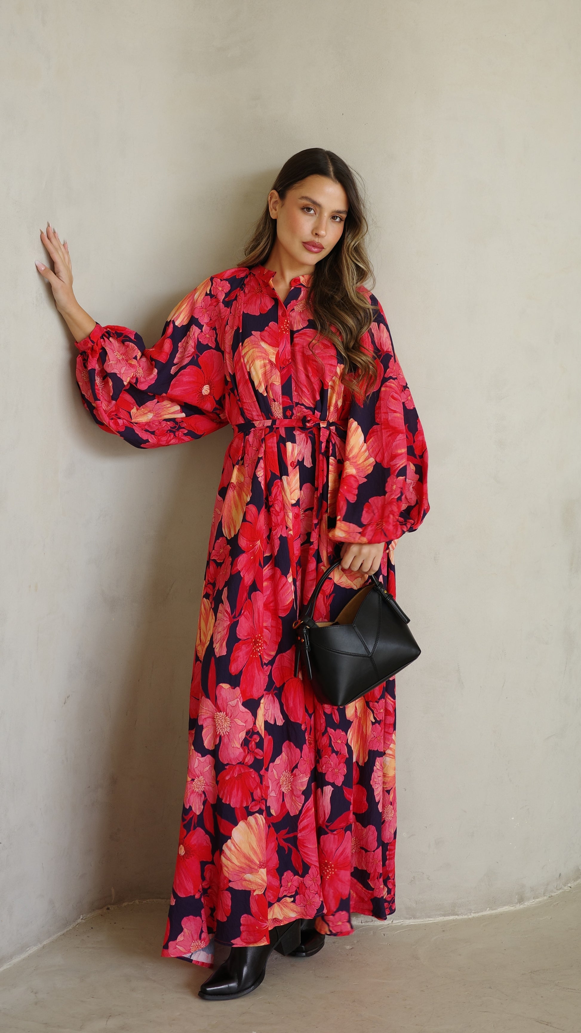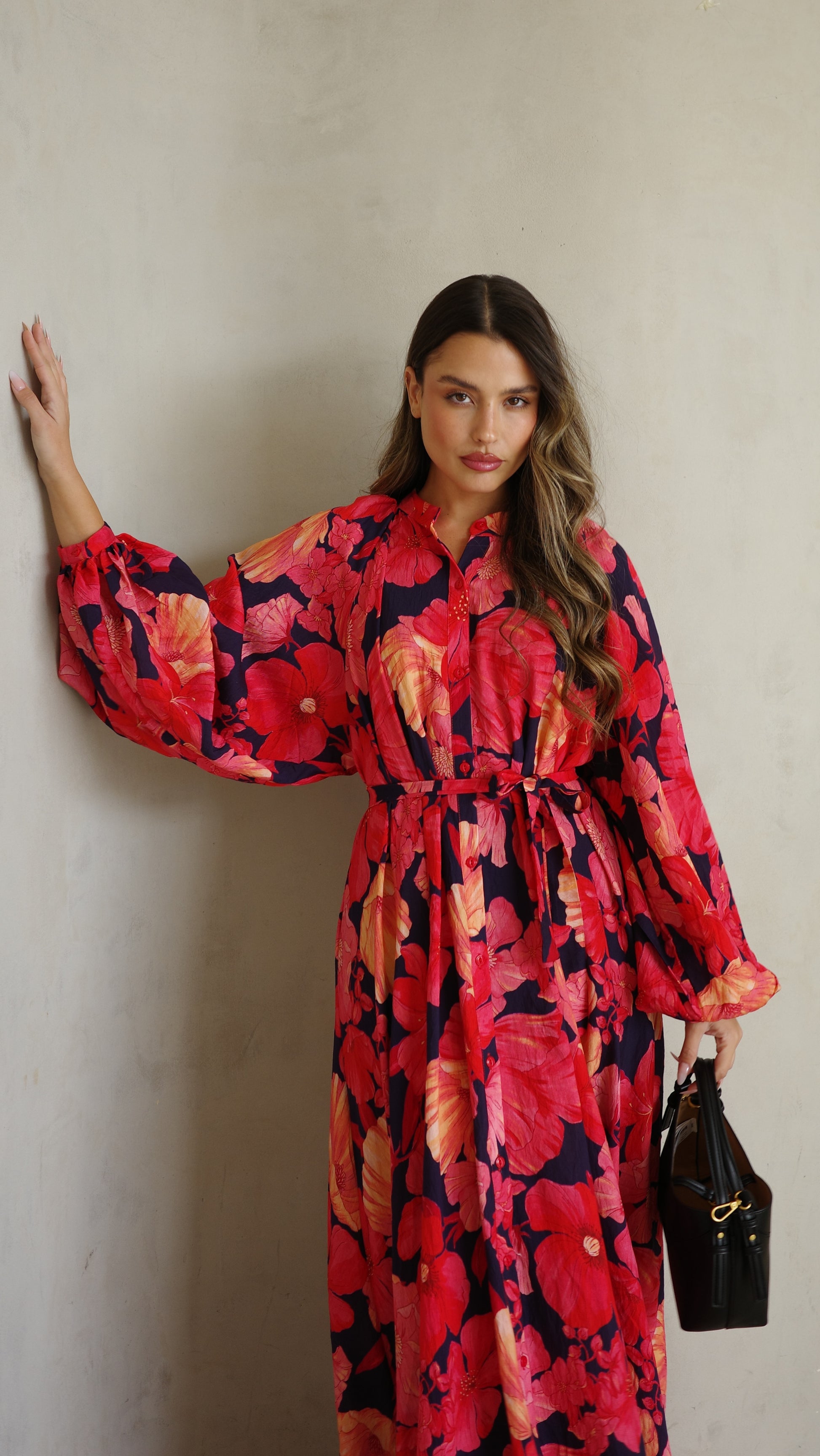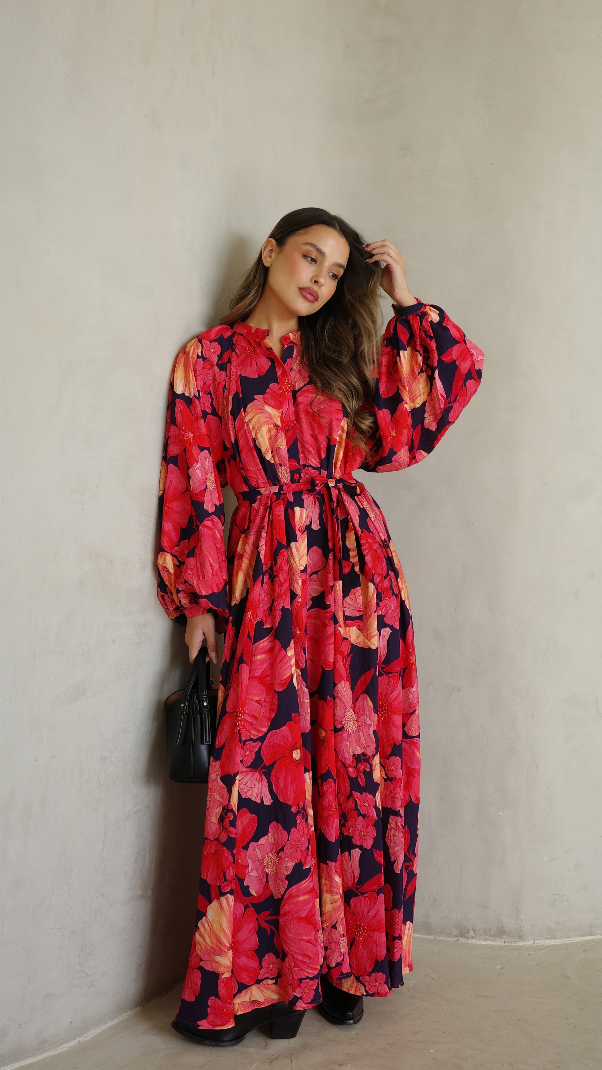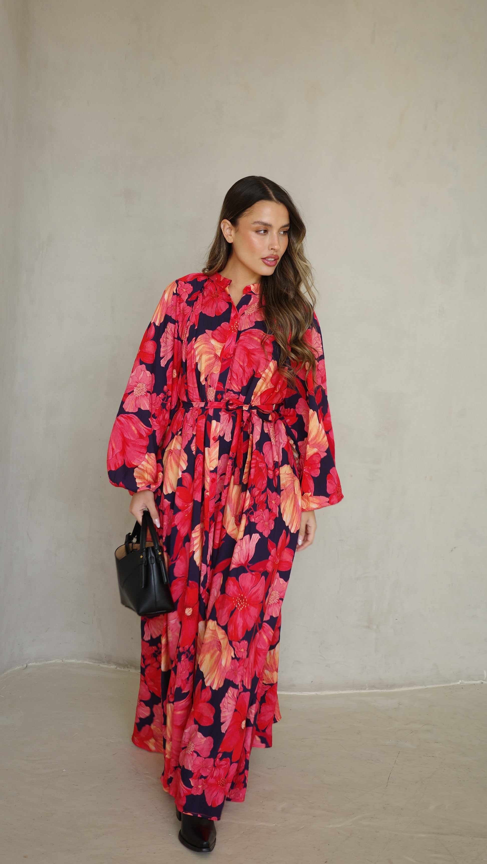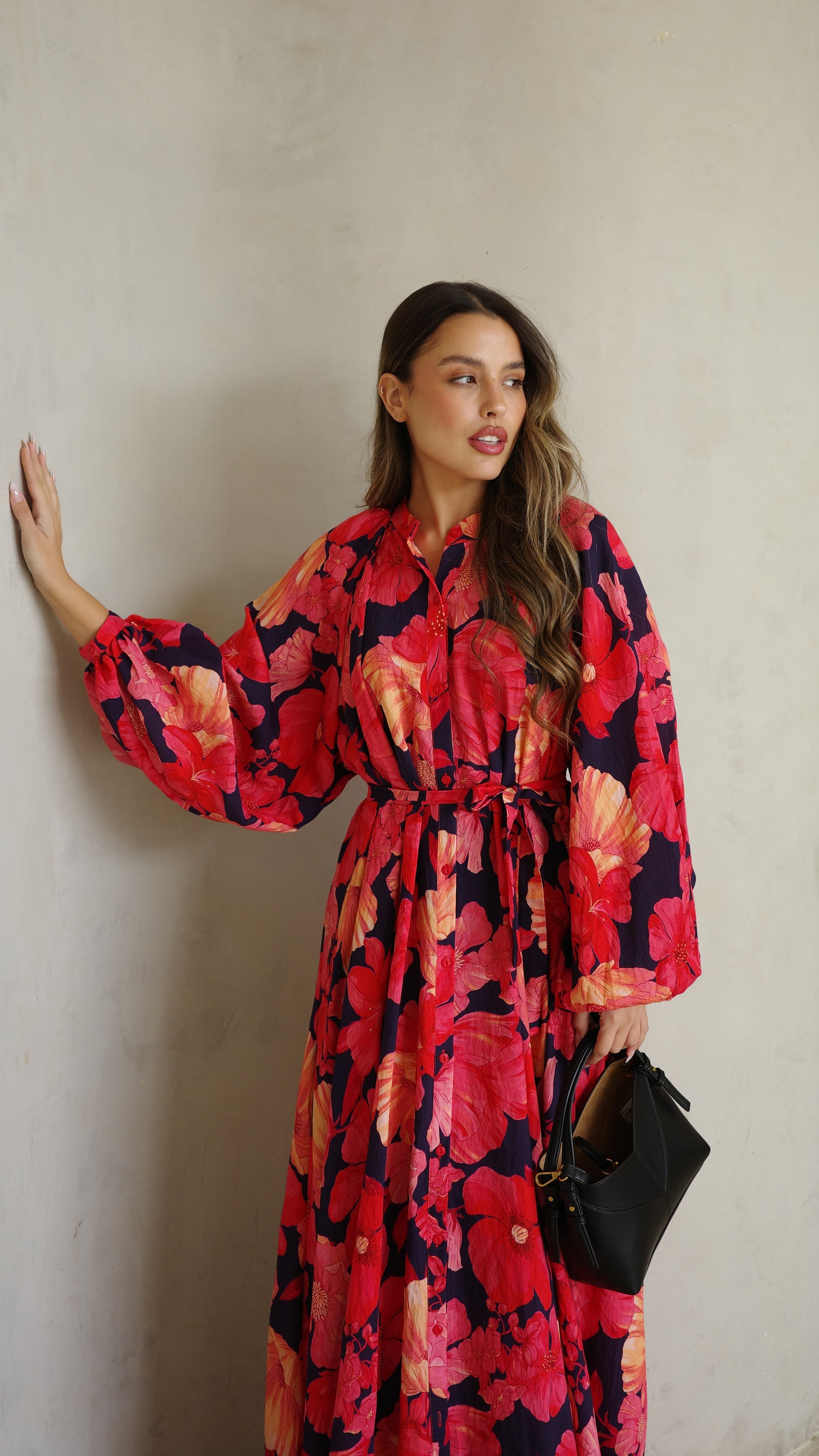שמלת קלוש כפתורים דניס |שחור/אדום