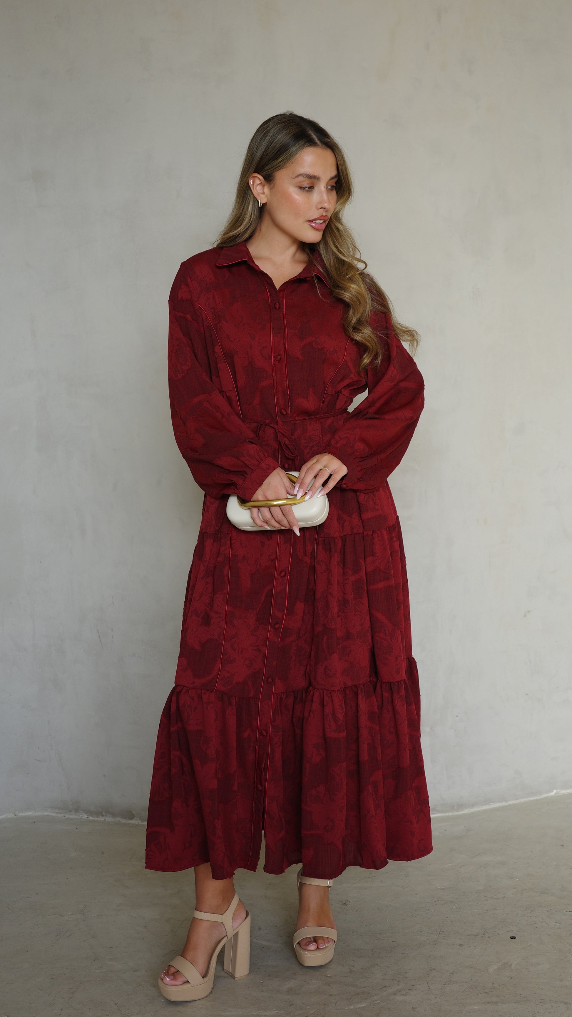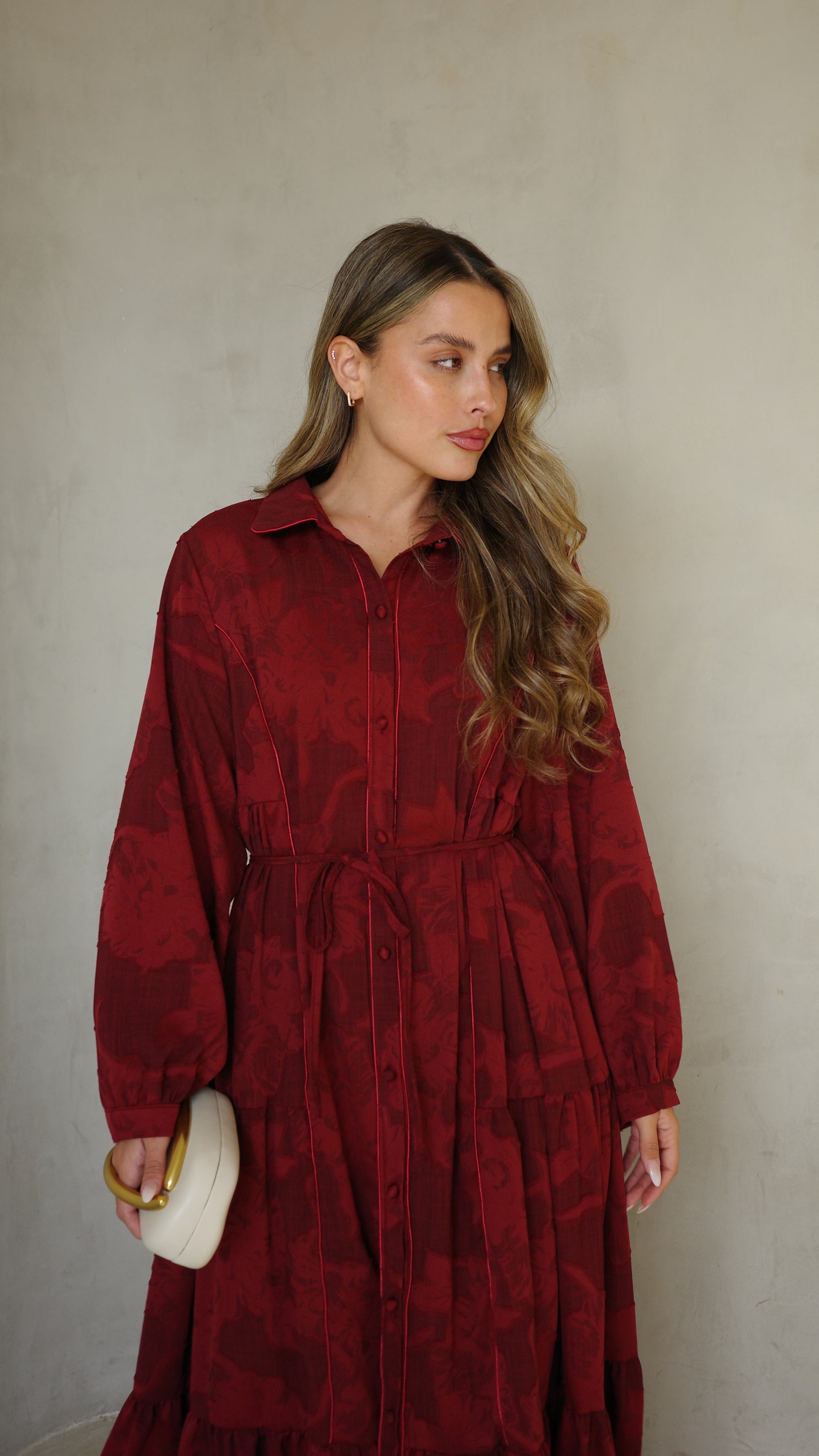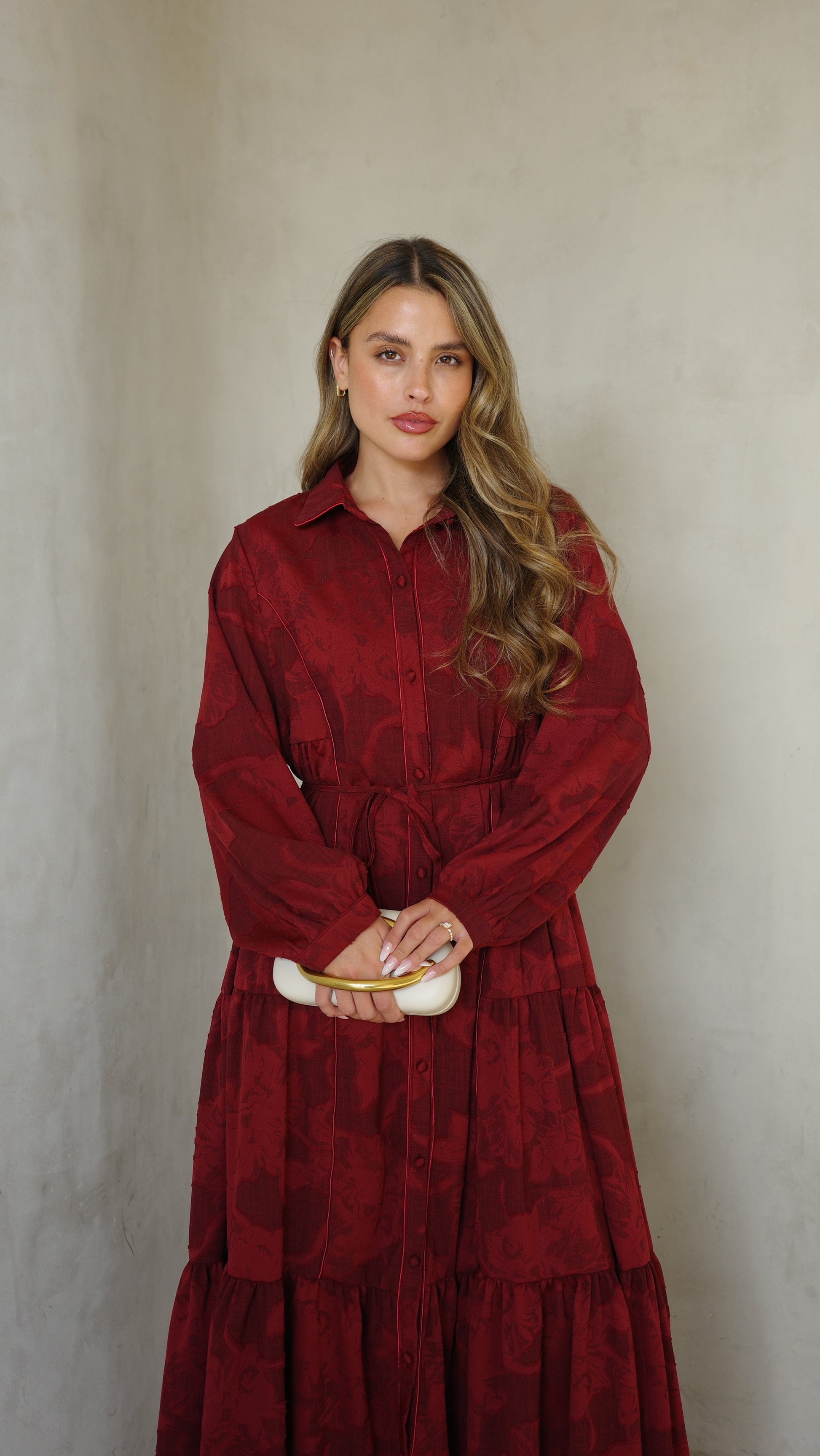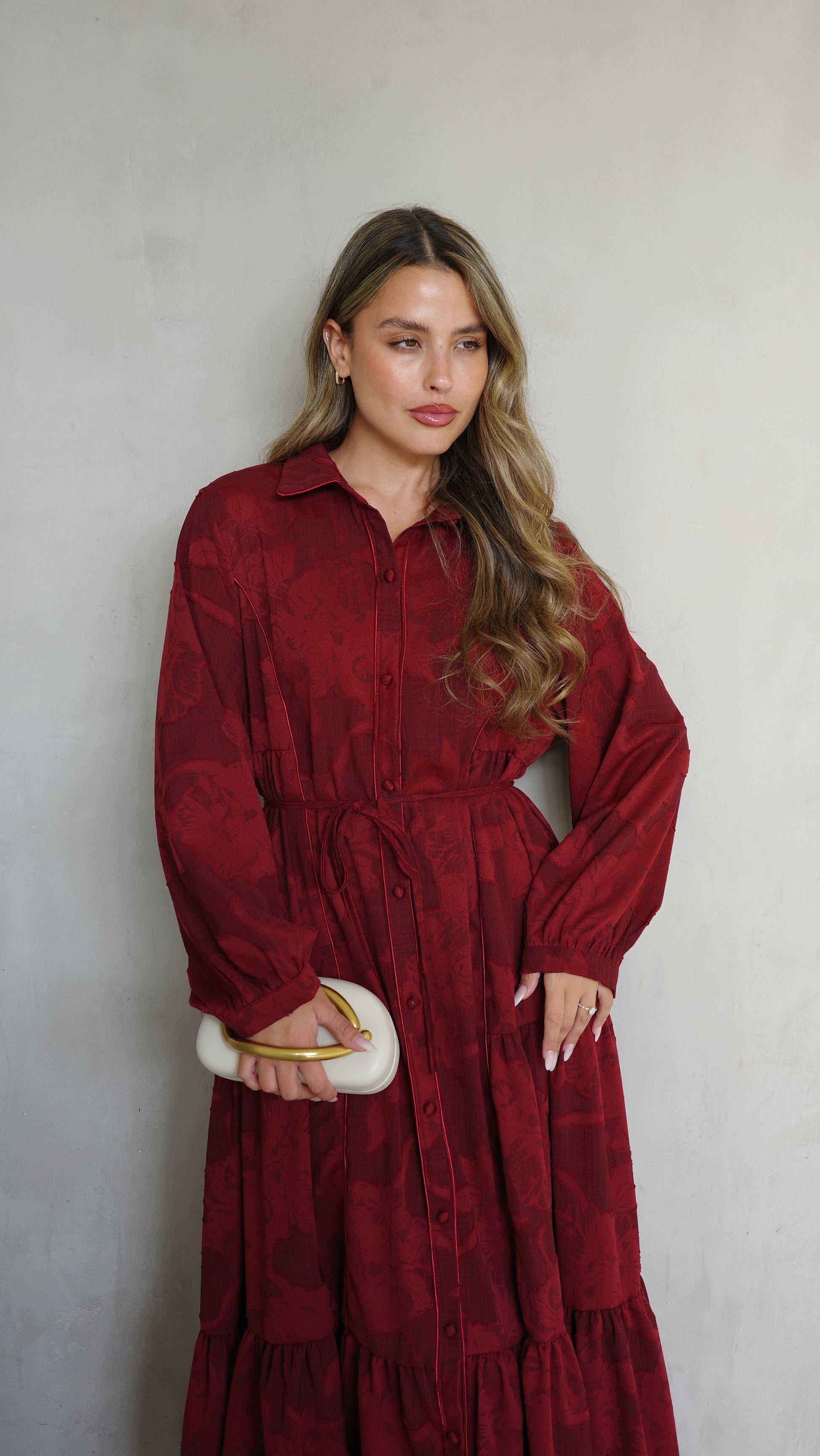 שמלת קלוש כפתורים טקסטורה אשלי | בורדו