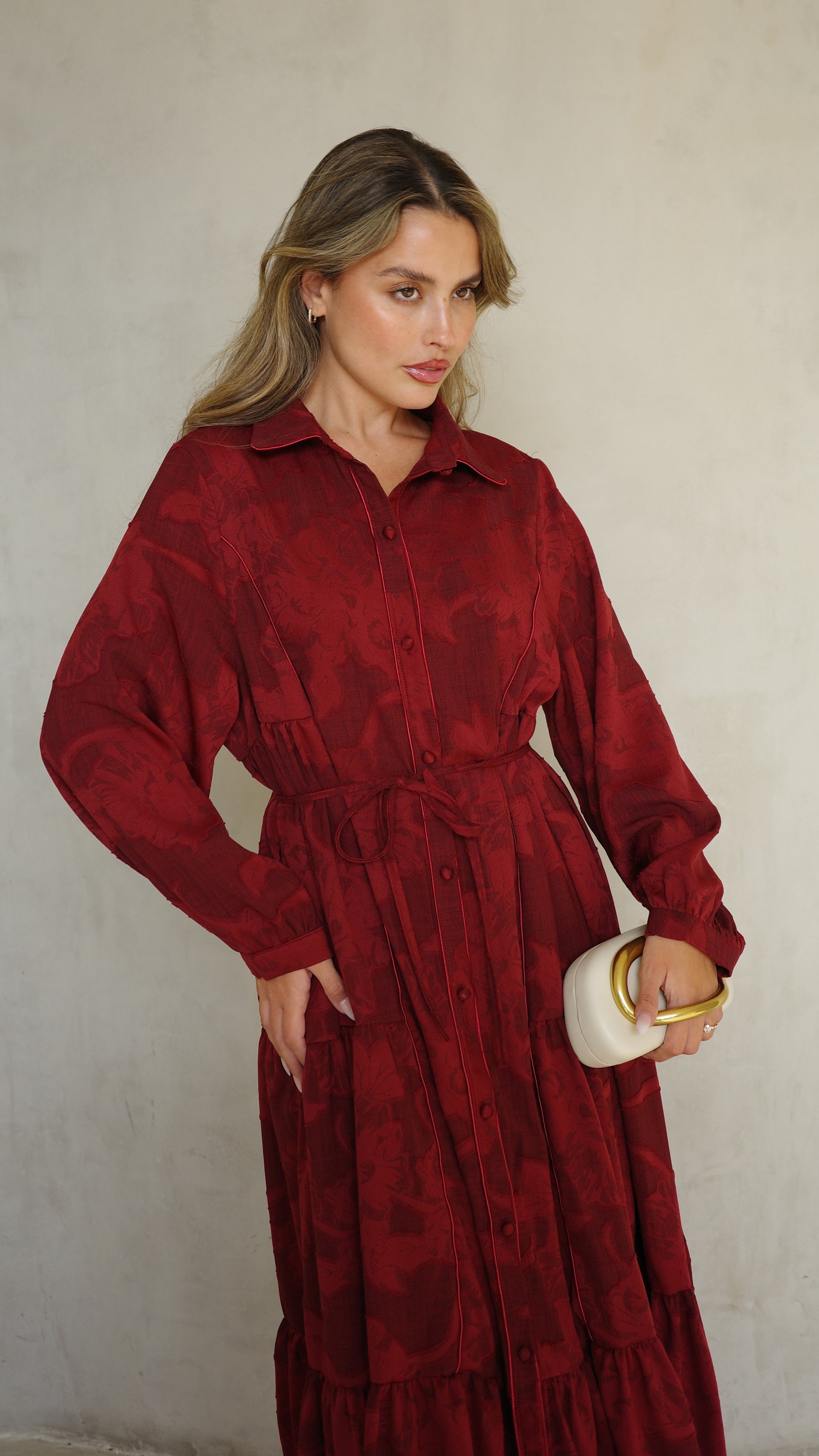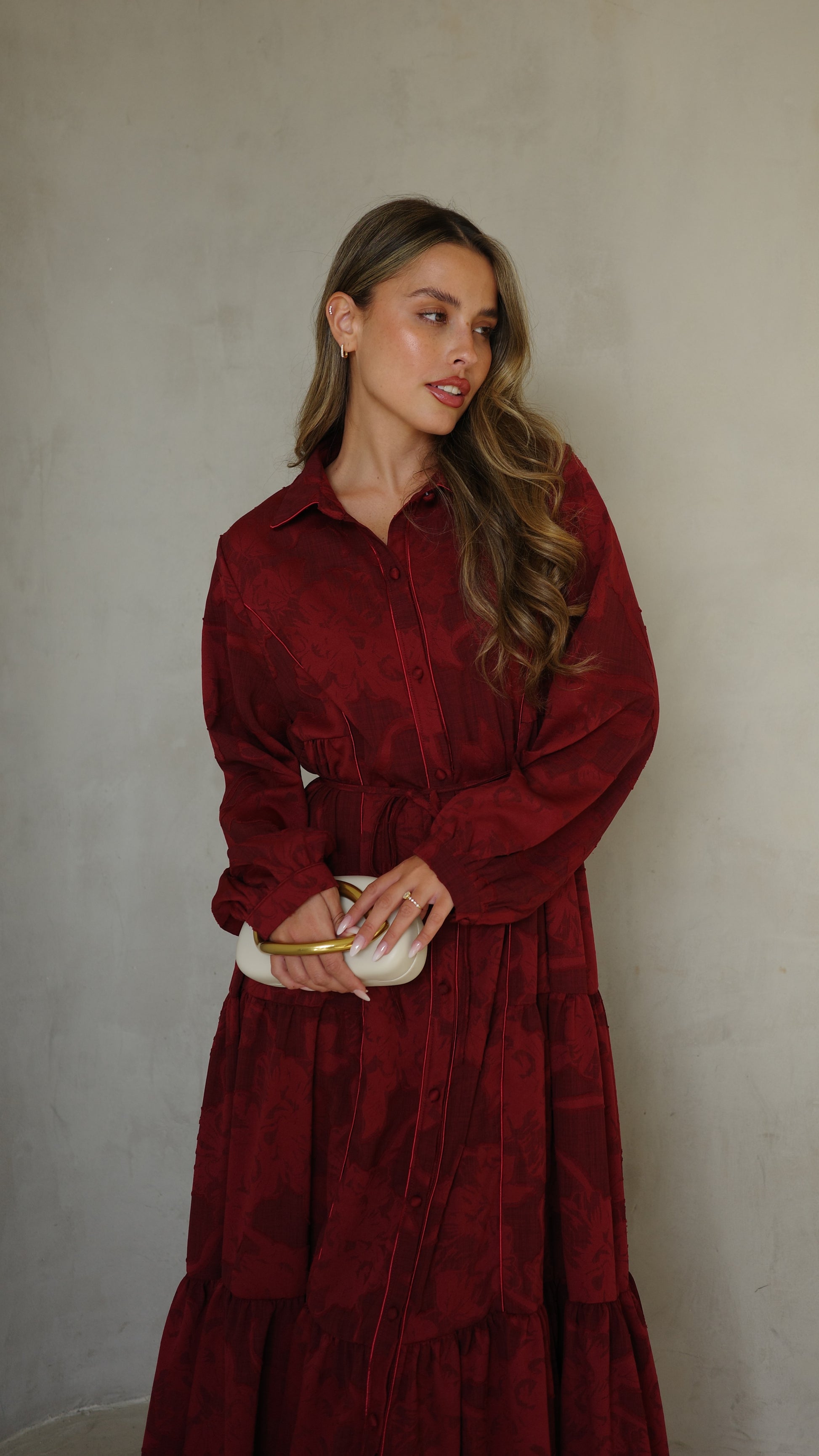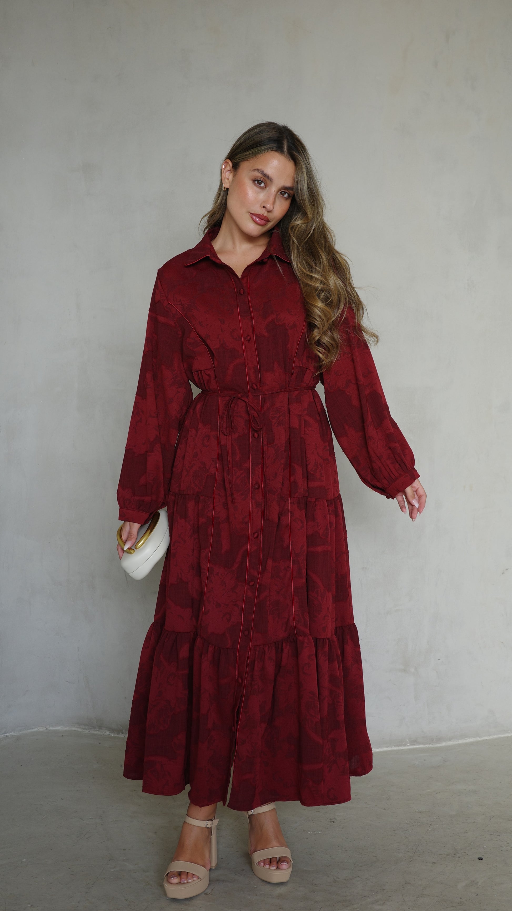 שמלת קלוש כפתורים טקסטורה אשלי | בורדו