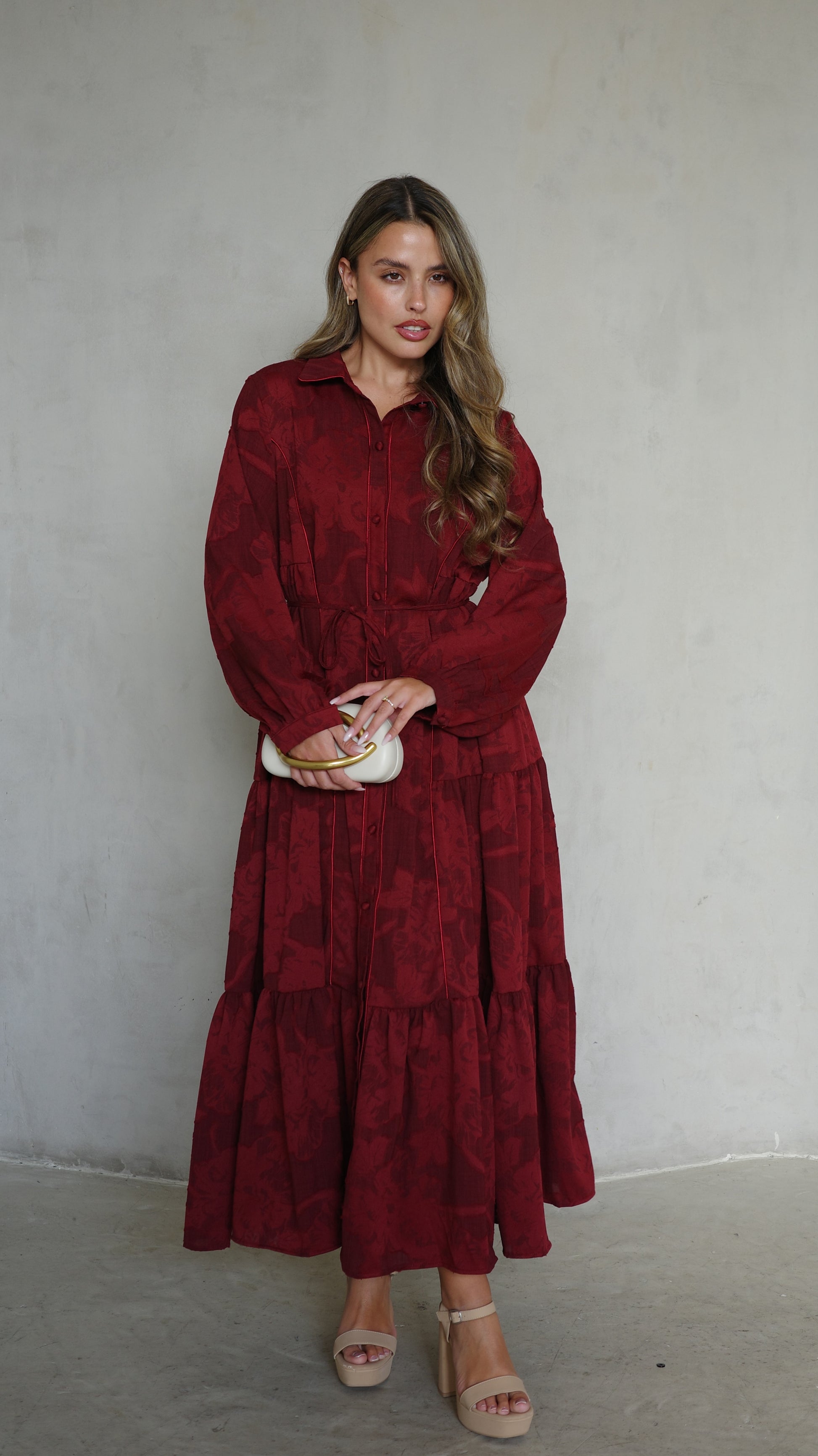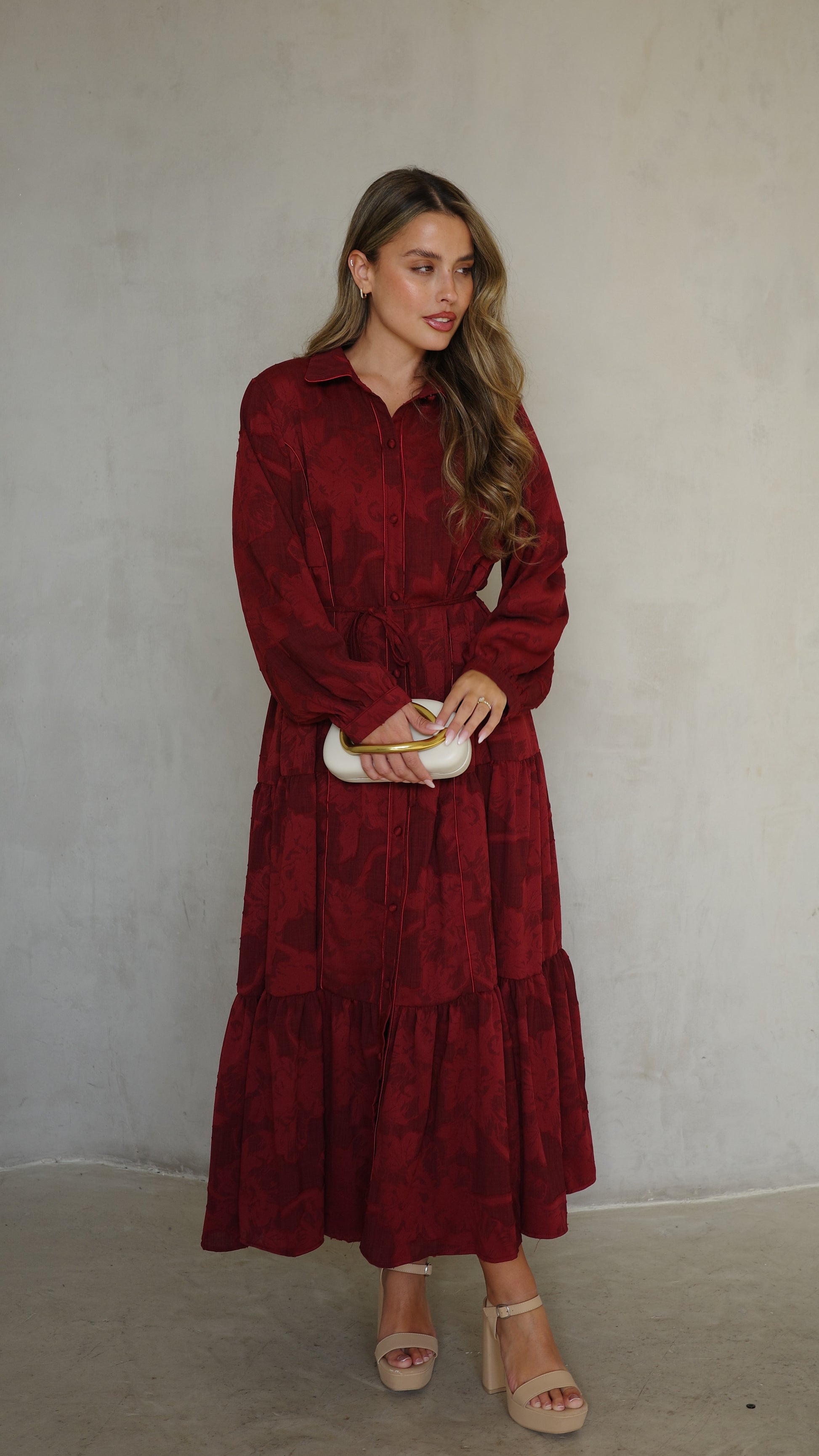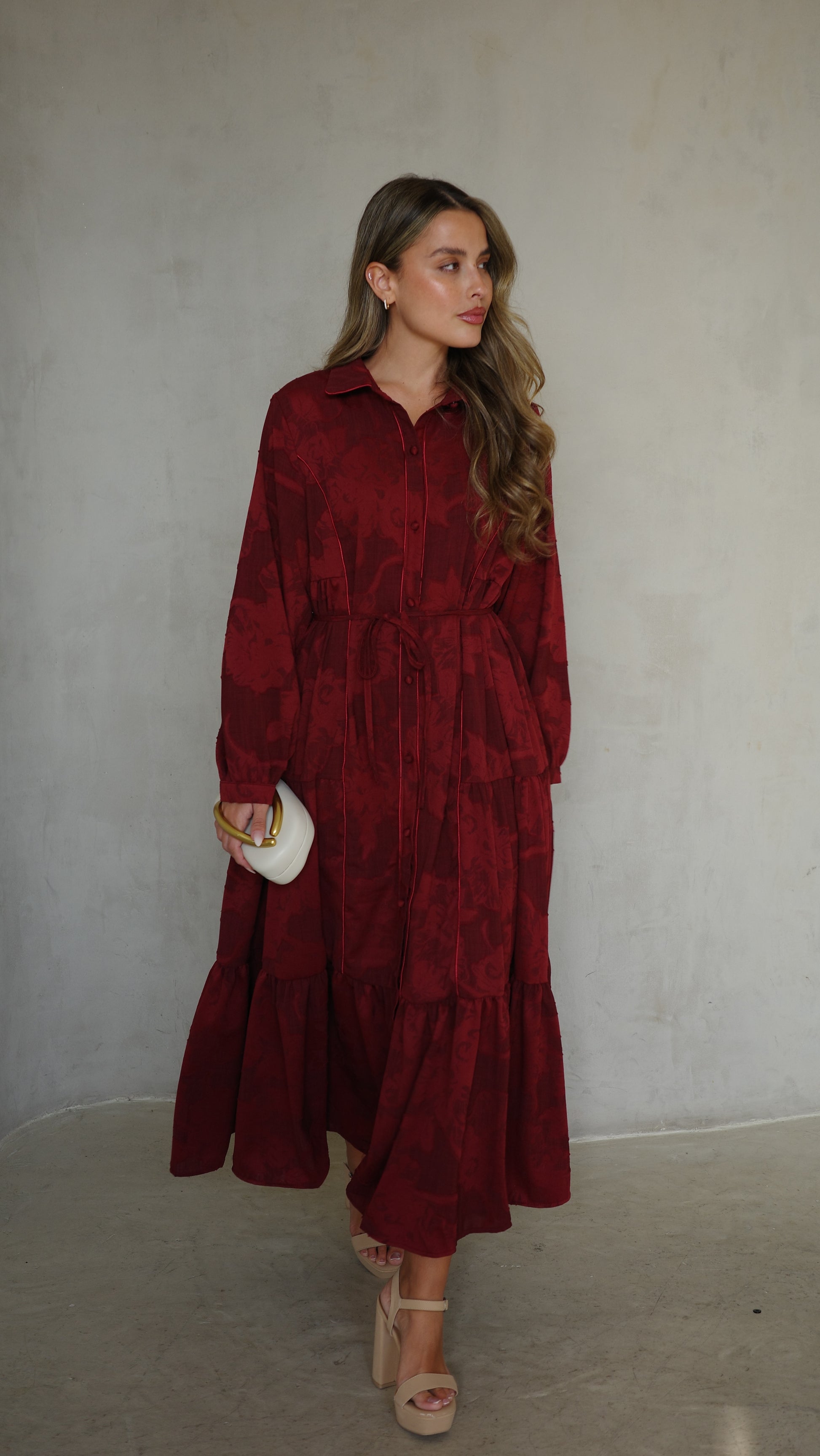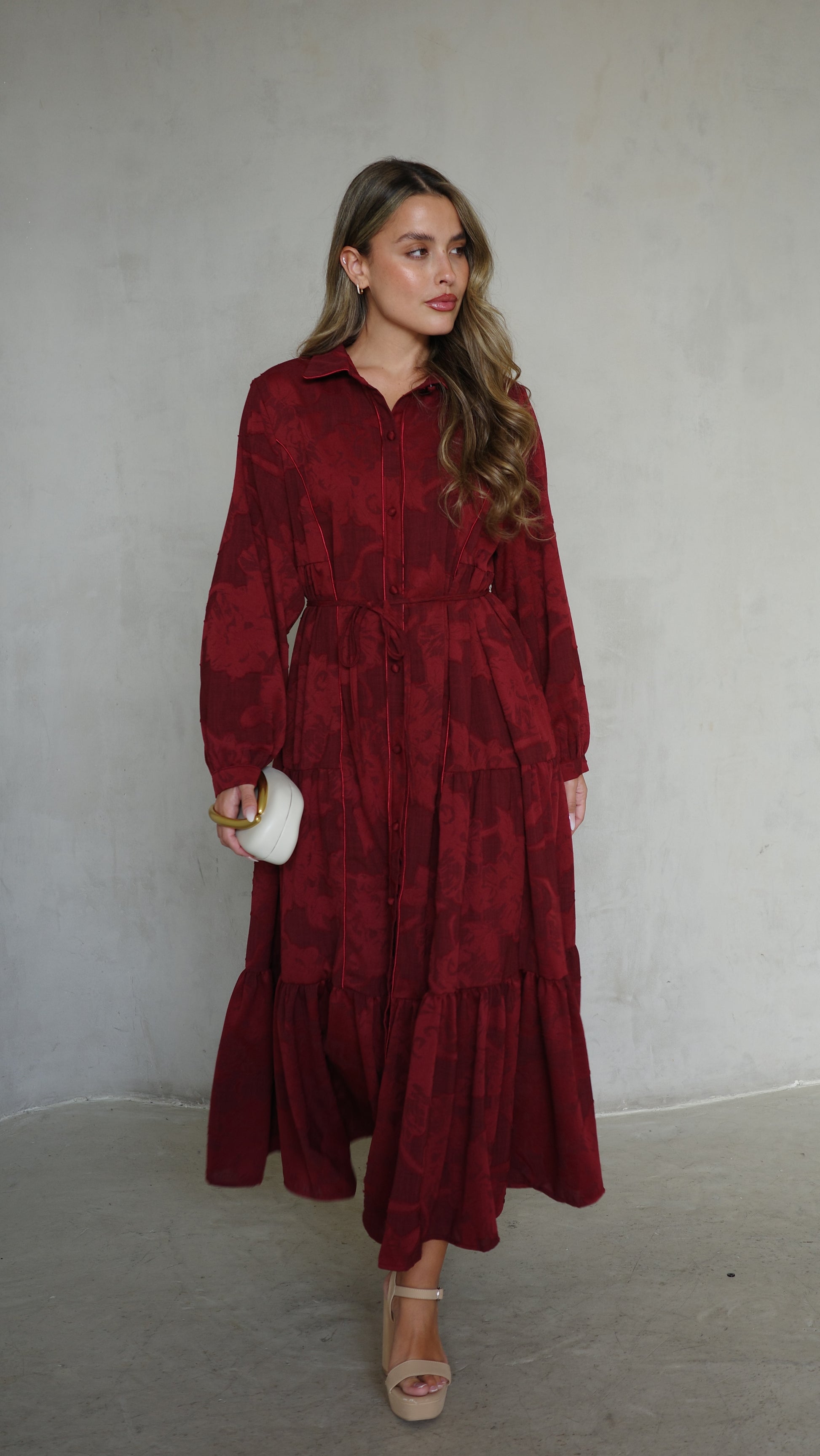שמלת קלוש כפתורים טקסטורה אשלי | בורדו