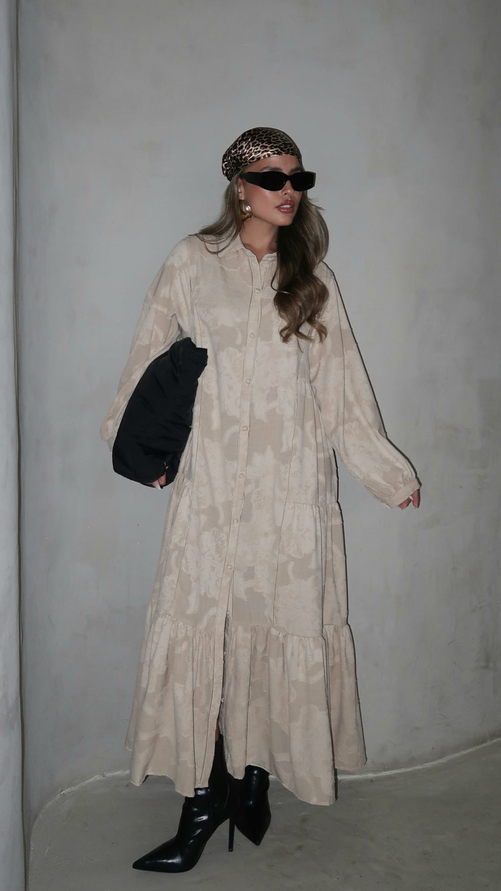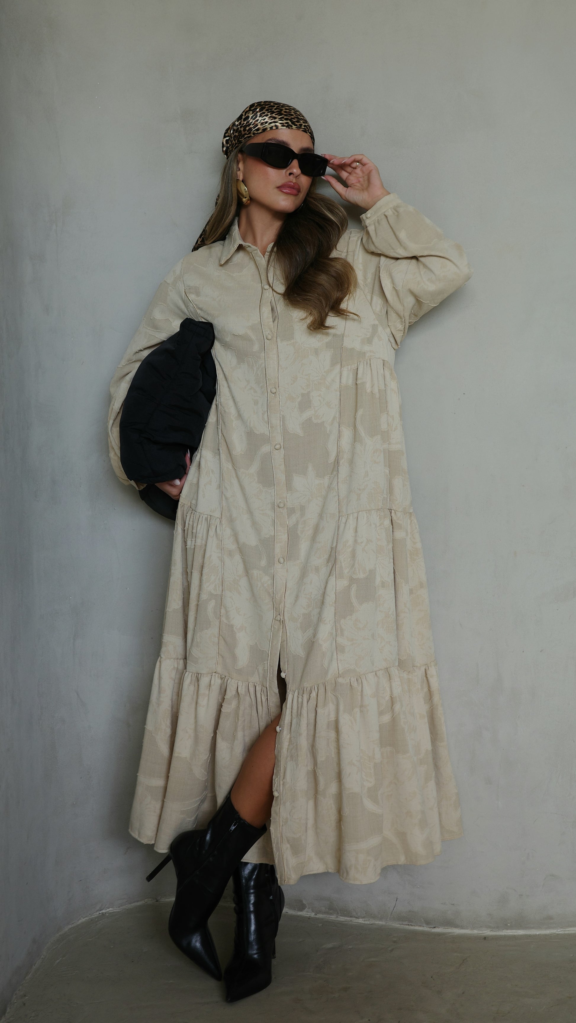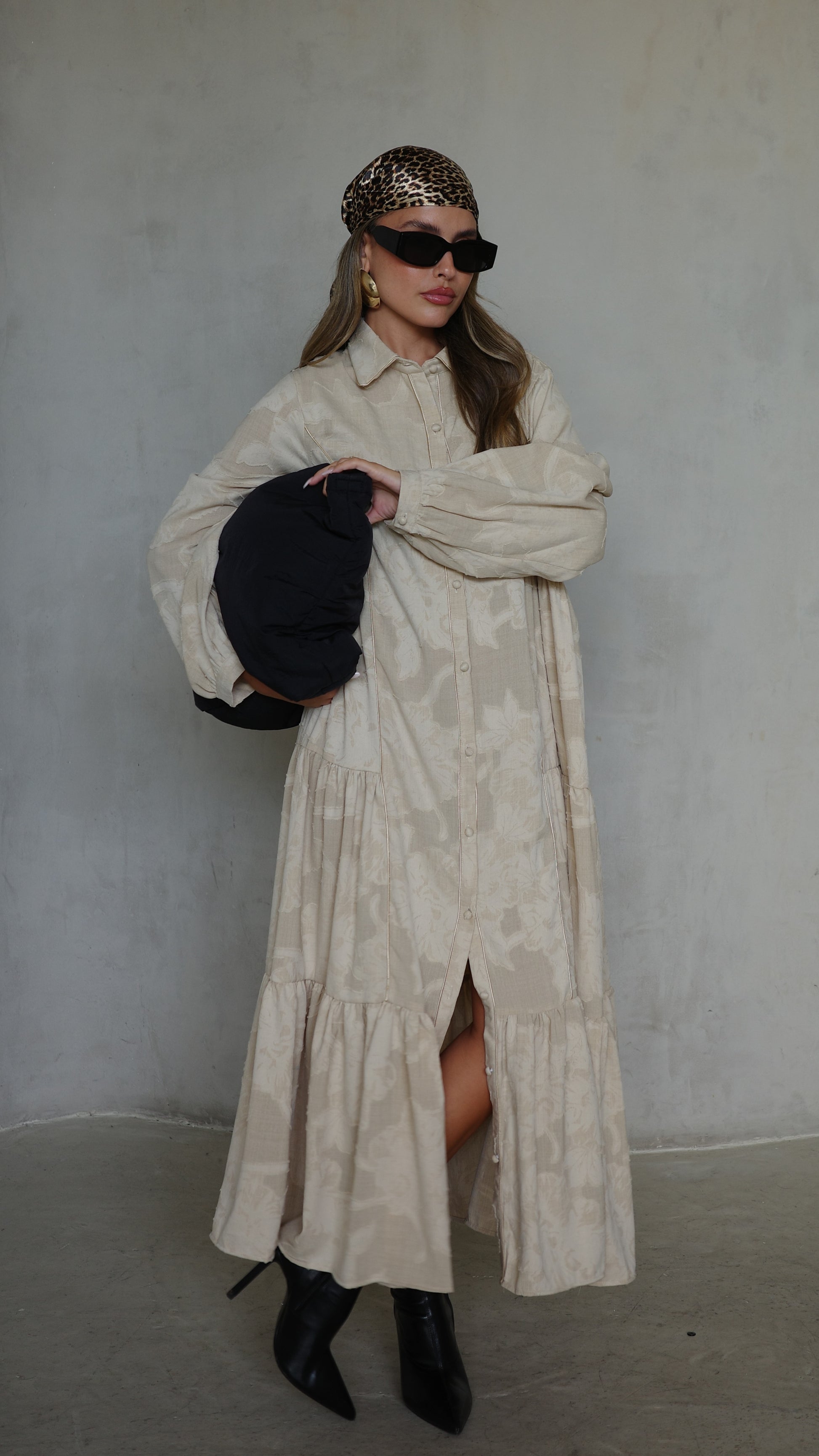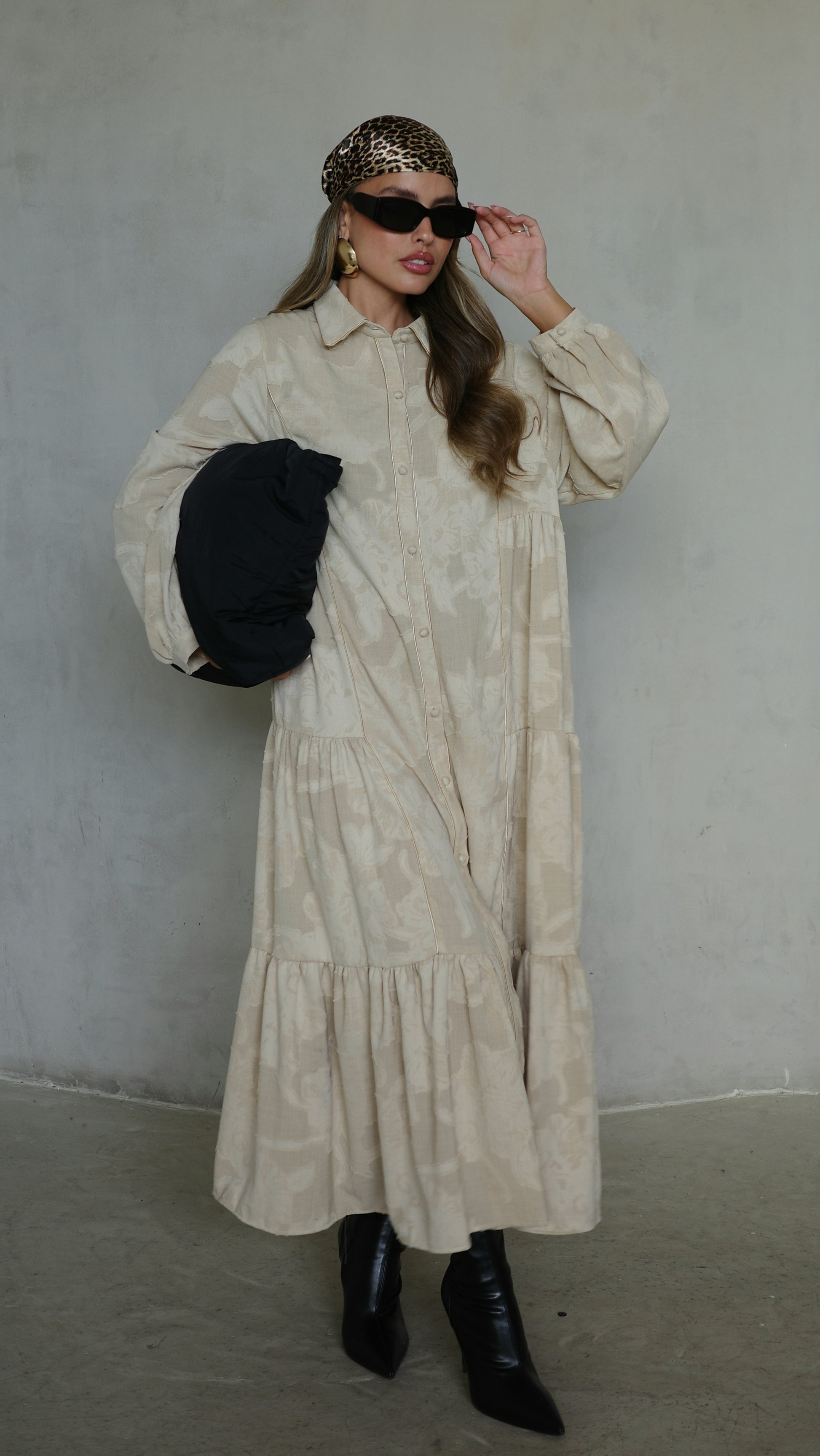 שמלת קלוש כפתורים טקסטורה אשלי | בז